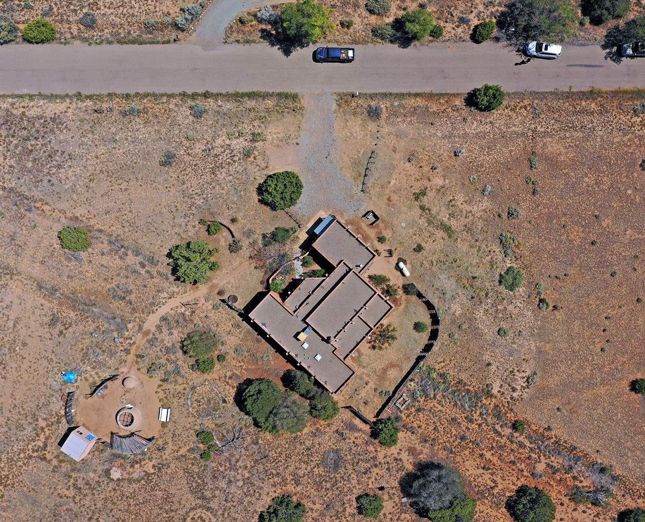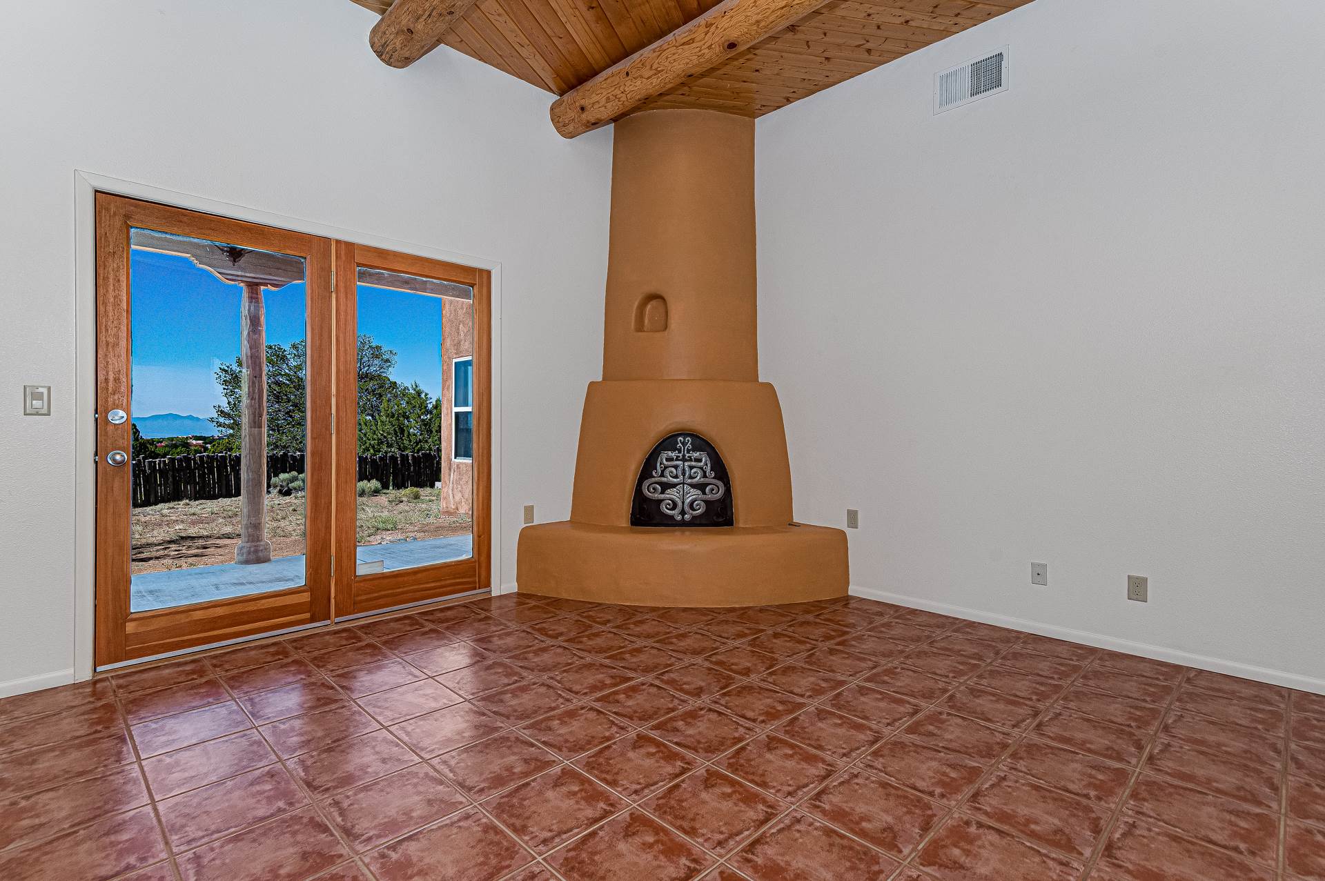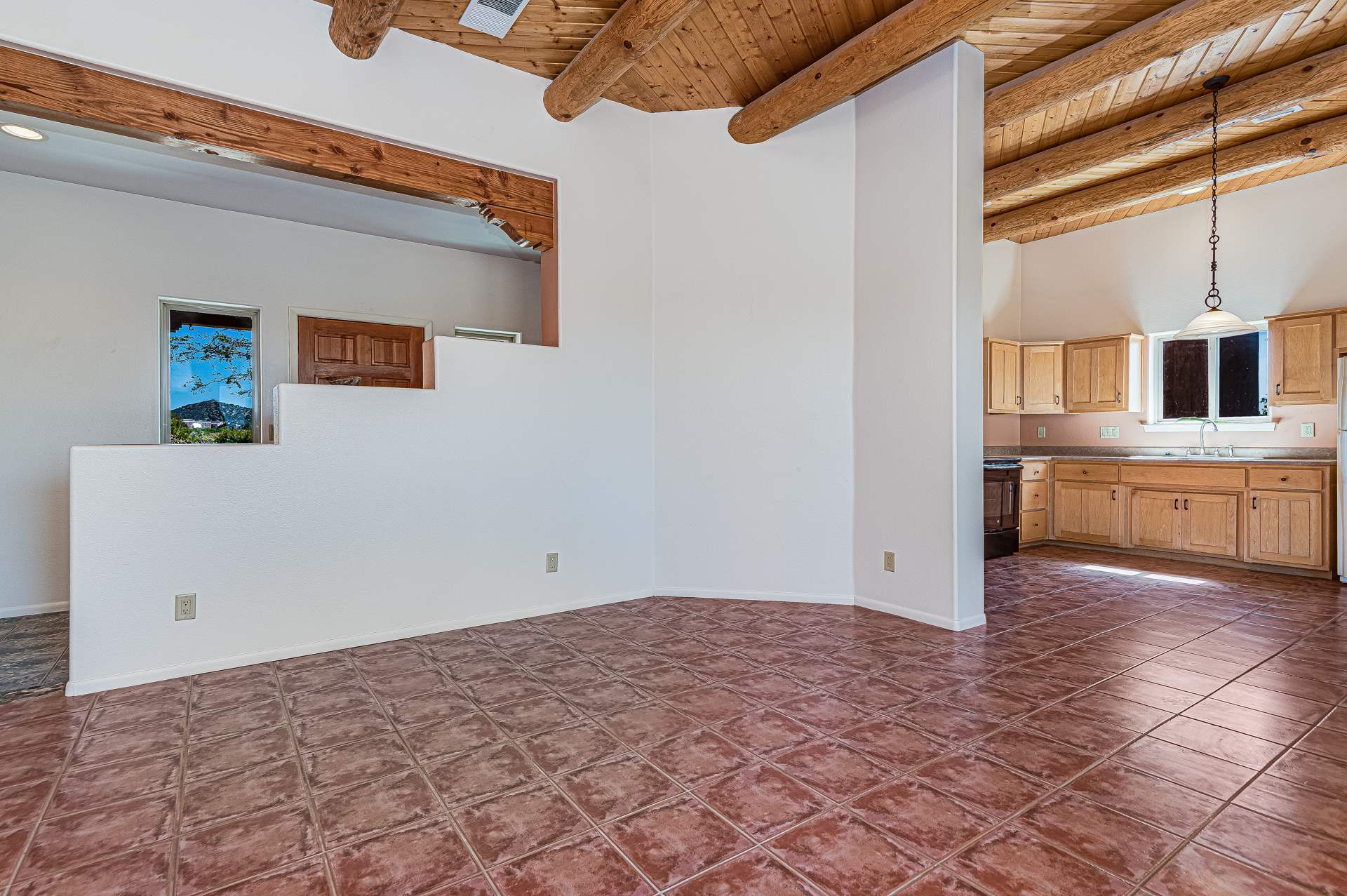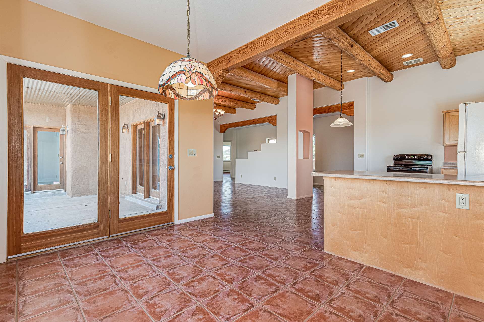 Escape to the wide open spaces and blue skies of New Mexico. Don't miss this well maintained, Santa Fe Style home. Lovely setting with VIEWS! Open floor plan, light and bright with vigas, nichos and a kiva fireplace. New Furnace! Freshly painted and spruced up! Front courtyard, covered back portal, plus a spacious back yard with a coyote fence arbor and an horno. Fabulous studio space with two, 220V outlets for artists and or the entrepreneur. Maple cabinets in the kitchen and enough room to add an island. This gem is off of 285 and close to the Agora Shopping Center, Eldorado Community School, restaurants and I-25. NO HOA. This property is move-in ready; WORK from home!