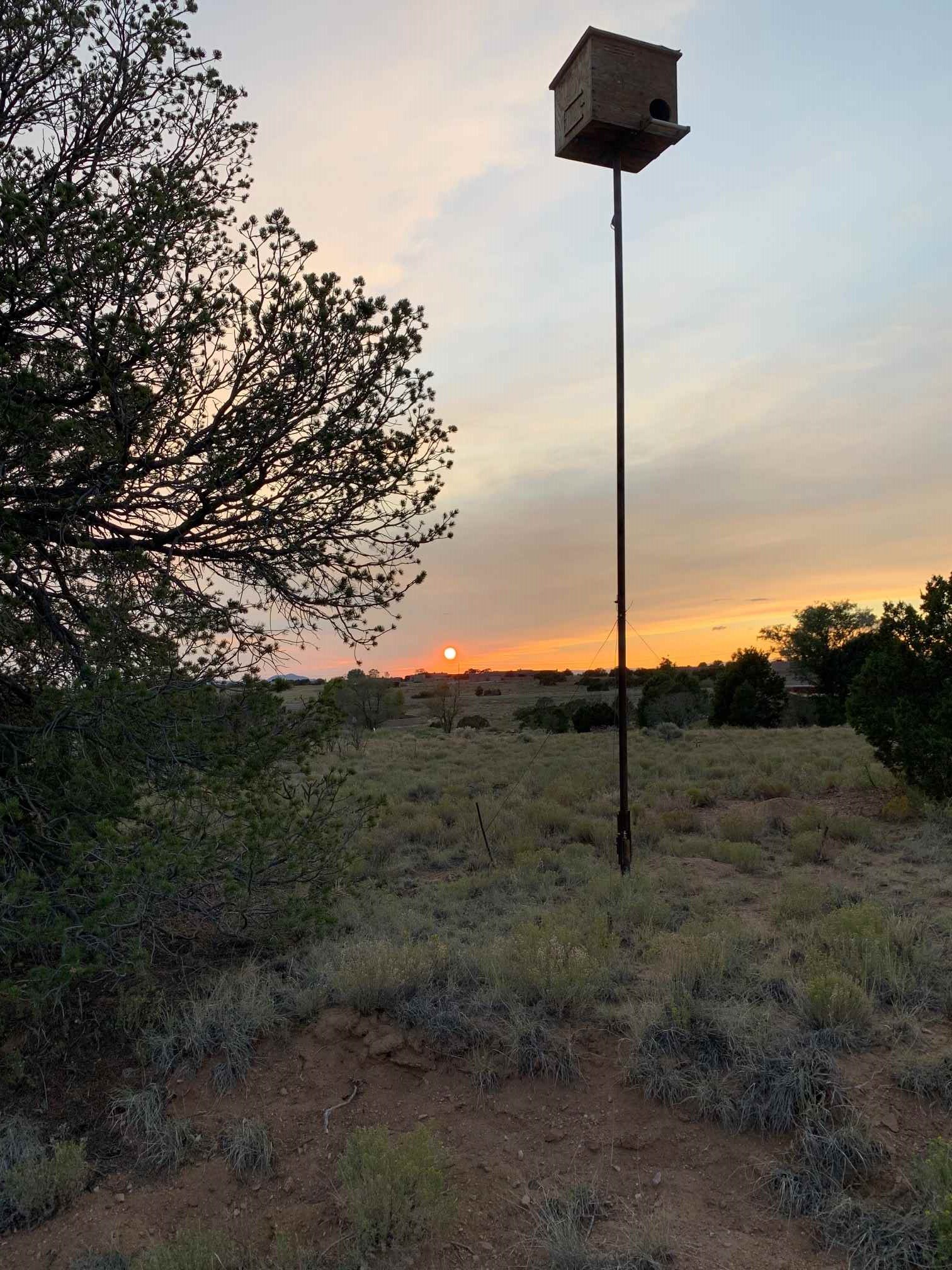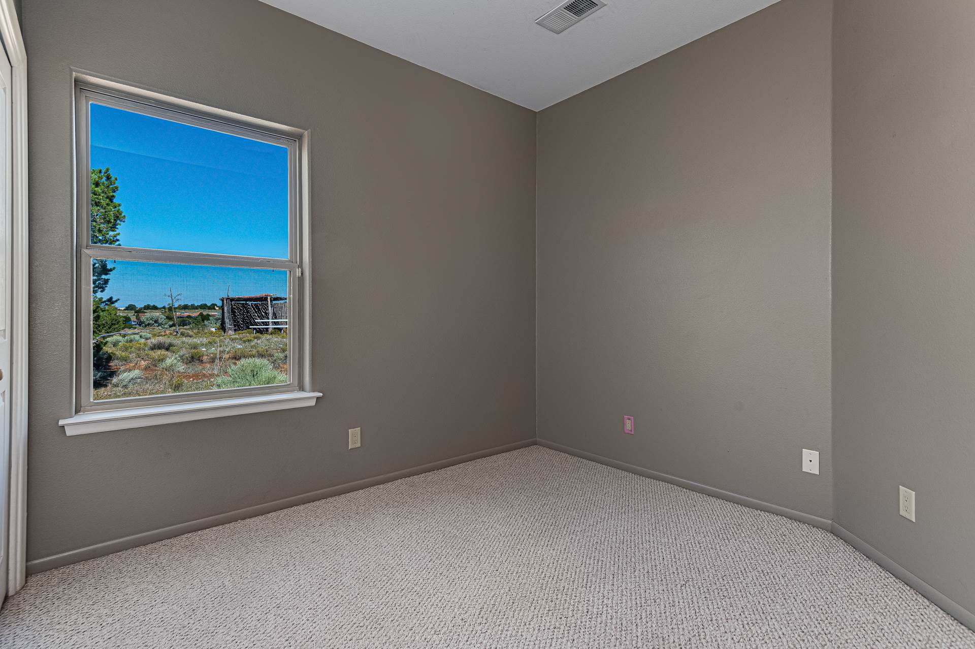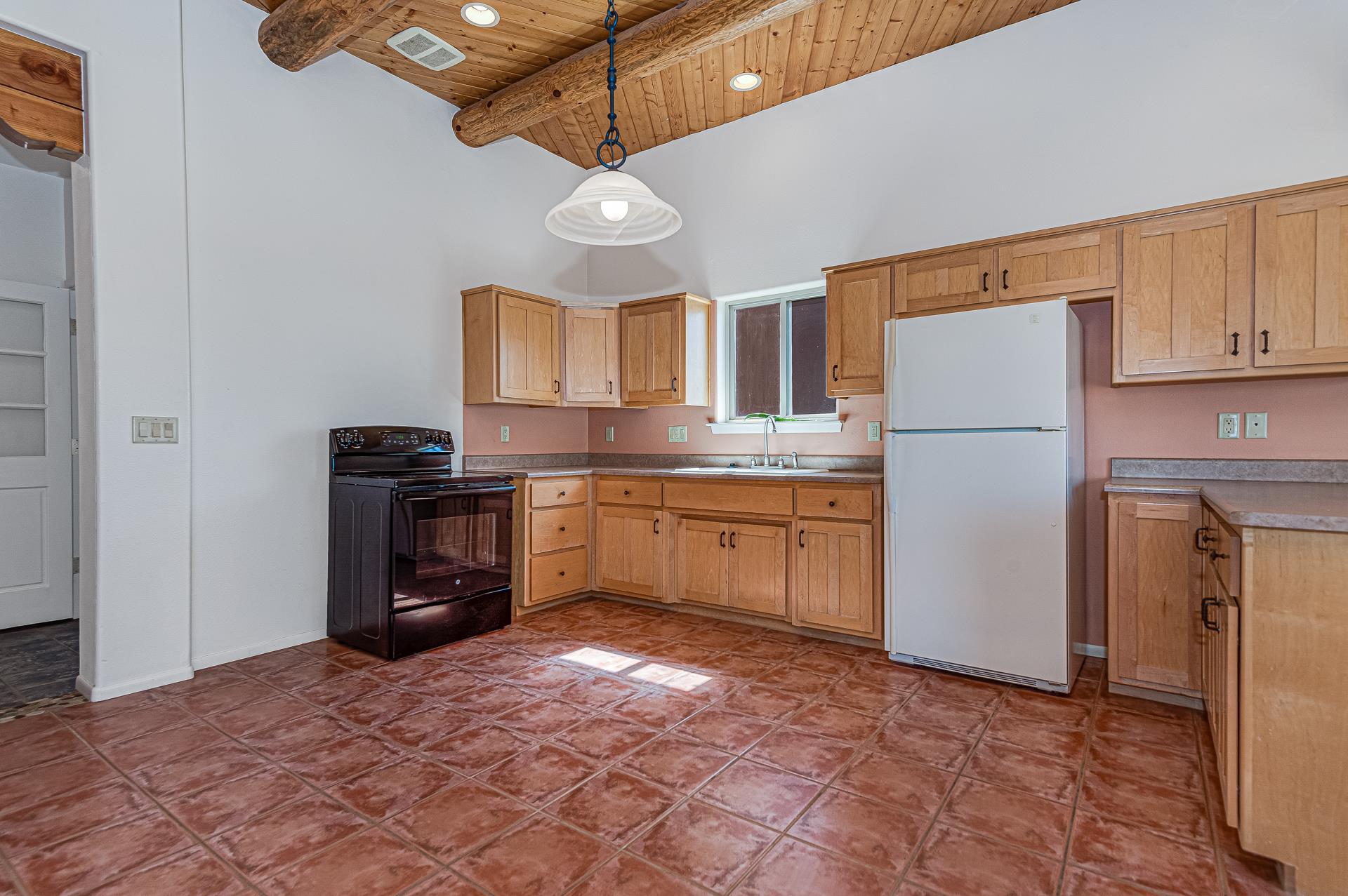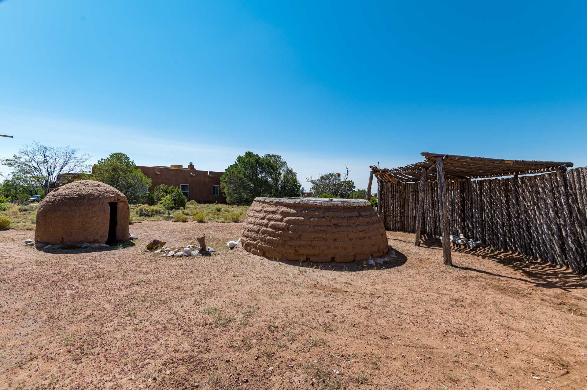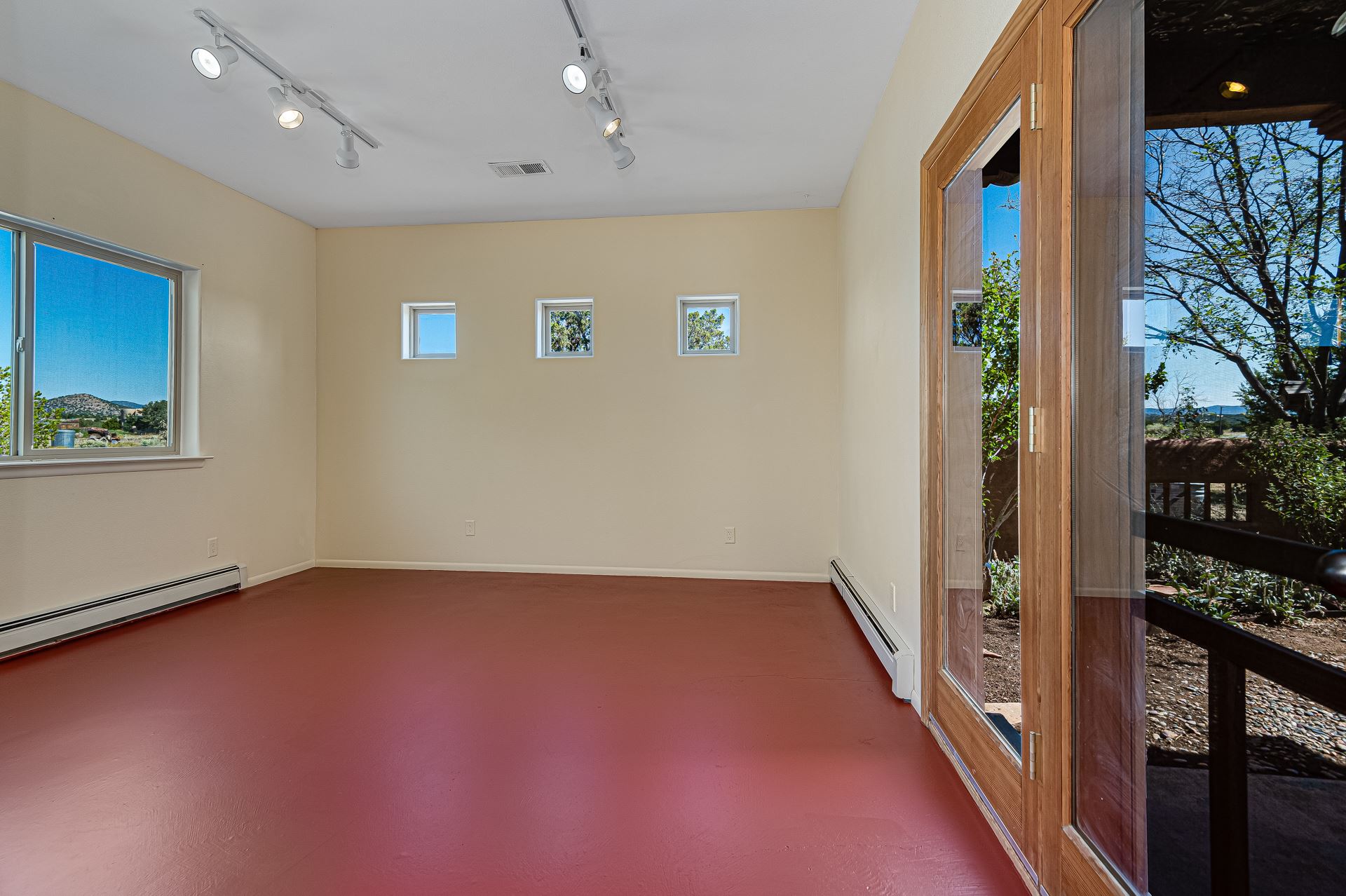 Escape to the wide open spaces and blue skies of New Mexico. Don't miss this well maintained, Santa Fe Style home. Lovely setting with VIEWS! Open floor plan, light and bright with vigas, nichos and a kiva fireplace. New Furnace! Freshly painted and spruced up! Front courtyard, covered back portal, plus a spacious back yard with a coyote fence arbor and an horno. Fabulous studio space with two, 220V outlets for artists and or the entrepreneur. Maple cabinets in the kitchen and enough room to add an island. This gem is off of 285 and close to the Agora Shopping Center, Eldorado Community School, restaurants and I-25. NO HOA. This property is move-in ready; WORK from home!
