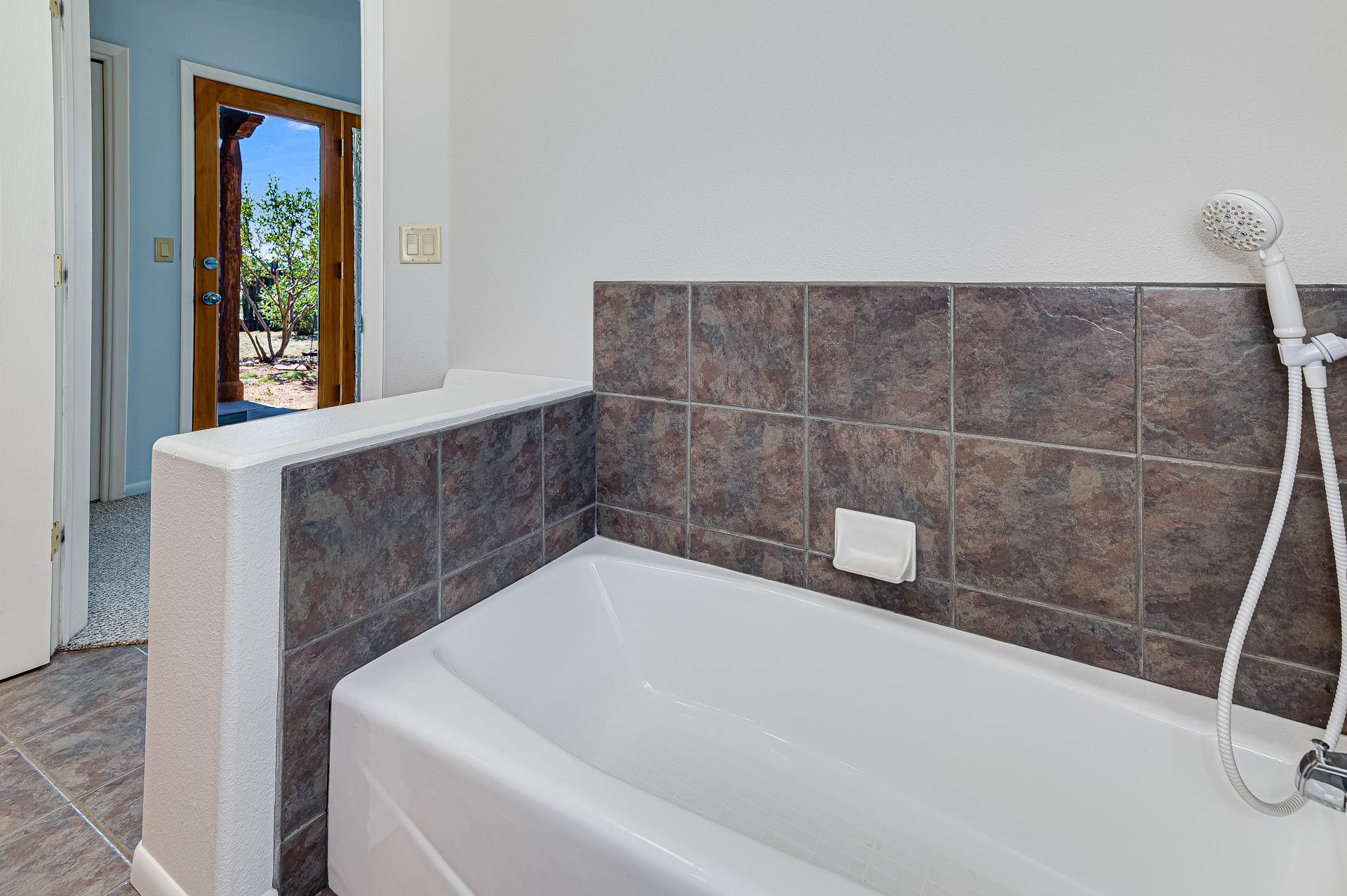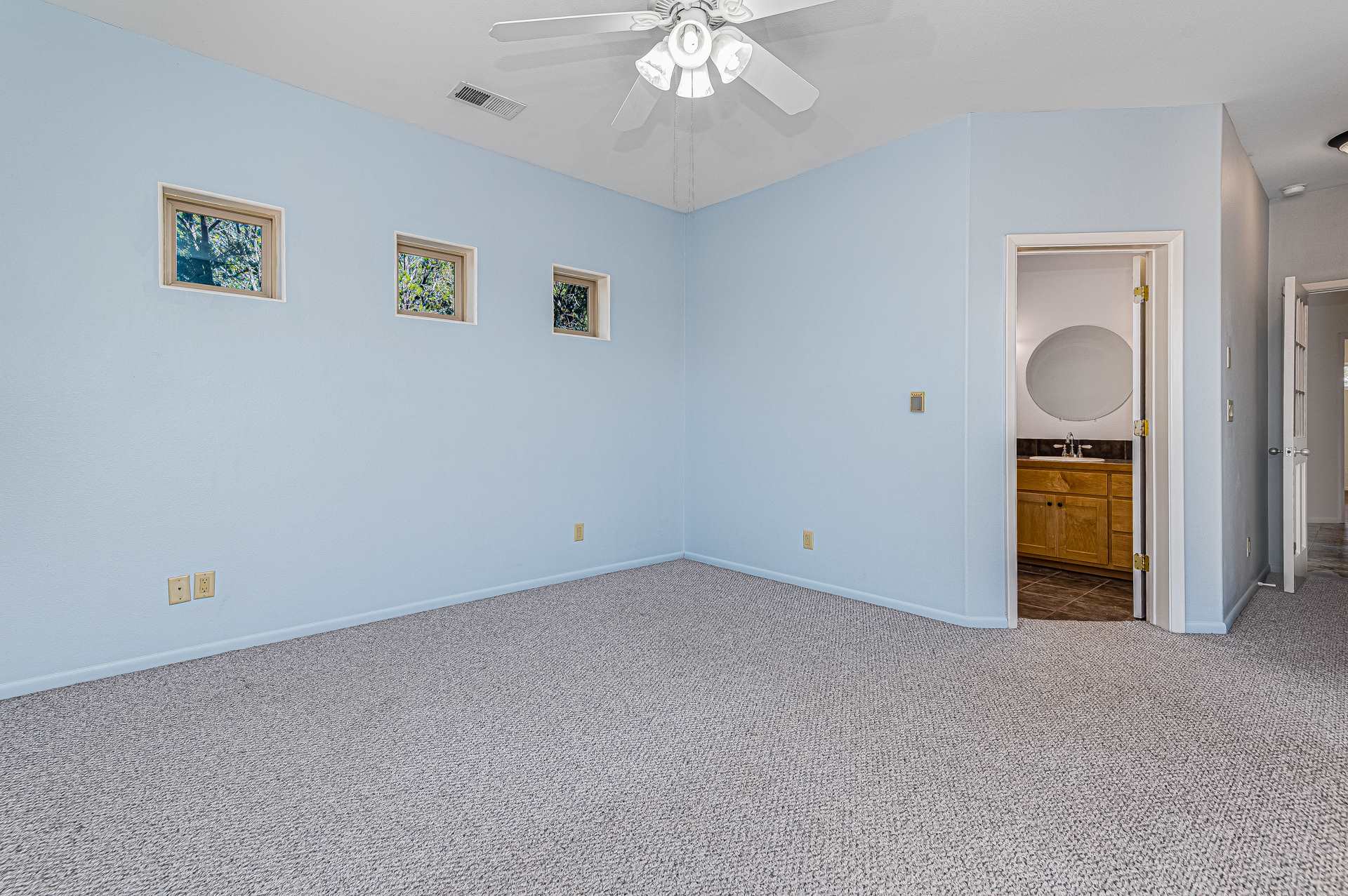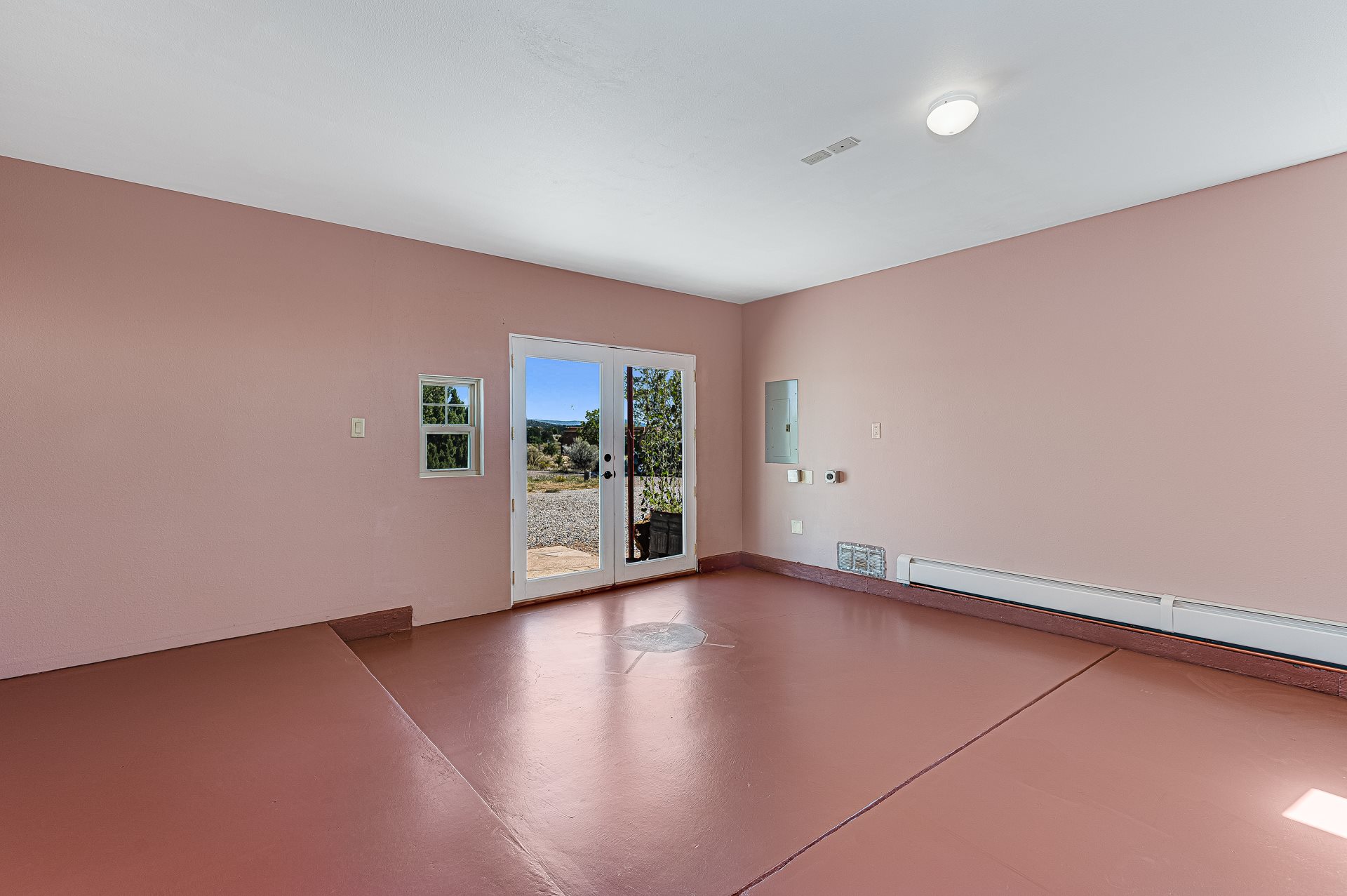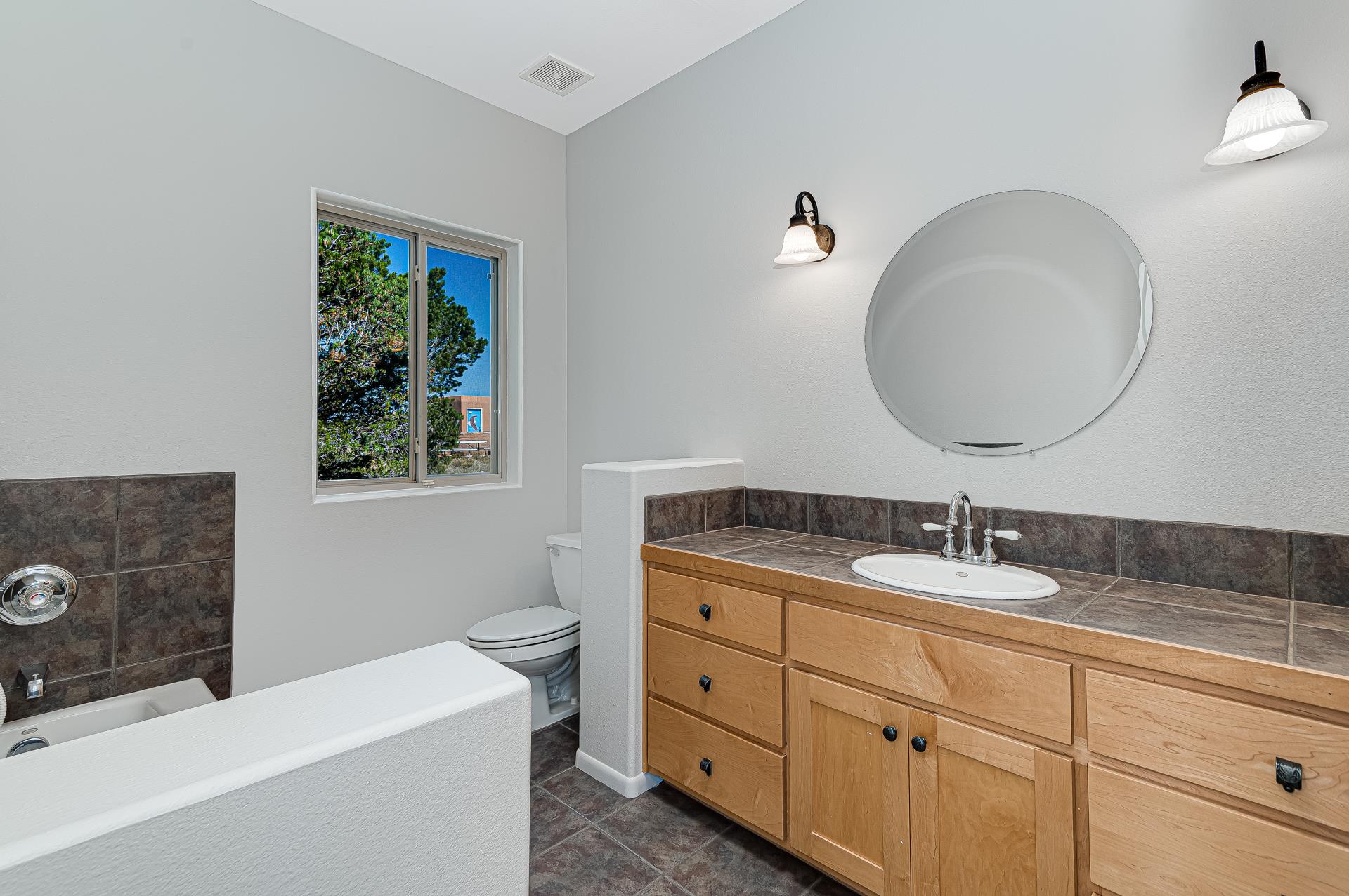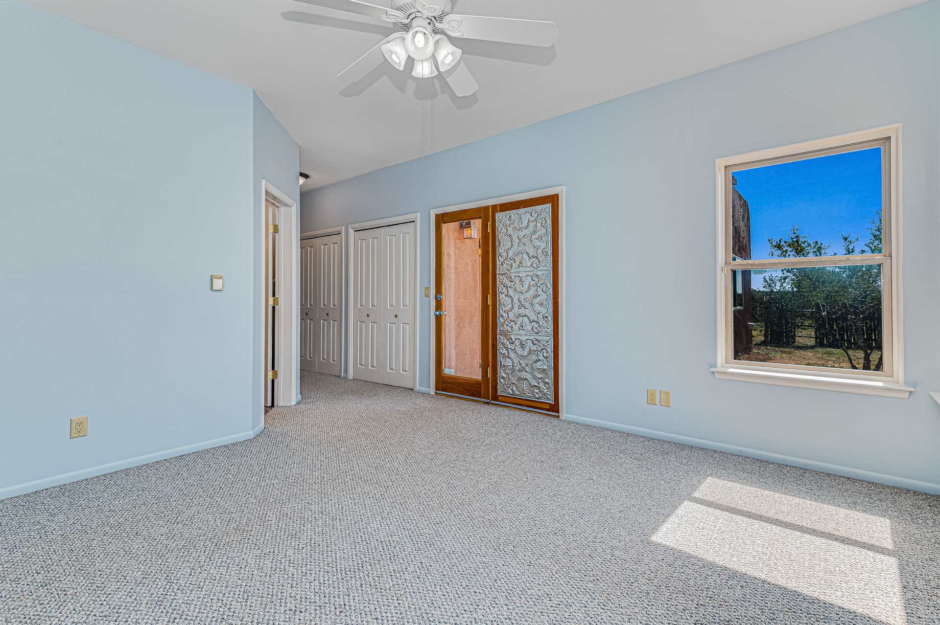 Escape to the wide open spaces and blue skies of New Mexico. Don't miss this well maintained, Santa Fe Style home. Lovely setting with VIEWS! Open floor plan, light and bright with vigas, nichos and a kiva fireplace. New Furnace! Freshly painted and spruced up! Front courtyard, covered back portal, plus a spacious back yard with a coyote fence arbor and an horno. Fabulous studio space with two, 220V outlets for artists and or the entrepreneur. Maple cabinets in the kitchen and enough room to add an island. This gem is off of 285 and close to the Agora Shopping Center, Eldorado Community School, restaurants and I-25. NO HOA. This property is move-in ready; WORK from home!