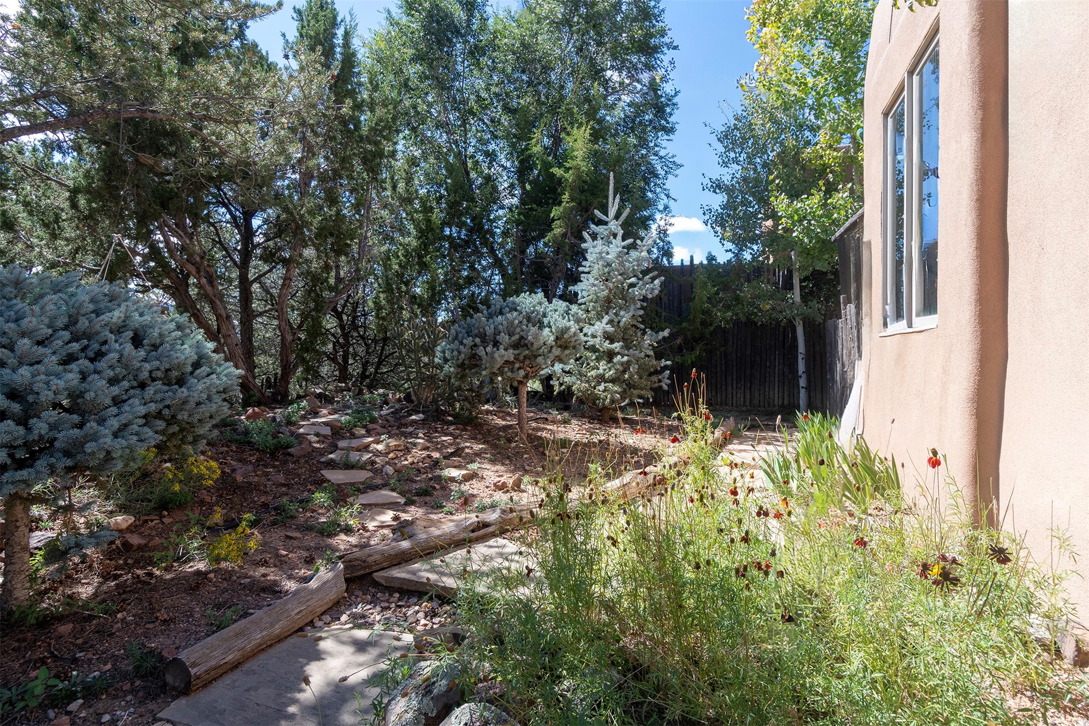 HIDDEN GEM IN THE OUTSTANDING EL CANON NEIGHBORHOOD - 4 BED | 5 BATH | 2 CARG - On a cul-de-sac tucked into the ridge top of a private canyon enclave in the upper east heights of the Cerro Gordo + Upper Canyon Road corridor, this 4 Bed, 5 Bath home boasts beautifulnorth east views of the Sangre de Cristos foothills and the Jemez Mountains.Designed by Robert Nestor the pueblo architecture and regional style make you feel right at home with the natural surroundings.This home is a true nest high in the foothills. A beautiful and dramatic entry features a calming fountain. Large vigas and beautiful decking, latillas, and split cedargrace the ceilings.Floor to ceiling glass doors on eitherside of the great room open this home up to the sky.With 4 bedrooms featuring en suite baths, this is a great home for hosting family or friends. This home has a wonderful layout with great separation of guest rooms from the main suite. One of the bedrooms is wonderfully situatedto double as an office and home gym. Mature trees and tiered rock garden beds make for privacy and a wonderful outdoor experience.Traditional Talavera tile kitchen and baths bring warmth and craft to this pueblo charmer.The kitchen is complete with breakfast nook, desk center, large kitchen island, hardwood cabinetry and walk-through pantry.The outdoor covered portal overlooking the hillsides is perfect for morning coffee or grilling dinner. Saltillo floors, skylights, and wood burning fireplaces bring comfort and brightness. A wonderfully handmade New Mexican tin chandeliersand sconce enhance the entry and guest wing.Sandstone patio and garden paths merge beautifully with the landscape, and a hot tub deck provides relaxation for soaking in the sun. While providing great privacy this home is only a short drivethrough the beautiful canyon into town and makes daily outings easy and pleasant. Don't miss the chance to own this slice of traditional pueblo living with views on the eastside!
