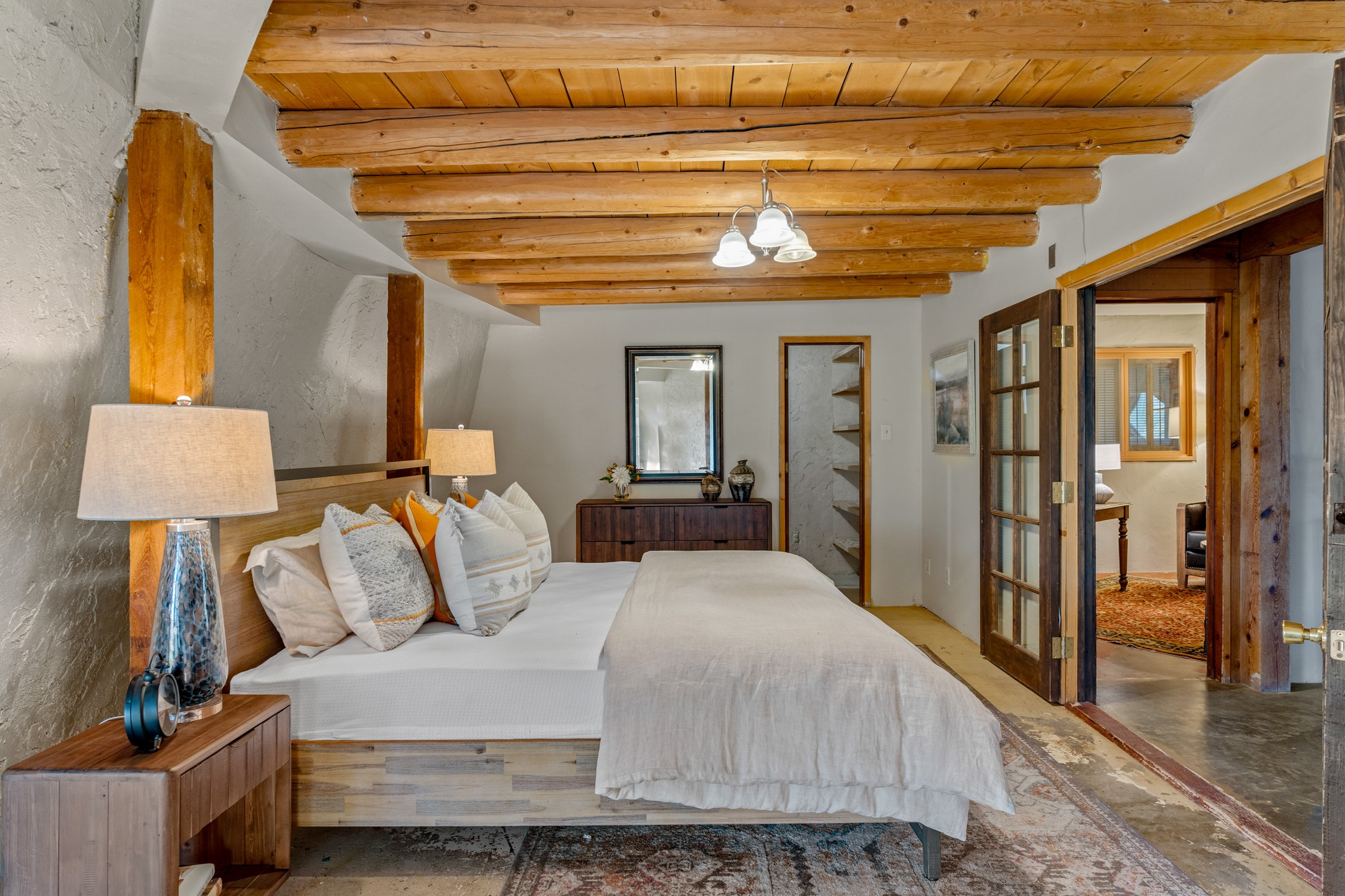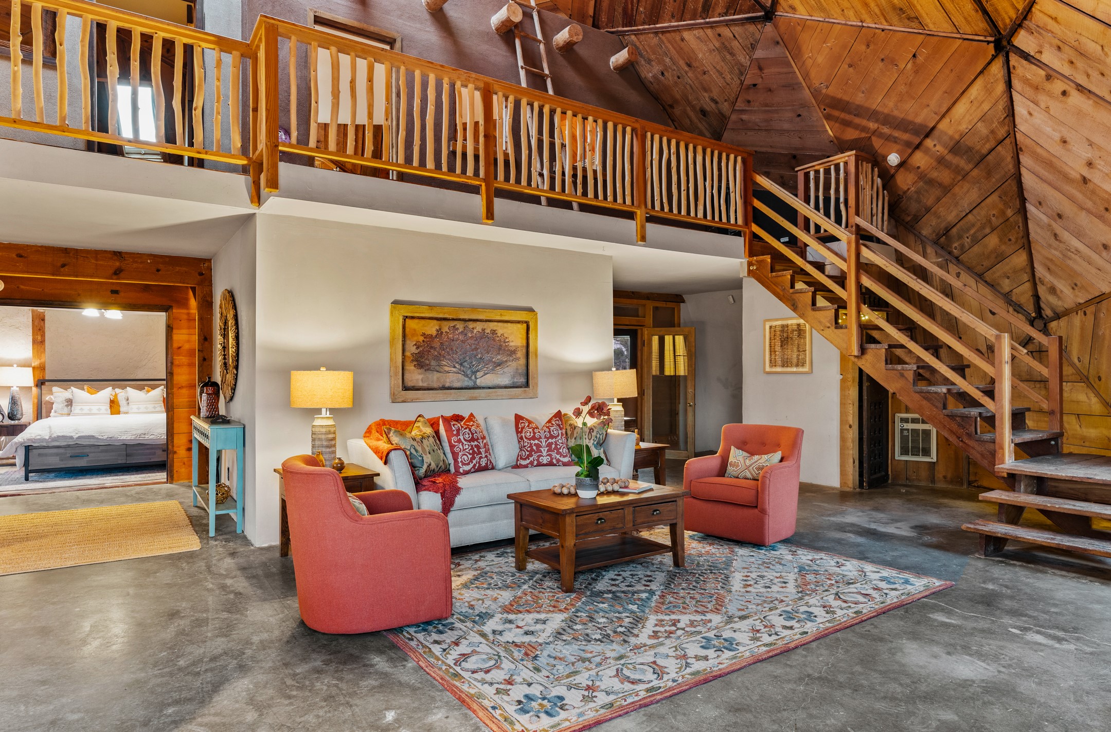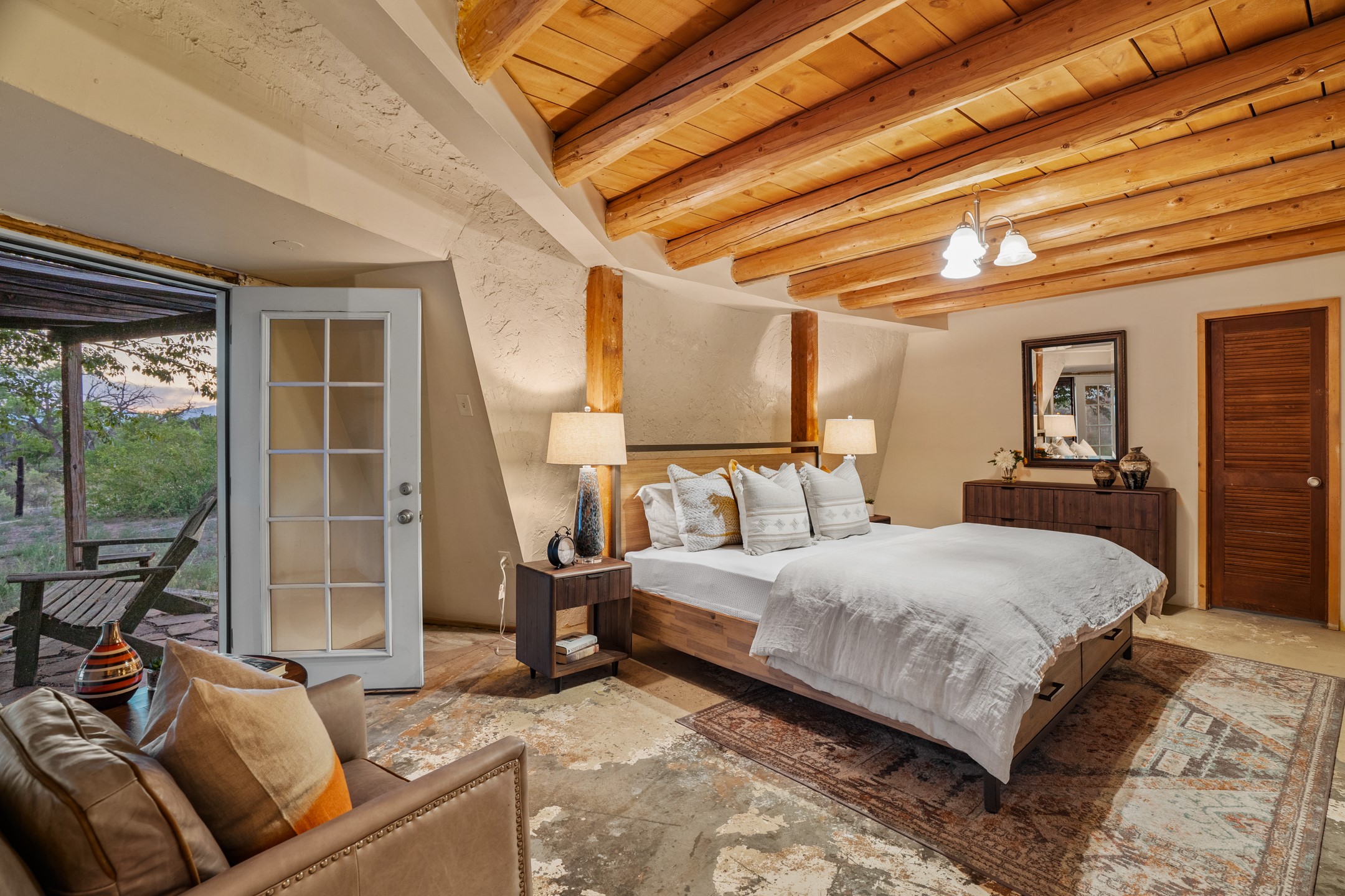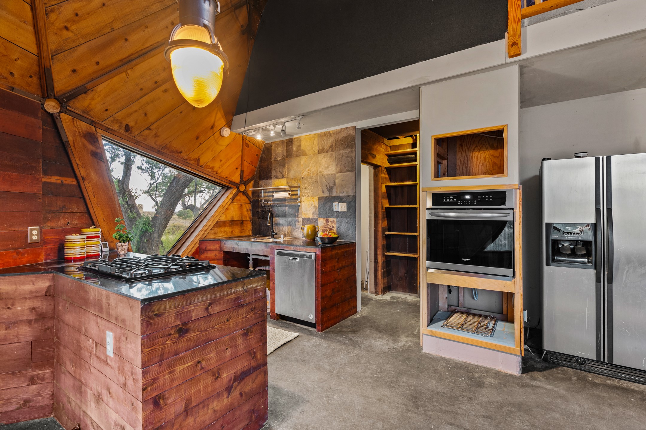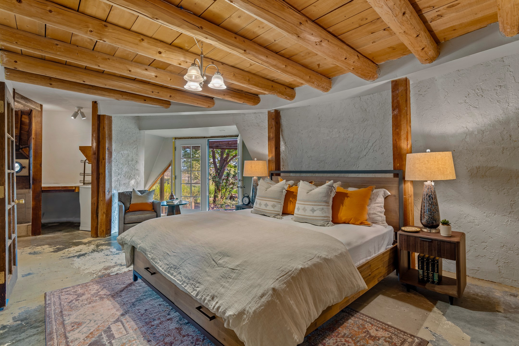At the end of the road, you will find a singularly unique property in all of Northern New Mexico. This whimsical dome is sure to inspire! Lovingly built in the 1970's, this 3 bedroom, 2 bathroom property has been a place of gathering and community building for many years. A very spacious open concept living area provides kitchen, living and dining spaces with high ceilings and lots of natural light. The wooden ceilings provides a warm ambience. There is one large bedroom and a 3/4 bath downstairs. Upstairs you will find a full bath and one bedroom, plus an additional space for an office or flex room. There are so many possibilities with this beautiful land. Outside, new roof coating has been put on in the last few years. There are plenty of options for projects, horses, cattle or just hanging out by the bonfire and looking at the stars. There is a 720 square foot artist's studio on property, which has been an incubator for some of Santa Fe's great local artists. This property is a short walk to BLM land with many hoodoos and other interesting rock formations. Hiking, riding and enjoying the great outdoors is easy from this gem of a property. Don't miss the opportunity of a lifetime, schedule a showing today!