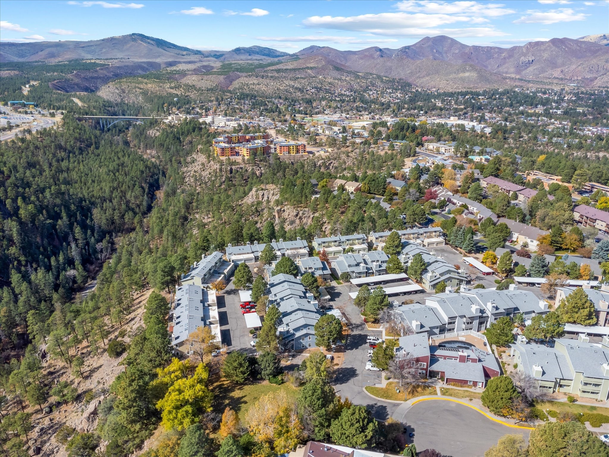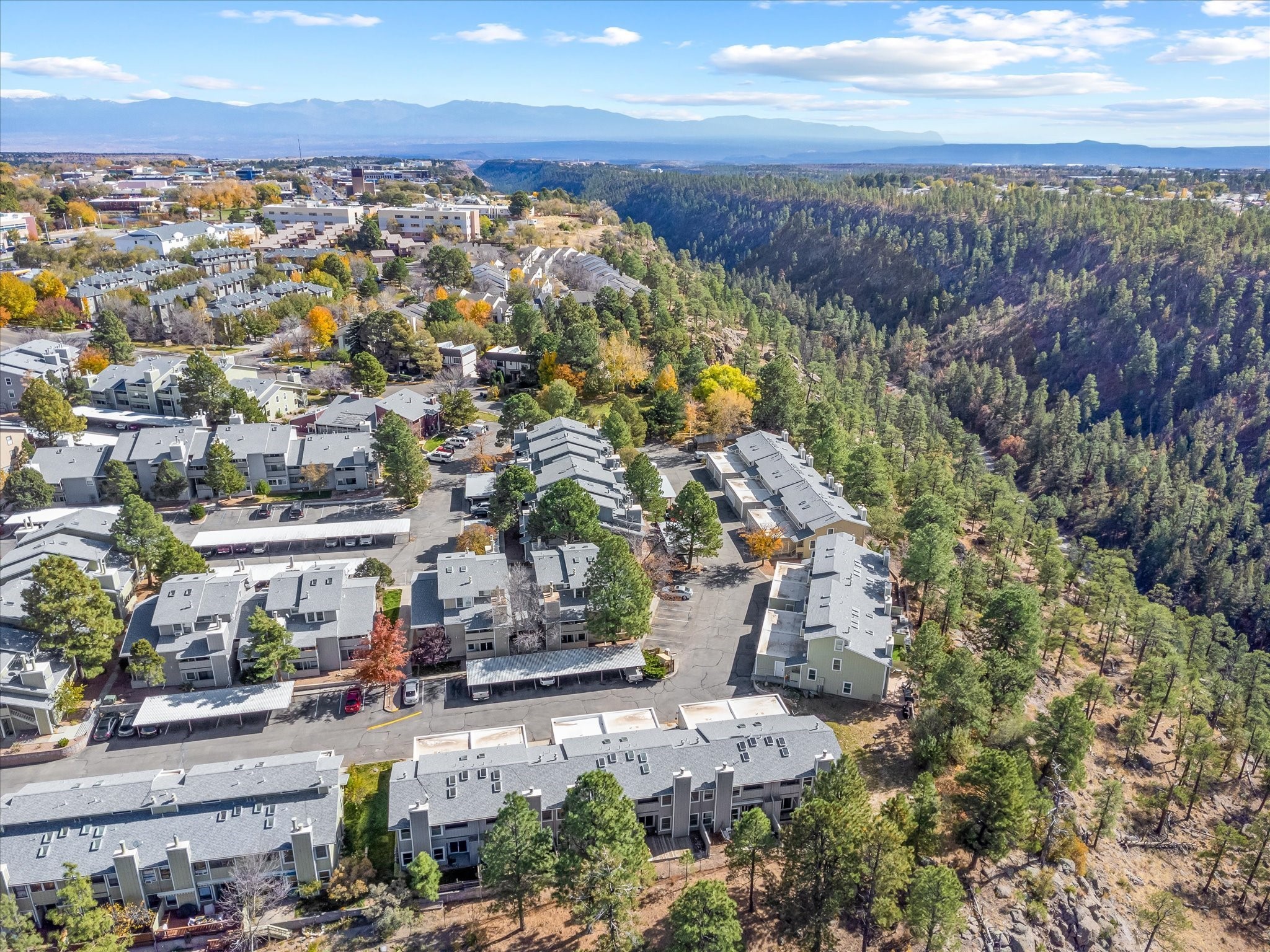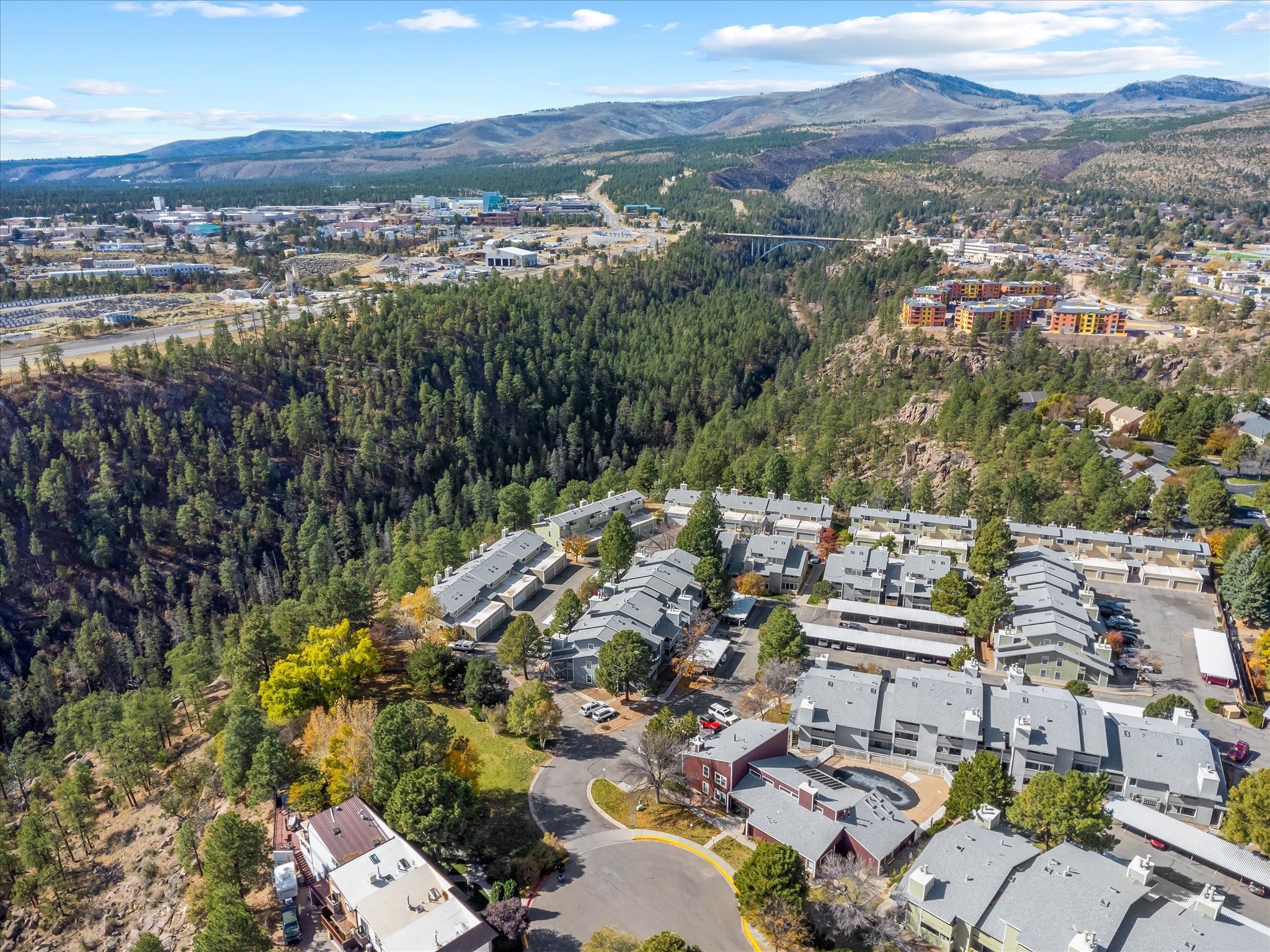 Welcome to 505 Oppenheimer Drive, Unit 511 - a charming 1-bedroom, 1-bathroom condominium situated on the lower level of the Ridge Park Luxury Condominiums in Los Alamos. This inviting unit has an open-concept layout, thoughtfully designed for both comfort and functionality. As you enter, you're greeted by a spacious living area filled with natural light, thanks to a full glass door that opens to a private porch - an ideal spot for relaxation.The adjacent dining area seamlessly connects to a partly enclosed kitchen, which is equipped with appliances. The kitchen has a granite countertop, dual sink, and ample cabinetry, providing plenty of storage space. A convenient laundry area with a washer and dryer is tucked within the kitchen for easy access.Just beyond the dining area, you'll find a cozy bedroom with its own glass door access to the porch, as well as a built-in cabinet for added storage. The bathroom is conveniently located next to the bedroom, completing this well-appointed layout.This unit enjoys a peaceful setting within the meticulously maintained Ridge Park community, which offers residents a host of amenities, including an outdoor pool, BBQ area, and clubhouse. With its blend of modern conveniences and community features, Unit 5115 offers a comfortable, stylish lifestyle in the heart of Los Alamos.