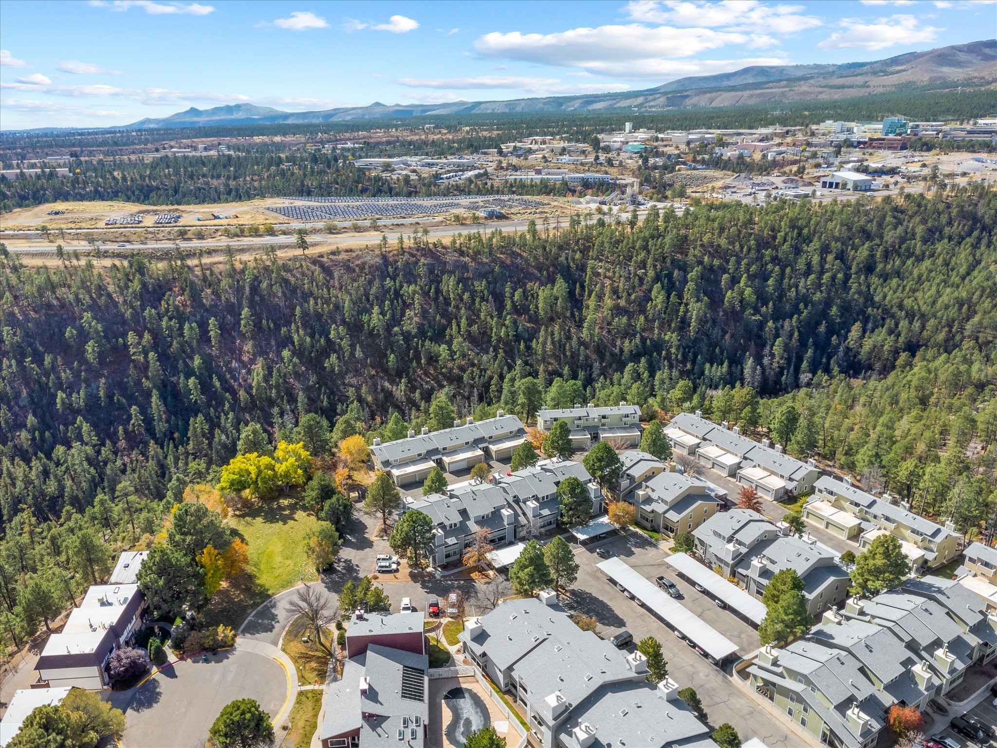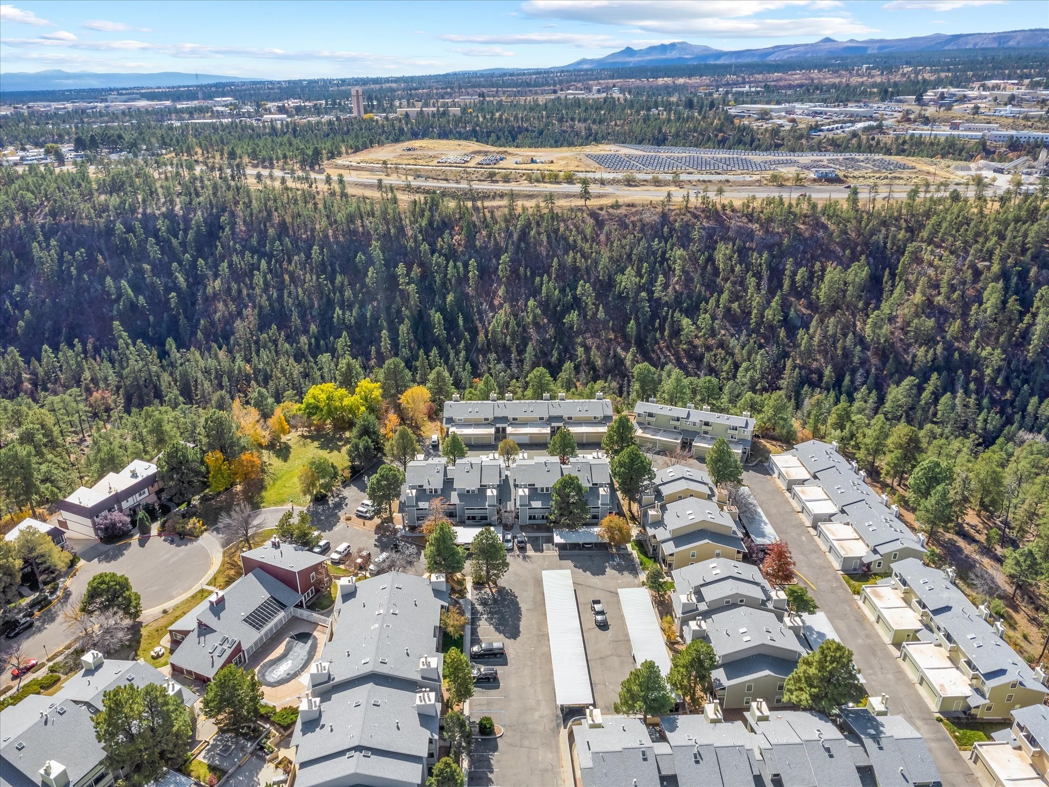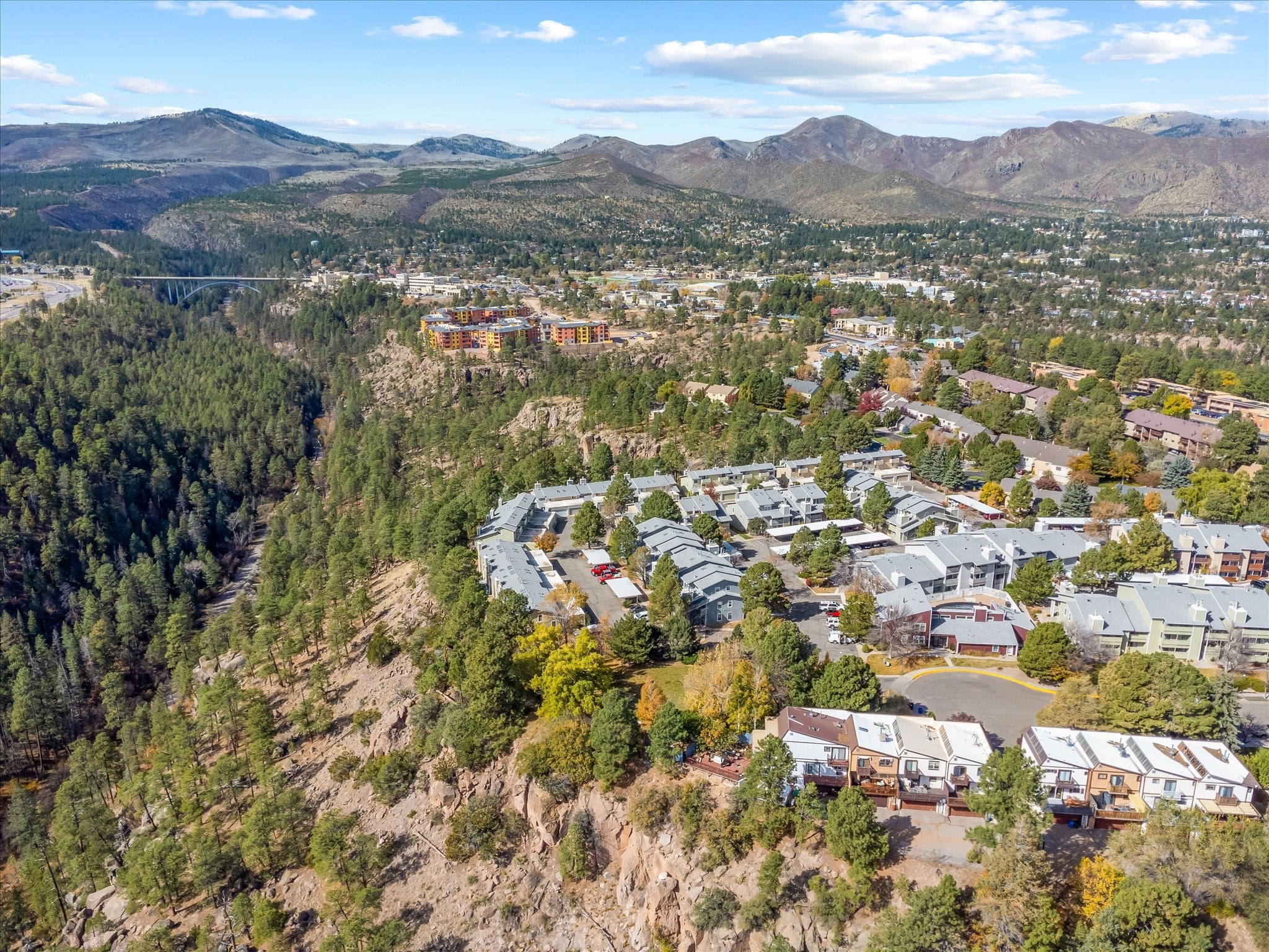 Welcome to 505 Oppenheimer Drive, Unit 511 - a charming 1-bedroom, 1-bathroom condominium situated on the lower level of the Ridge Park Luxury Condominiums in Los Alamos. This inviting unit has an open-concept layout, thoughtfully designed for both comfort and functionality. As you enter, you're greeted by a spacious living area filled with natural light, thanks to a full glass door that opens to a private porch - an ideal spot for relaxation.The adjacent dining area seamlessly connects to a partly enclosed kitchen, which is equipped with appliances. The kitchen has a granite countertop, dual sink, and ample cabinetry, providing plenty of storage space. A convenient laundry area with a washer and dryer is tucked within the kitchen for easy access.Just beyond the dining area, you'll find a cozy bedroom with its own glass door access to the porch, as well as a built-in cabinet for added storage. The bathroom is conveniently located next to the bedroom, completing this well-appointed layout.This unit enjoys a peaceful setting within the meticulously maintained Ridge Park community, which offers residents a host of amenities, including an outdoor pool, BBQ area, and clubhouse. With its blend of modern conveniences and community features, Unit 5115 offers a comfortable, stylish lifestyle in the heart of Los Alamos.
