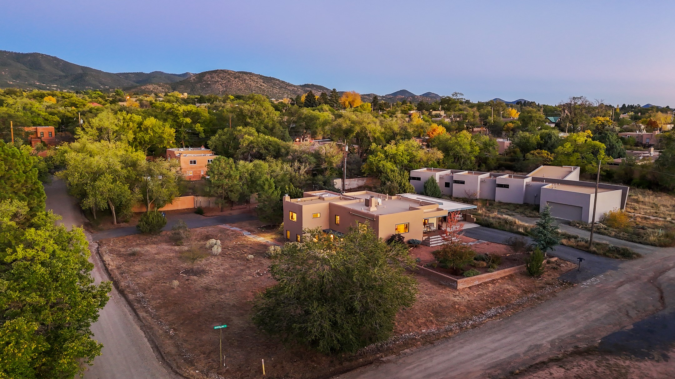 Beautifully remodeled Soft Contemporary House and guest house in the Historic South Capital neighborhood. Sited on a generous half acre lot, this home is only a short 15-minute walk to the historic Santa Fe Plaza, the Railyard district, downtown restaurants, stores, and hiking trails. This unique layout presents multiple living options, incorporating a total of 4 bedrooms and 4 baths. The main house is approximately 2134 sq ft 3 bed/2 bath, plus an attached 1159 sq. ft 1 bed/ 2 bath guest house. Finishes include original oak flooring, plastered walls and arches throughout, quartz countertops, and stainless-steel appliances. A large primary suite has a sitting area, fireplace, and direct access to a wraparound deck. Additionally, there is a large, fenced backyard and two separate private driveway entrances for the House and guest house. There is also ample open outside spaces with park-like potential to create your own personal oasis. The guest house features a stunning remodeled full kitchen, a fireplace, a living/dining area, a flex room, one large ensuite bedroom plus an additional 3/4 bath. The next owner can also choose to re-connect the main and guest house creating a large single-family 4bed/4bath home with its own private guest wing or Mother-law quarters.
