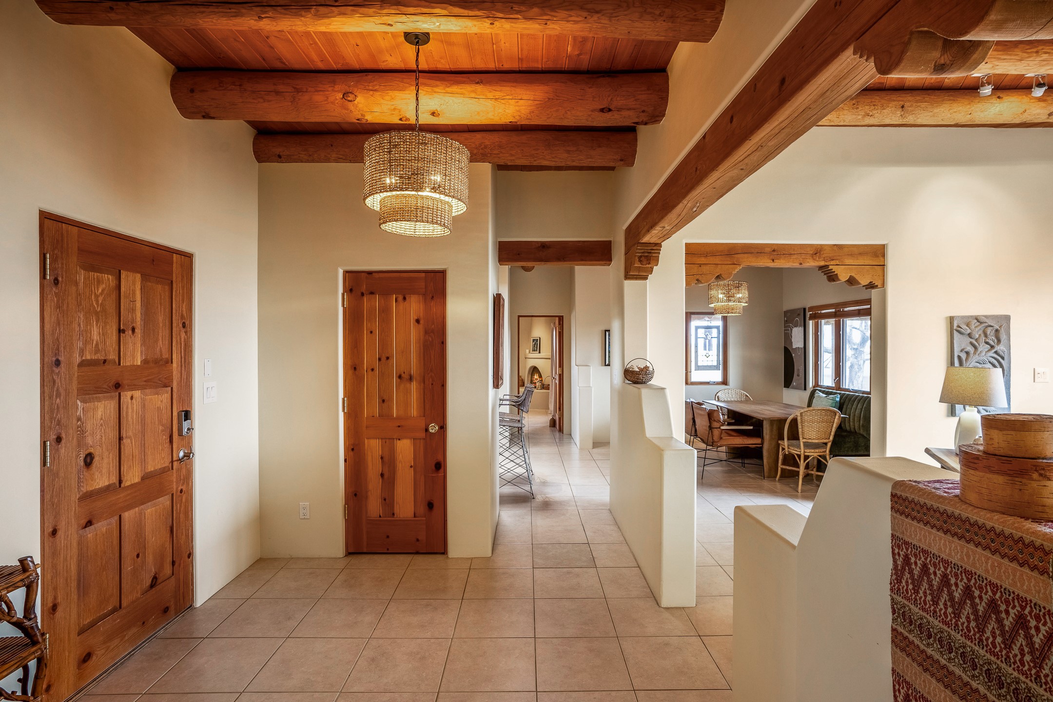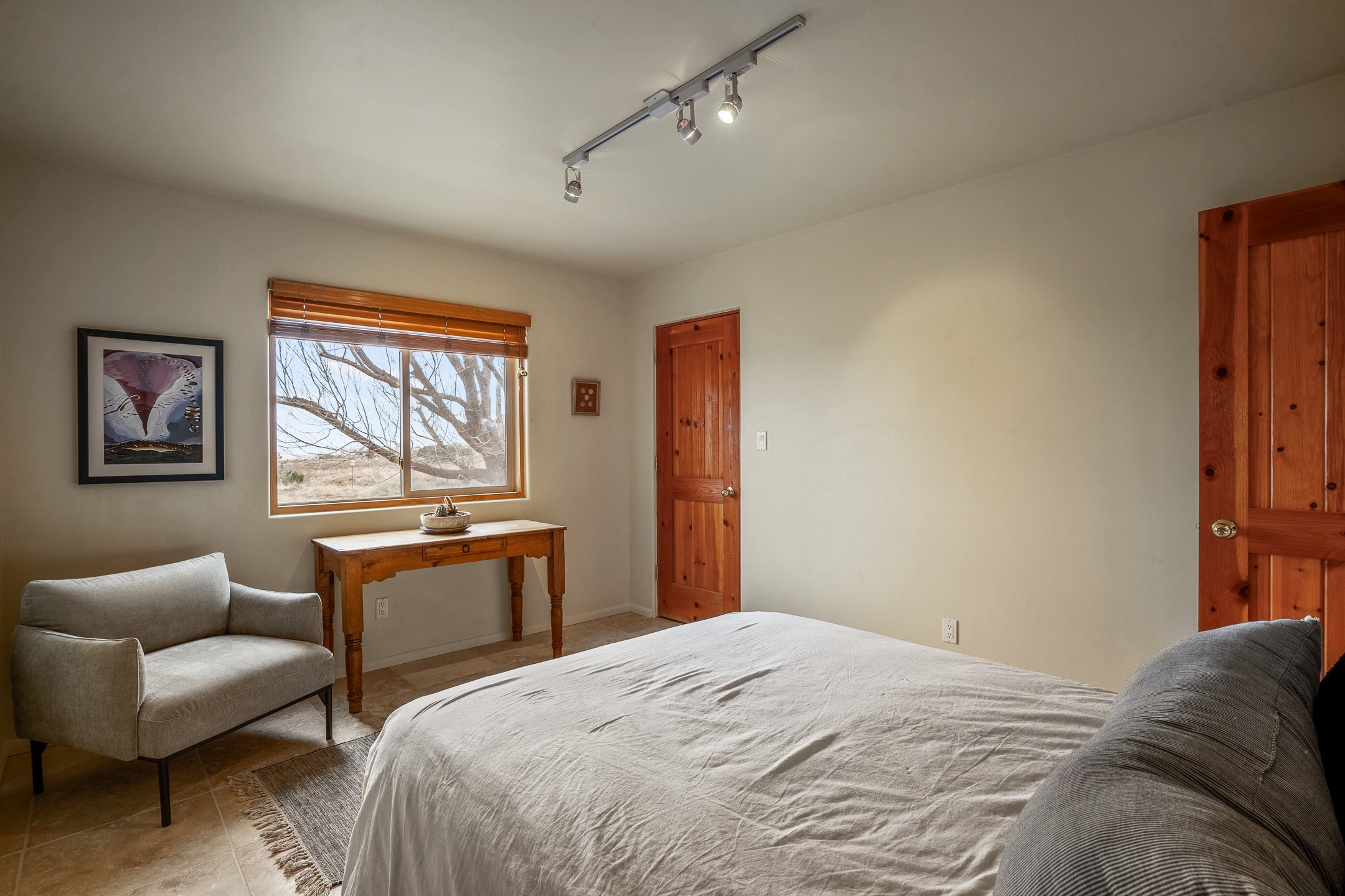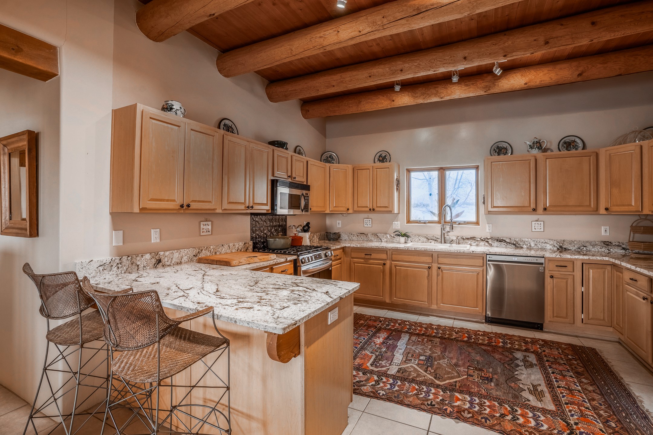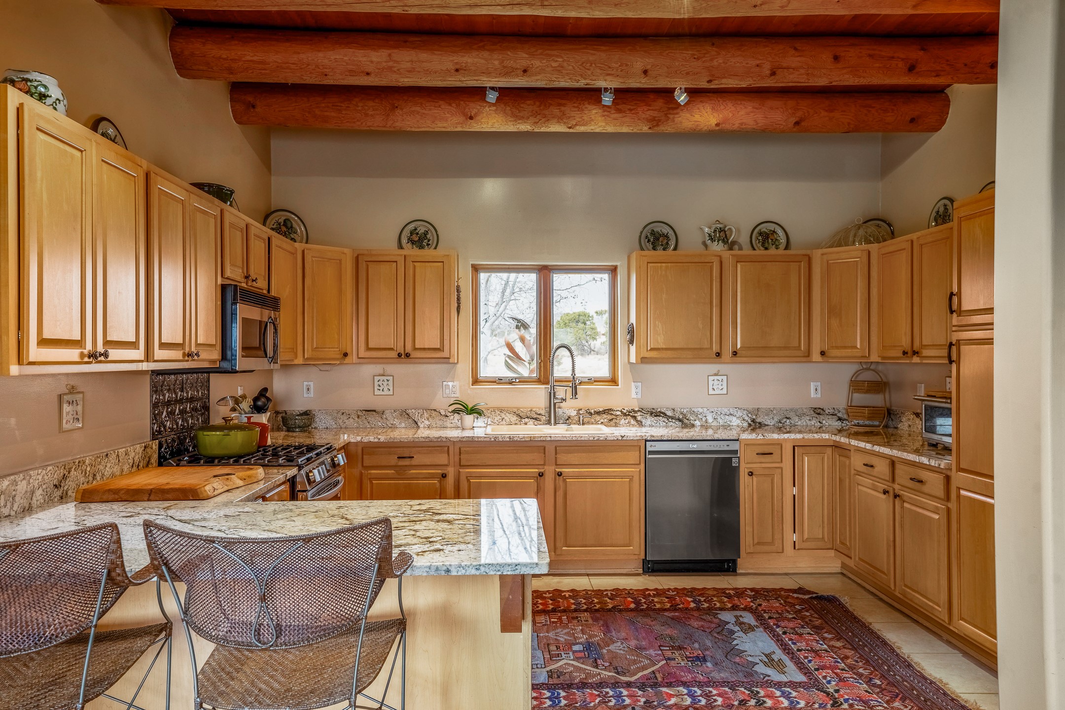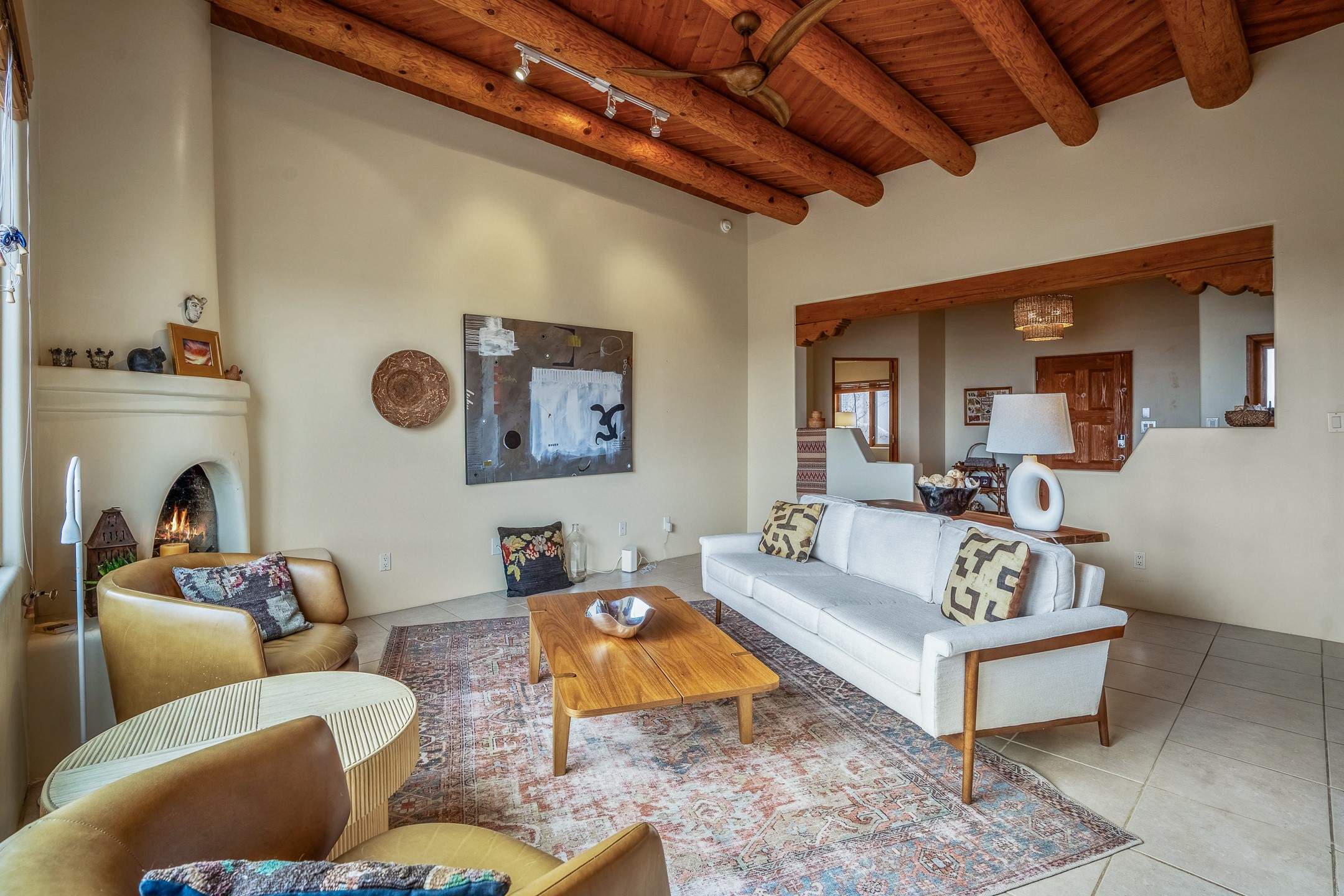 Experience the perfect blend of elegance, comfort, and breathtaking views in this stunning 4 bedroom, 2 bath home, set on a premier 6.85 acre lot in the sought after La Paz at Eldorado. Overlooking the Ortiz and Sandia mountains, this residence offers a peaceful retreat with unparalleled New Mexico sunrises and sunsets. Step inside to a light-filled living area featuring high ceilings, vigas, and a charming kiva fireplace. The well-appointed kitchen boasts stainless steel appliances, granite countertops, and an inviting dining area. The spacious primary suite is a private sanctuary, complete with its own kiva fireplace, a luxurious bath with a soaking tub and walk-in shower, a California closet system, and French doors leading to the serene rear courtyard. The three additional bedrooms provide versatility and ample space, with one currently serving as the Seller's inspiring art studio. Outdoor, a covered patio, pergola, and walled courtyard create an intimate setting for relaxation or entertaining, seamlessly extending your living space into the natural beauty of Northern New Mexico. This exceptional home offers the best of Santa Fe living. https://38-carissa-road.robyntyra.com