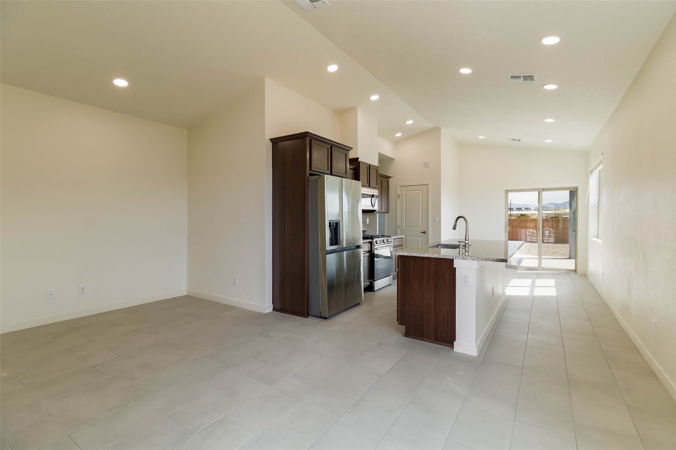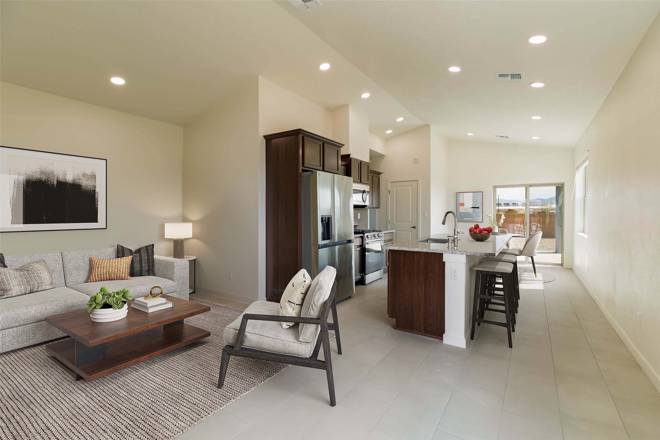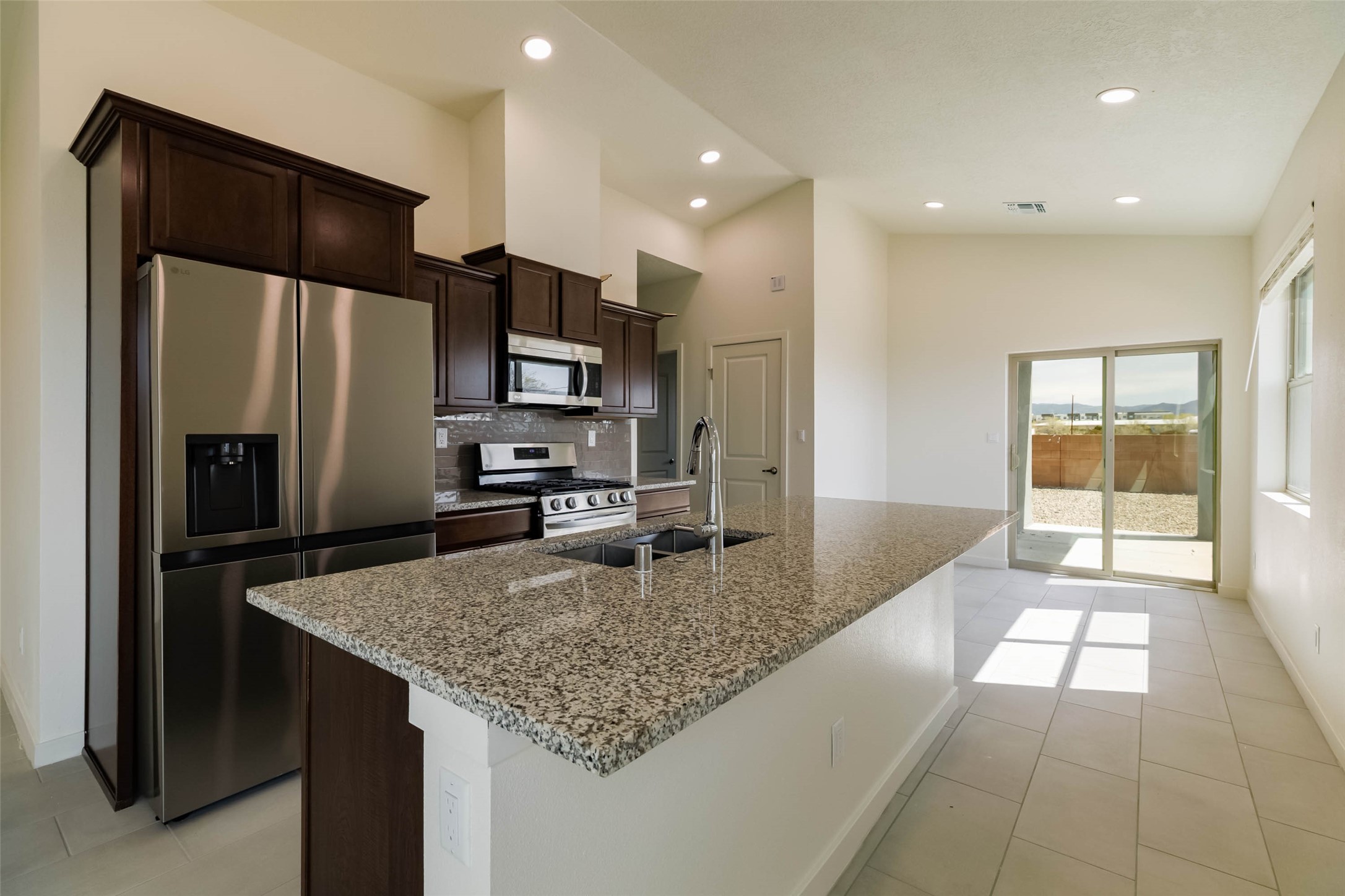 Great new home ready for the holidays in the new community of Geo Park. Really special floorplan features 3 bedrooms 2 baths + 2 car garage. Separate utility room. Vaulted ceiling in Living/dining/kitchen area gives this compact home a lot of volume and airiness. 13" ceiling in vaulted area and 9' ceilings in bedrooms, baths, entry, utility room. Separate pantry and spacious island in kitchen which has slider glass doors accessing back patio. Solid granite counter tops in kitchen with backsplash. Elegant 2 panel doors throughout. Flat panel birch cabinets. Owner's suite has walk-in closet. Ceramic tile in kitchen, entry, laundry room, dining area, living area, and bathrooms. Energy effiicient - NM Build Green Gold Level. Low E-dual pane windows with cam locks. Programmable thermostat, full foam infiltration pkg, 95% energy efficient gas furnace, and more. Recessed LED disc lighting. Garage door opener. Home is warranted through 2-10 Limited 10-yr Warranty AND exclusive Builder 1-year warranty. Come visit our furnished model. See agent remarks for Buyer Incentives!!