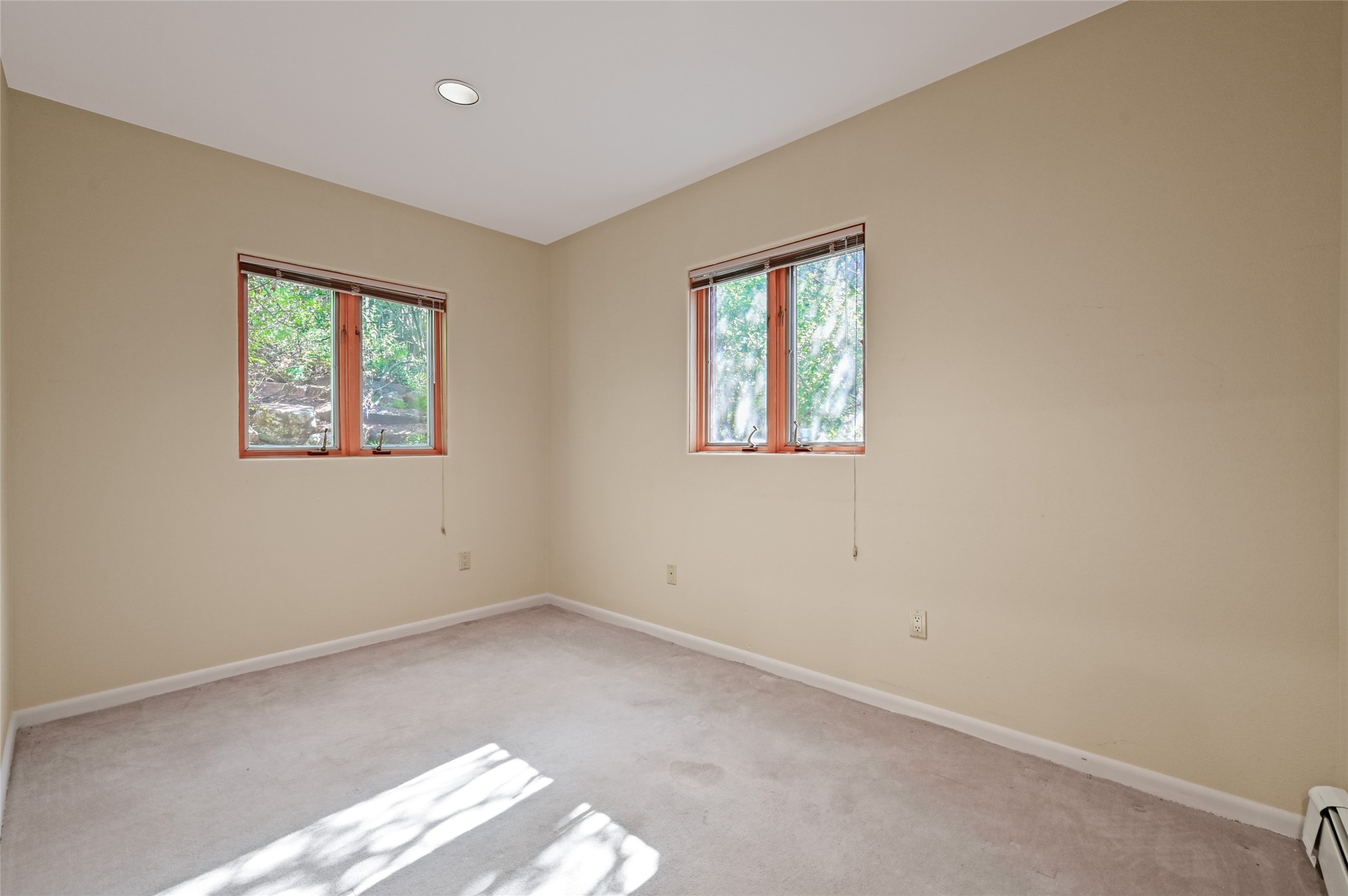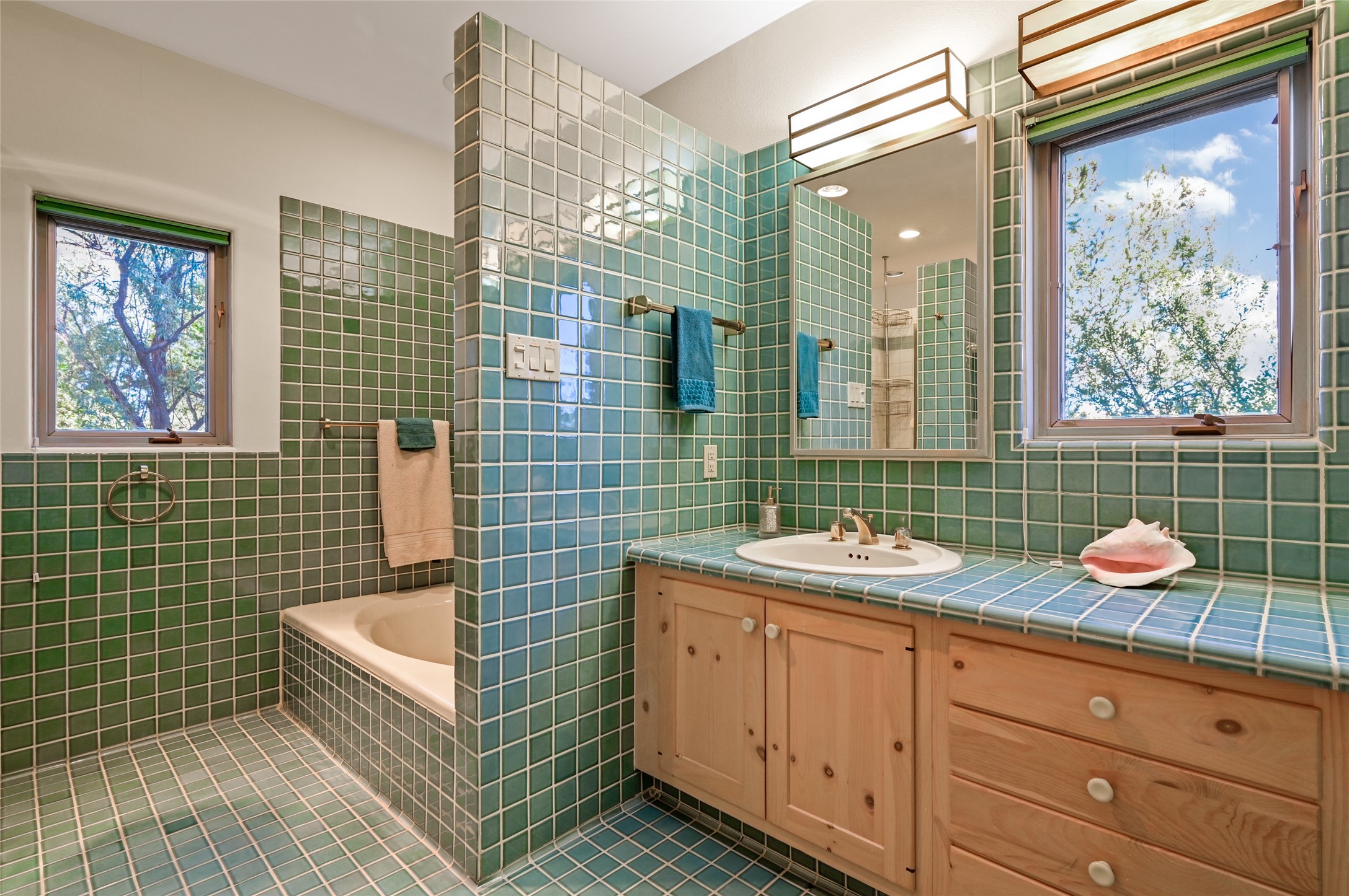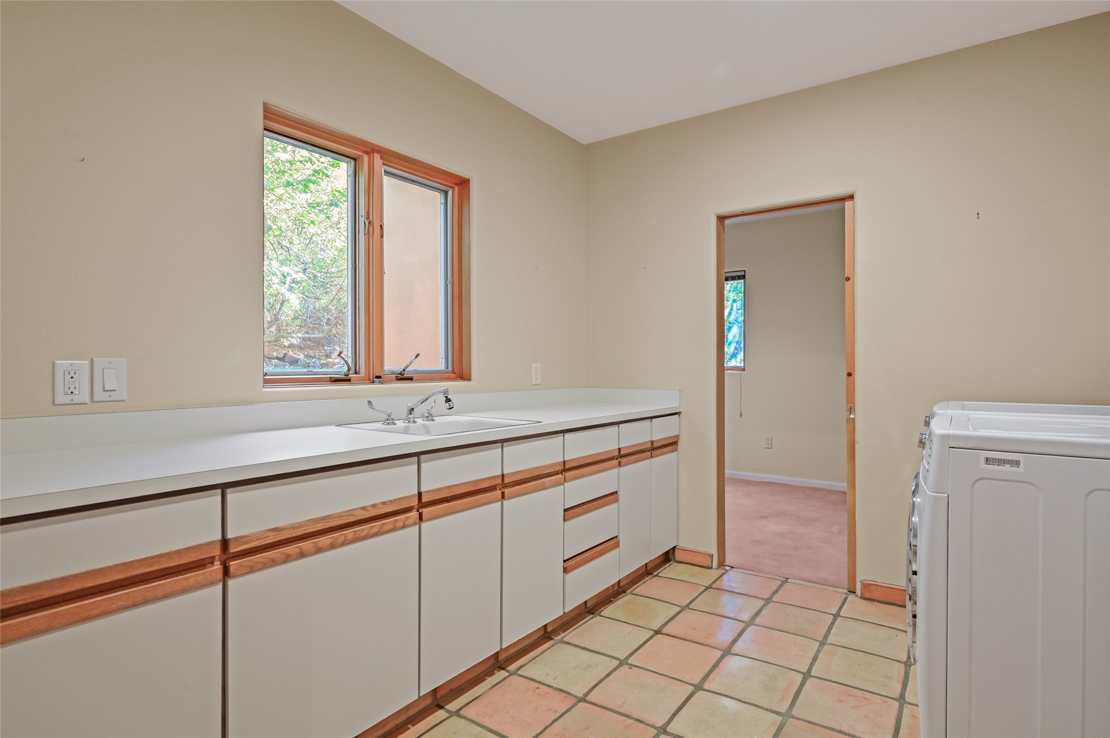 This oasis of a home is located close to downtown but far enough that you feel like you are at a private retreat. With multiple living areas inside and outside, this house can be a quiet space or offer an entertaining opportunity. With soaring ceilings, (some with tongue and groove, some with beams), plaster walls, saltillo tile, granite counters, fireplaces, and windows allowing the outside in throughout, this home is one to see and claim as your own. The outdoor spaces offer views, quiet time options and areas to enjoy family and friends throughout many of the months in Santa Fe. The upper level has an extra bedroom and a bonus room that currently operates as a workout room. Storage options abound throughout the house. From the kitchen window, you can watch the flowing fountain while you create that gourmet meal. The property is gated and has parking for at least 3 outside of the garages. Come and see it for yourself and you won't want to leave.