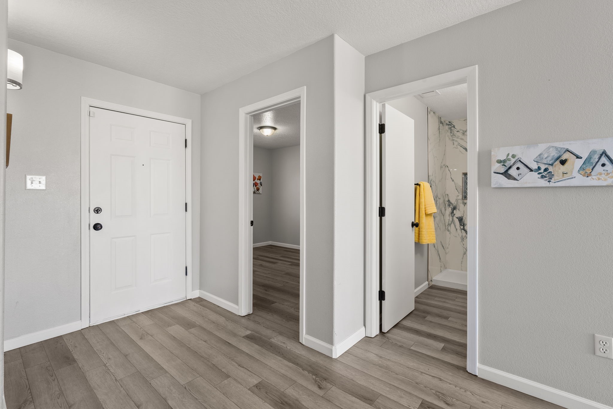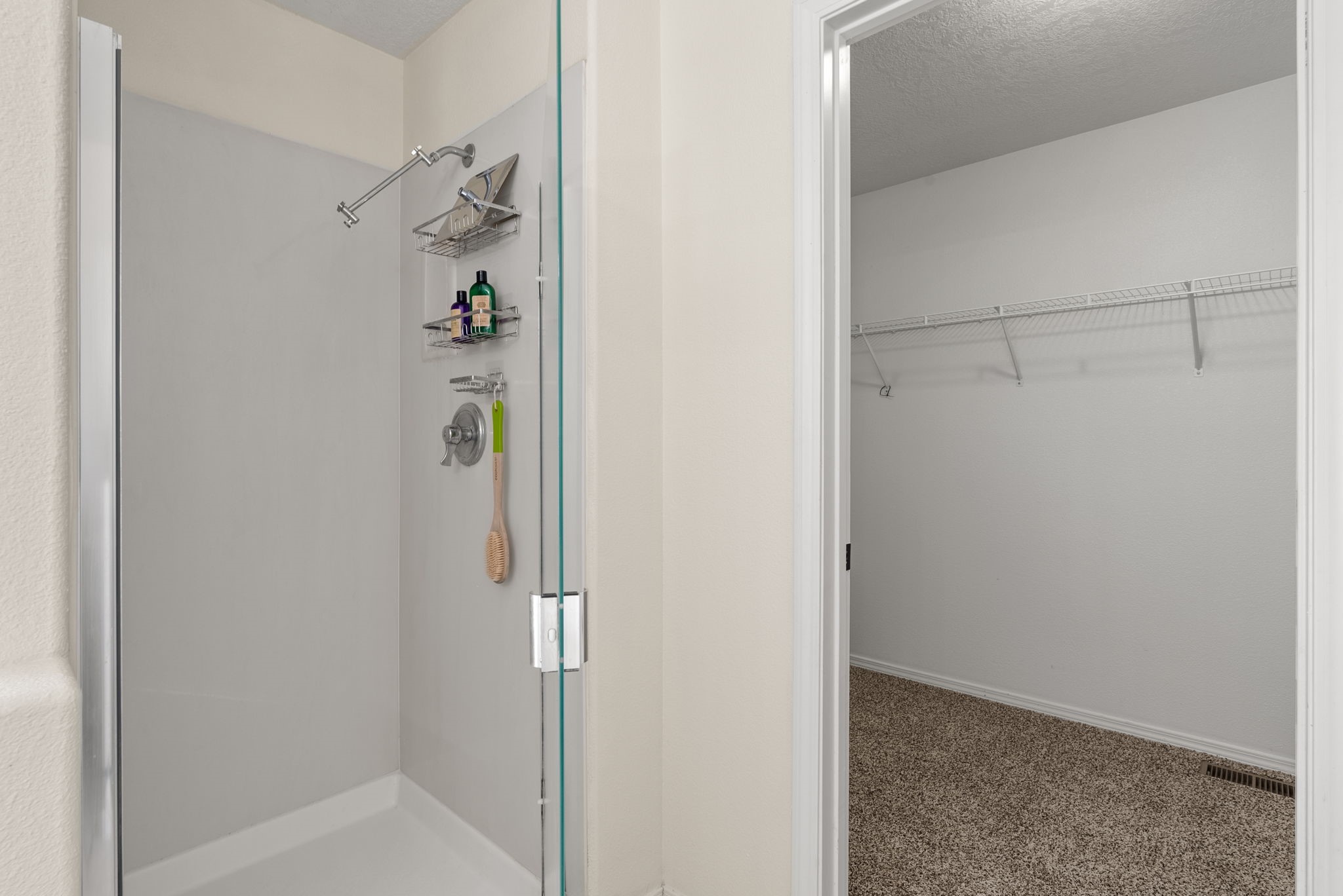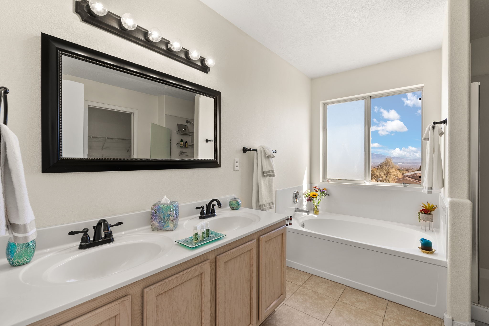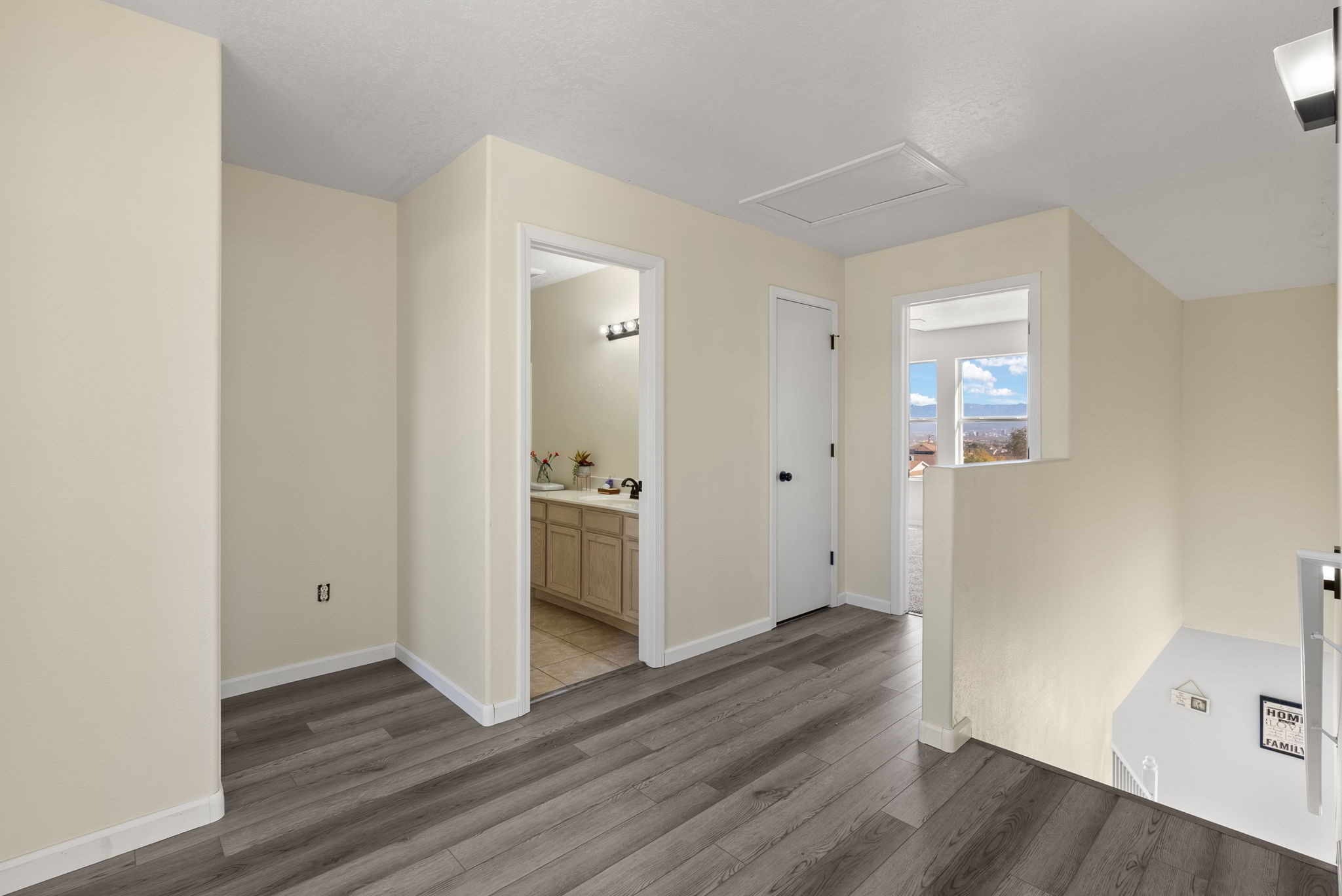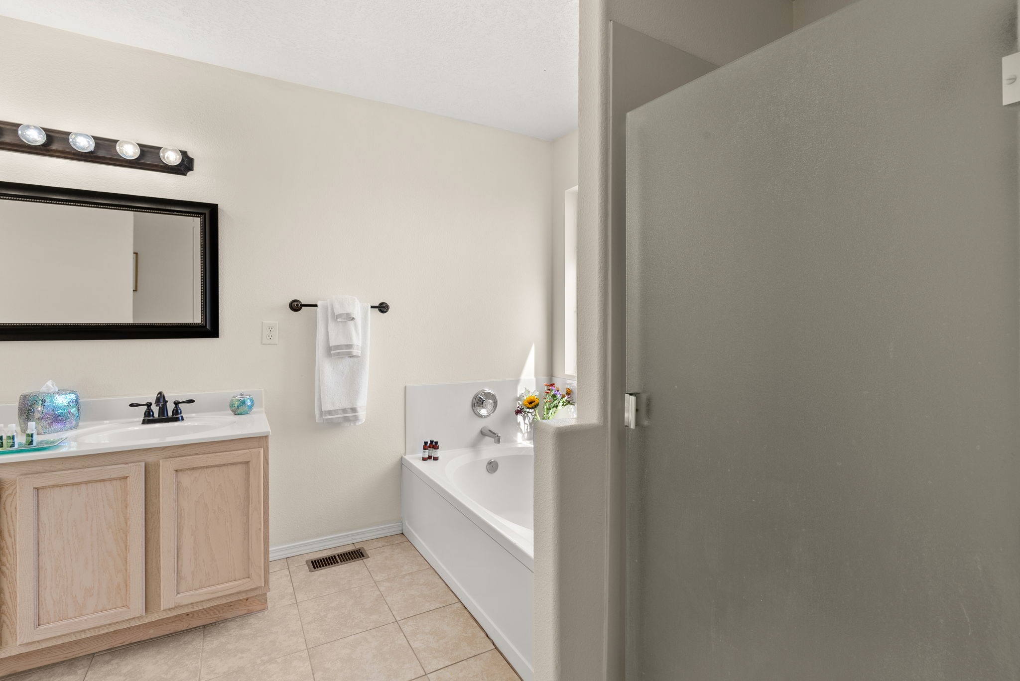 Discover this stunning move-in-ready 2-story home in Albuquerque's desirable area, perfect for entertaining or large family living. This 4-bedroom, 3-bathroom, 2,125 sq. ft. home features an open floor plan that seamlessly combines functionality and style. Enjoy newer flooring, upgraded lighting, and refrigerated air installed in 2022. The kitchen shines with all newer appliances, complemented by stylish new blinds throughout. Ceiling fans in all bedrooms and a unique "Harry Potter Storage" space add charm and comfort. Relax in the fully fenced corner lot, offering plenty of privacy. Take in the scenic views from this well-situated property. The insulated crawl space enhances energy efficiency, while proximity to the interstate ensures effortless commuting. Nearby restaurants and conveniences complete this incredible offering.