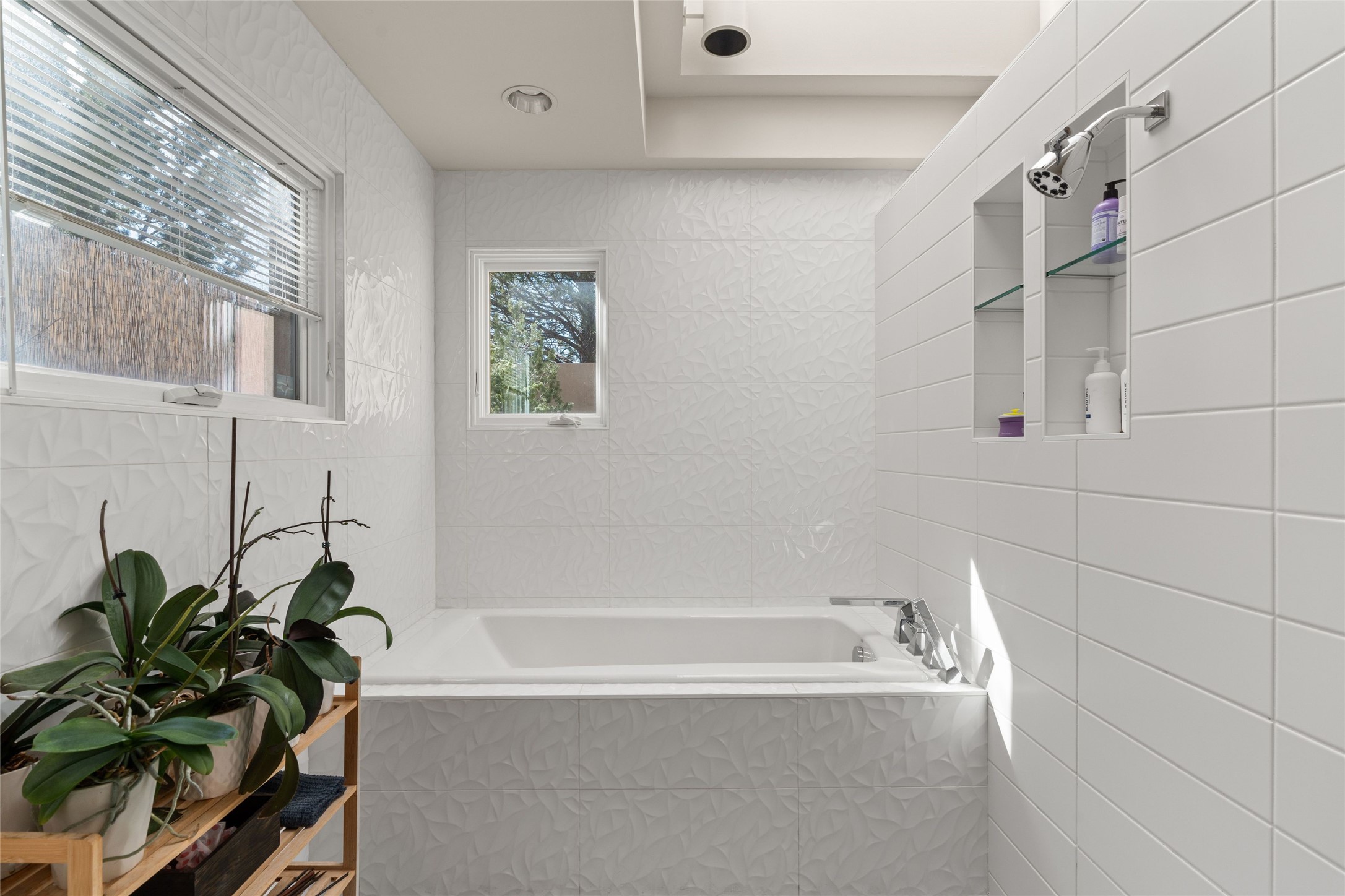 Remarkable. To be on Old Santa Fe Trail with majestic, panoramic views overlooking dedicated open space towards the Sangre de Cristo Mountains in a one-level, light filled Contemporary Masterpiece that had a major renovations done in 2021 is a singular opportunity. The home features a gleaming new kitchen, spectacular new baths in the main suites, expansive open spaces and your own private resort in the backyard. The current owners lovingly and intelligently renovated and elevated this bright, open space that lets the outside in - from the views to the private backyard featuring koi pond, plunge pool, fire pit and gazebo. - this home surprises on every level. The kitchen/living room arrangement now flows to match today's lifestyle and provides a wonderful backdrop for art lovers as well as a grand entertaining space. The large, totally renovated kitchen has a 16' island with Wolf/Sub Zero appliances, including an induction cooktop and steam oven. The new butler pantry provides additional storage, a freezer, second oven, and second microwave. A chef's kitchen perfect for entertaining. The library off the primary bedroom, along with an attached bedroom or workout space and additional bath - make for a private suite area that is comfortable for day-to-day living.The extraordinary north area with 2nd primary suite, is rare to say the least. The area, with one of Santa Fe's great media rooms, has soaring ceiling height, great walls for the largest flat screens, and walls of glass that frame the magnificent views of the rear of the property and the Sangres. The next space in the north section of the house functions as a ceramics studio for the current owners, but could be a command-central home office sharing the attributes of the media room as well or an extended master closet. The great primary suite with views and volume, is cloistered away from the rest of the home for privacy and quiet and is serviced by a brand new bathroom. The attached guest quarters is ideal for many living situations, maintaining privacy and comfort. One cannot overestimate the convenience of being close-in Old Santa Fe Trail and the ability to enjoy downtown Santa Fe on a moment's notice. All in all, this is one of the most extraordinary offerings in the entire Santa Fe marketplace with views of the Sangre's that can never be obstructed.