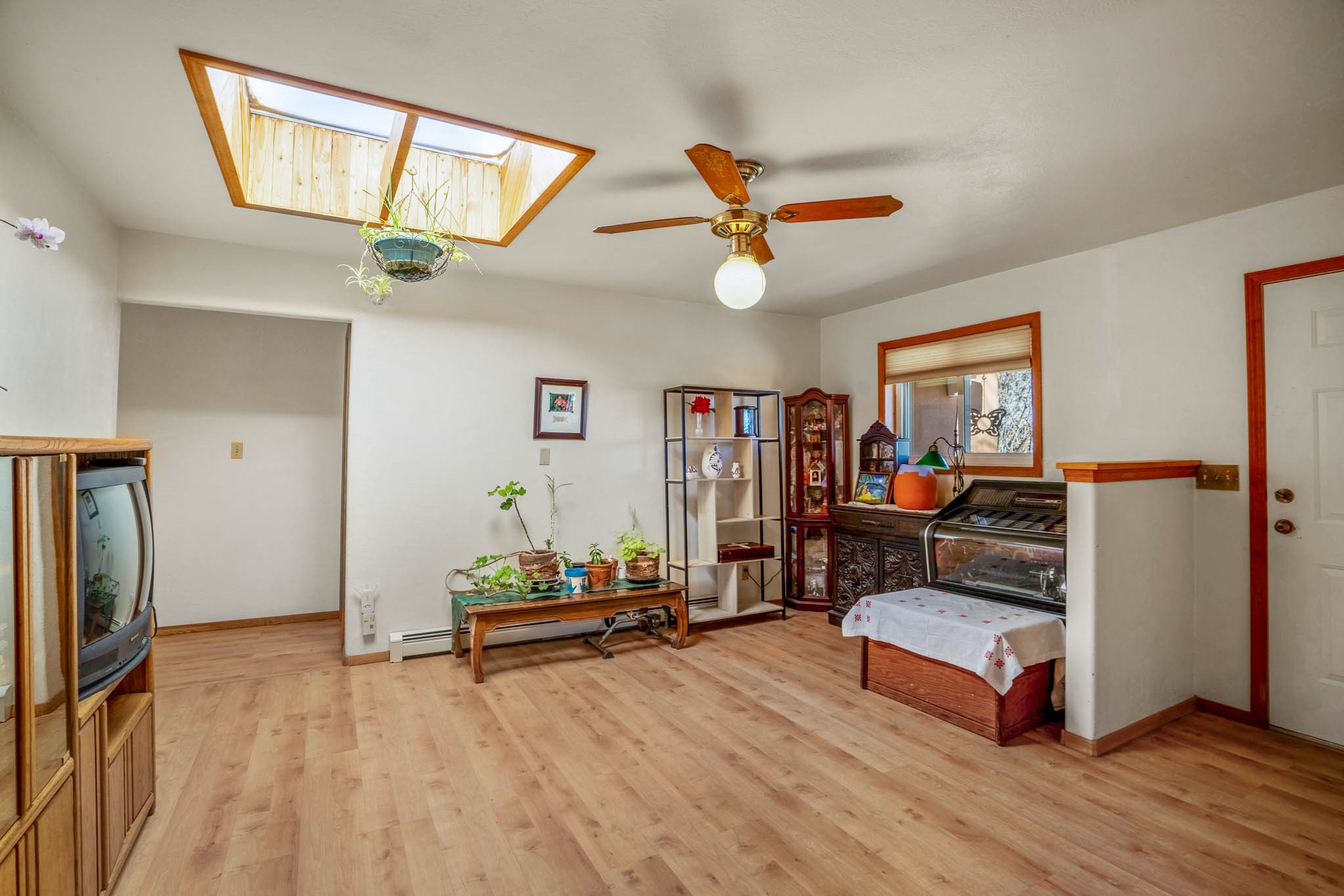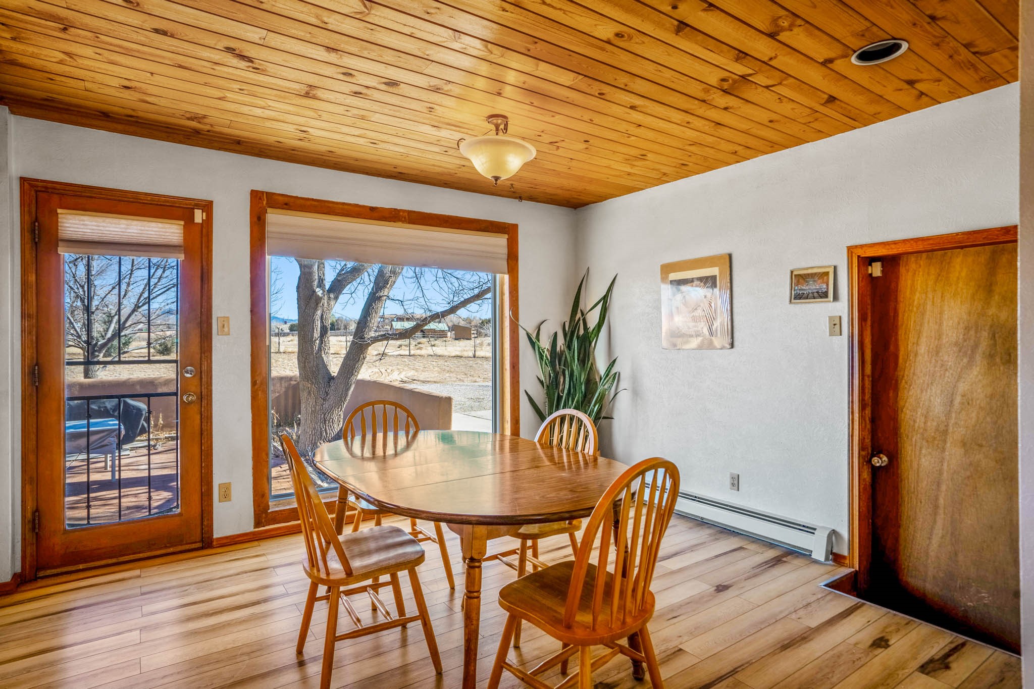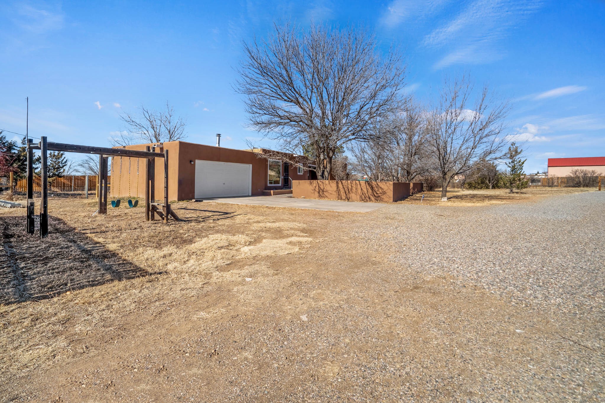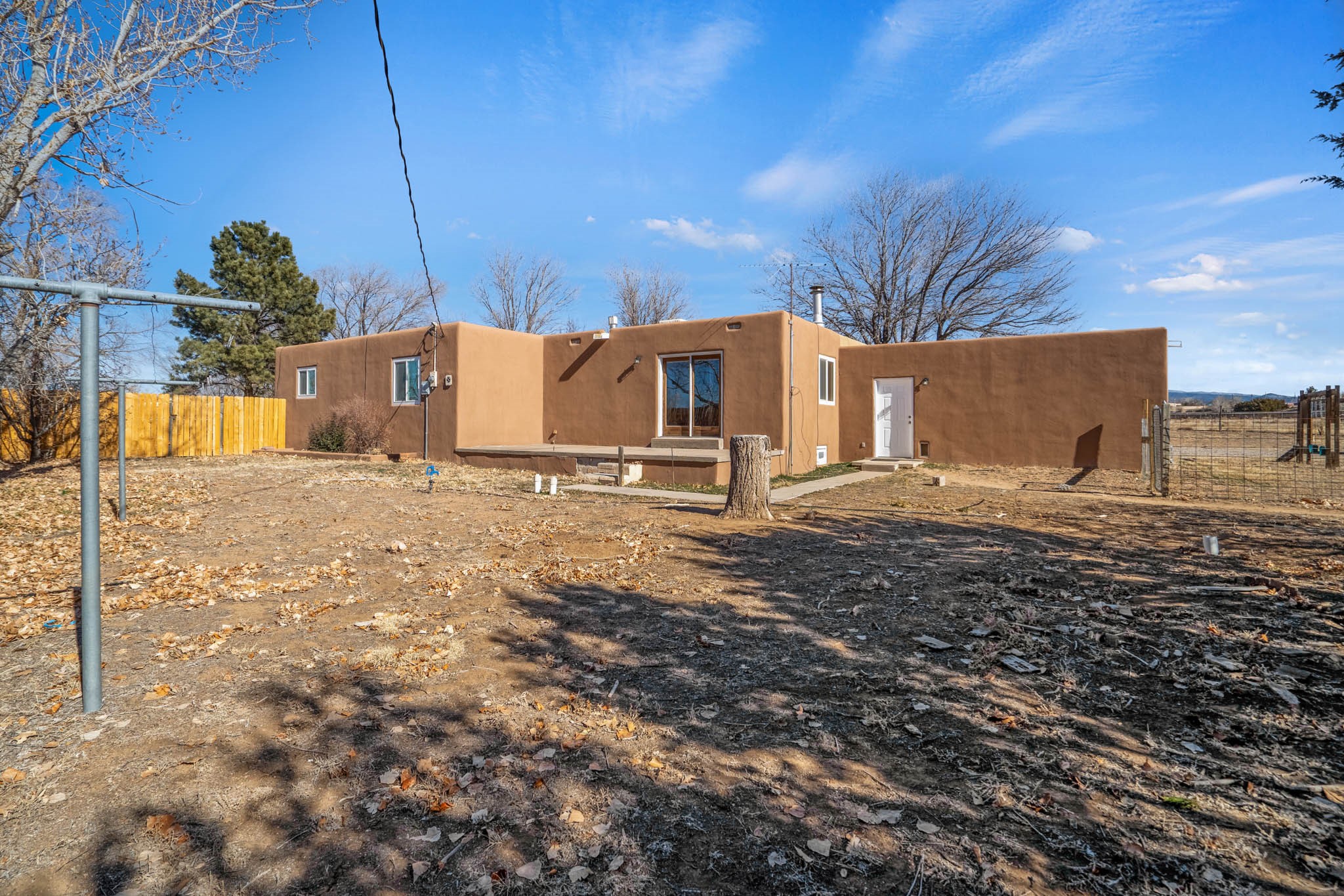 Welcome to your country home on the outskirts of Santa Fe. This charming property offers just over 2,000 square feet of living space, featuring 4 bedrooms, 3 bathrooms, and two living areas (or living area and flex space) that provide plenty of room to relax and entertain. A 2-car garage offers convenient parking, while the approx. 1000 sqft detached, heated garage--previously used as a workshop--adds extra versatility for hobbies or storage.Situated on 3 beautiful acres, the property is surrounded by mature shade trees, creating a peaceful atmosphere with distant mountain views. The stables provide an excellent opportunity for horse lovers or those looking for additional outdoor space. Recent updates in the past four years include a newer bitumen roof, 2-inch insulation foam installed around the house and garage, fresh plaster and stucco applied to the house, garage, and perimeter wall, and new Pella windows. The home also features a new boiler and water heater, vinyl flooring in the kitchen, and a newly installed dog-eared fence in the backyard, offering privacy and security.Conveniently located just minutes from I-25, 599, and Highway 14, this home provides easy access to nearby a hospital, schools, shopping and dining options, making it the perfect blend of country charm and modern convenience.For sale only, no leases.