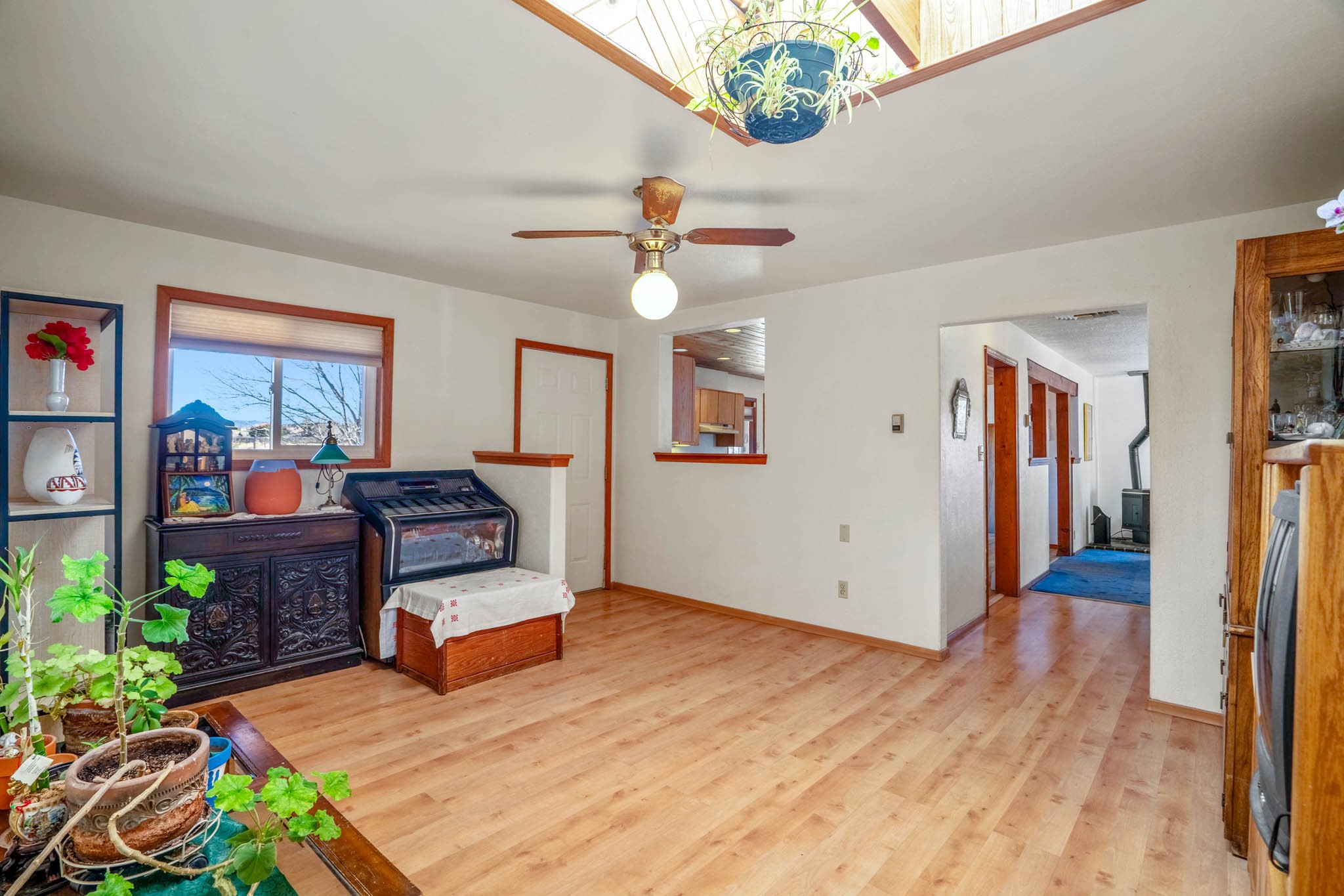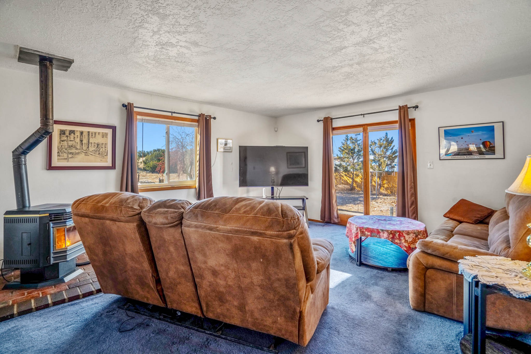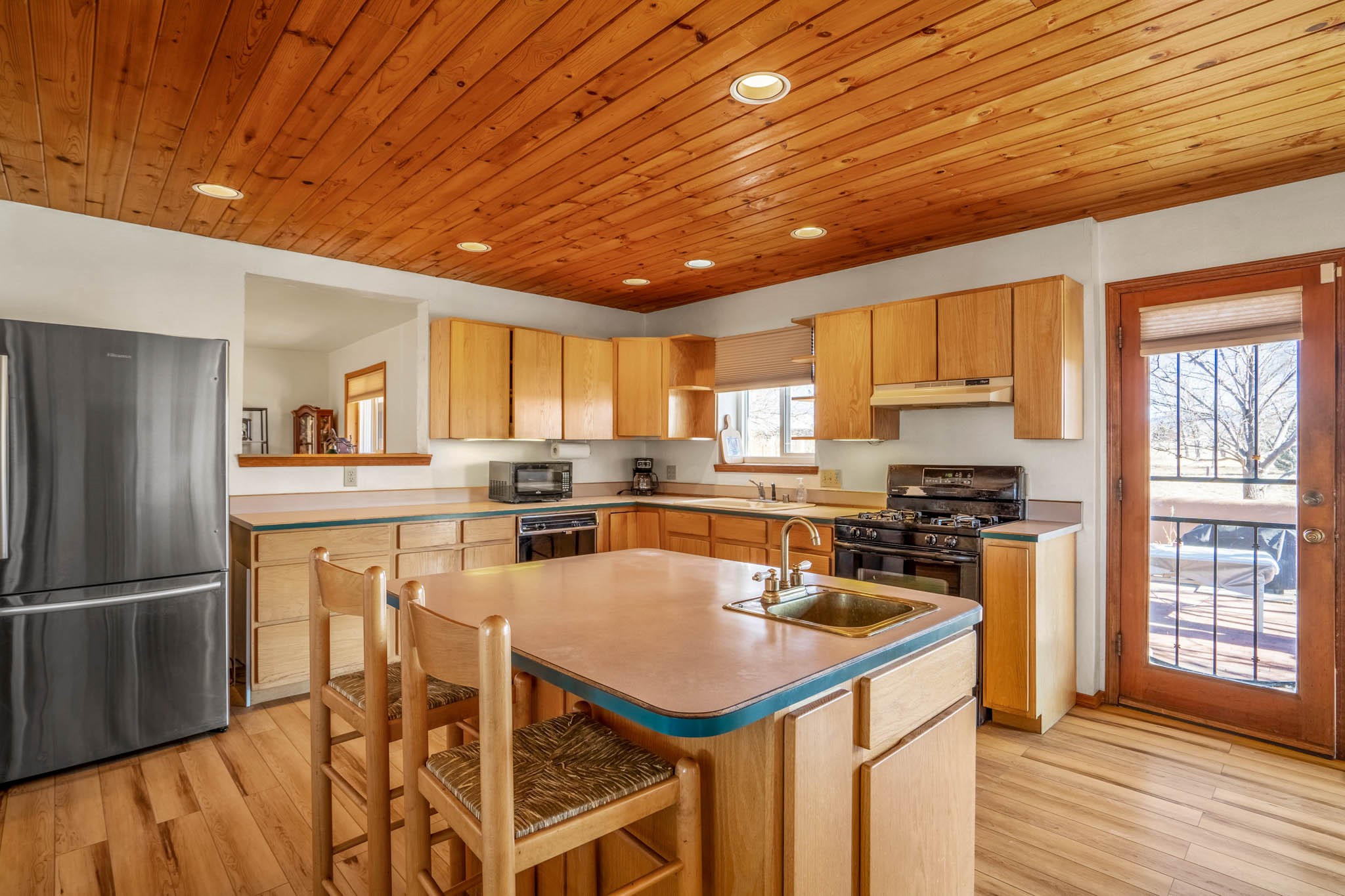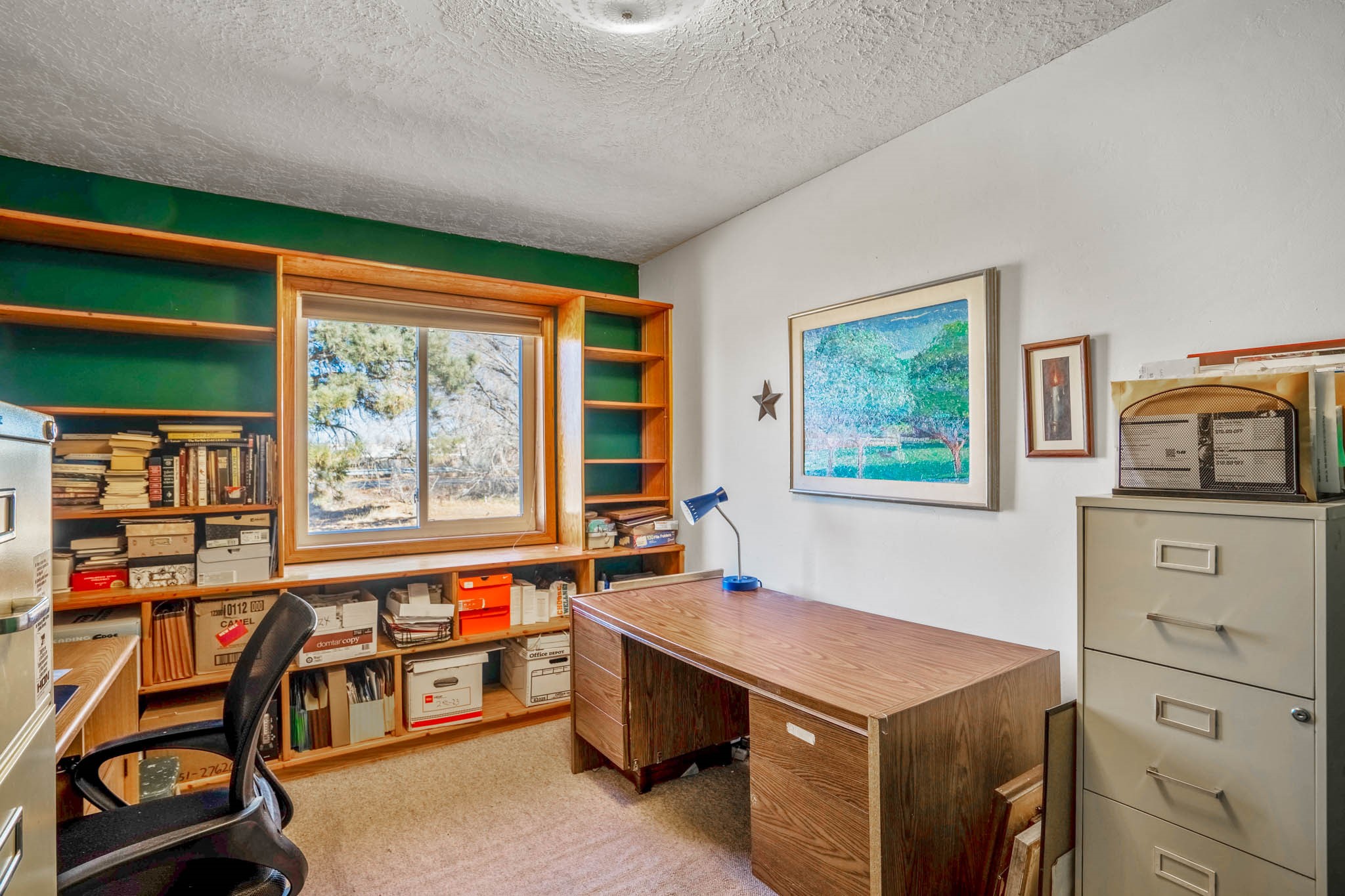 Welcome to your country home on the outskirts of Santa Fe. This charming property offers just over 2,000 square feet of living space, featuring 4 bedrooms, 3 bathrooms, and two living areas (or living area and flex space) that provide plenty of room to relax and entertain. A 2-car garage offers convenient parking, while the approx. 1000 sqft detached, heated garage--previously used as a workshop--adds extra versatility for hobbies or storage.Situated on 3 beautiful acres, the property is surrounded by mature shade trees, creating a peaceful atmosphere with distant mountain views. The stables provide an excellent opportunity for horse lovers or those looking for additional outdoor space. Recent updates in the past four years include a newer bitumen roof, 2-inch insulation foam installed around the house and garage, fresh plaster and stucco applied to the house, garage, and perimeter wall, and new Pella windows. The home also features a new boiler and water heater, vinyl flooring in the kitchen, and a newly installed dog-eared fence in the backyard, offering privacy and security.Conveniently located just minutes from I-25, 599, and Highway 14, this home provides easy access to nearby a hospital, schools, shopping and dining options, making it the perfect blend of country charm and modern convenience.For sale only, no leases.