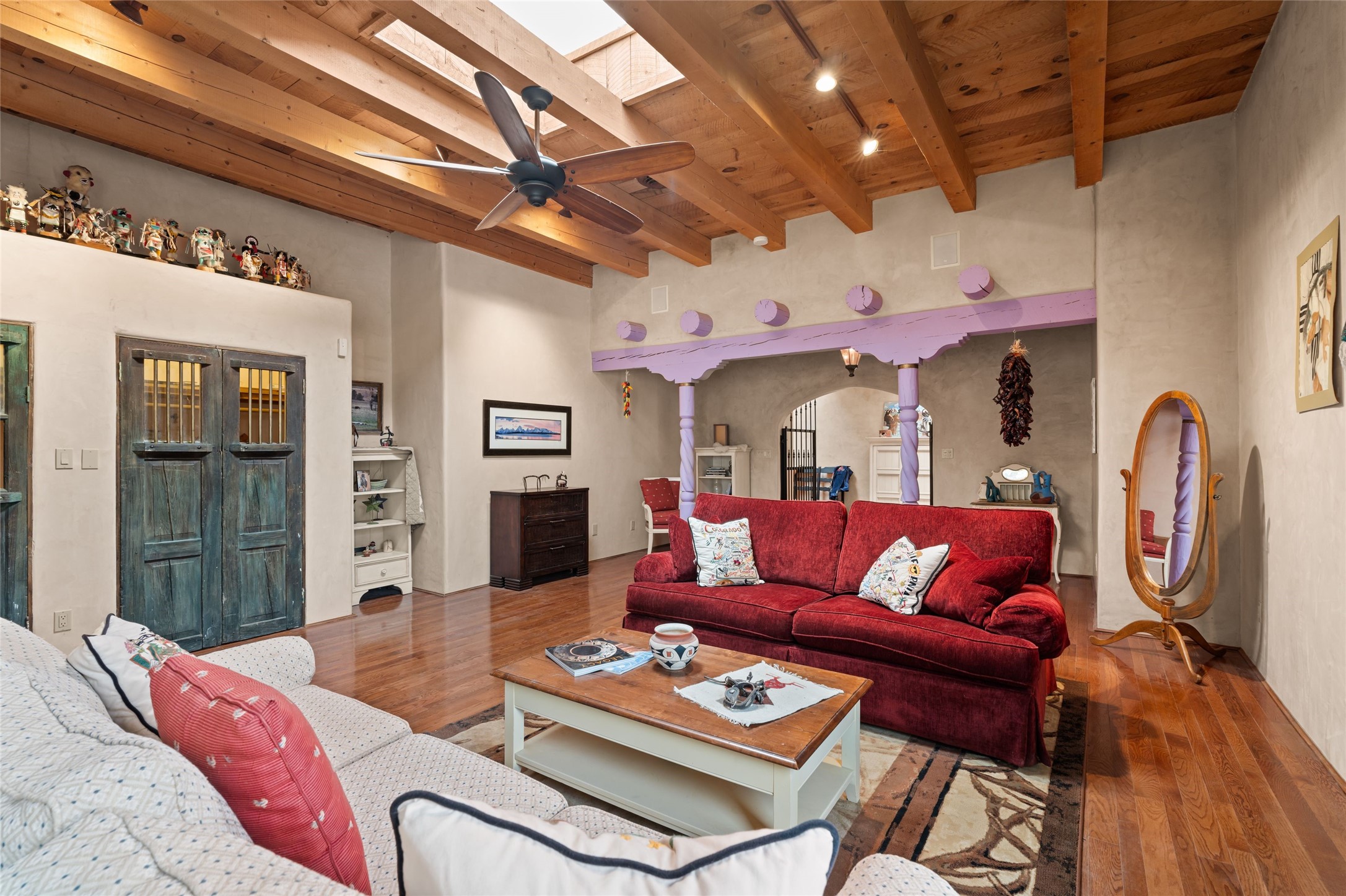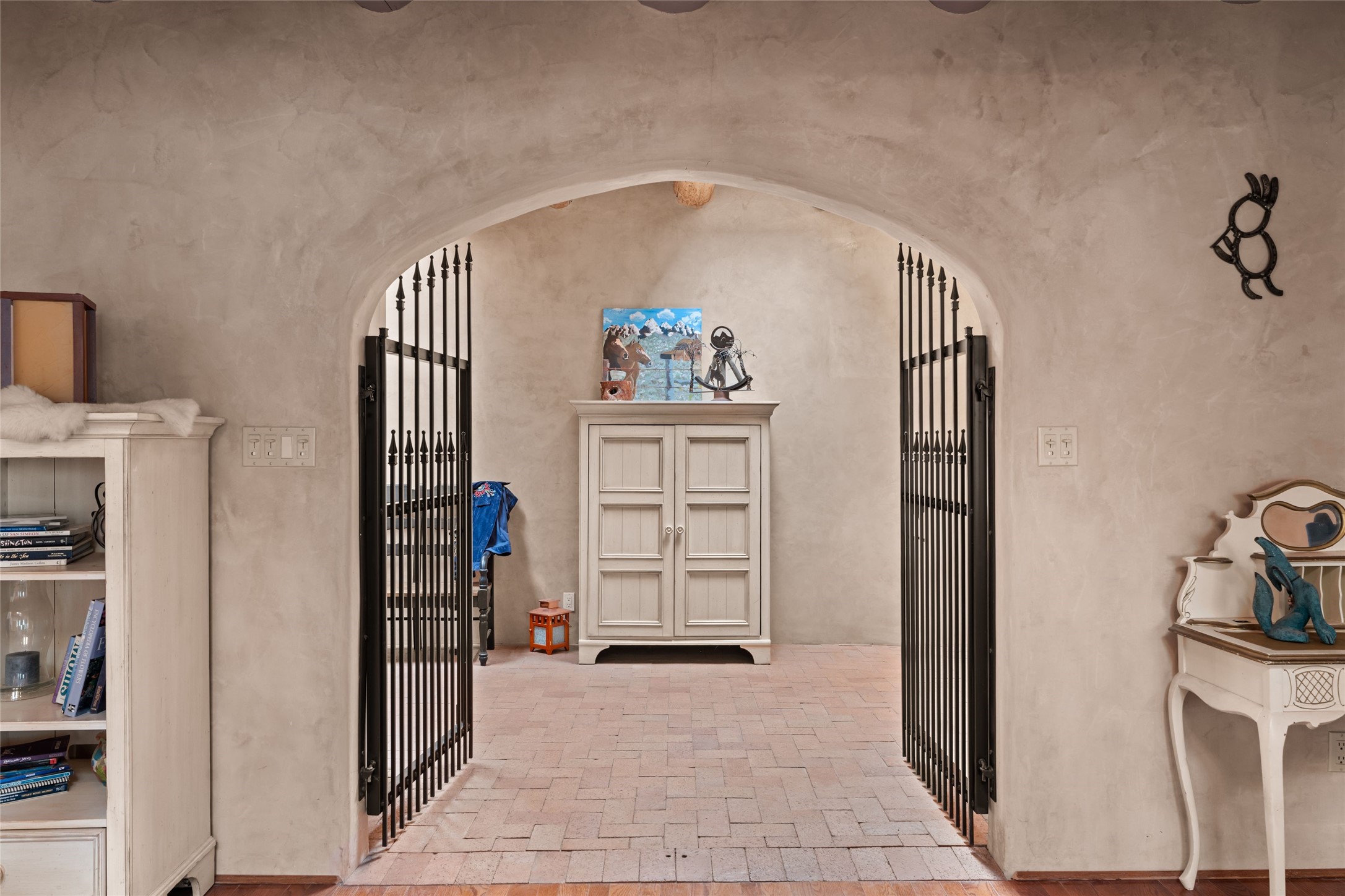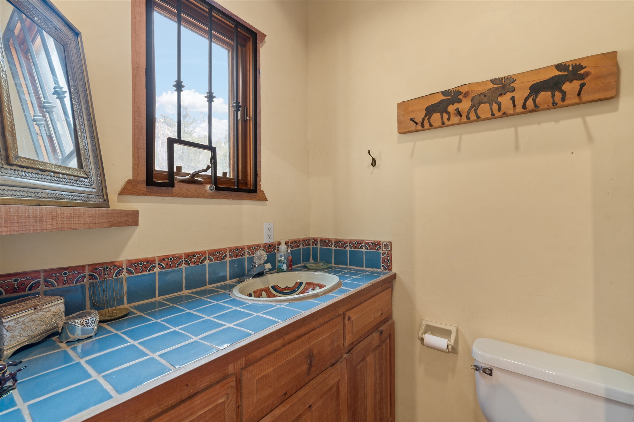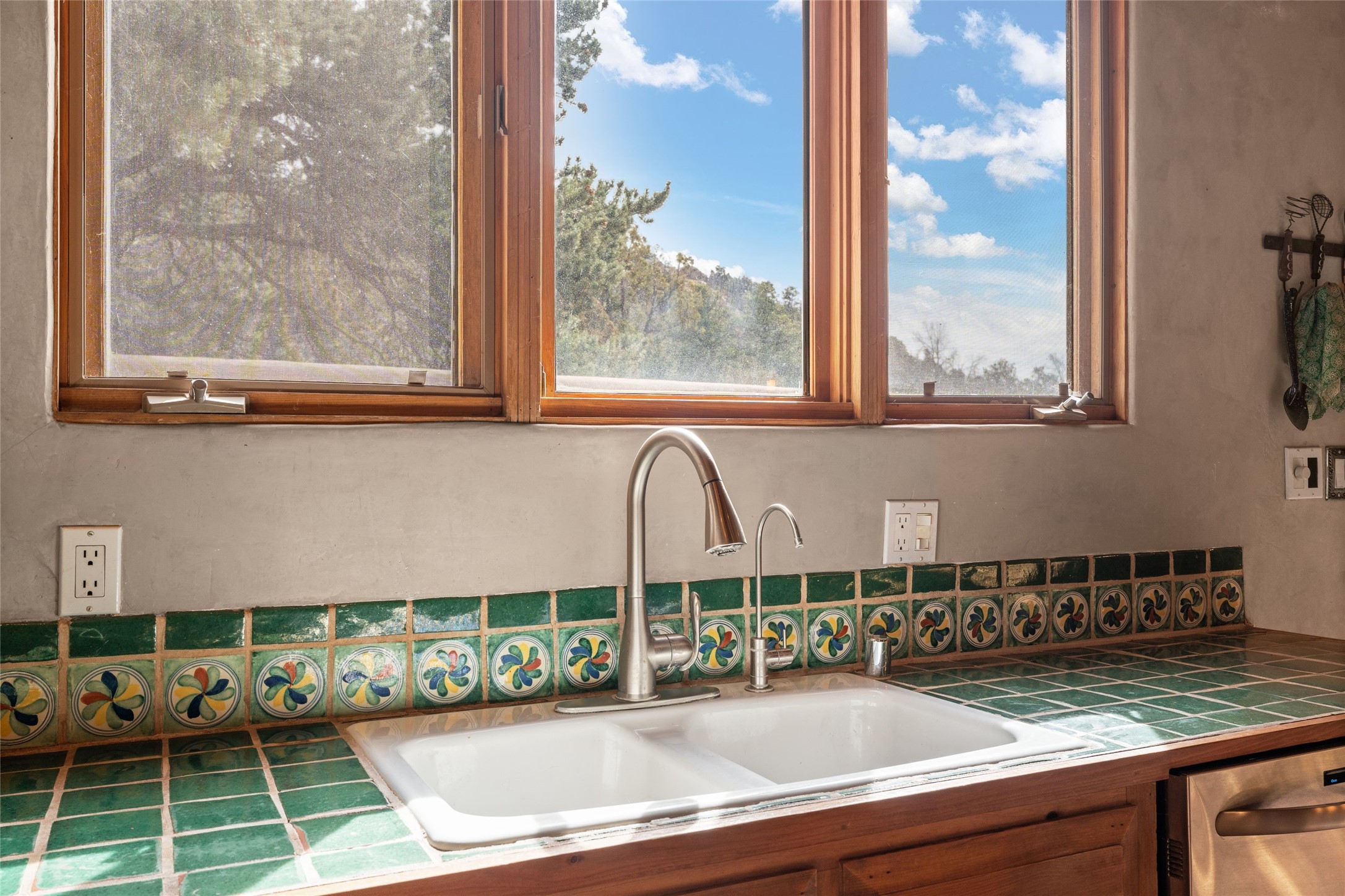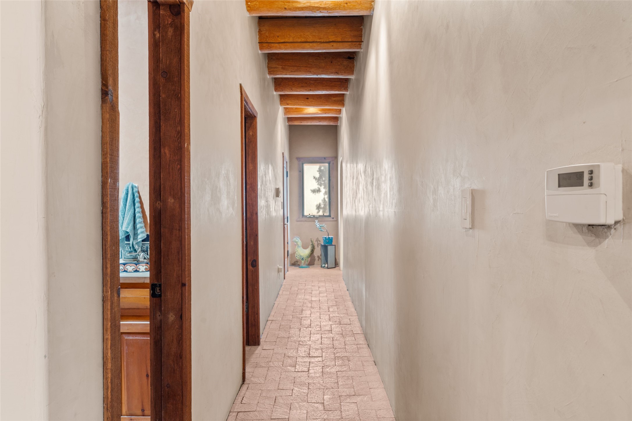 Beautiful, 15 Acre Horse Property nestled within a cozy valley surrounded by trees and boulder outcroppings, with main house & detached guest casita situated close to riding trails and just a 20 minute drive to Santa Fe. "Casa Caballos del Canoncito" offers Horse Lovers a spacious single level main house with traditional Santa Fe Style features and finishes: Vigas and Beams, Brick and Wood flooring throughout, Talavera tile accents, three bedrooms, two baths, spacious living areas, and an open concept 'great room' with Kitchen and Dining for family and friends to gather. Warm colored plaster walls, high ceilings, three fireplaces, skylights, and multiple living areas offer flexible entertaining and relaxation spaces and are highlights of the home. The detached Guest Casita has its own entrance, kitchen, full sized living area with fireplace, and a full bath. Horse Facilities include: 4 stall barn (up to 6 horses are allowed), turn out, arena with split pipe fencing, two storage sheds for tack, hay. There is a private and separate driveway to access the stables and park a large trailer if needed. Private well, forced air heat in Main House, electric baseboard in Guest House. Nearby access to rural riding trails from the property.
