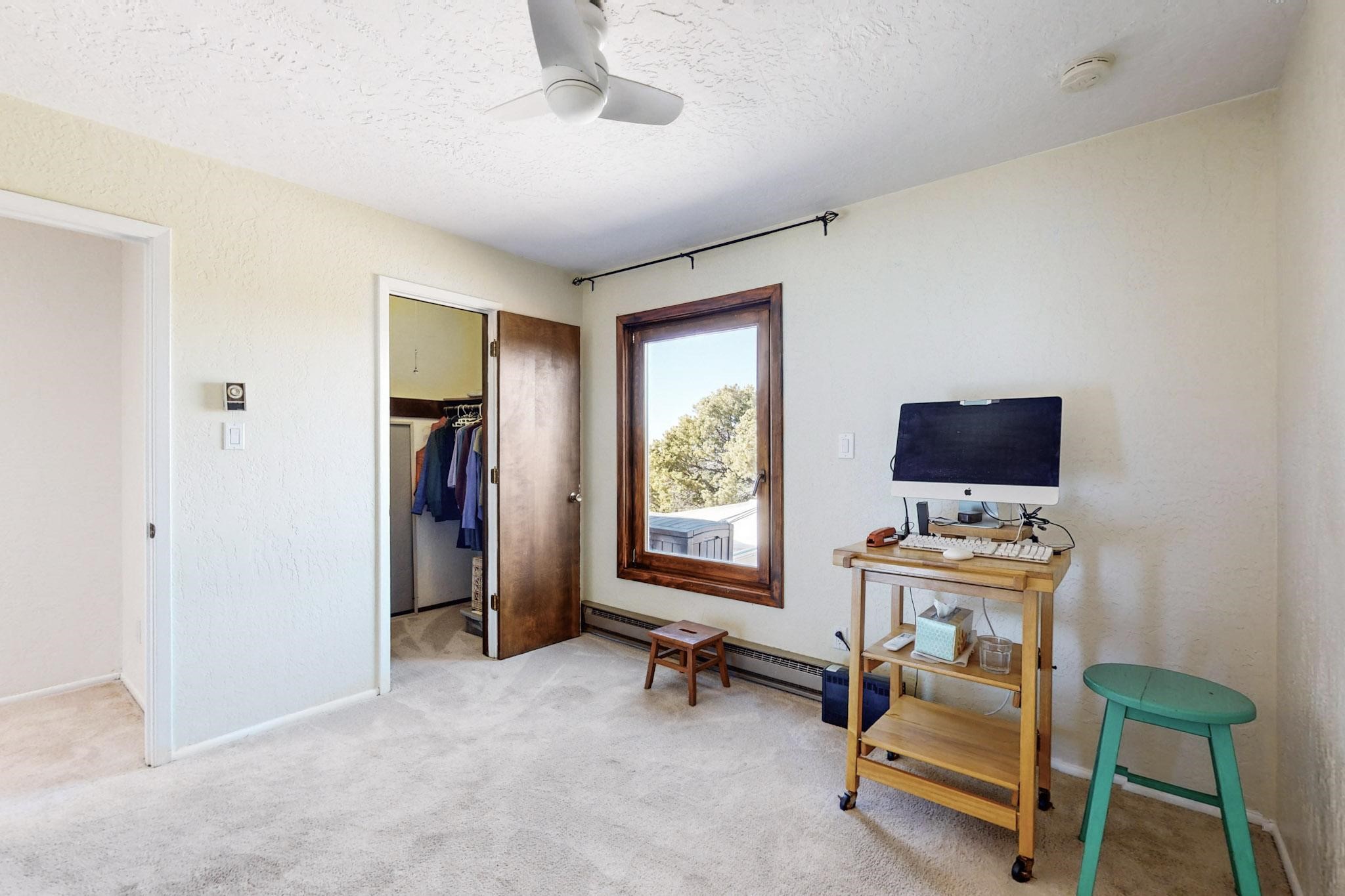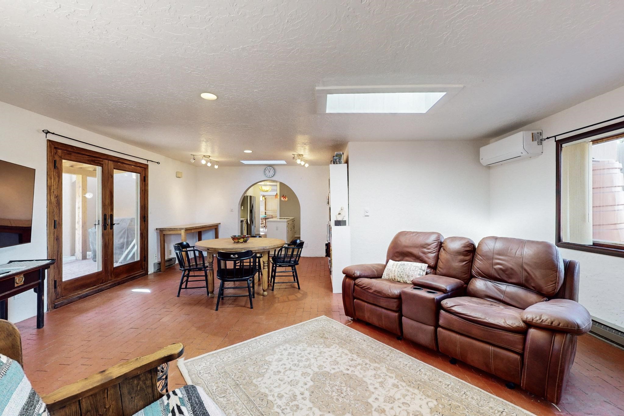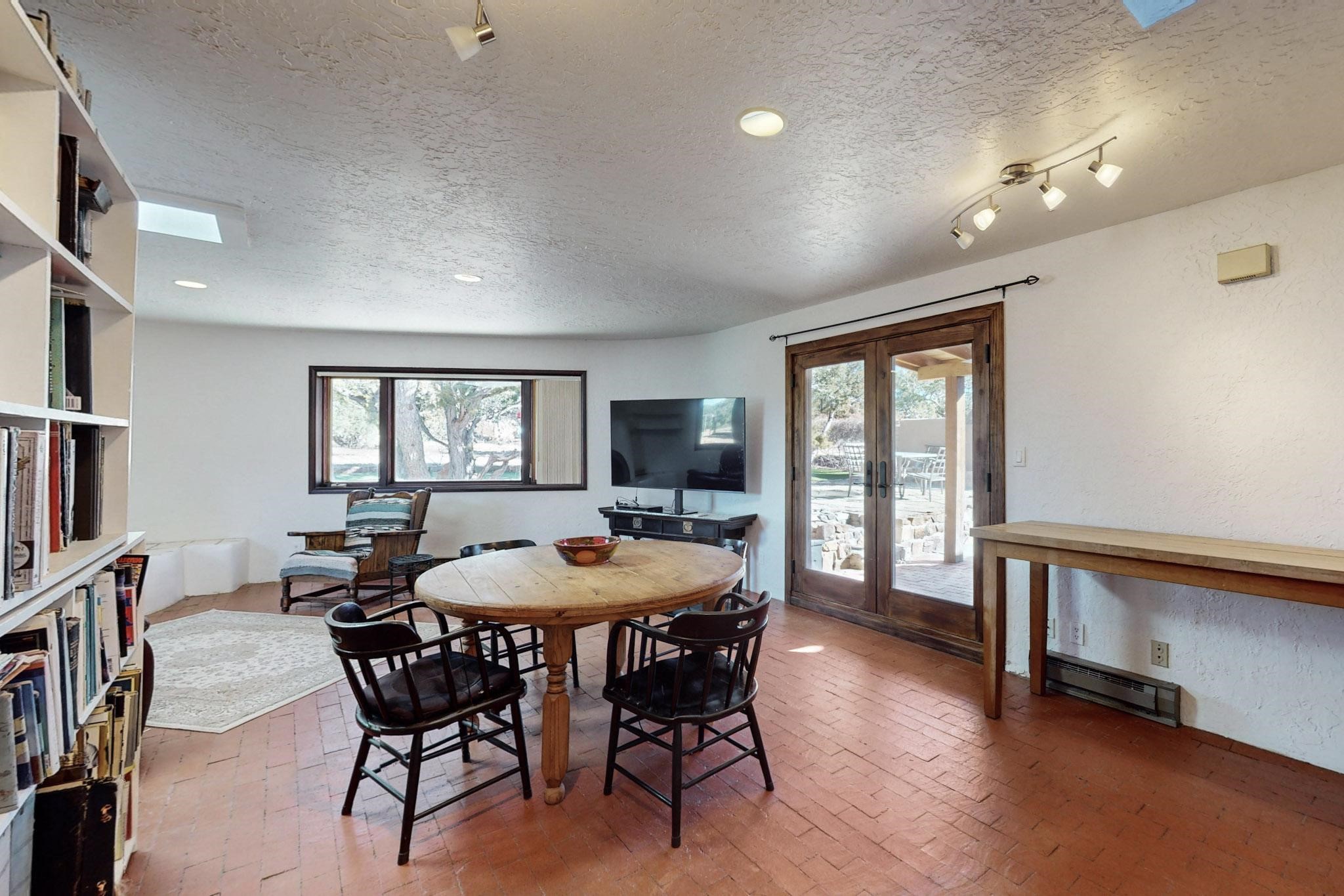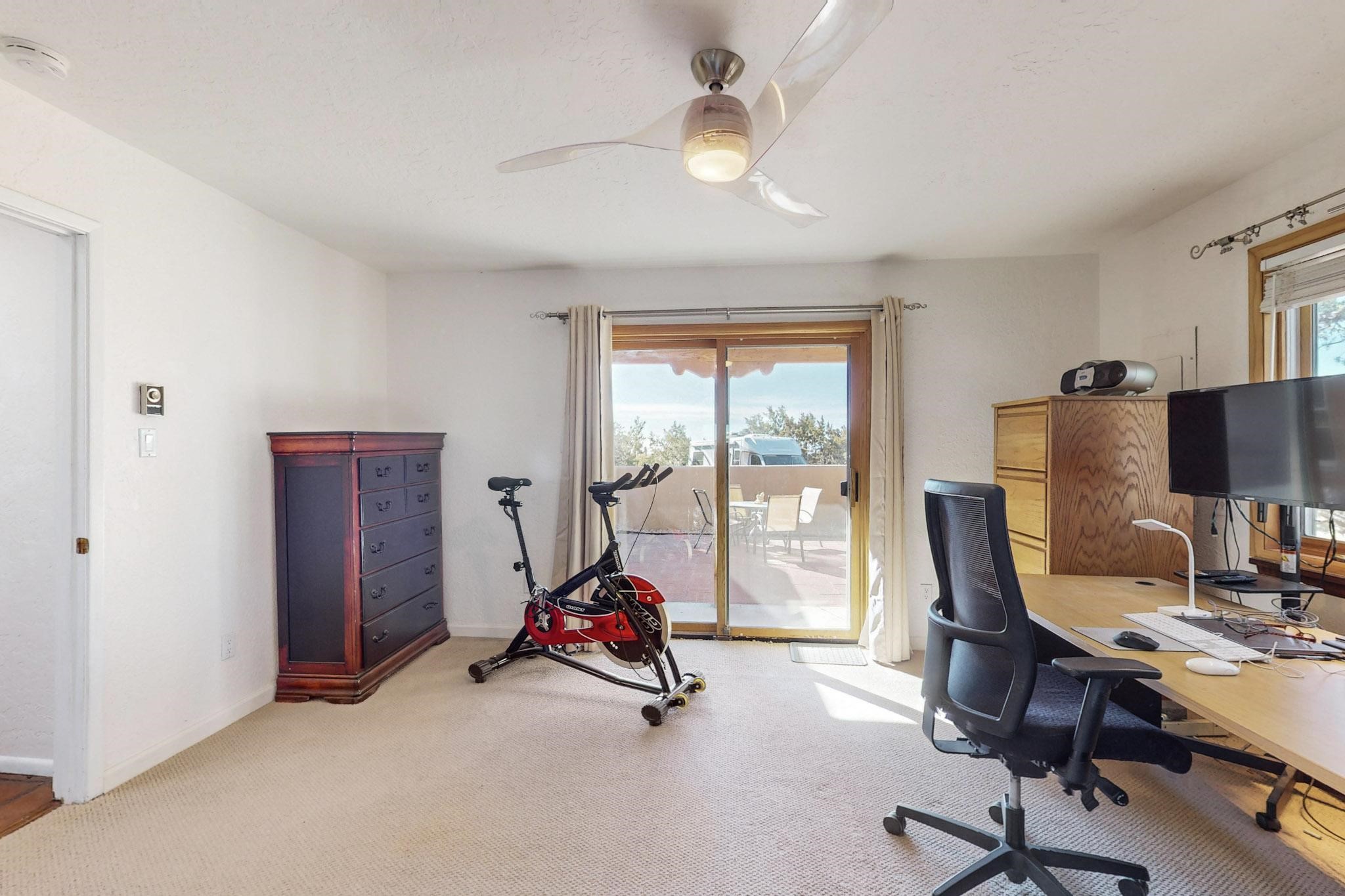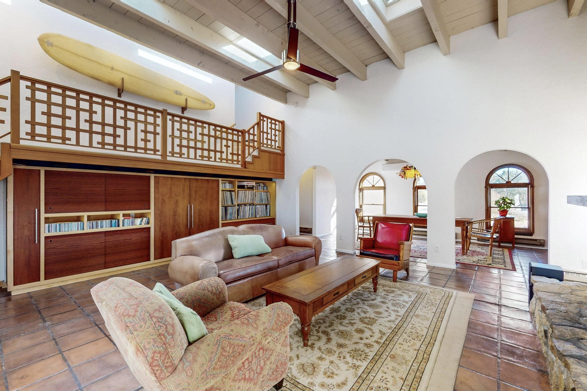 New roof, new stucco including the walls in 2023, new 4 Minisplits, a new total house filter system and new hot water heater in 2023. 22 owned solar panels seriously minimize the electric bills.On a cul de sac in a remarkably private setting stands this romantic pueblo/spanish style hacienda. If you saw it before, just wait til you see it now! Fabulously refreshed throughout this flexible 2 story floor plan accommodates 4 bedrooms, 4 baths. The owners suite and an extra bedroom are on the main floor with two additional guest bedrooms and bath upstairs. The large Kiva room has an additional office/den area and ideal for many purposes-studio, work, playroom or music. An ideal large entertainers kitchen with a central cooking island, large walk in pantry and separate laundry with sink. The dramatic great room with central massive stone gas fireplace flows to the elegant party dining room. There is a mountain view deck for sunsets and two private patios and garden. The 2 car garage is accessed by a paved driveway with loads of extra parking. Even the grounds have been carefully groomed against fire yet maintaining the rural wildlife refuge. Easy paved road access to both Eldorado amenities and local shopping and services, only minutes into Santa Fe. Wow, a must see!