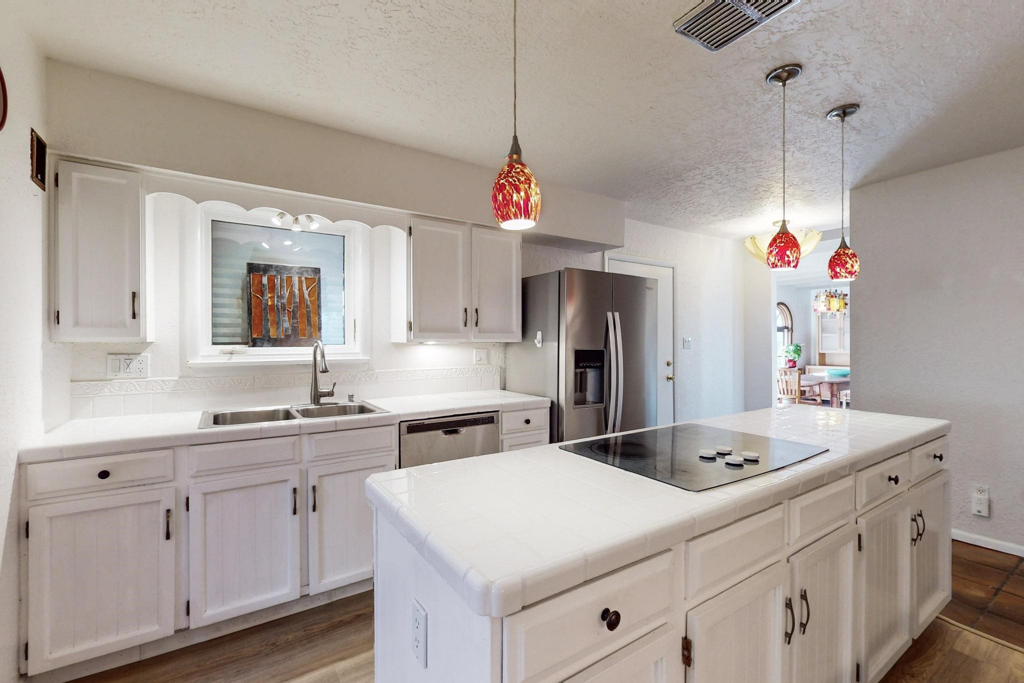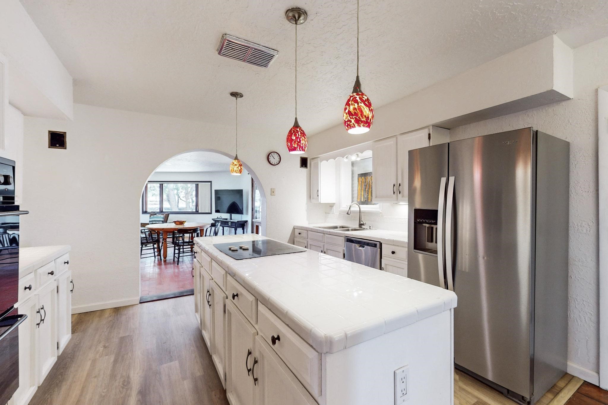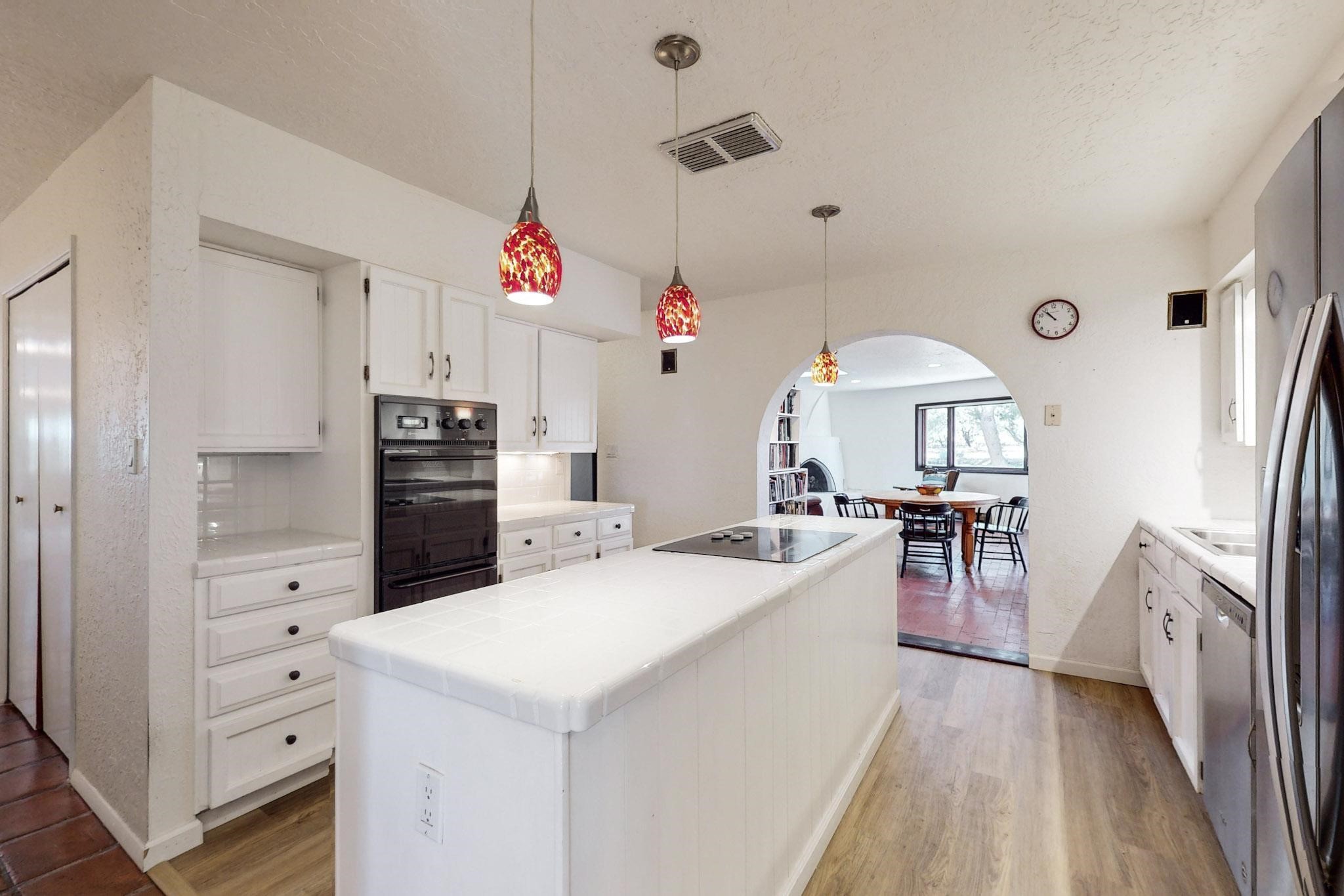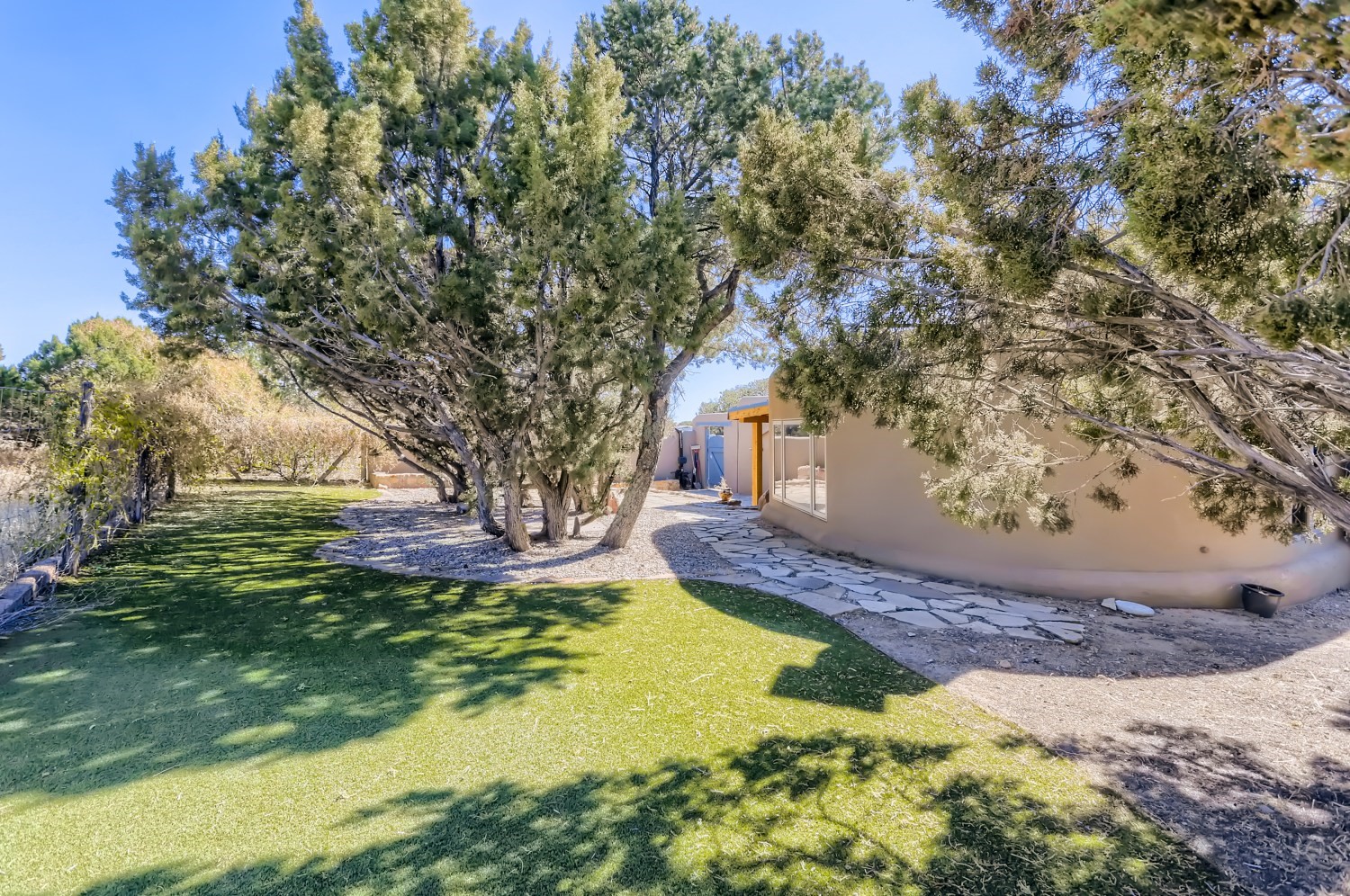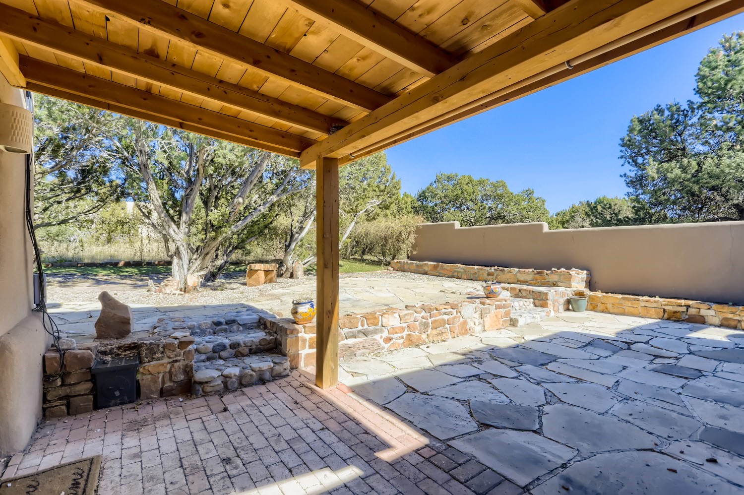 New roof, new stucco including the walls in 2023, new 4 Minisplits, a new total house filter system and new hot water heater in 2023. 22 owned solar panels seriously minimize the electric bills.On a cul de sac in a remarkably private setting stands this romantic pueblo/spanish style hacienda. If you saw it before, just wait til you see it now! Fabulously refreshed throughout this flexible 2 story floor plan accommodates 4 bedrooms, 4 baths. The owners suite and an extra bedroom are on the main floor with two additional guest bedrooms and bath upstairs. The large Kiva room has an additional office/den area and ideal for many purposes-studio, work, playroom or music. An ideal large entertainers kitchen with a central cooking island, large walk in pantry and separate laundry with sink. The dramatic great room with central massive stone gas fireplace flows to the elegant party dining room. There is a mountain view deck for sunsets and two private patios and garden. The 2 car garage is accessed by a paved driveway with loads of extra parking. Even the grounds have been carefully groomed against fire yet maintaining the rural wildlife refuge. Easy paved road access to both Eldorado amenities and local shopping and services, only minutes into Santa Fe. Wow, a must see!
