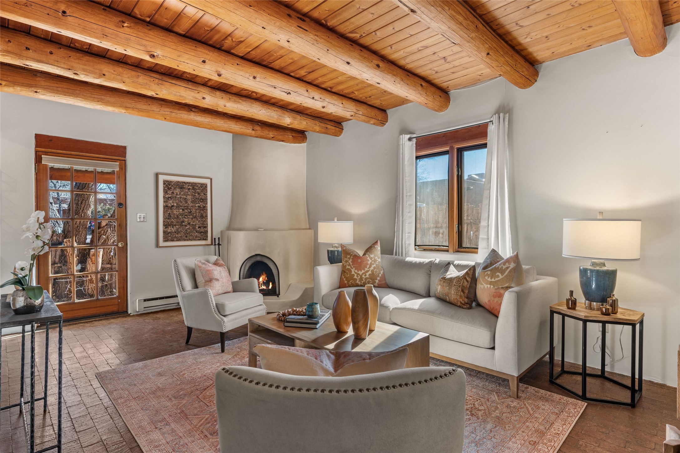 Experience the charm and convenience of this cozy one-bedroom, one-bathroom home located in a prime location, just steps away from vibrant restaurants, shopping, Santa Fe Railyard, and the downtown plaza. Built in 1987, this traditional-style gem features an open floor plan with approximately 589 sq. ft. of living space. Highlights include a kiva wood-burning fireplace in the living area, perfect for cozy evenings, and timeless brick floors that add character throughout. The property also offers designated parking for your convenience and a small fenced yard--a peaceful retreat in the heart of the city. This delightful home blends traditional charm with modern accessibility, making it a perfect sanctuary close to everything Santa Fe has to offer.