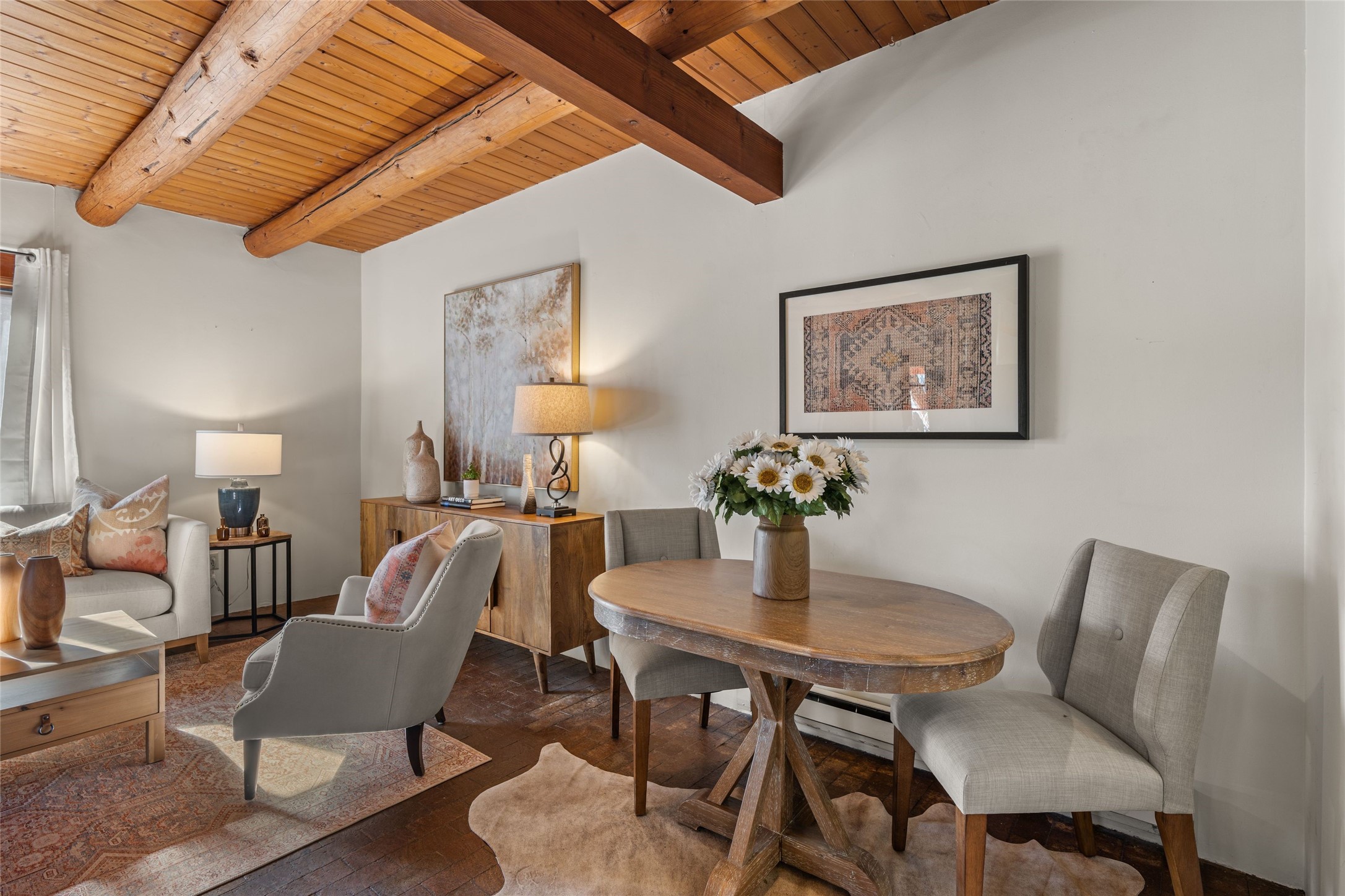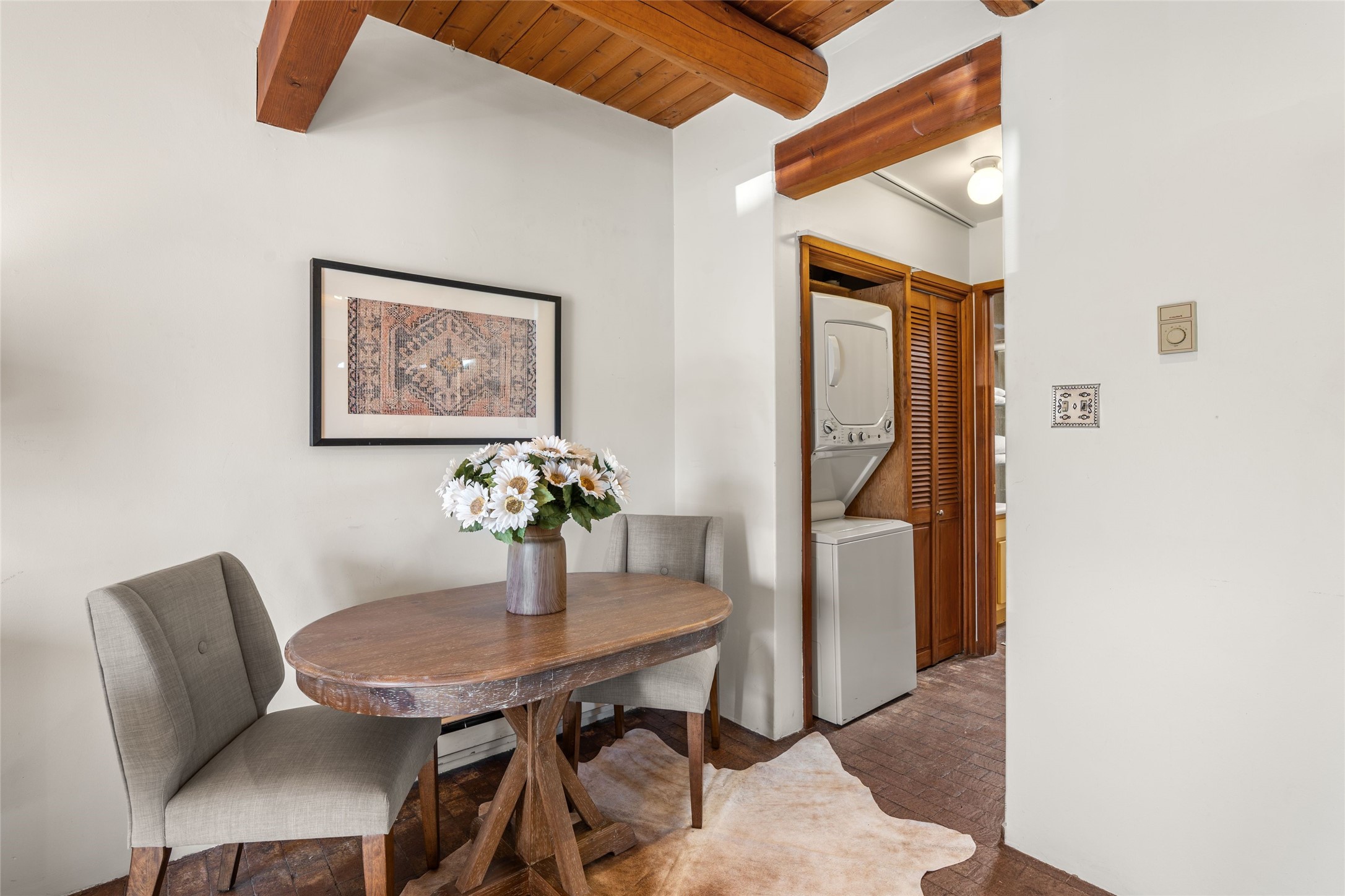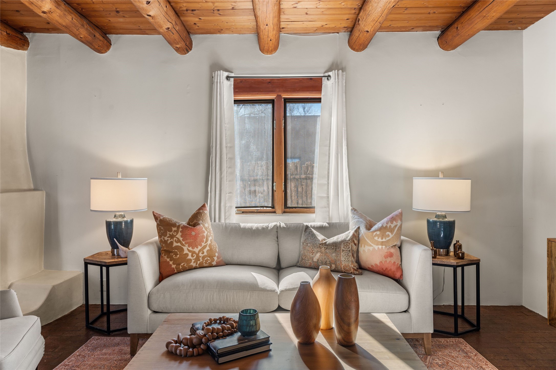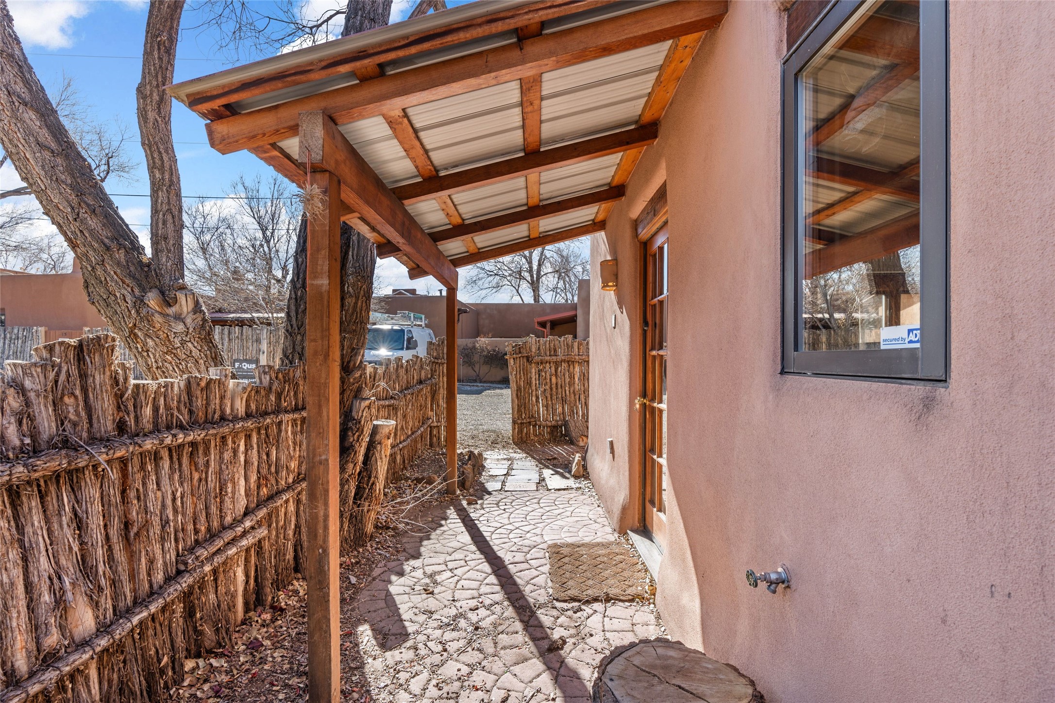 Experience the charm and convenience of this cozy one-bedroom, one-bathroom home located in a prime location, just steps away from vibrant restaurants, shopping, Santa Fe Railyard, and the downtown plaza. Built in 1987, this traditional-style gem features an open floor plan with approximately 589 sq. ft. of living space. Highlights include a kiva wood-burning fireplace in the living area, perfect for cozy evenings, and timeless brick floors that add character throughout. The property also offers designated parking for your convenience and a small fenced yard--a peaceful retreat in the heart of the city. This delightful home blends traditional charm with modern accessibility, making it a perfect sanctuary close to everything Santa Fe has to offer.