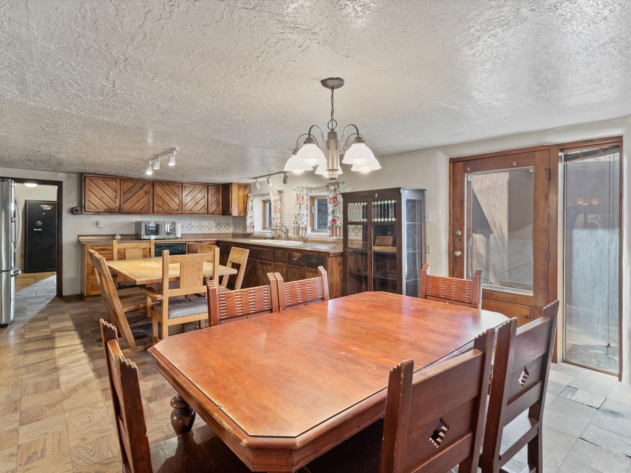 Discover a rare gem in Santa Fe's coveted Historic Eastside just a short walk to the world famous Canyon Road - the Iconic Johnnie's Cash Store, Home and Studio at 420 Camino Don Miguel. This extraordinary original Family owned property offers a unique blend of commercial and residential possibilities, featuring a grandfathered license for a grocery store and charming living spaces that capture the spirit of old Santa Fe. The studio/showroom have an office and bathroom, perfect for creative pursuits or business ventures. Attached is a warm and inviting family home designed for comfort and entertainment. The country-style kitchen and dining area welcome family gatherings, while the expansive living room, adorned with a fireplace, creates a cozy retreat during the cooler months. The home features three spacious bedrooms, an additional office, and three baths, ensuring ample space for family or guests. Step outside to a tranquil walled patio complete with a portal and outdoor fireplace -- a delightful setting for al fresco dining and year-round entertaining. The mature landscape flourishes with an abundance of fruit trees, adding beauty and a touch of nature to this exceptional property. Whether you're envisioning a charming neighborhood business, a private sanctuary, or both, this property offers unparalleled versatility and historic character. Come see this iconic Santa Fe treasure. Please see the attached info sheet for more info.