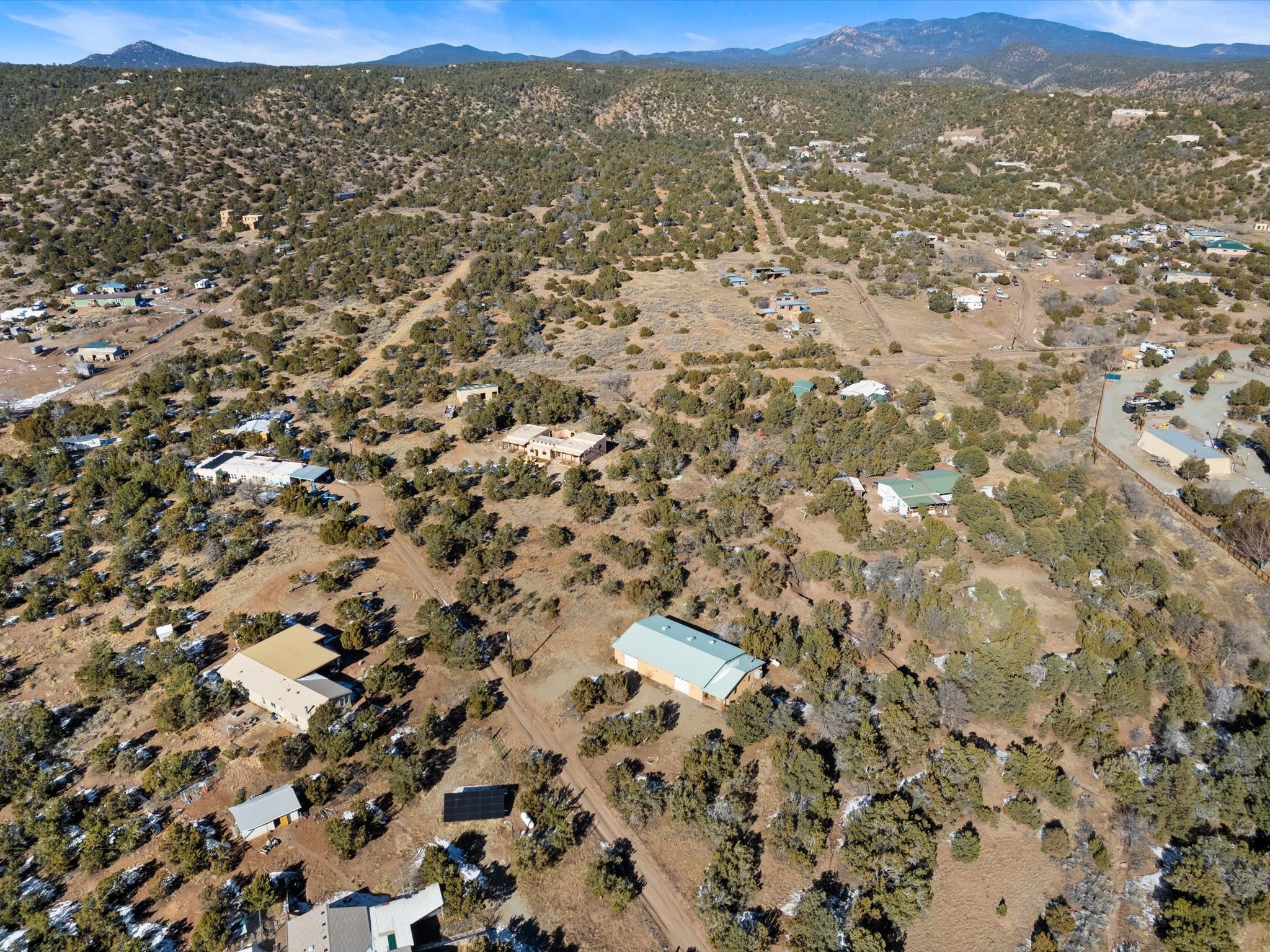 Santa Fe Style Barndominium.....A unique and thoughtfully designed property offering flexibility for living and working in a tranquil country setting just 20 minutes from downtown. Set on 2.24 acres, this inspiring space combines comfort, creativity, and convenience. The property has a 2400-square-foot studio/workshop/possible additional live space featuring 16-foot pitched ceilings, 11-foot side walls, and two oversized 10x10 garage doors. With abundant natural light, excellent ventilation, and easy access, the possibilities are endless for artisans, makers, and entrepreneurs alike--ideal for woodworking, sculpting, dance studios, photography, car restoration, pottery, and more. Complementing the studio/workshop/Garage space is a 440-square-foot Attached with its own private entrance. Inside, you'll find a cozy yet functional layout including a bedroom/office, full bath, kitchen, utility room, and living area--perfect for a residence, guest suite, or additional office space. Additional highlights: - Private water association with county water source - On-grid utilities and year-round easy access - room for expansion and finish out if one chose to Don't miss this one-of-a-kind opportunity to create, innovate, and thrive close to town yet surrounded by nature. Schedule your private showing today!
