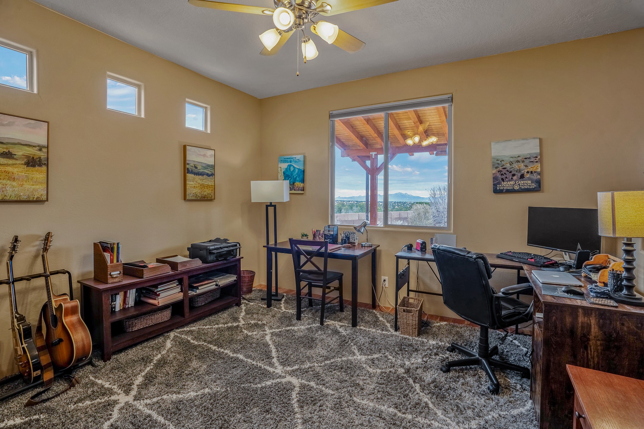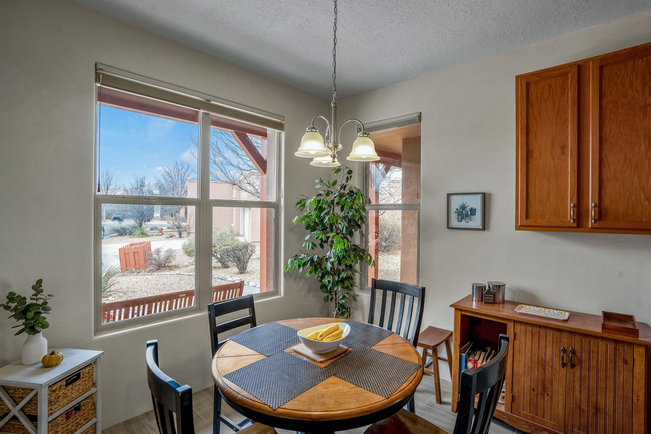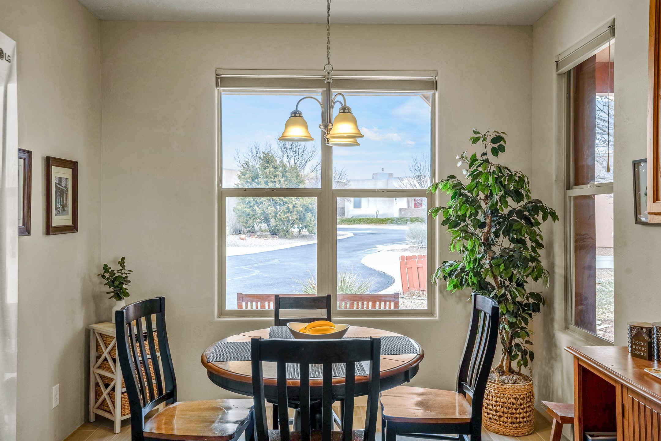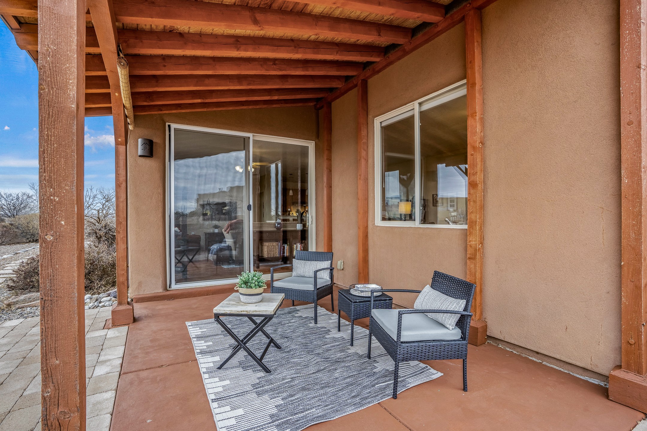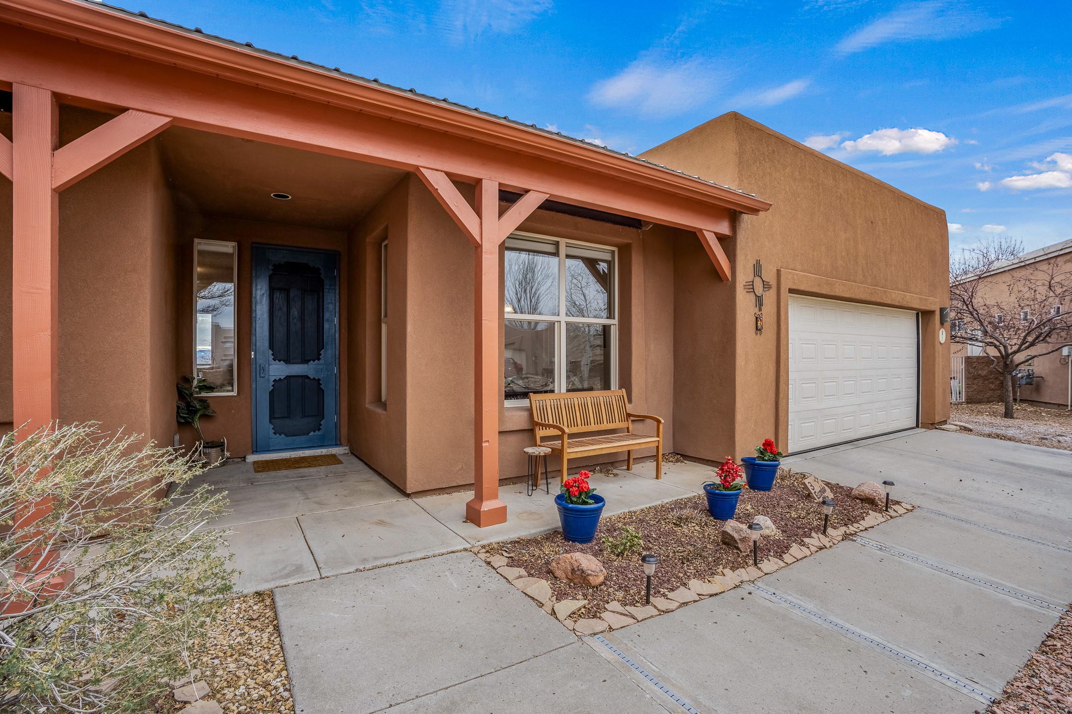 Expansive views and quiet living in Rancho Viejo from this updated 3 bedroom 2 bath home. Sellers have updated the bathrooms, kitchen back-splash tile, some new lighting, repainted entire home and new xeriscaping. Beautiful Douglas Fir wood floors and a gas kiva fireplace welcome you home. Backing to open space, the vistas are awesome and the enclosed back yard takes advantage. Walking trails! Nice large primary closet. Well maintained.