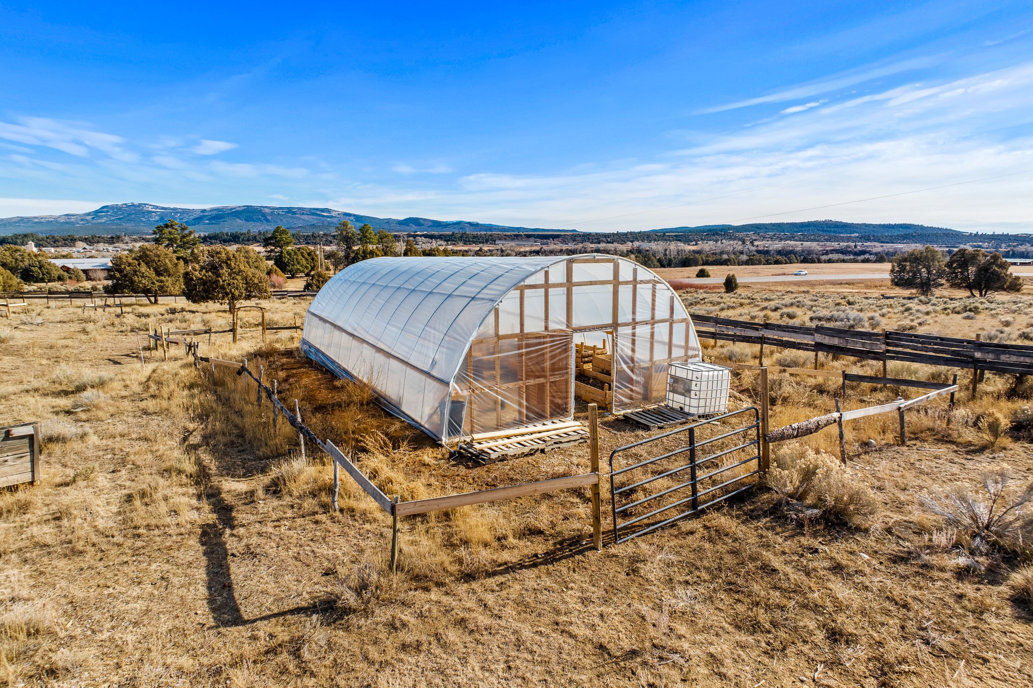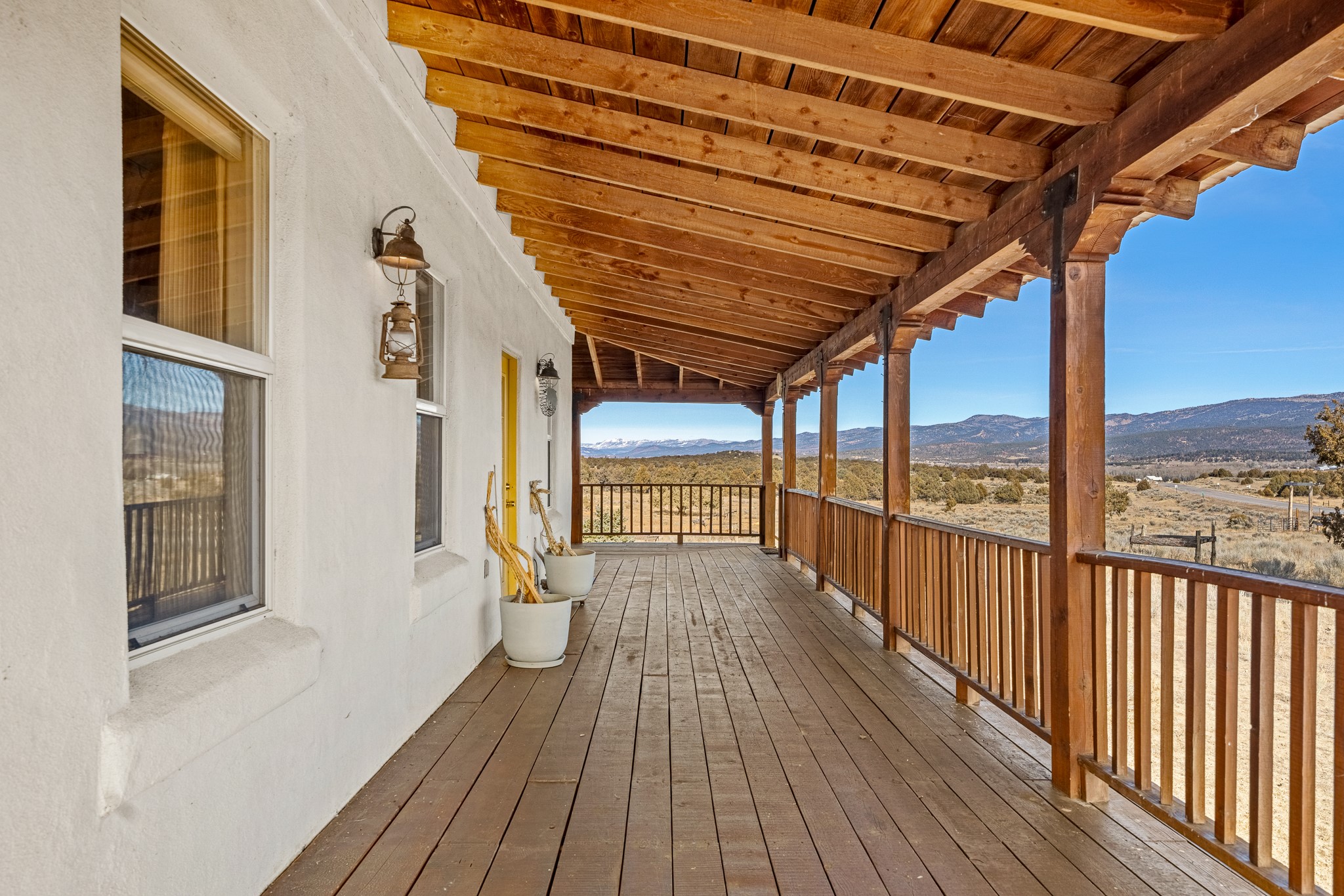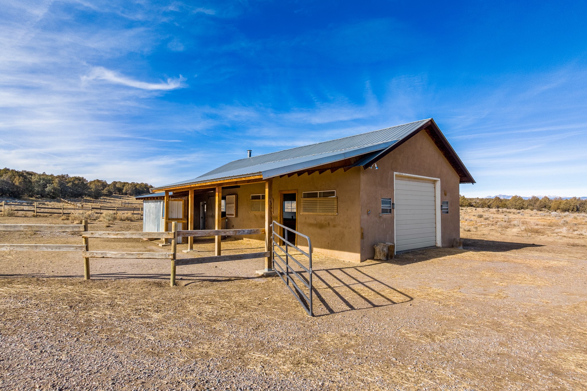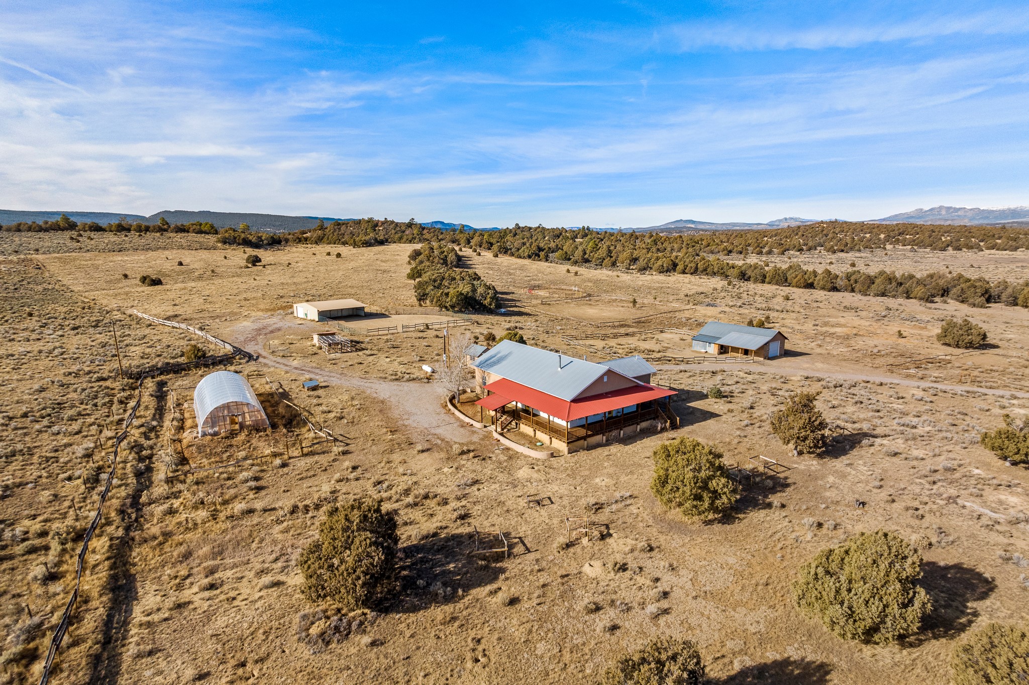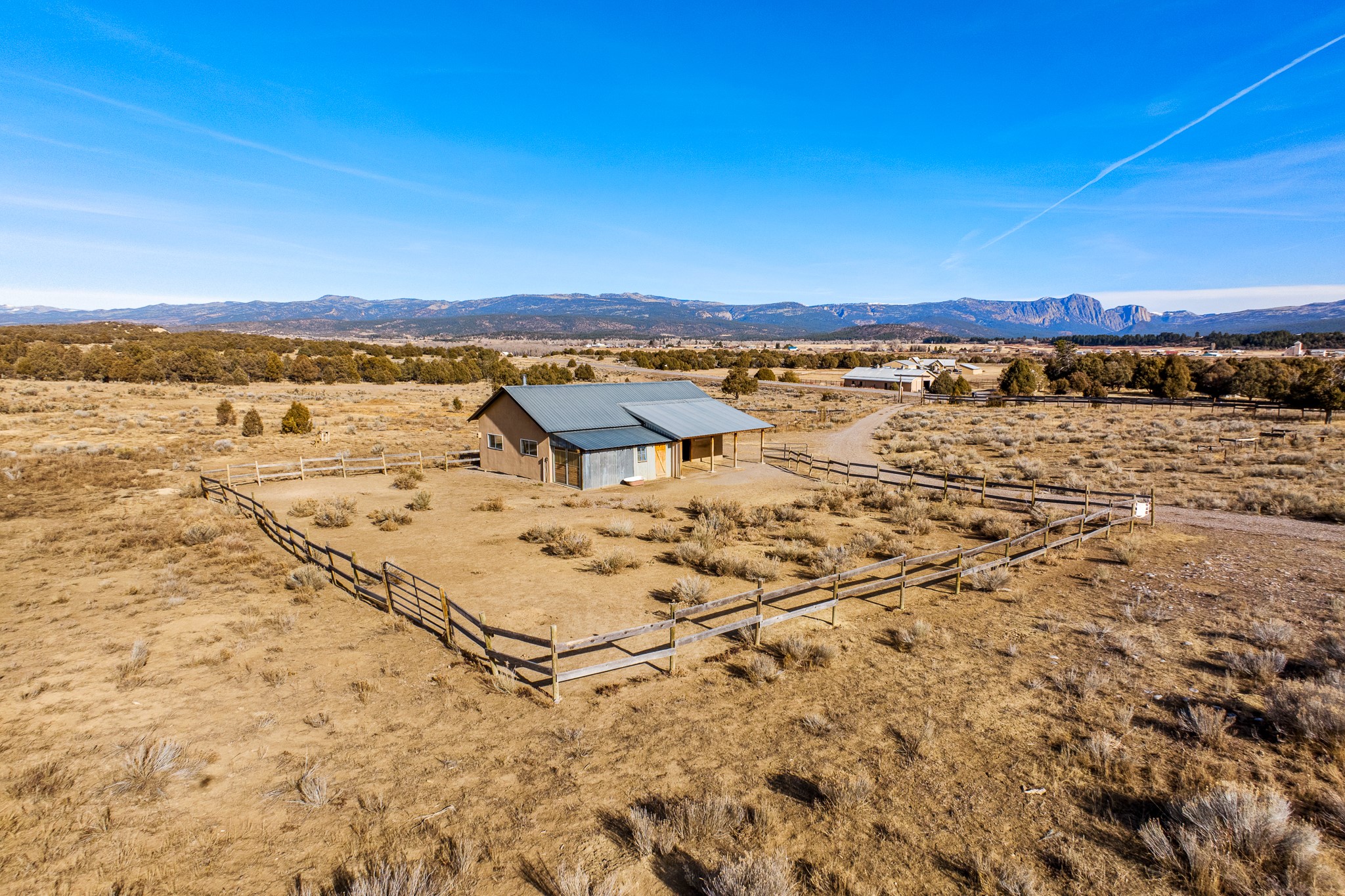 One level ranch home with bunkhouse on over 18 acres bordering the 700,000+ acre Jicarilla. Located only 7 miles east of Heron Lake State Park where you'll find excellent fishing for lake trout and kokanee salmon. No Covenants/No HOA on this fully fenced usable acreage. Located at 7360' elevation with excellent southern exposure and good year round access on a well maintained county road. Abundant water through both Ruthern Rural Water Co-Op as well as a permitted water well. Outbuildings include a 24' x 48' livestock barn with a wood stove and a 10'overhead door, a 24' x 40' metal hay barn with electricity & water and a 8' overhead door, a 24' x 48' greenhouse, chicken coop, and a 10' x 14'bunkhouse with electricity. 60' round pen and a 145' x 155' riding arena make for great horse training areas. The wrap around porch offers fabulous views of the surrounding mountain ranges. This gorgeous Southwest style home offers custom plank hardwood floors, a huge kitchen, a large living area, tall ceilings, and multiple sources of heat thanks to both in-floor radiant heat and a wood stove. Annual taxes are $3,154.48.Priced 50% below replacement costs in today's construction market.