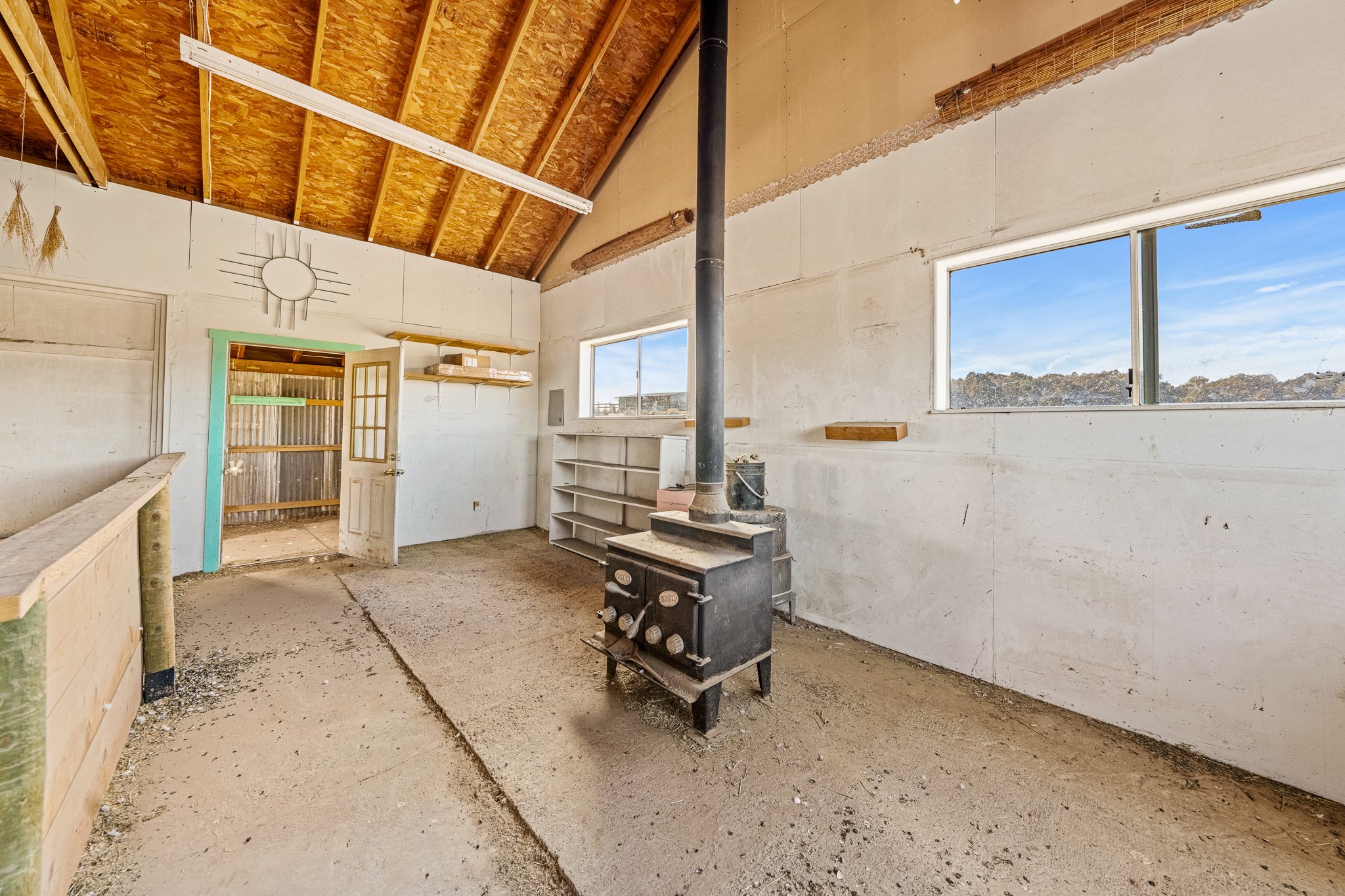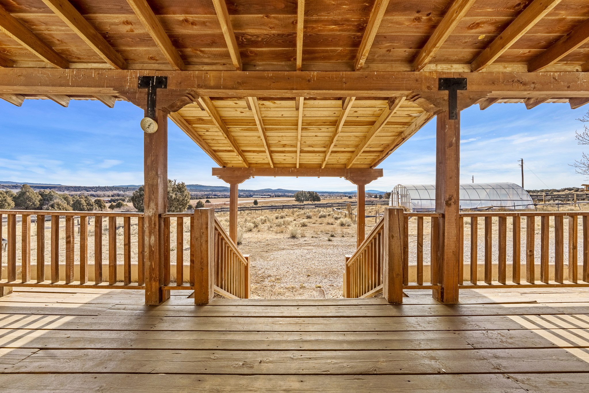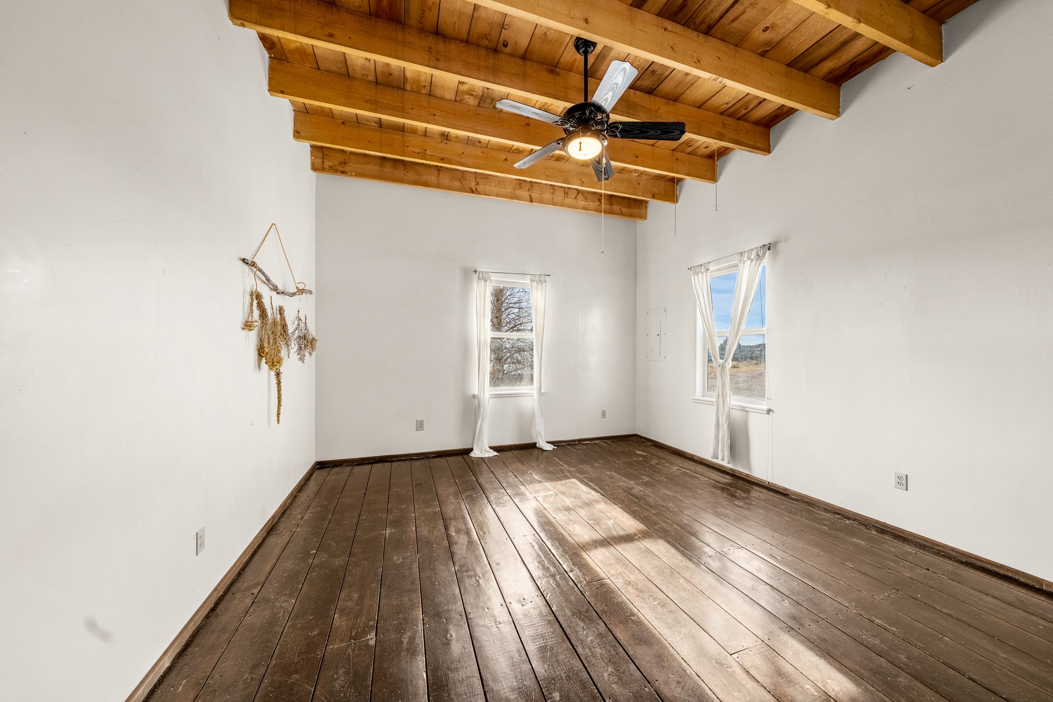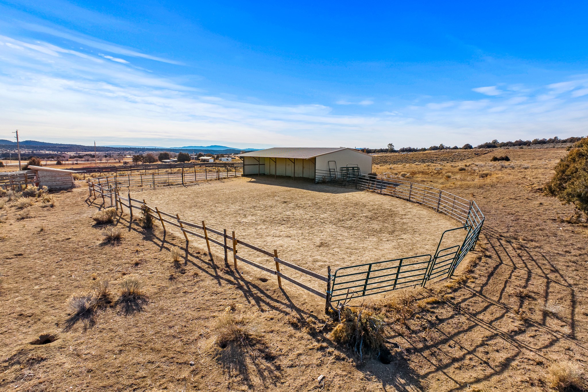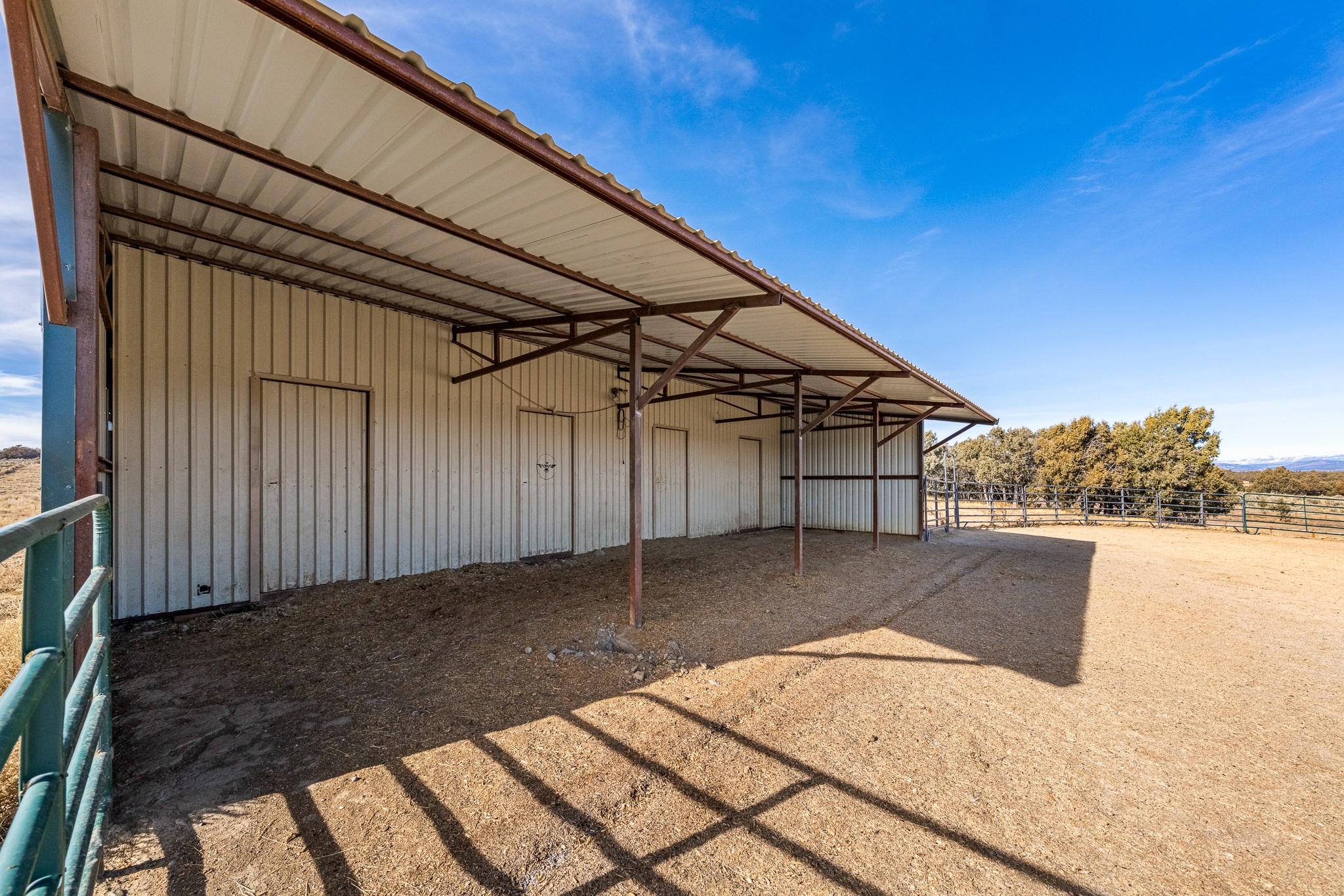 One level ranch home with bunkhouse on over 18 acres bordering the 700,000+ acre Jicarilla. Located only 7 miles east of Heron Lake State Park where you'll find excellent fishing for lake trout and kokanee salmon. No Covenants/No HOA on this fully fenced usable acreage. Located at 7360' elevation with excellent southern exposure and good year round access on a well maintained county road. Abundant water through both Ruthern Rural Water Co-Op as well as a permitted water well. Outbuildings include a 24' x 48' livestock barn with a wood stove and a 10'overhead door, a 24' x 40' metal hay barn with electricity & water and a 8' overhead door, a 24' x 48' greenhouse, chicken coop, and a 10' x 14'bunkhouse with electricity. 60' round pen and a 145' x 155' riding arena make for great horse training areas. The wrap around porch offers fabulous views of the surrounding mountain ranges. This gorgeous Southwest style home offers custom plank hardwood floors, a huge kitchen, a large living area, tall ceilings, and multiple sources of heat thanks to both in-floor radiant heat and a wood stove. Annual taxes are $3,154.48.Priced 50% below replacement costs in today's construction market.