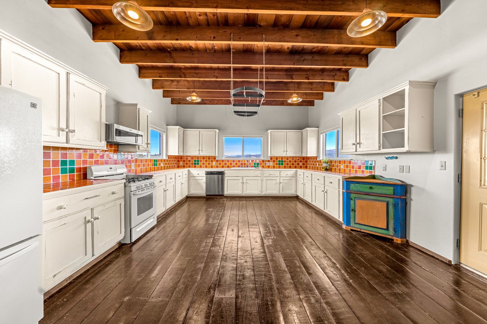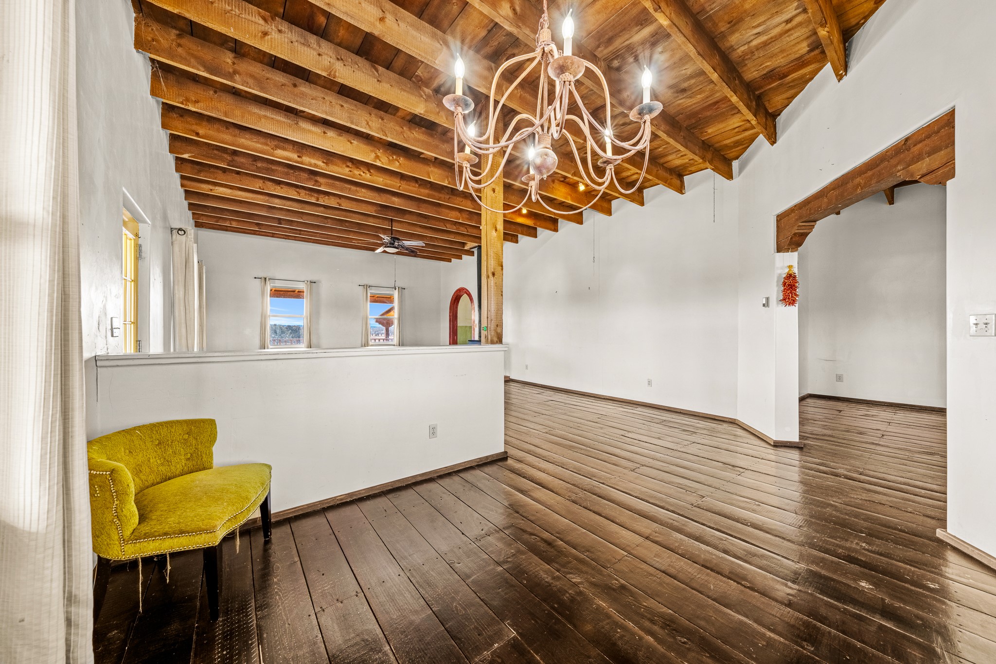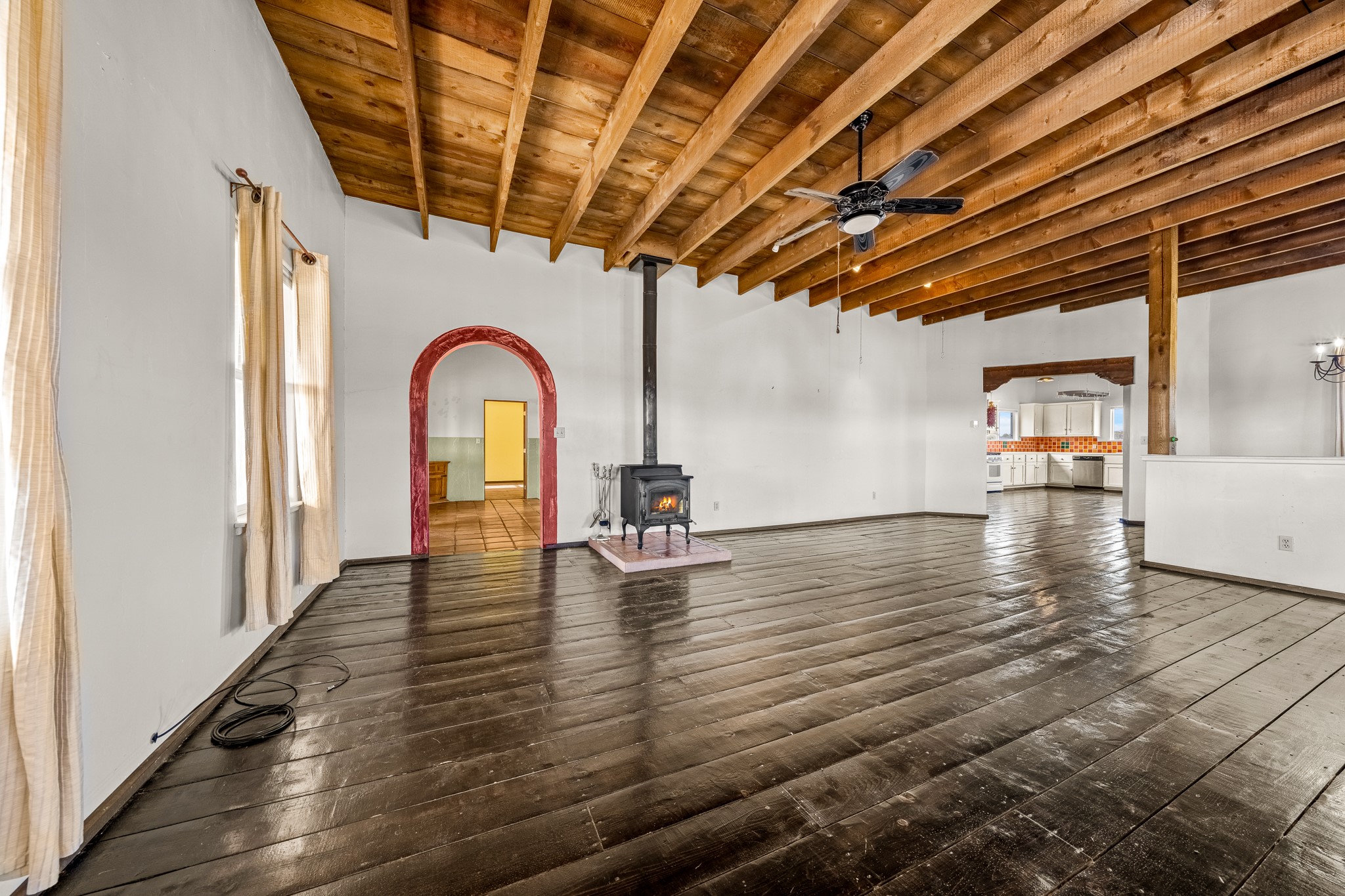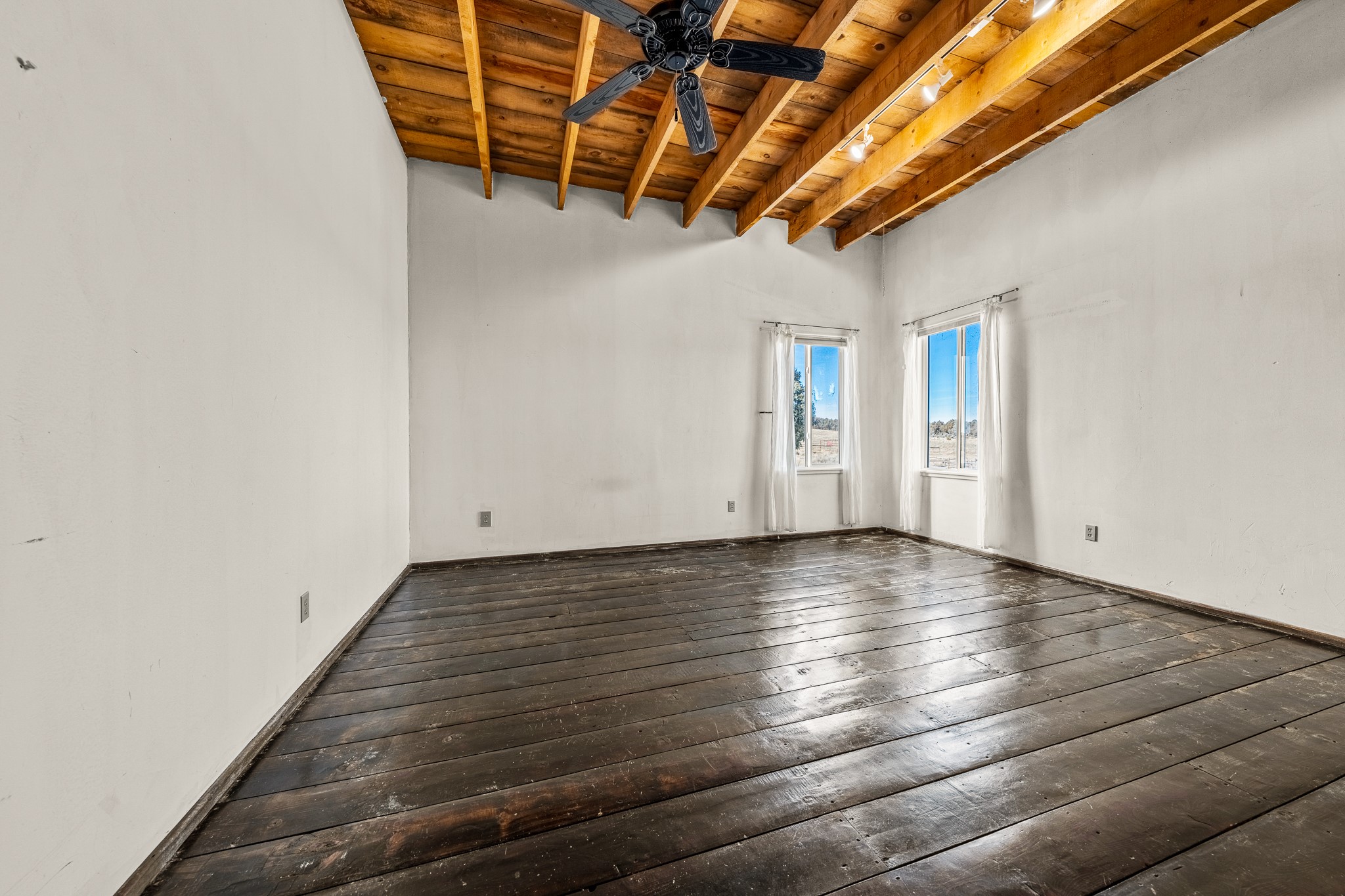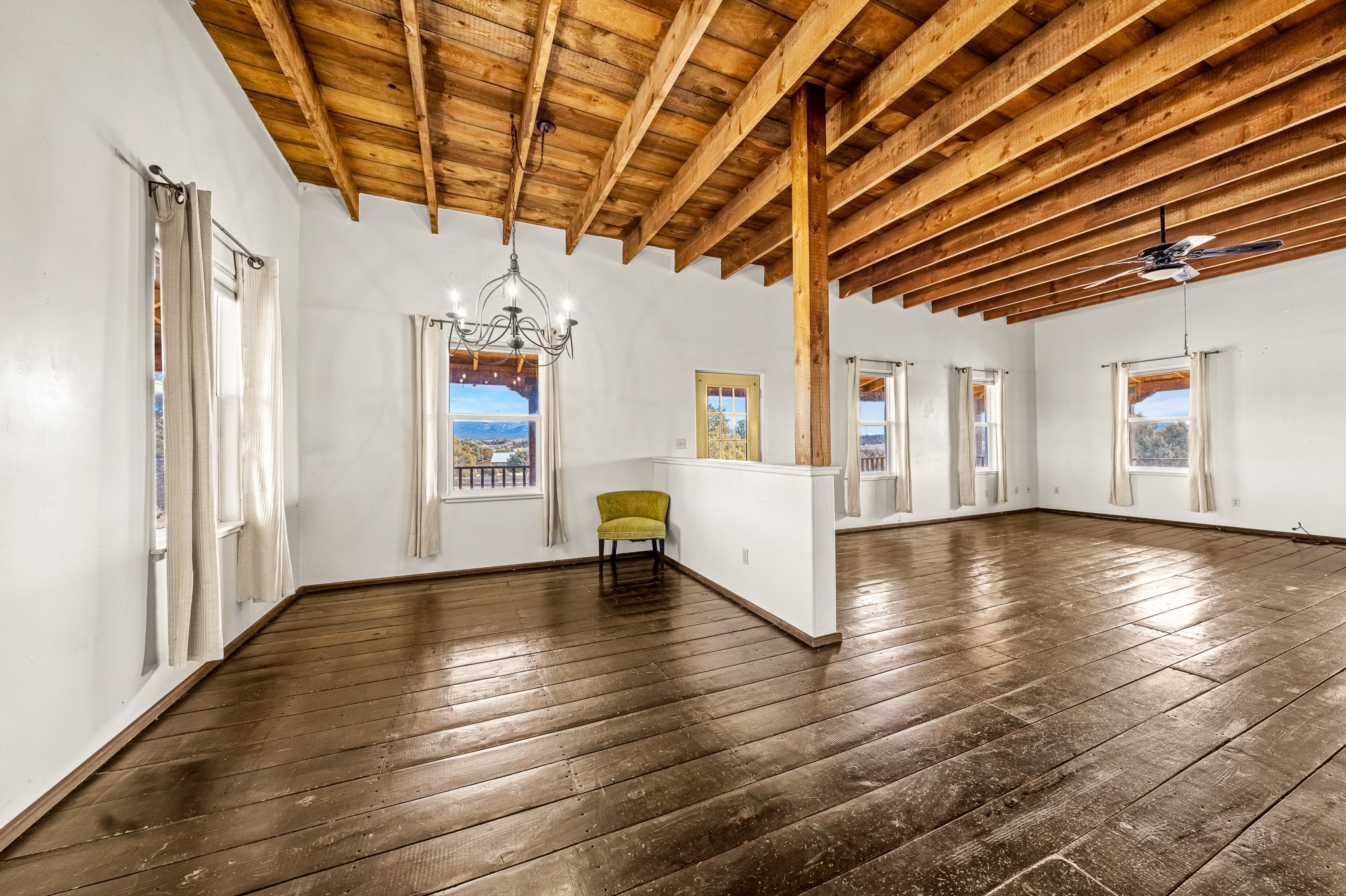 One level ranch home with bunkhouse on over 18 acres bordering the 700,000+ acre Jicarilla. Located only 7 miles east of Heron Lake State Park where you'll find excellent fishing for lake trout and kokanee salmon. No Covenants/No HOA on this fully fenced usable acreage. Located at 7360' elevation with excellent southern exposure and good year round access on a well maintained county road. Abundant water through both Ruthern Rural Water Co-Op as well as a permitted water well. Outbuildings include a 24' x 48' livestock barn with a wood stove and a 10'overhead door, a 24' x 40' metal hay barn with electricity & water and a 8' overhead door, a 24' x 48' greenhouse, chicken coop, and a 10' x 14'bunkhouse with electricity. 60' round pen and a 145' x 155' riding arena make for great horse training areas. The wrap around porch offers fabulous views of the surrounding mountain ranges. This gorgeous Southwest style home offers custom plank hardwood floors, a huge kitchen, a large living area, tall ceilings, and multiple sources of heat thanks to both in-floor radiant heat and a wood stove. Annual taxes are $3,154.48.Priced 50% below replacement costs in today's construction market.