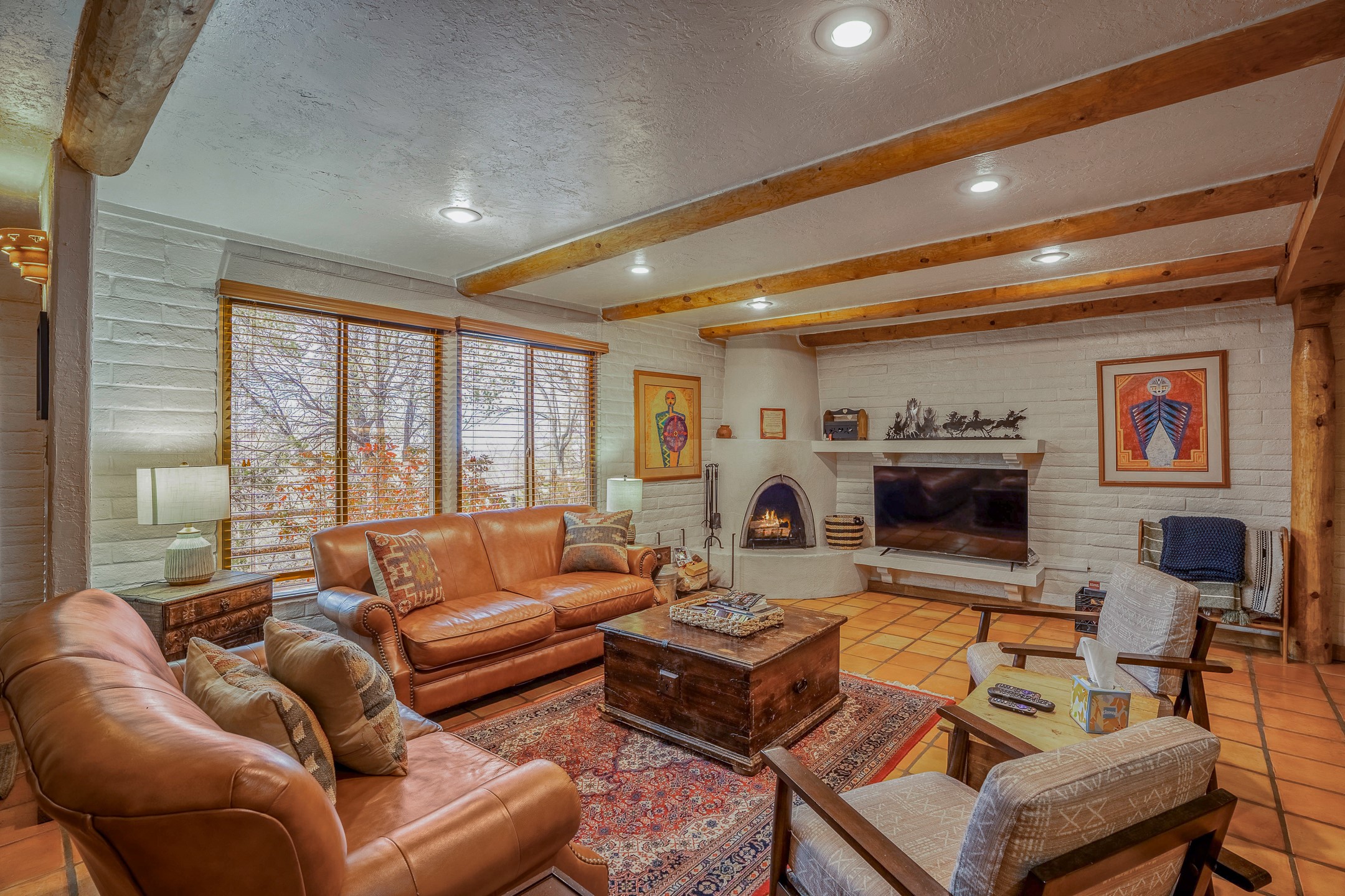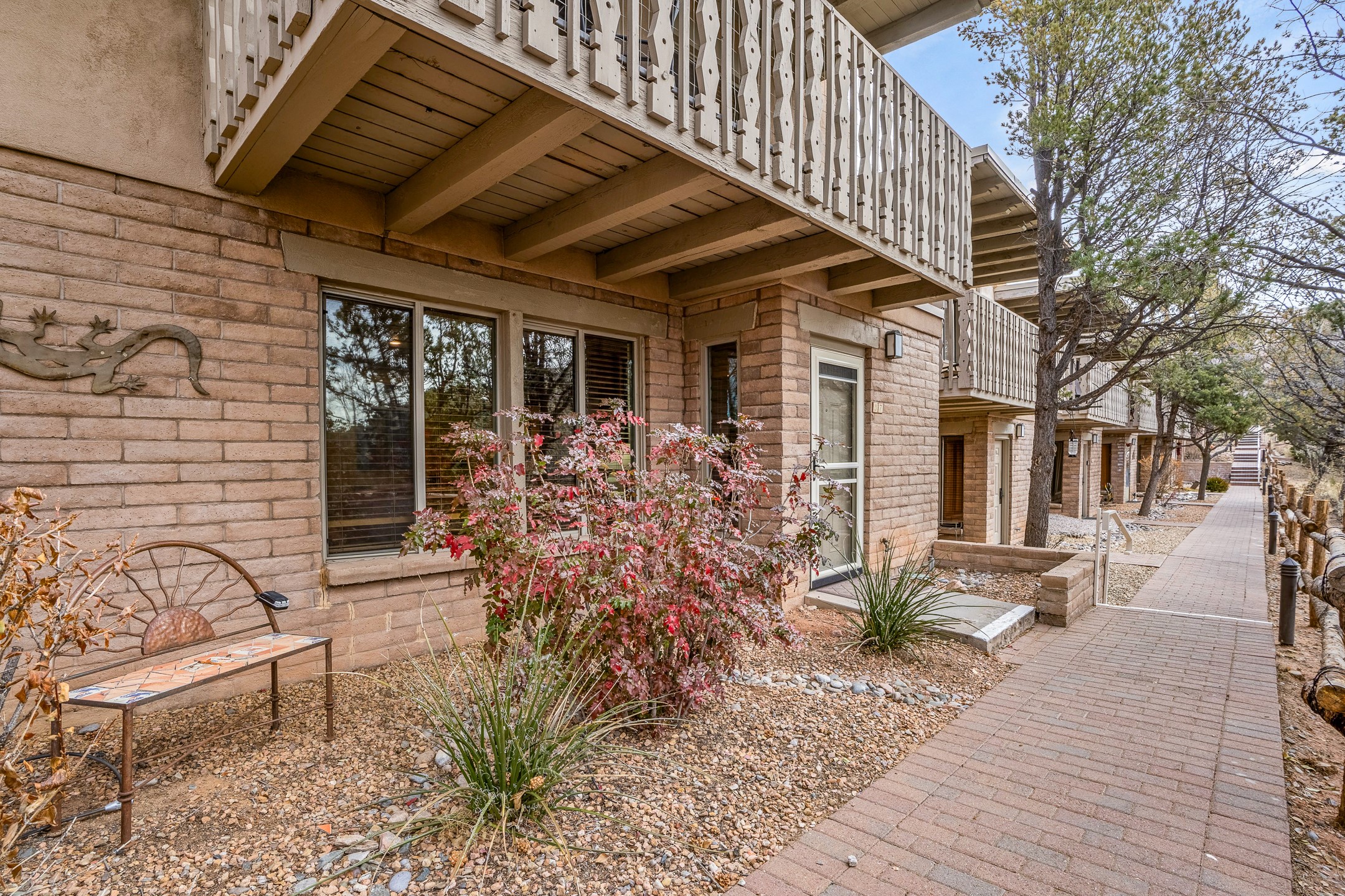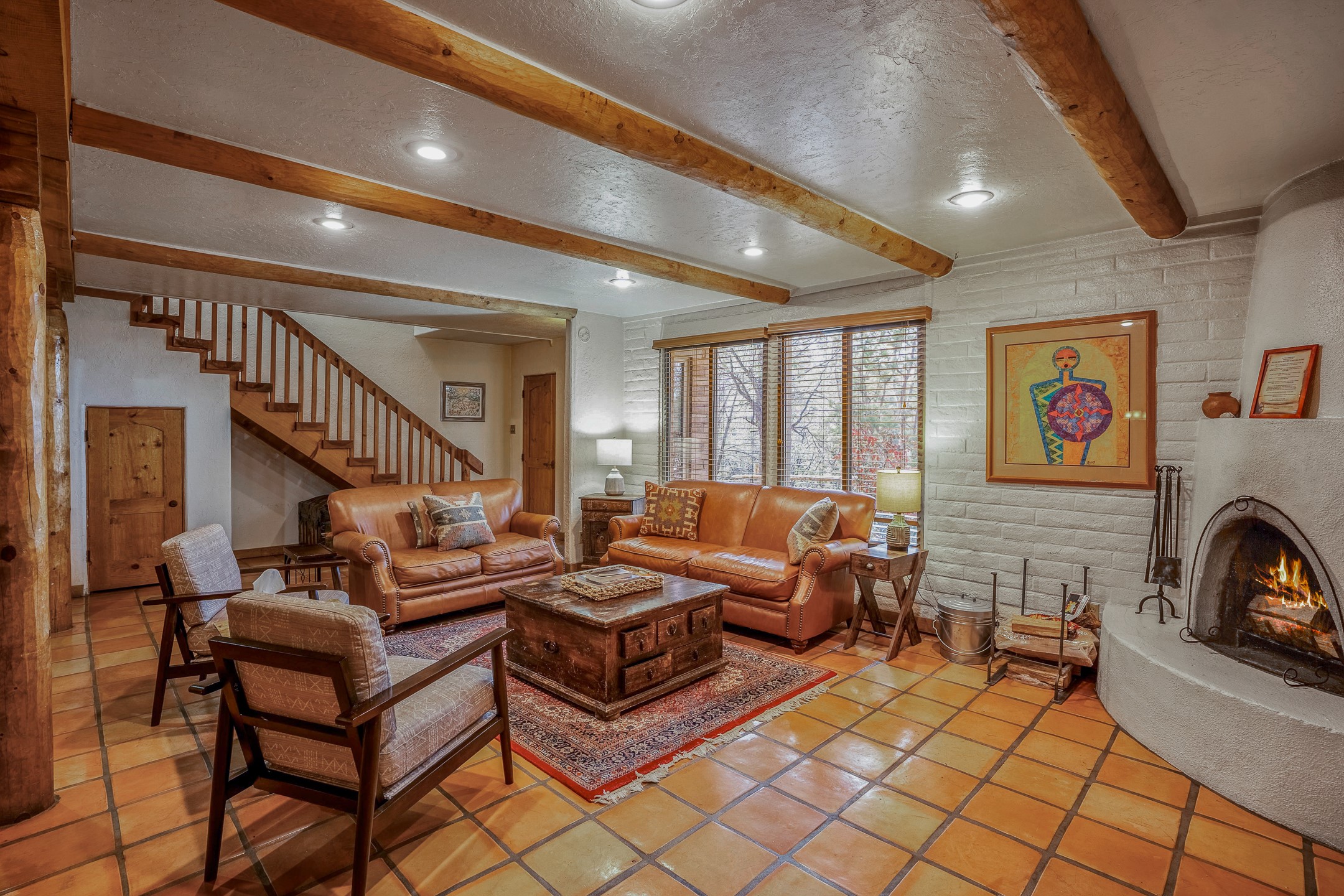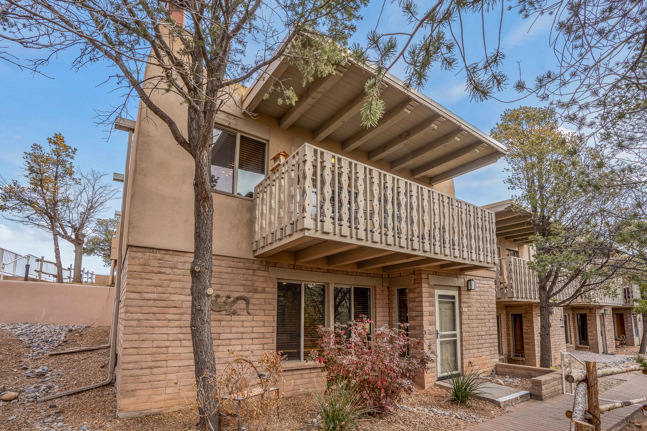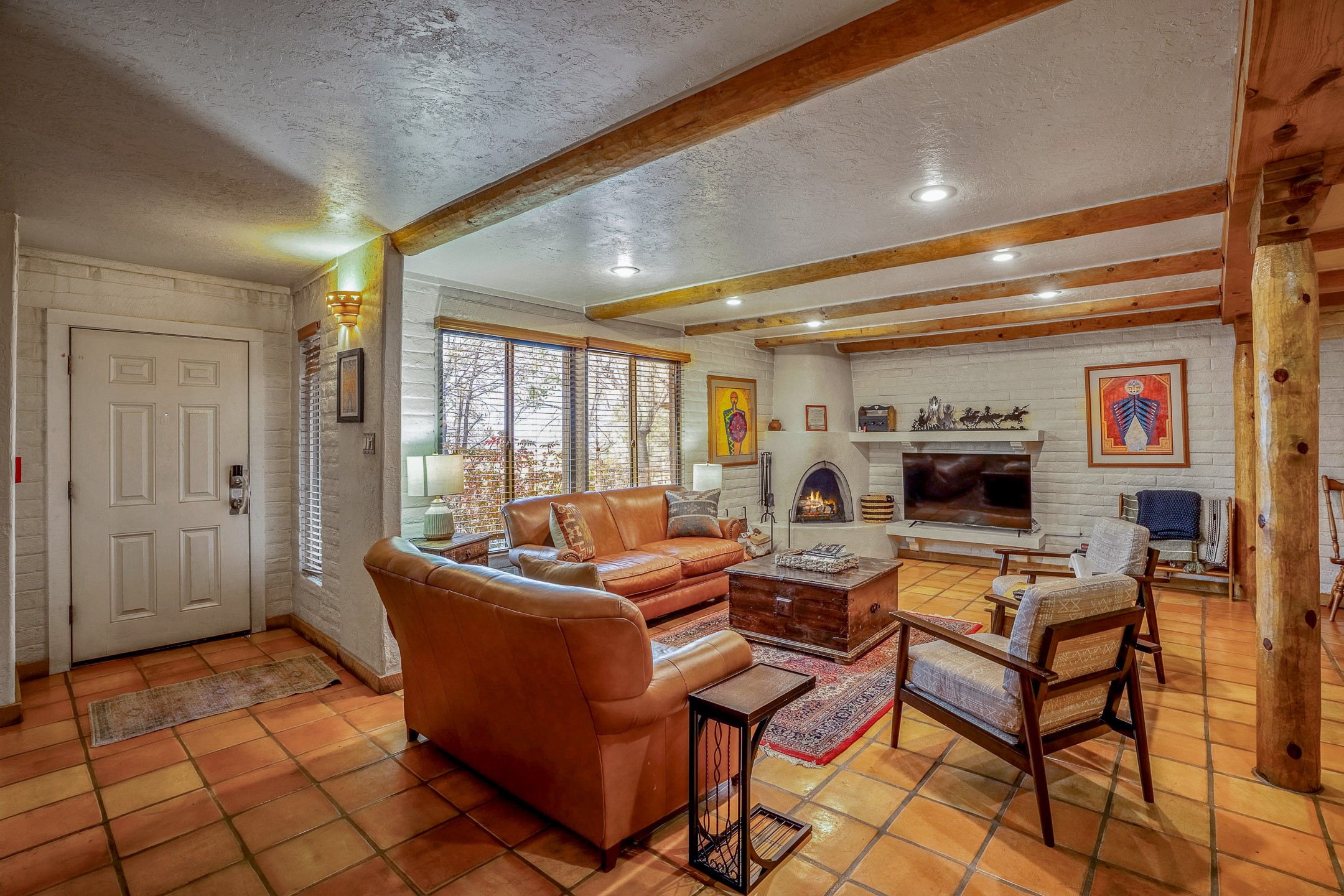 This downtown Santa Fe style 3 bedroom, 3 bathroom, 2-story condo is a rare offering at the Fort Marcy Compound, located just 6 blocks from the famous downtown Santa Fe plaza! Enjoy the indoor swimming pool and hot tub any time of year, and the beautiful, forested setting with deer and other wildlife visitors. This home features central refrigerated air-conditioning and forced-air heat, all new in 2025. The roof is new as of 2024. Walk to the famous Santa Fe Plaza and downtown to a range of events, from Indian Market, Spanish Market, Fiestas, and restaurants, cafes, shops and museums. Immerse yourself in the Santa Fe art scene, then return to your cozy condo to relax in front of the wood-burning kiva fireplace. Fort Marcy Park and Cross of the Martyrs is just across the road, affording great views of Santa Fe and the Sangre de Cristo Mountains. Also close to Santa Fe highlights - skiing, hiking, day trips to Abiquiu, Ghost Ranch and beyond. Just an hour from Albuquerque. ALL FURNISHINGS convey with sale at zero dollars! Including artwork, kitchen supplies and equipment, and accessories, making this a truly 100% turn-key property! The HOA ALLOWS SHORT-TERM RENTALS, and offers a vacation rental program with on-site professional management, including a staff of housekeepers, maintenance personnel, reception desk, concierge services, shuttle service, etc. Ask listing broker for details. This property is ideal for a short-term rental, vacation home, or full-time residence!