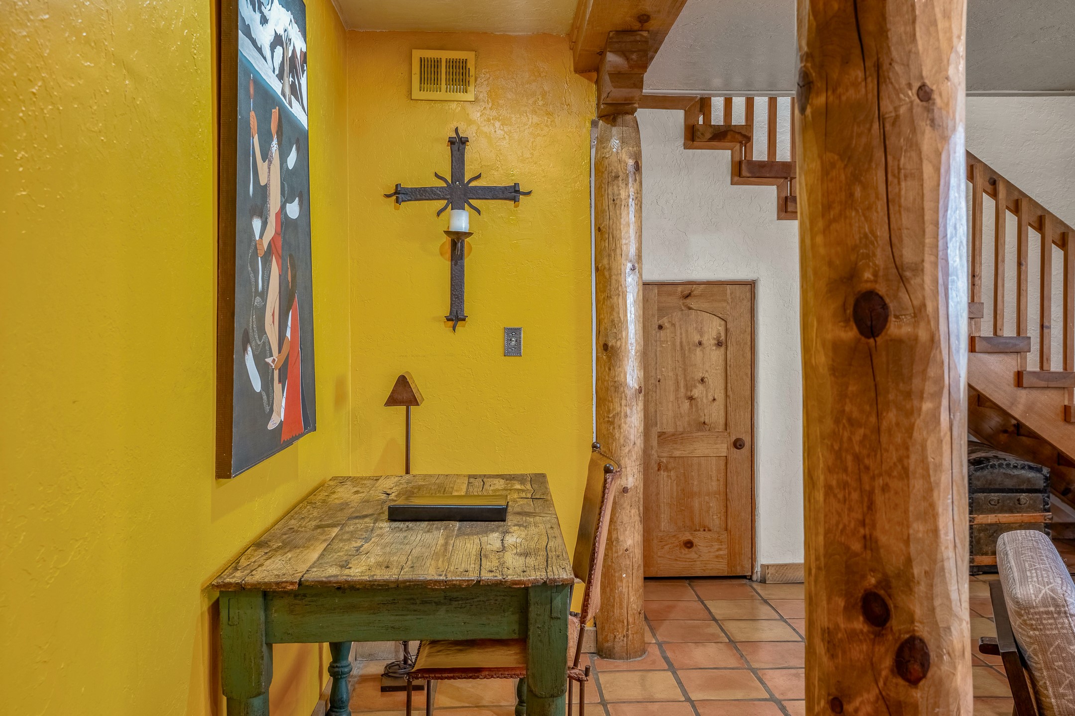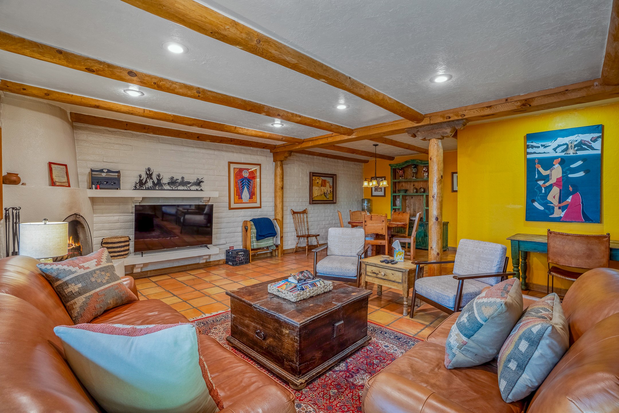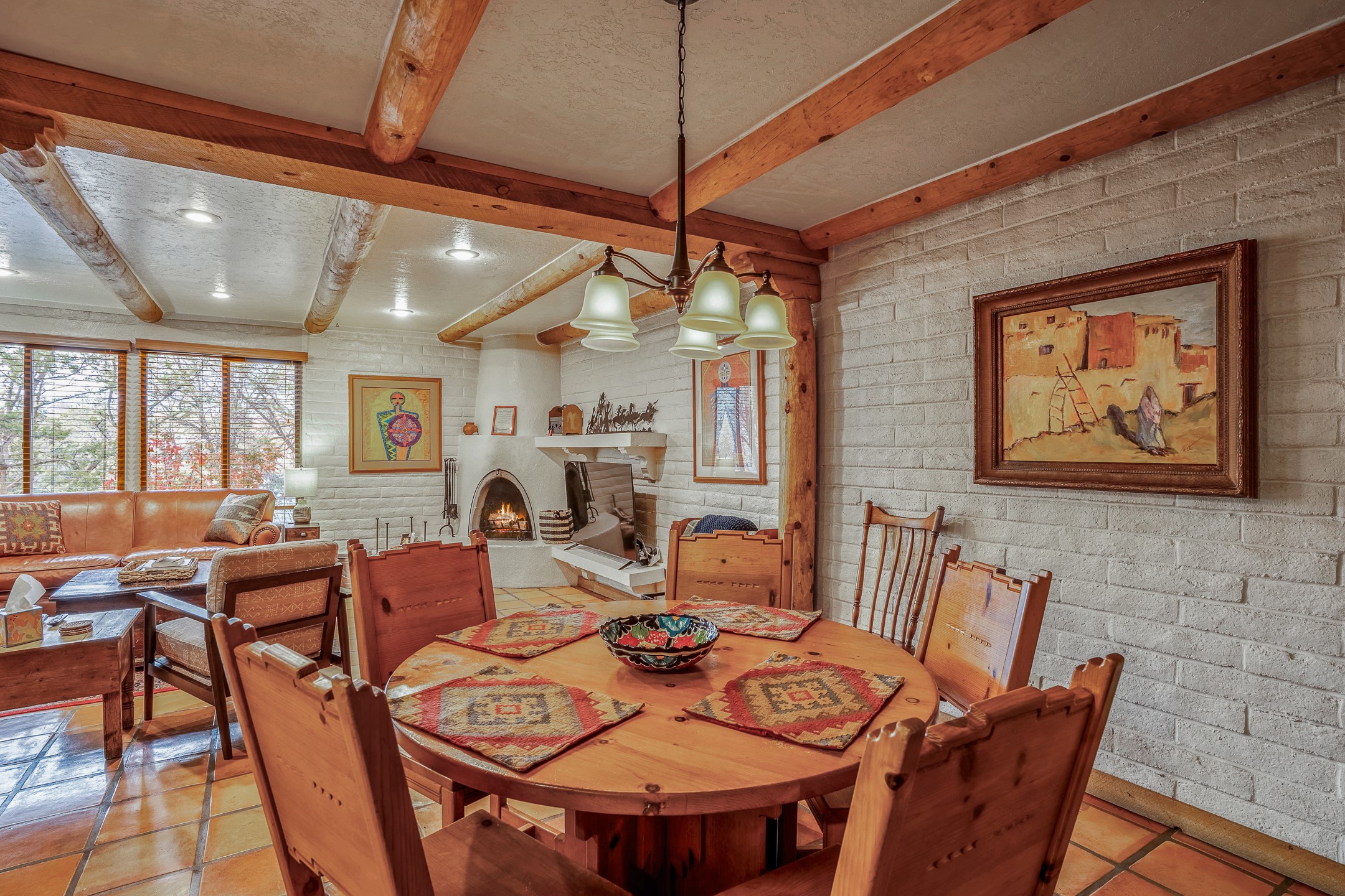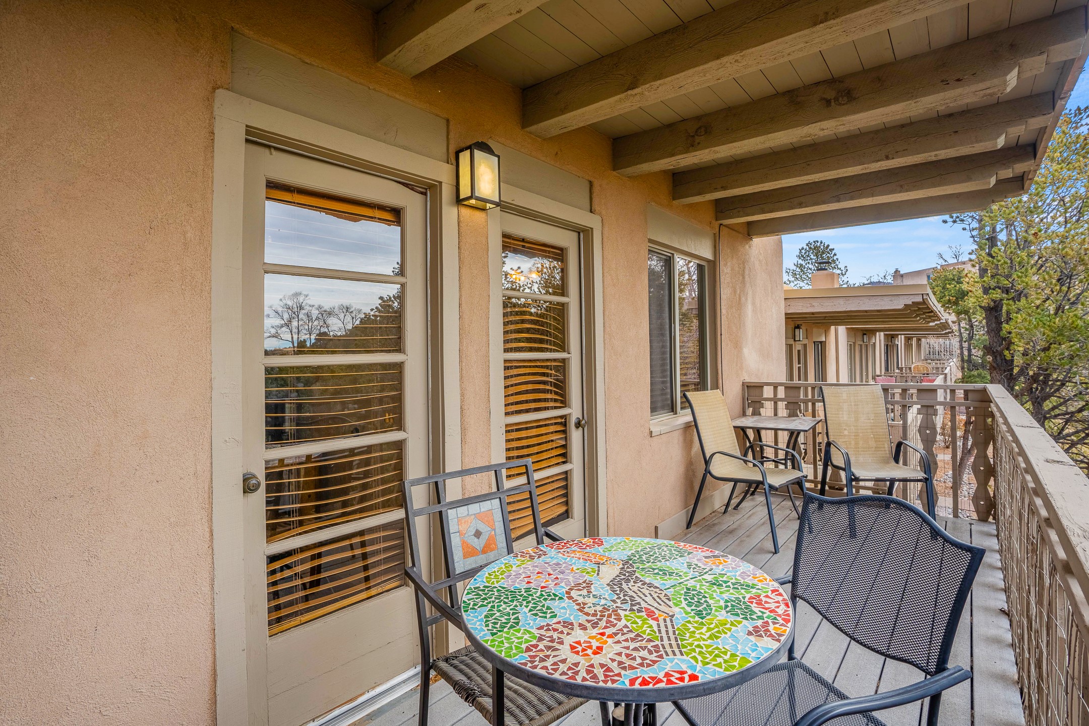 This downtown Santa Fe style 3 bedroom, 3 bathroom, 2-story condo is a rare offering at the Fort Marcy Compound, located just 6 blocks from the famous downtown Santa Fe plaza! Enjoy the indoor swimming pool and hot tub any time of year, and the beautiful, forested setting with deer and other wildlife visitors. This home features central refrigerated air-conditioning and forced-air heat, all new in 2025. The roof is new as of 2024. Walk to the famous Santa Fe Plaza and downtown to a range of events, from Indian Market, Spanish Market, Fiestas, and restaurants, cafes, shops and museums. Immerse yourself in the Santa Fe art scene, then return to your cozy condo to relax in front of the wood-burning kiva fireplace. Fort Marcy Park and Cross of the Martyrs is just across the road, affording great views of Santa Fe and the Sangre de Cristo Mountains. Also close to Santa Fe highlights - skiing, hiking, day trips to Abiquiu, Ghost Ranch and beyond. Just an hour from Albuquerque. ALL FURNISHINGS convey with sale at zero dollars! Including artwork, kitchen supplies and equipment, and accessories, making this a truly 100% turn-key property! The HOA ALLOWS SHORT-TERM RENTALS, and offers a vacation rental program with on-site professional management, including a staff of housekeepers, maintenance personnel, reception desk, concierge services, shuttle service, etc. Ask listing broker for details. This property is ideal for a short-term rental, vacation home, or full-time residence!