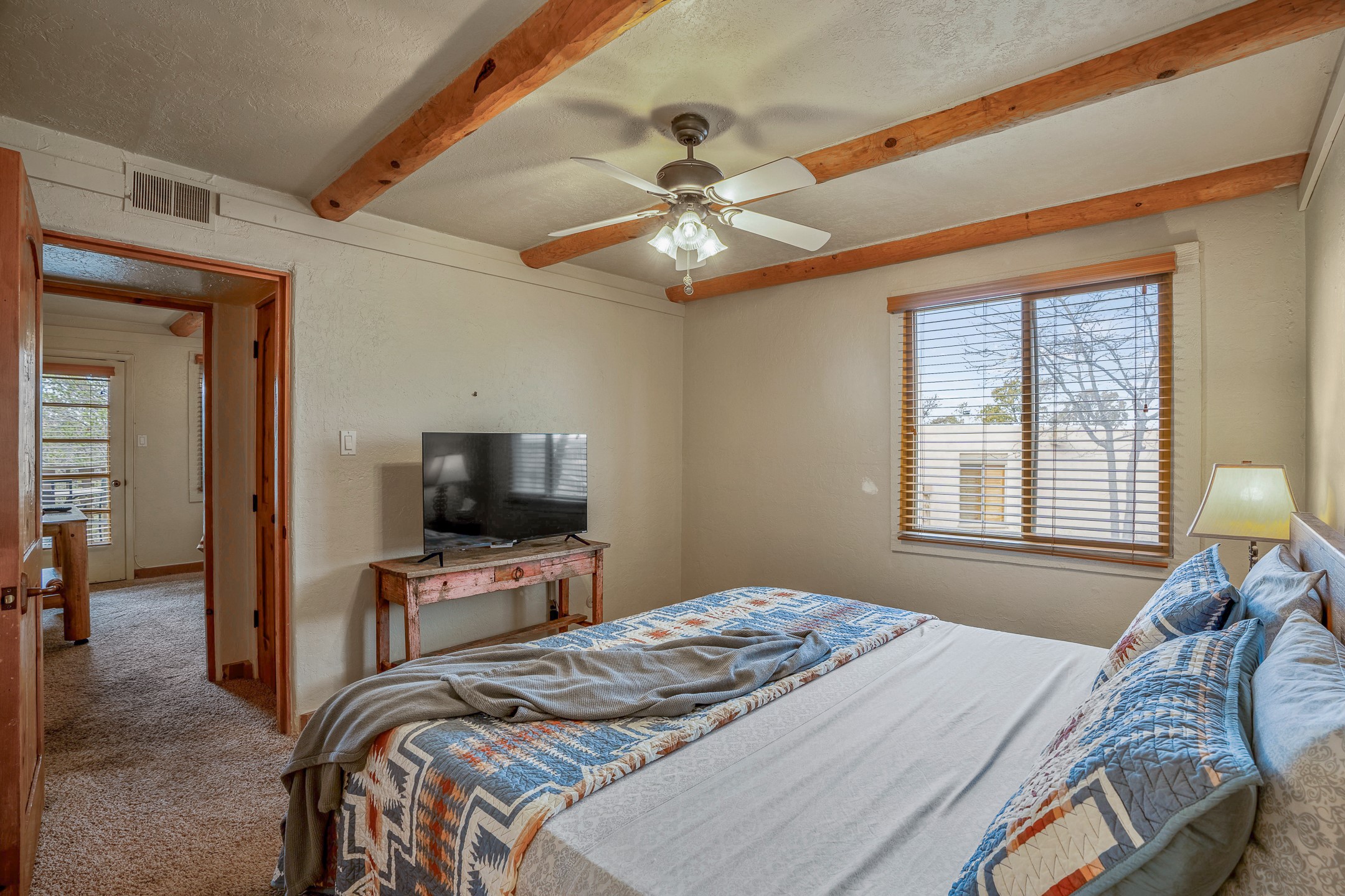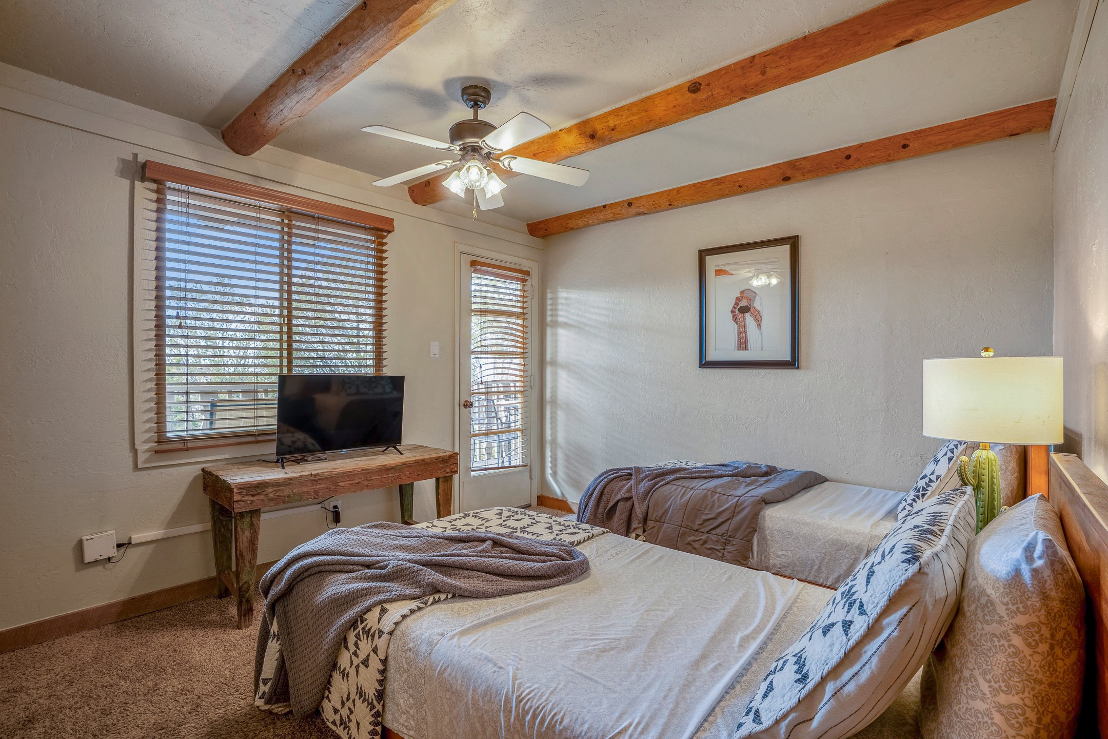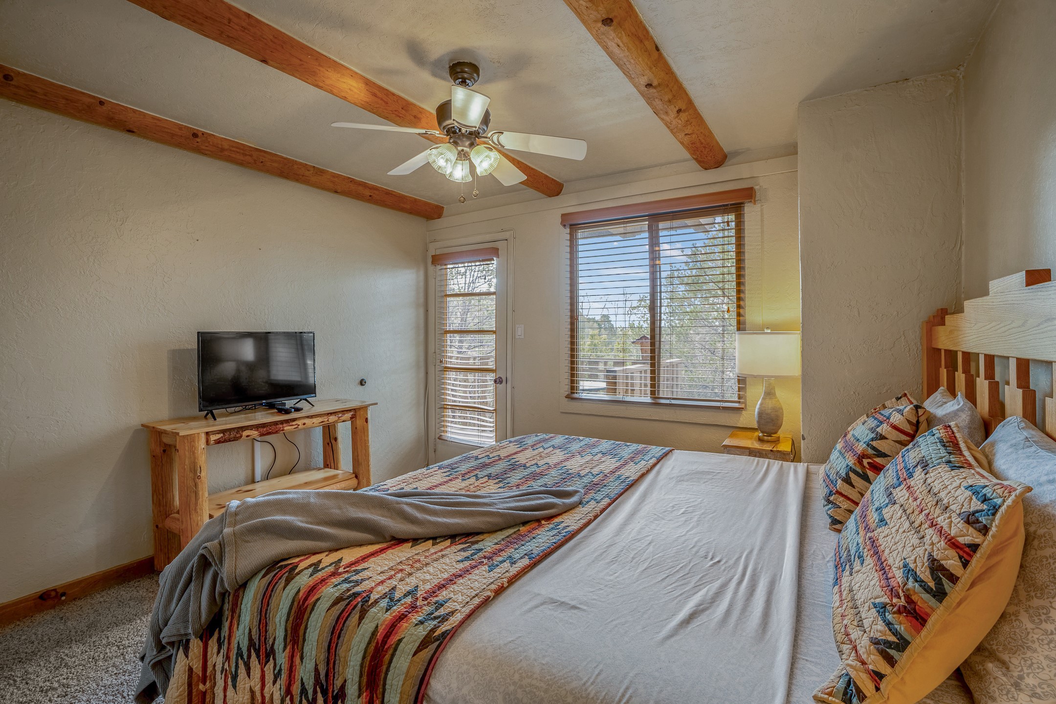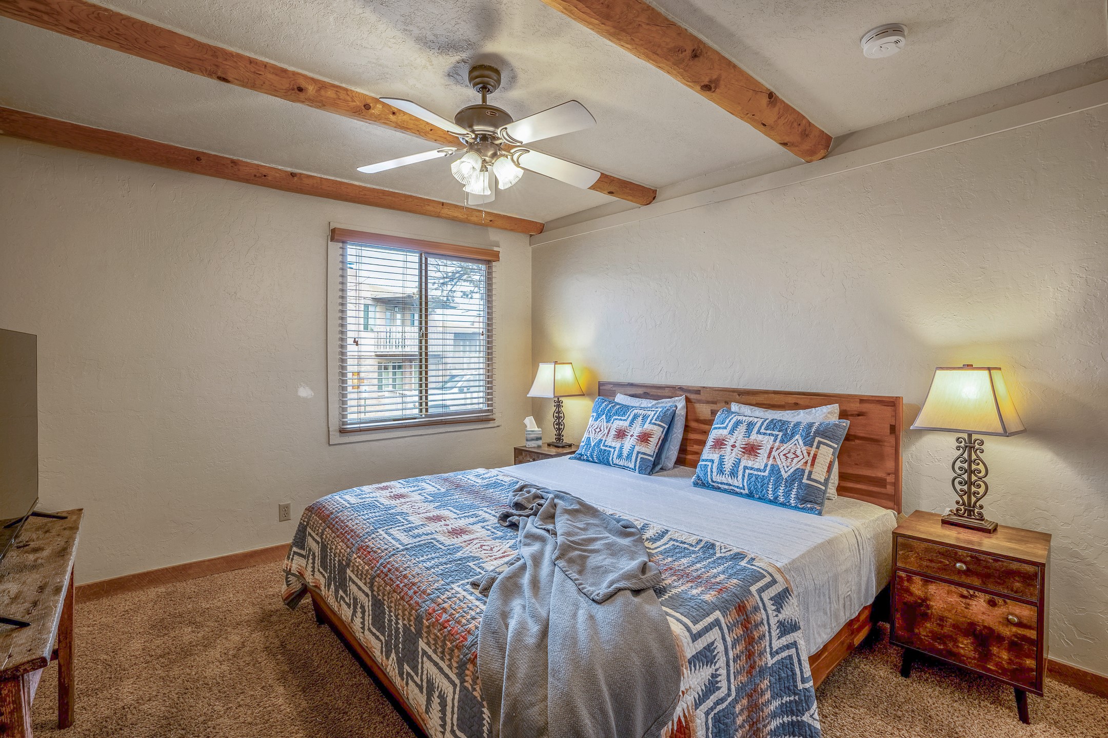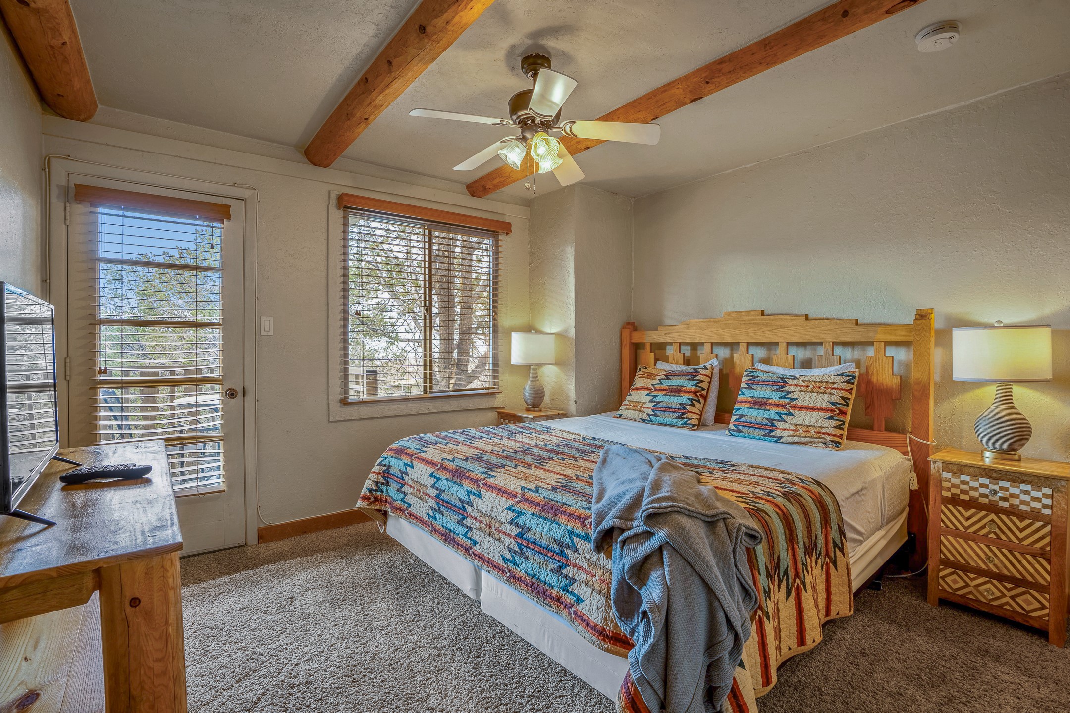 This downtown Santa Fe style 3 bedroom, 3 bathroom, 2-story condo is a rare offering at the Fort Marcy Compound, located just 6 blocks from the famous downtown Santa Fe plaza! Enjoy the indoor swimming pool and hot tub any time of year, and the beautiful, forested setting with deer and other wildlife visitors. This home features central refrigerated air-conditioning and forced-air heat, all new in 2025. The roof is new as of 2024. Walk to the famous Santa Fe Plaza and downtown to a range of events, from Indian Market, Spanish Market, Fiestas, and restaurants, cafes, shops and museums. Immerse yourself in the Santa Fe art scene, then return to your cozy condo to relax in front of the wood-burning kiva fireplace. Fort Marcy Park and Cross of the Martyrs is just across the road, affording great views of Santa Fe and the Sangre de Cristo Mountains. Also close to Santa Fe highlights - skiing, hiking, day trips to Abiquiu, Ghost Ranch and beyond. Just an hour from Albuquerque. ALL FURNISHINGS convey with sale at zero dollars! Including artwork, kitchen supplies and equipment, and accessories, making this a truly 100% turn-key property! The HOA ALLOWS SHORT-TERM RENTALS, and offers a vacation rental program with on-site professional management, including a staff of housekeepers, maintenance personnel, reception desk, concierge services, shuttle service, etc. Ask listing broker for details. This property is ideal for a short-term rental, vacation home, or full-time residence!