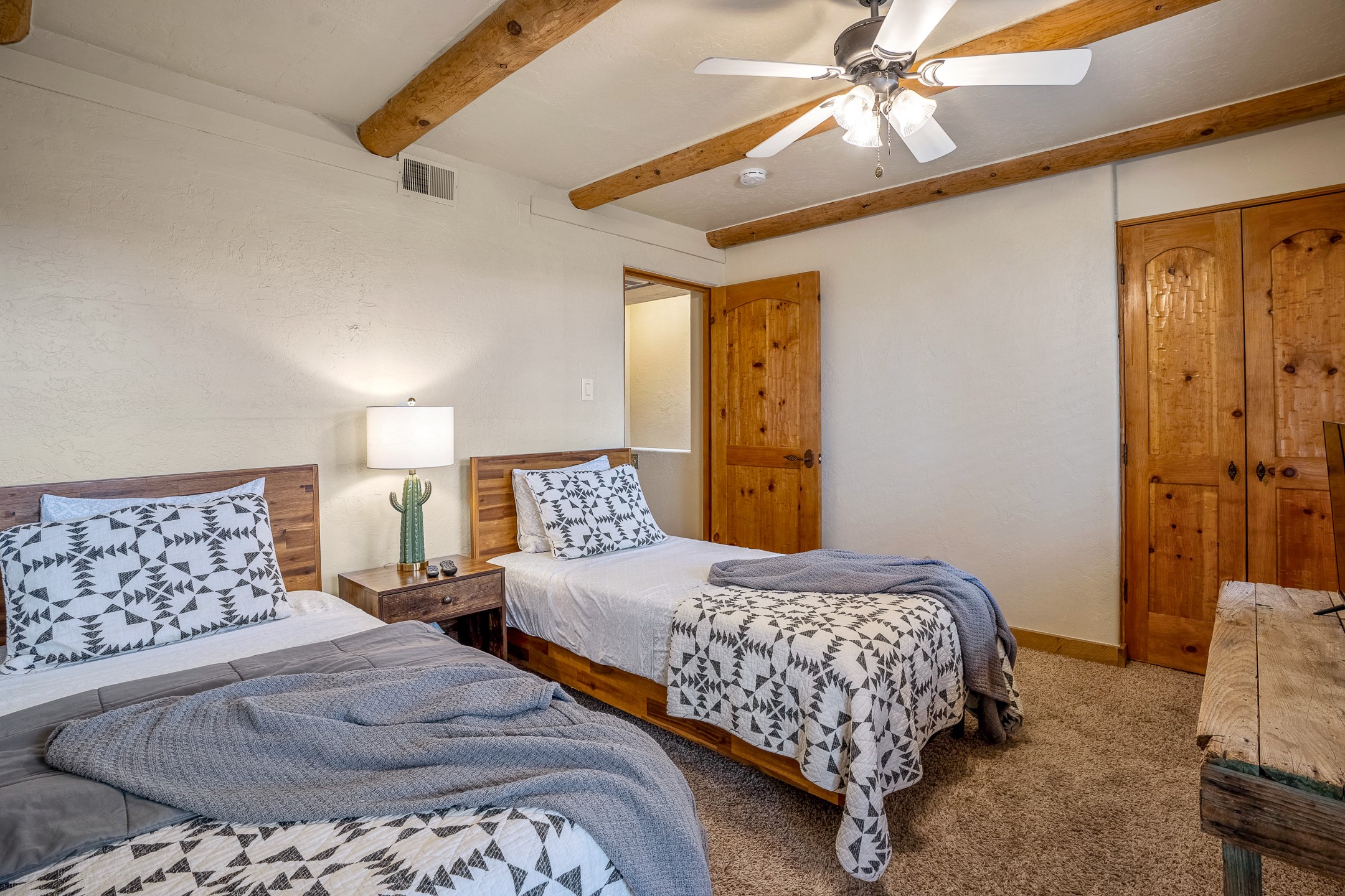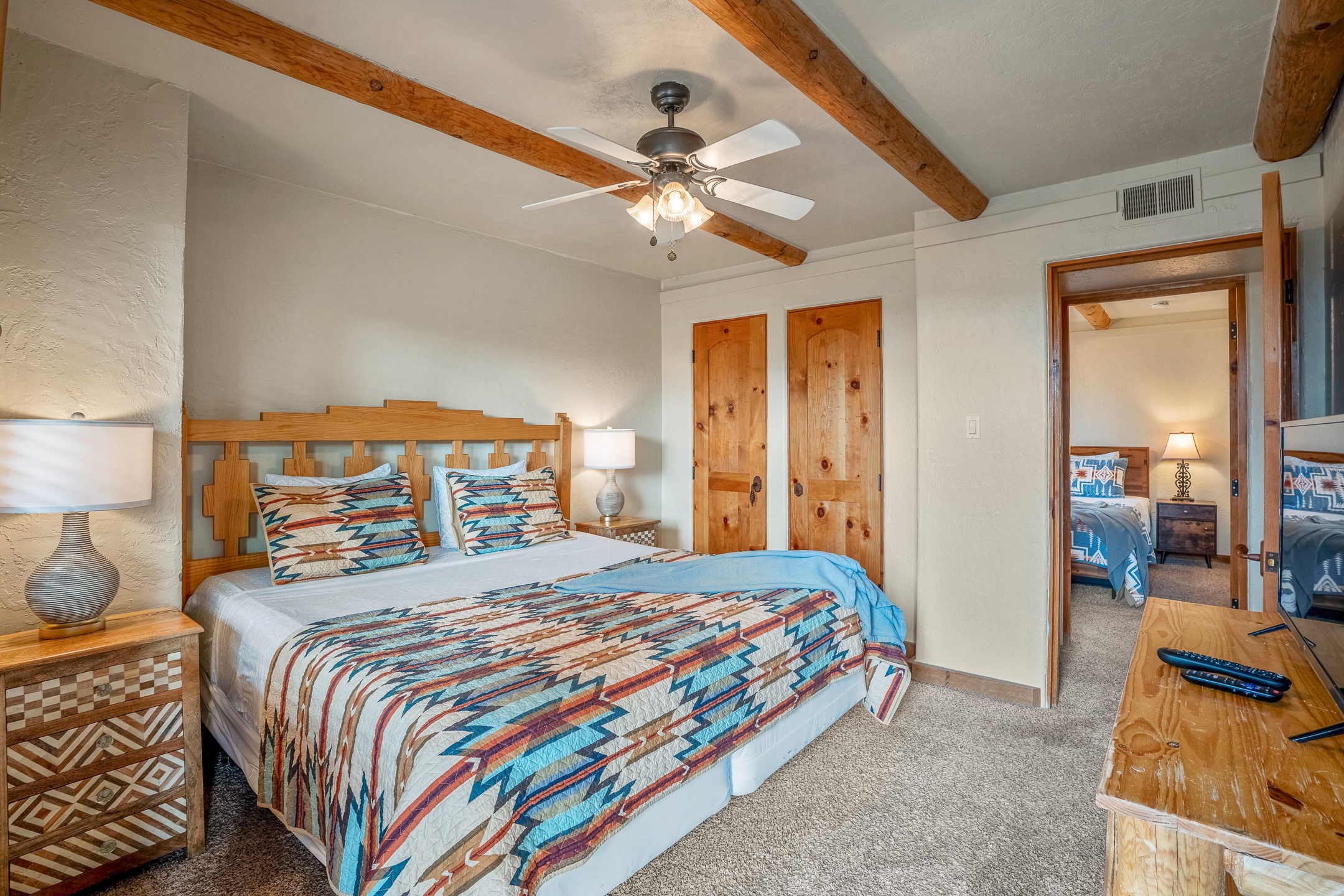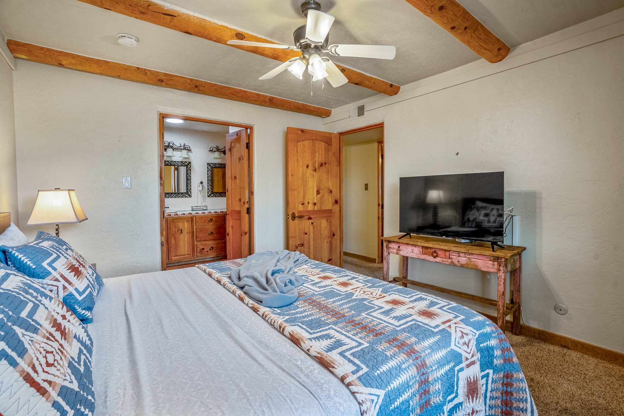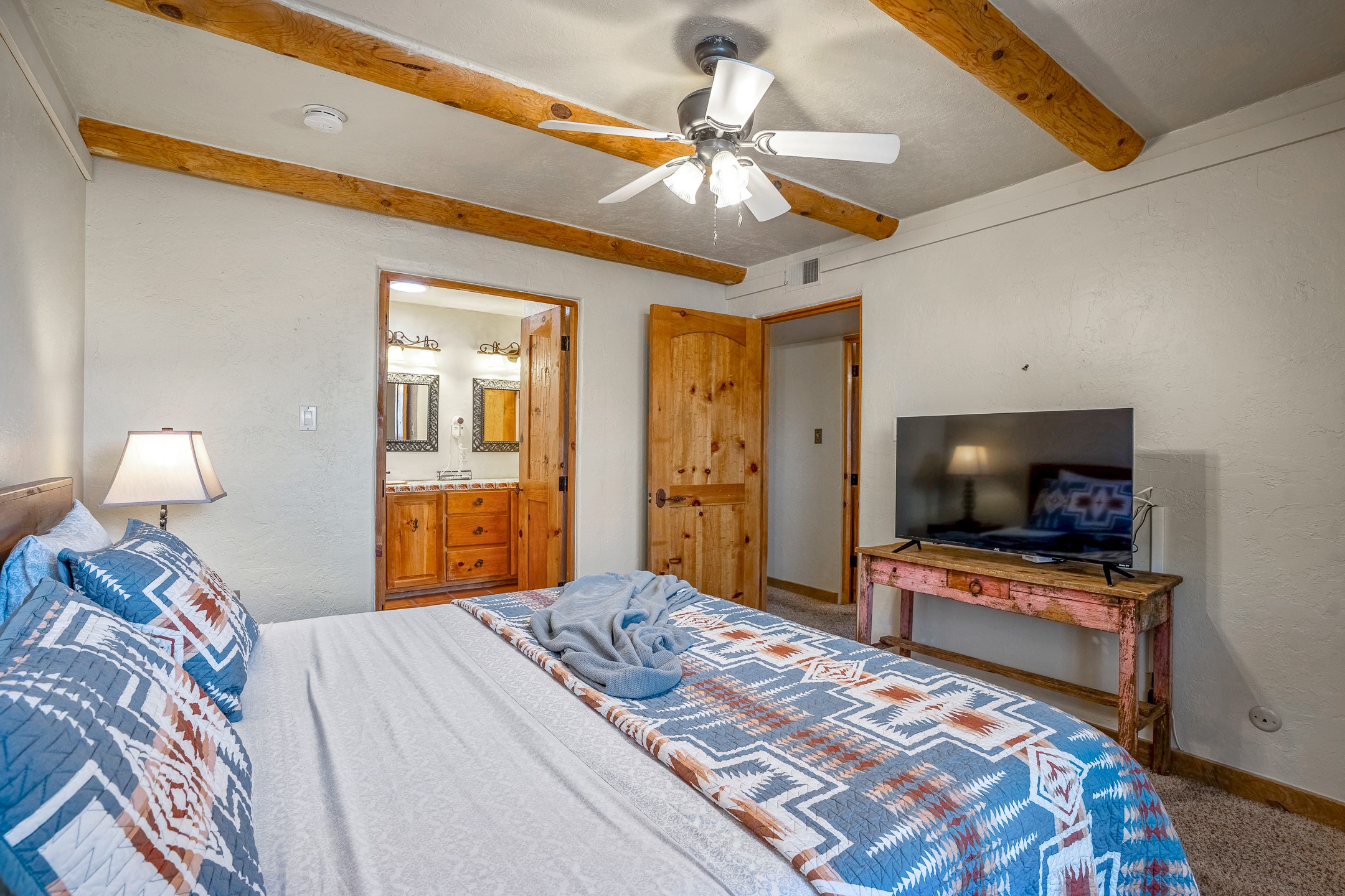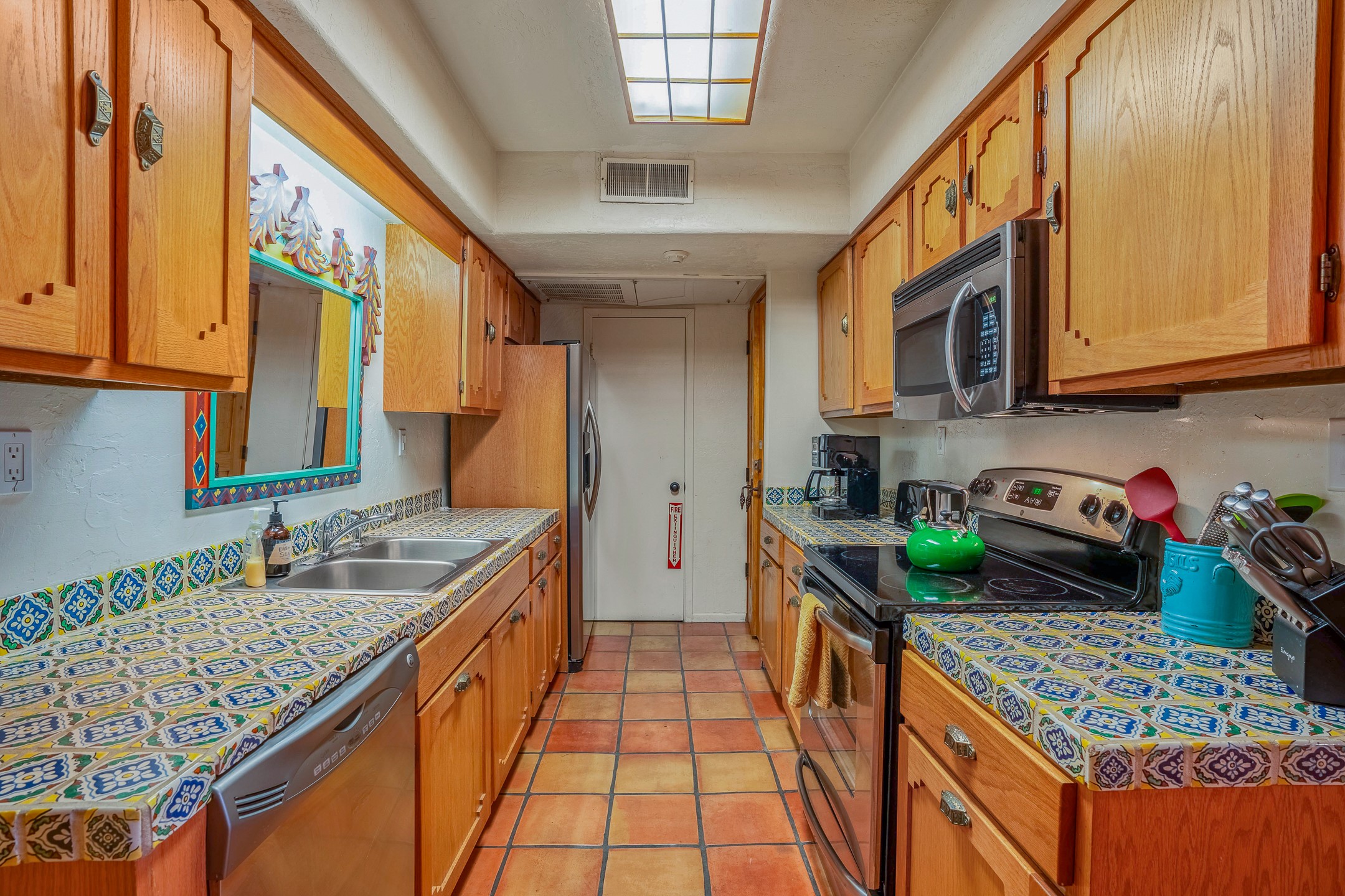 This downtown Santa Fe style 3 bedroom, 3 bathroom, 2-story condo is a rare offering at the Fort Marcy Compound, located just 6 blocks from the famous downtown Santa Fe plaza! Enjoy the indoor swimming pool and hot tub any time of year, and the beautiful, forested setting with deer and other wildlife visitors. This home features central refrigerated air-conditioning and forced-air heat, all new in 2025. The roof is new as of 2024. Walk to the famous Santa Fe Plaza and downtown to a range of events, from Indian Market, Spanish Market, Fiestas, and restaurants, cafes, shops and museums. Immerse yourself in the Santa Fe art scene, then return to your cozy condo to relax in front of the wood-burning kiva fireplace. Fort Marcy Park and Cross of the Martyrs is just across the road, affording great views of Santa Fe and the Sangre de Cristo Mountains. Also close to Santa Fe highlights - skiing, hiking, day trips to Abiquiu, Ghost Ranch and beyond. Just an hour from Albuquerque. ALL FURNISHINGS convey with sale at zero dollars! Including artwork, kitchen supplies and equipment, and accessories, making this a truly 100% turn-key property! The HOA ALLOWS SHORT-TERM RENTALS, and offers a vacation rental program with on-site professional management, including a staff of housekeepers, maintenance personnel, reception desk, concierge services, shuttle service, etc. Ask listing broker for details. This property is ideal for a short-term rental, vacation home, or full-time residence!