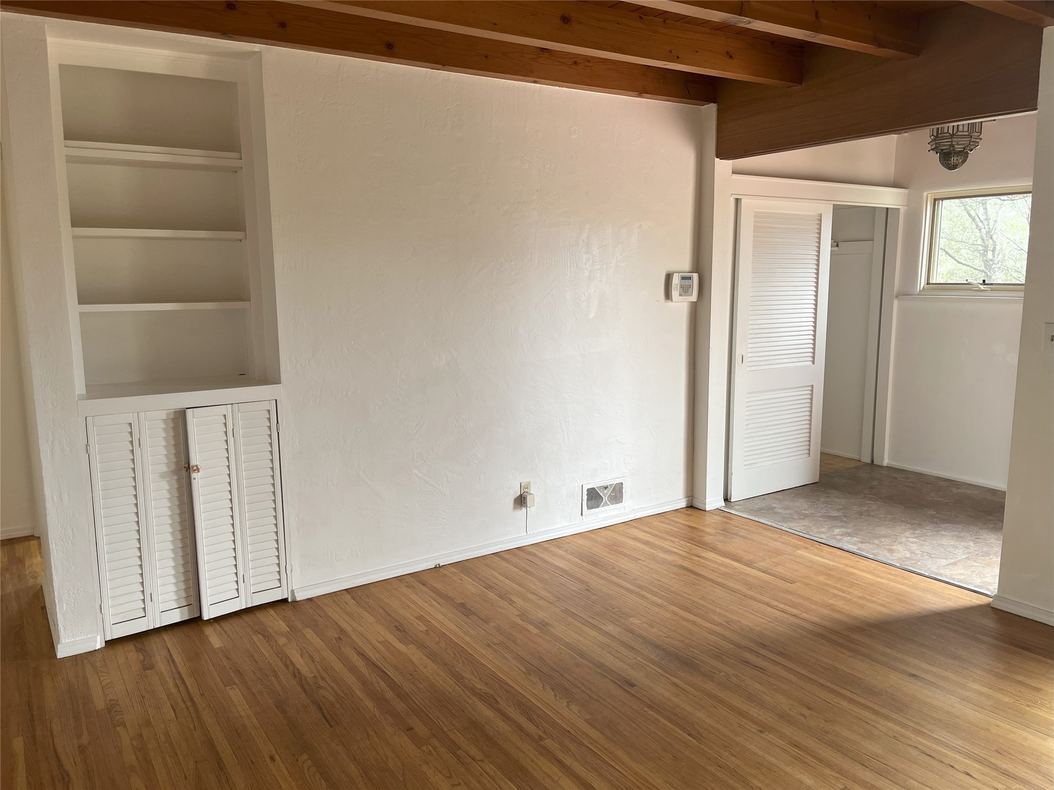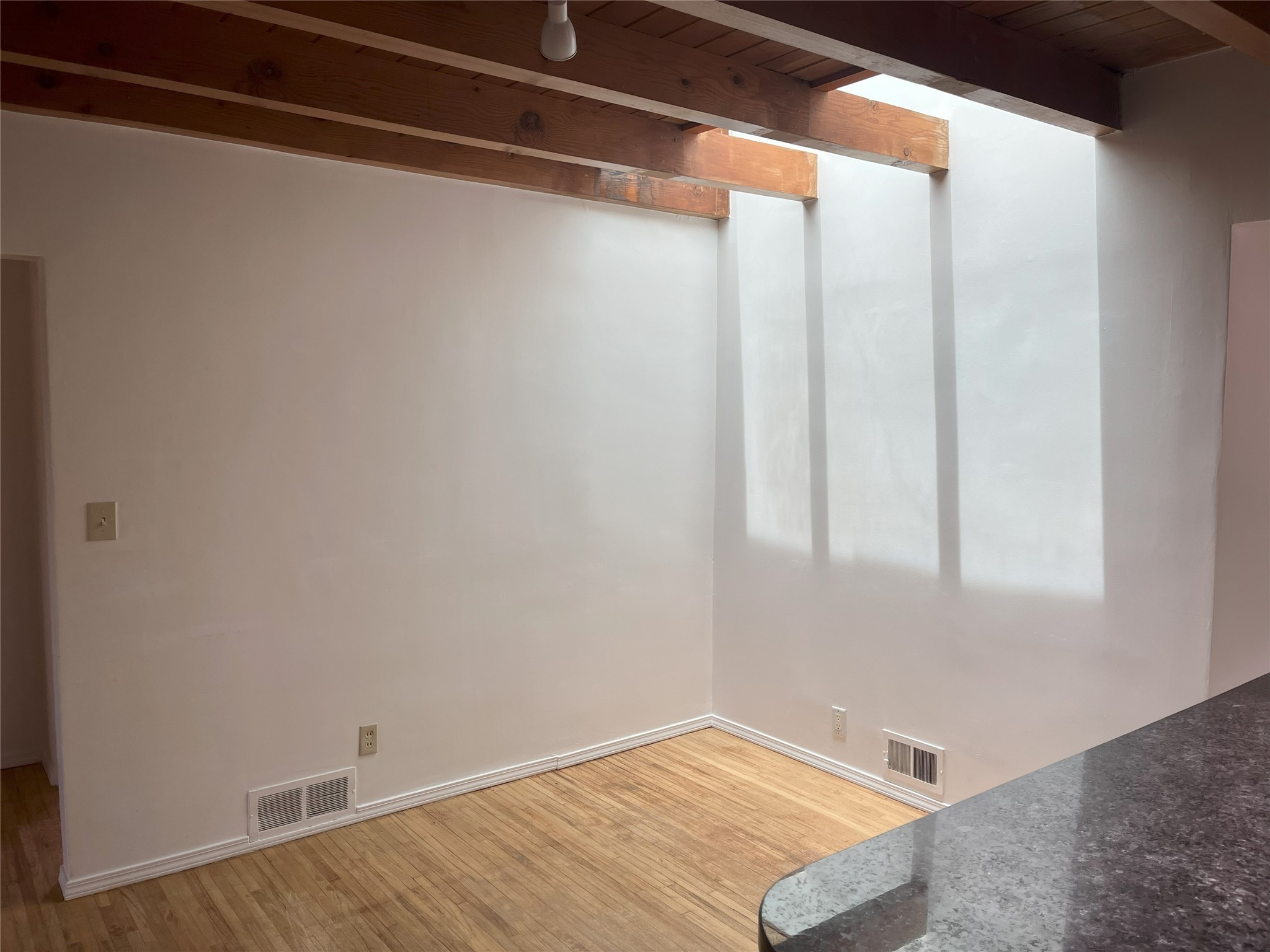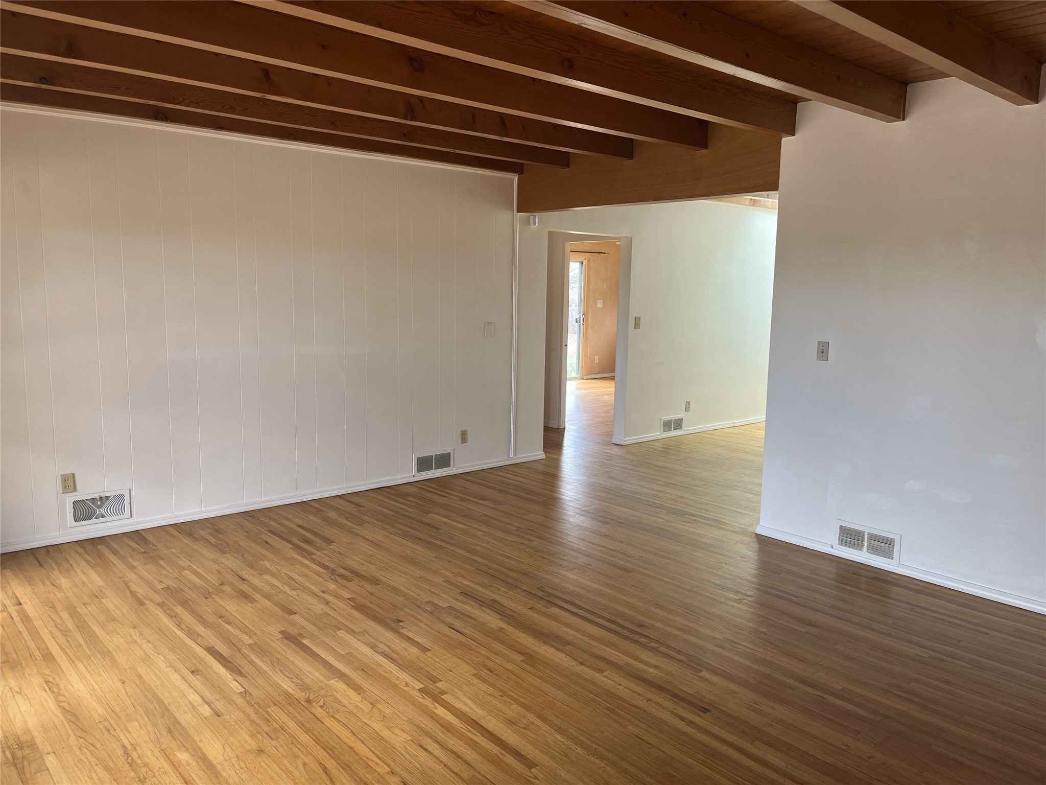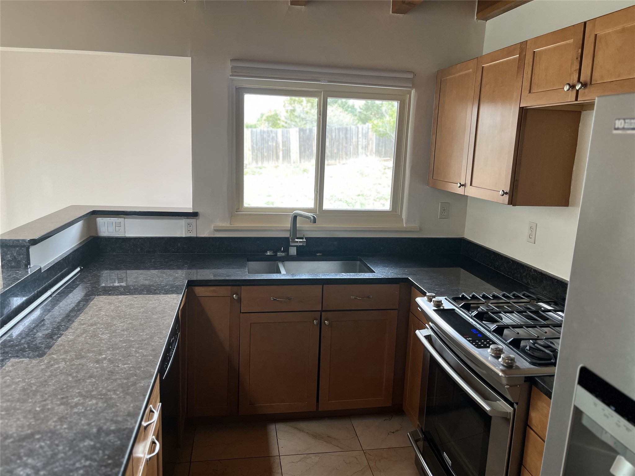 2,000 SF Mid-century Stamm home on .5 acre just south of South Capital. Close to schools,hospital, parks, and hiking. 3 Bedrooms, 2.5 Baths with a large second living area/den or possible fourth bedroom. A charming south-facing front patio welcomes you into the home. Walk through the entryway into a light-filled living room with exposed beams and original oak hardwood floors. The open floorplan is inviting, with the living room opening into a dining area and a beautifully updated kitchen with dining bar and granite counter tops. Skylight in the kitchen and dinning area lets in natural light. Excellent separation of bedrooms with the master and den at one end of the house and the two other bedrooms at the other. Double sinks and slate shower in the master bath. From the master bedroom, full-length glass doors lead outside and offer Jemez mountain views. Interior steps lead into the large and light-filled office or den, which boasts a Kiva fireplace and glass doors leading to a small shaded patio. Dedicated laundry room with utility sink. The concrete pad to the east of the house is perfect for RV/toys parking or possible basketball practice zone. Paved circular driveway and large yard with lots of room to garden or add-on. Several pinon trees in the front of the house. Backyard is a blank slate with views of the Jemez. Roof was redone in 2022 and is under transferable warranty. Aerial photos showing property location were taken before roof re-do.