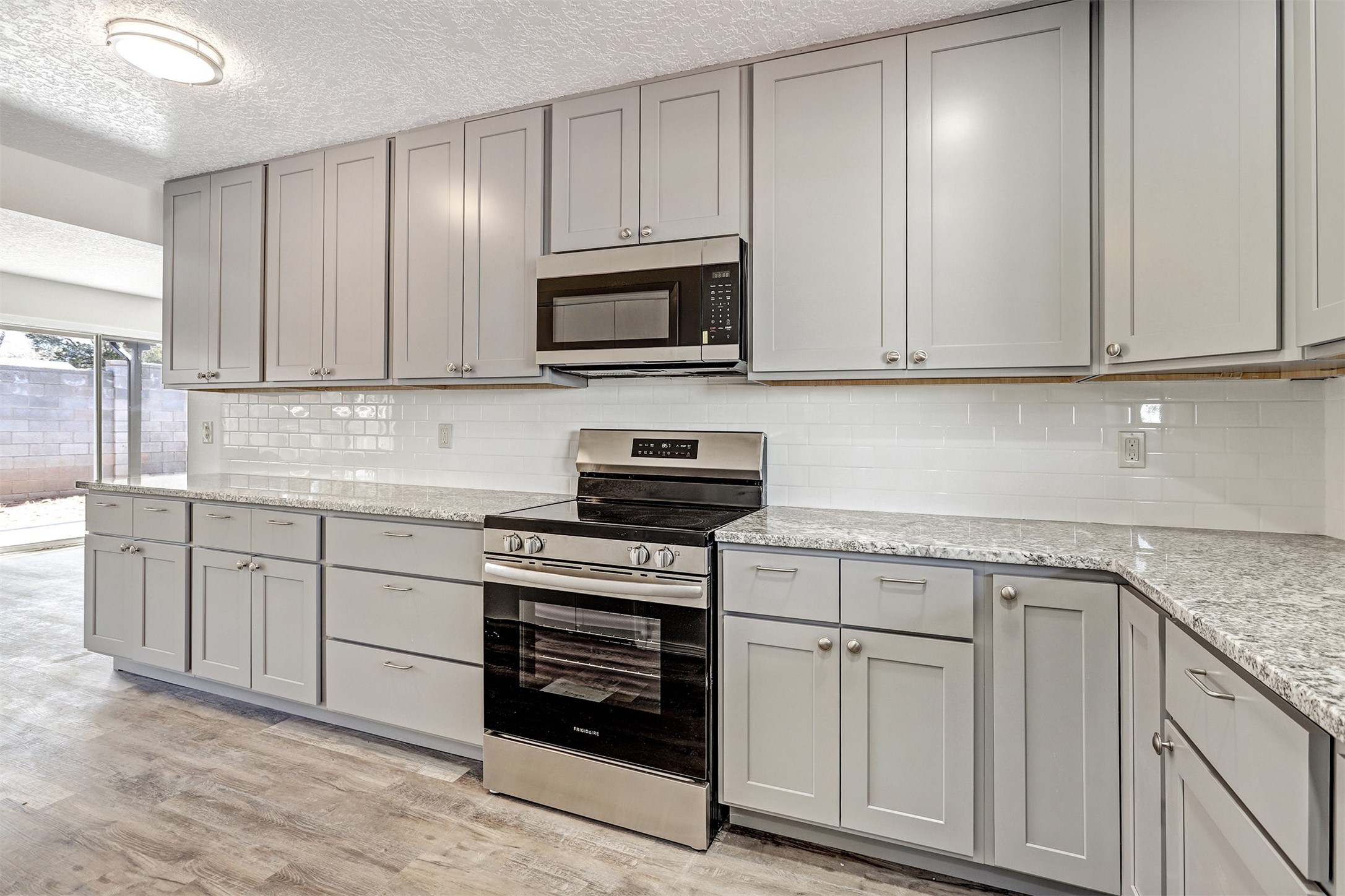Welcome to this beautifully updated 3-bedroom, 2-bathroom single-story home, featuring a tin roof and a host of modern upgrades throughout. The open floor plan is perfect for everyday living and entertaining. Step inside to discover a brand-new kitchen with stylish new cabinets, stunning granite countertops, and stainless steel appliances. The new luxury vinyl plank (LVP) flooring throughout the main areas adds a touch of sophistication, while the new carpet in the bedrooms provides comfort and warmth. The entire home has been freshly painted both inside and out, creating a bright, fresh ambiance. All-new light fixtures add a modern flair to every room. Both bathrooms have been updated with new vanities, providing a sleek, modern look. Additional upgrades include a new garage door for added curb appeal and security. This home is move-in ready, offering a perfect blend of modern features and classic charm. Don't miss the opportunity to make this house your new home!