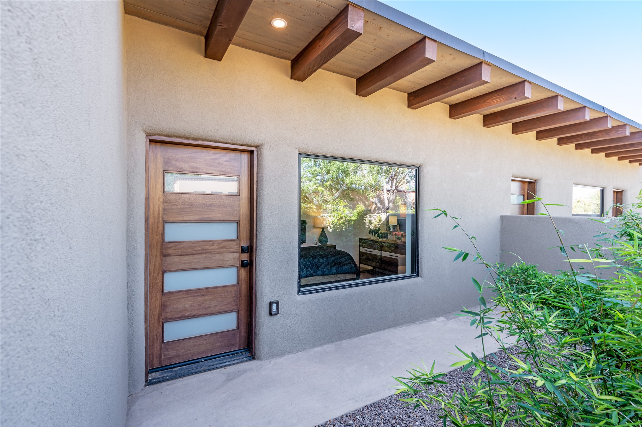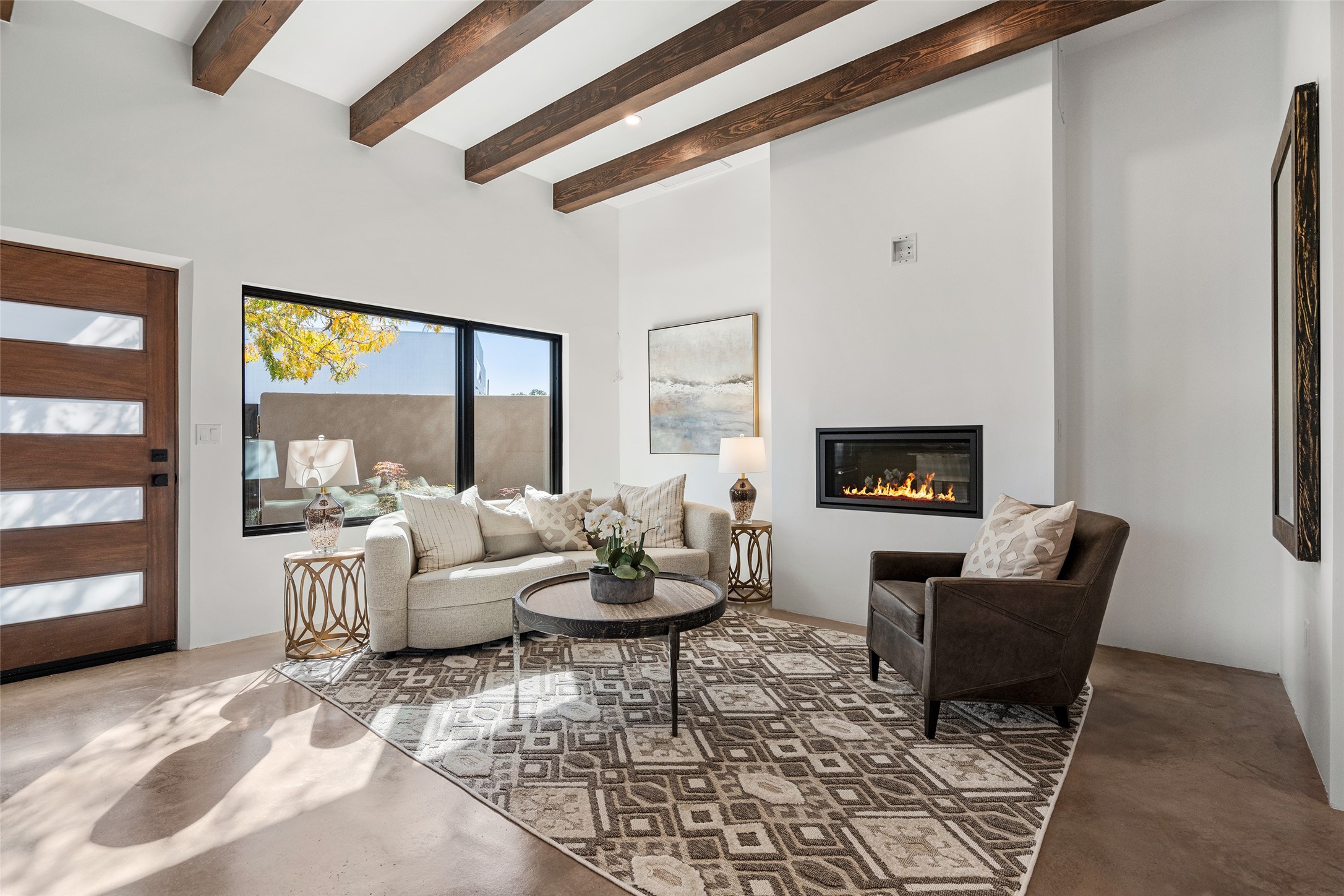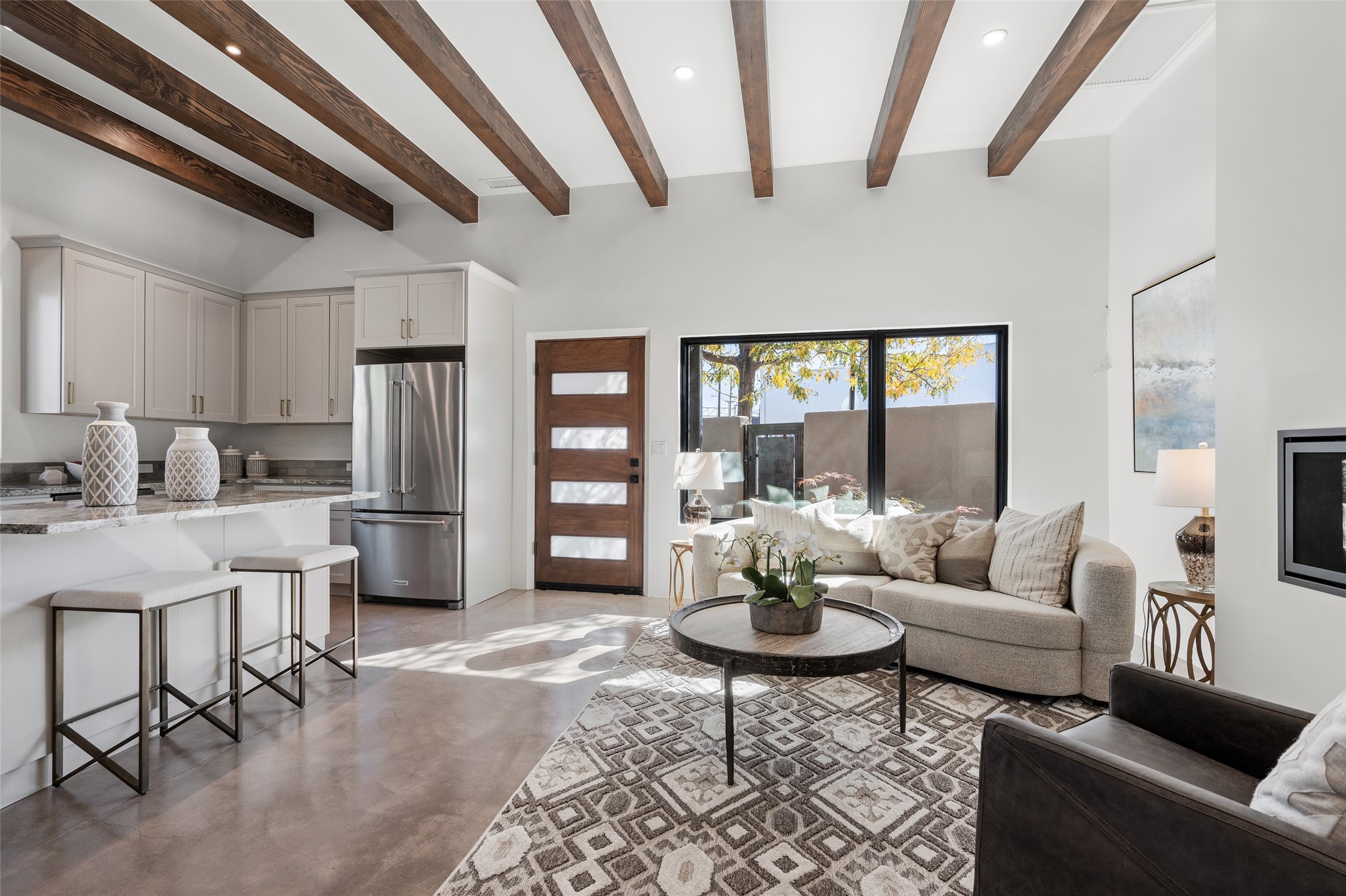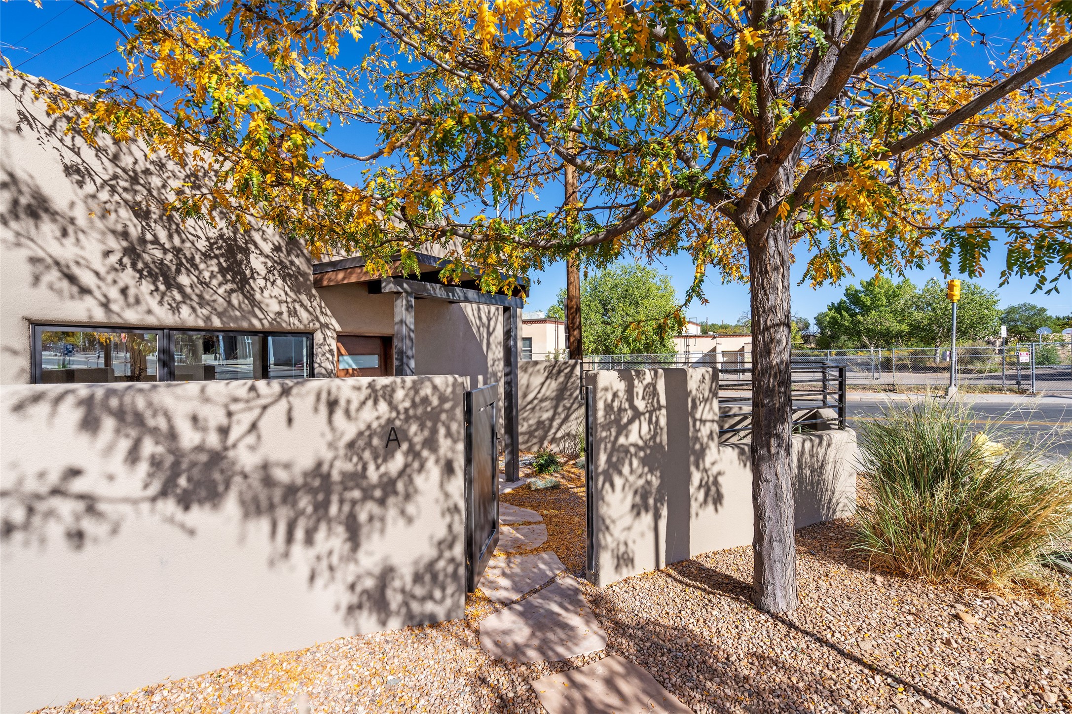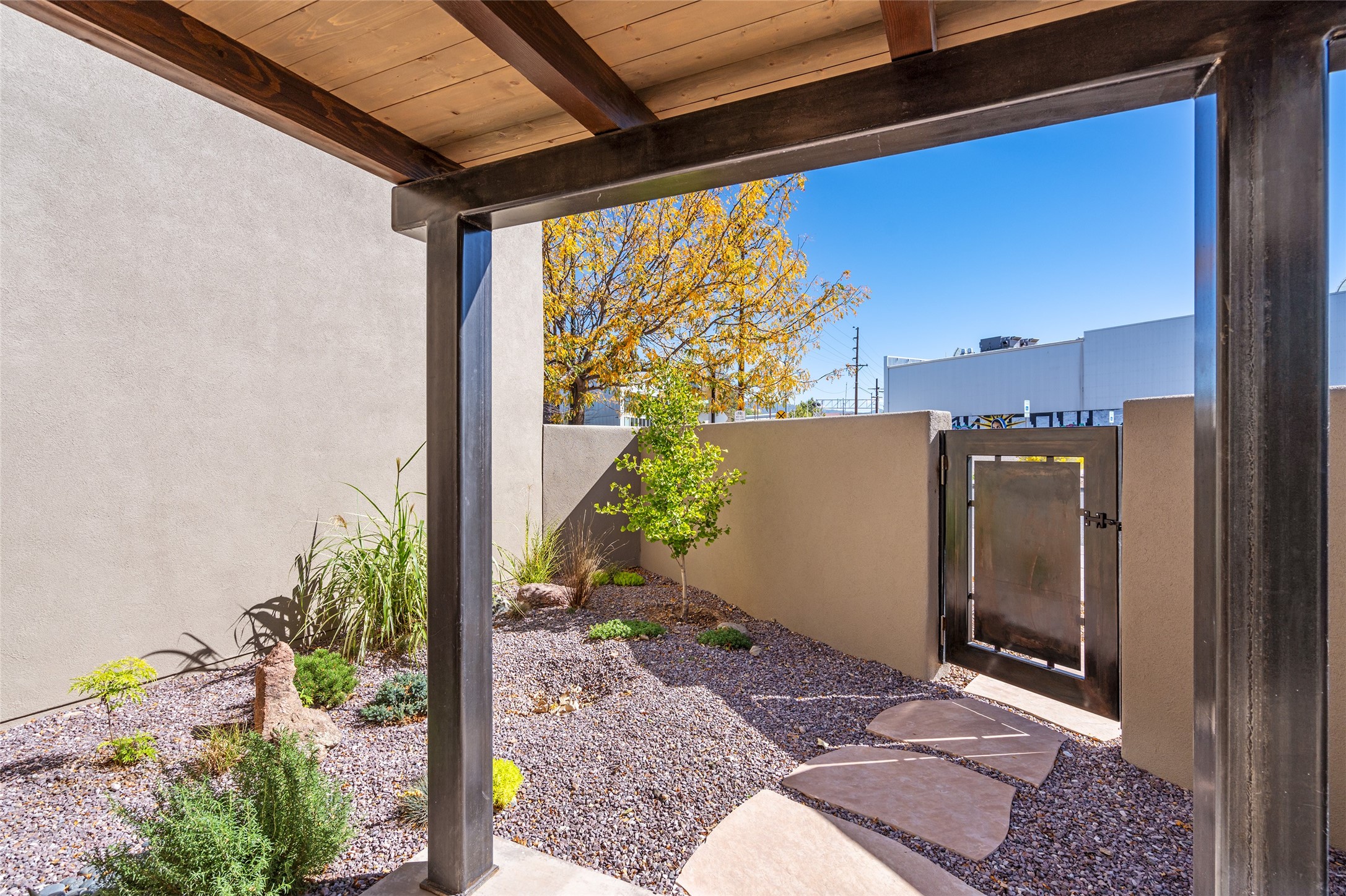 NEW CONSTRUCTION IN THE HEART OF THE RAILYARD! Newly constructed by True North Builders, one of Santa Fe's premier luxury builders, this contemporary property includes a MAIN HOUSE, a GUEST HOUSE and an attached 1-car GARAGE with direct entry. The 1,577 sq. ft. 2 bedroom /2 bathroom main house has an open concept design with beautiful stained concrete flooring, high ceilings with a combination of wood and steel beams, clerestory windows that offer great natural light/privacy and a sleek gas fireplace. The kitchen is the heart of this beautiful property with a large island with ample seating, granite countertops and Fisher Paykal stainless steel appliances. The generous primary suite has a deep soaking tub, a walk-in shower, double vanities and egress to a private patio. The 800 sq. ft. 1 bedroom/1 bathroom attached guest house offers the same level of excellence and finish as the main house and is perfect for your income generation or for friends and family. In-floor radiant heat/air conditioning. 1618 Paseo De Peralta offers one the chance to live in the heart and soul of Santa Fe's exciting Railyard district and, at the same time, offers an incredible opportunity to invest in the new, budding era of Santa Fe.
