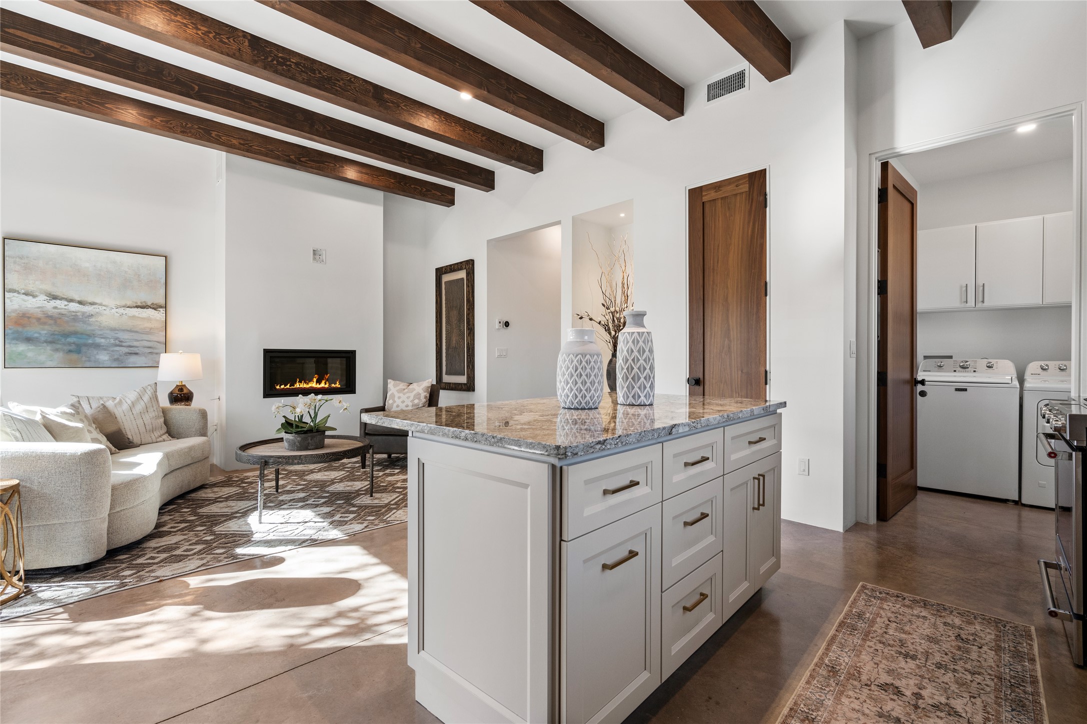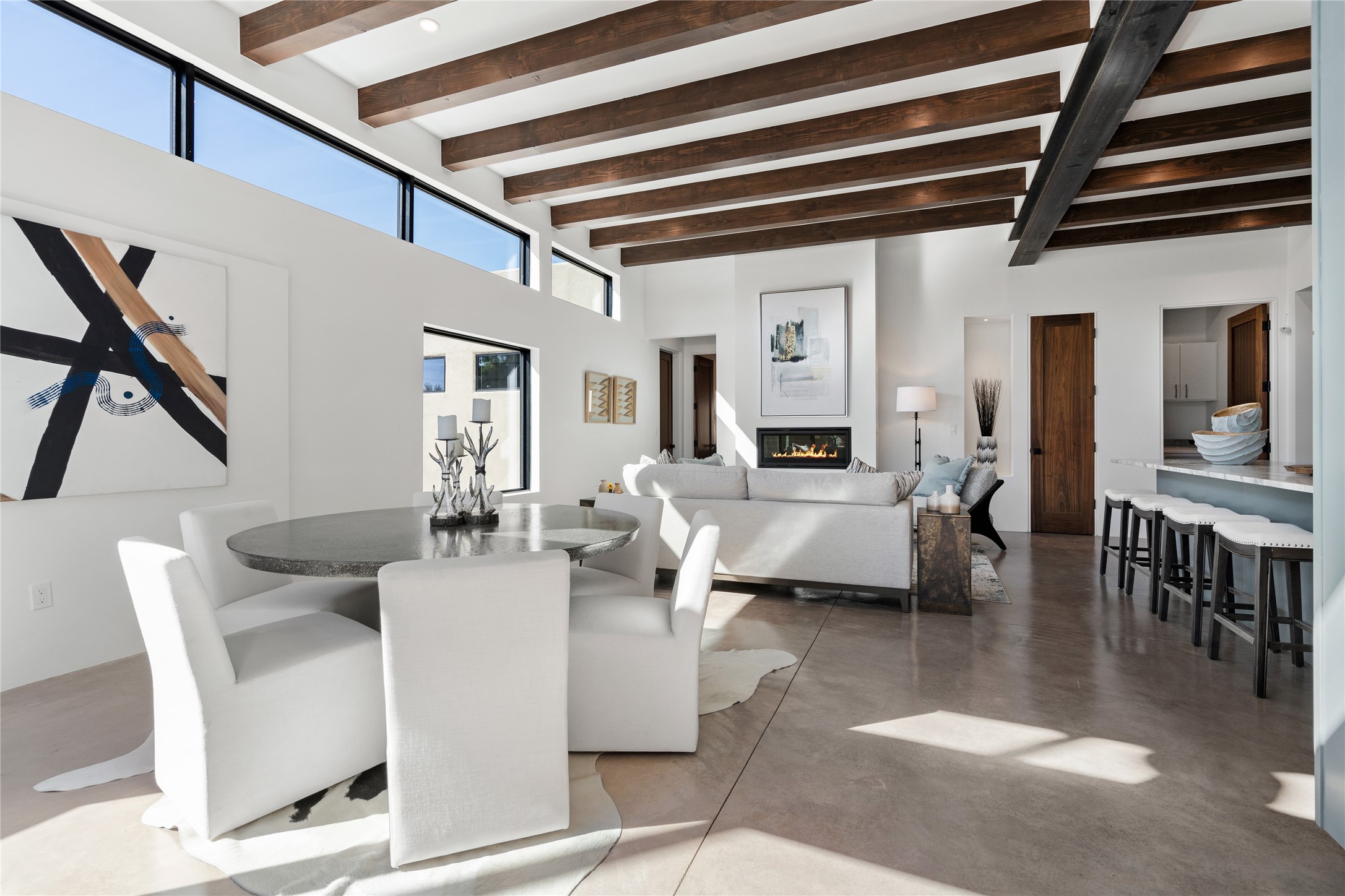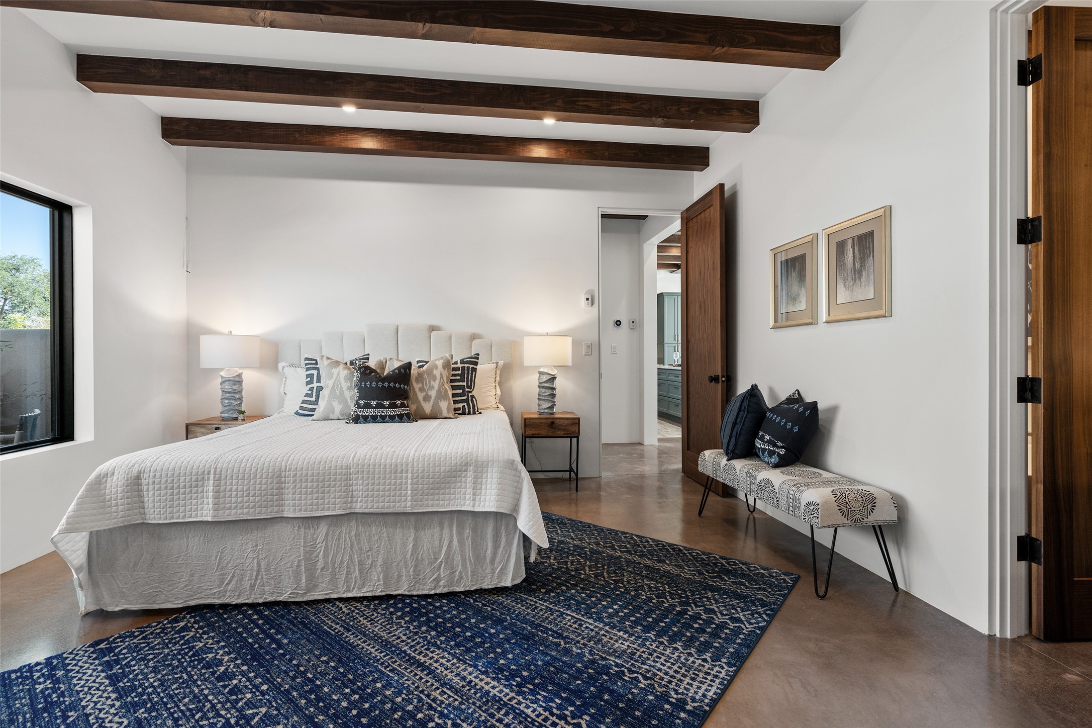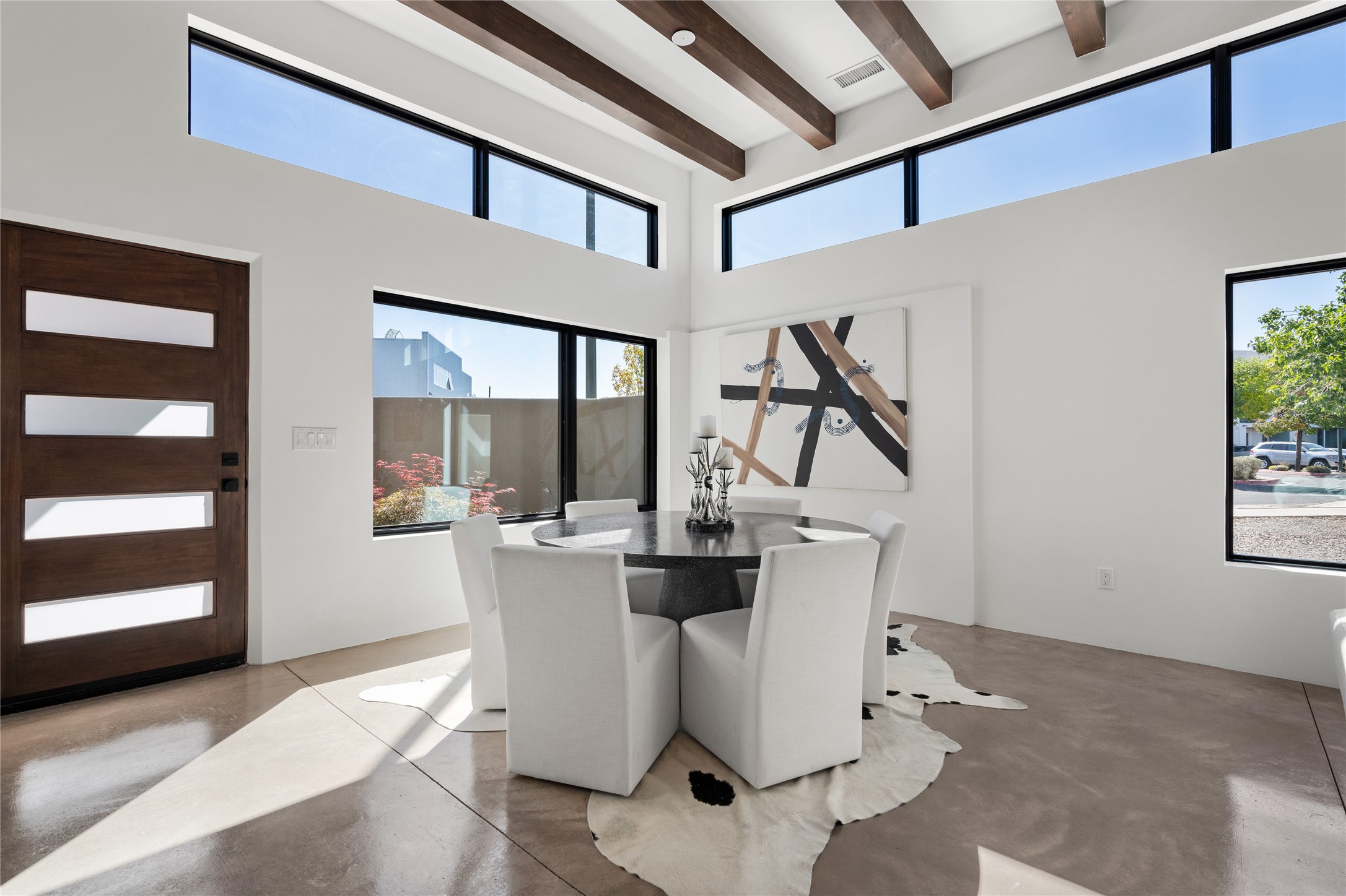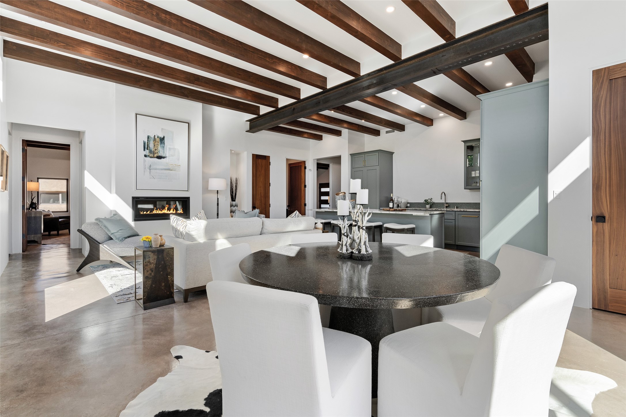 NEW CONSTRUCTION IN THE HEART OF THE RAILYARD! Newly constructed by True North Builders, one of Santa Fe's premier luxury builders, this contemporary property includes a MAIN HOUSE, a GUEST HOUSE and an attached 1-car GARAGE with direct entry. The 1,577 sq. ft. 2 bedroom /2 bathroom main house has an open concept design with beautiful stained concrete flooring, high ceilings with a combination of wood and steel beams, clerestory windows that offer great natural light/privacy and a sleek gas fireplace. The kitchen is the heart of this beautiful property with a large island with ample seating, granite countertops and Fisher Paykal stainless steel appliances. The generous primary suite has a deep soaking tub, a walk-in shower, double vanities and egress to a private patio. The 800 sq. ft. 1 bedroom/1 bathroom attached guest house offers the same level of excellence and finish as the main house and is perfect for your income generation or for friends and family. In-floor radiant heat/air conditioning. 1618 Paseo De Peralta offers one the chance to live in the heart and soul of Santa Fe's exciting Railyard district and, at the same time, offers an incredible opportunity to invest in the new, budding era of Santa Fe.