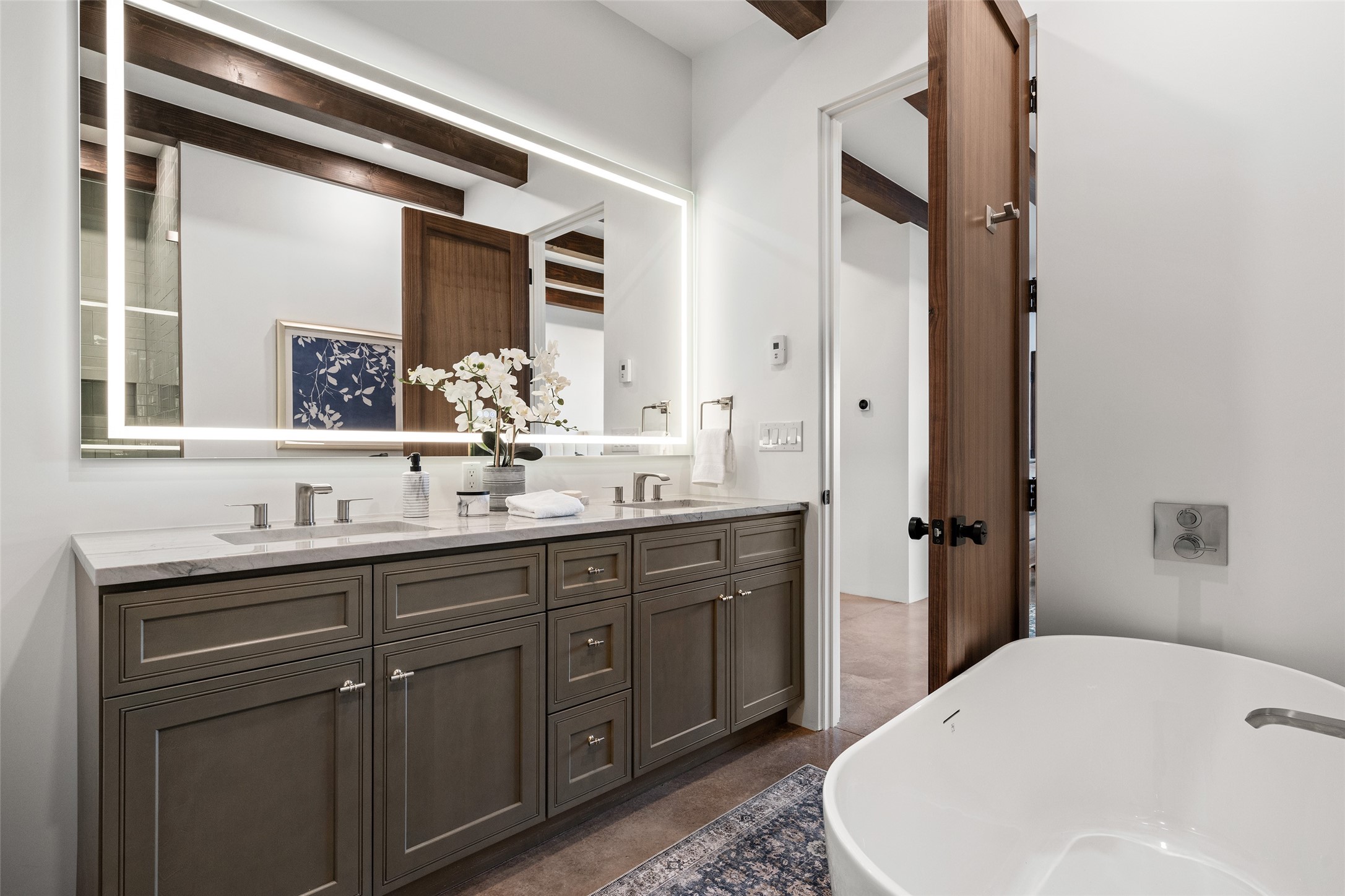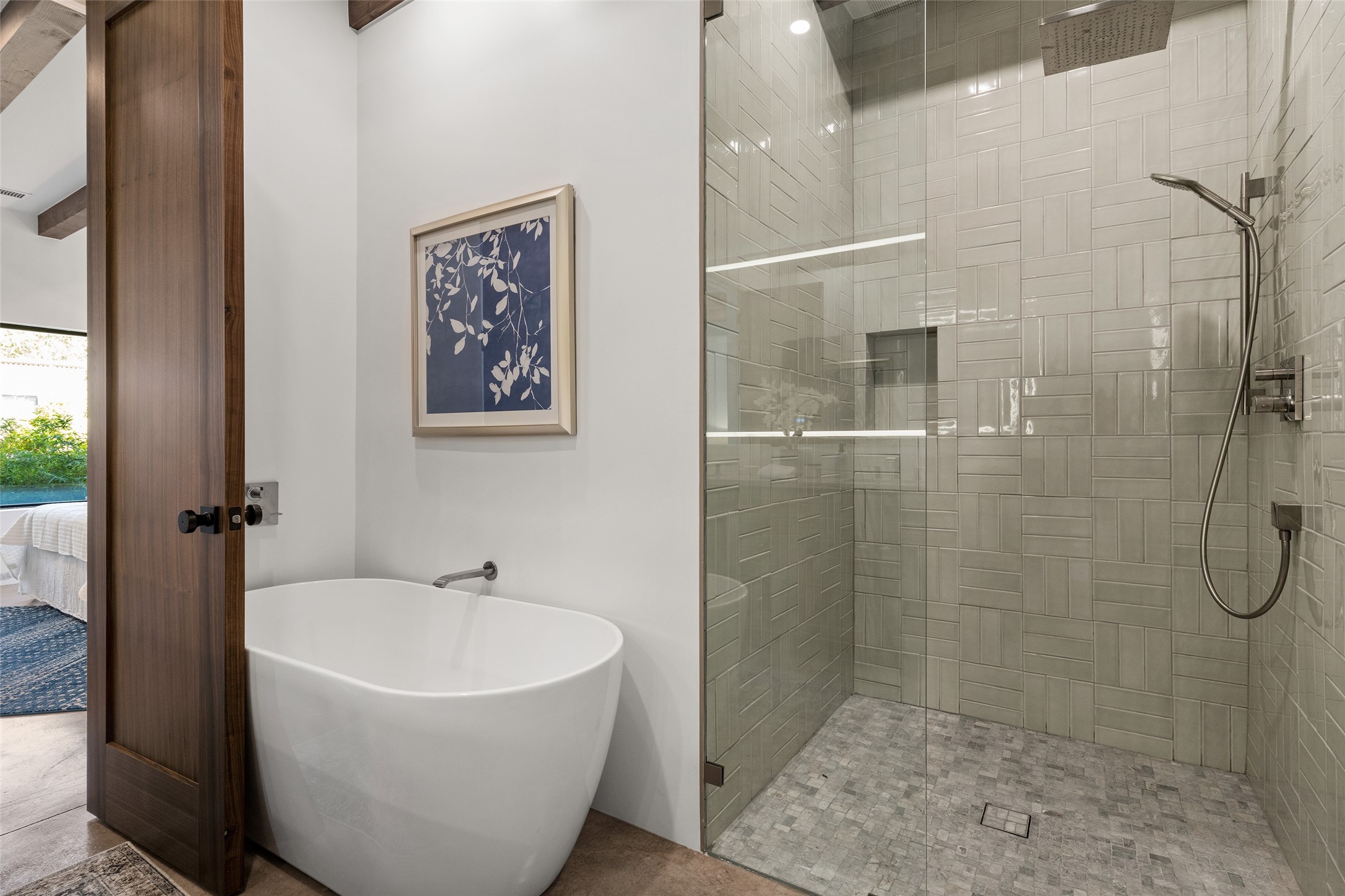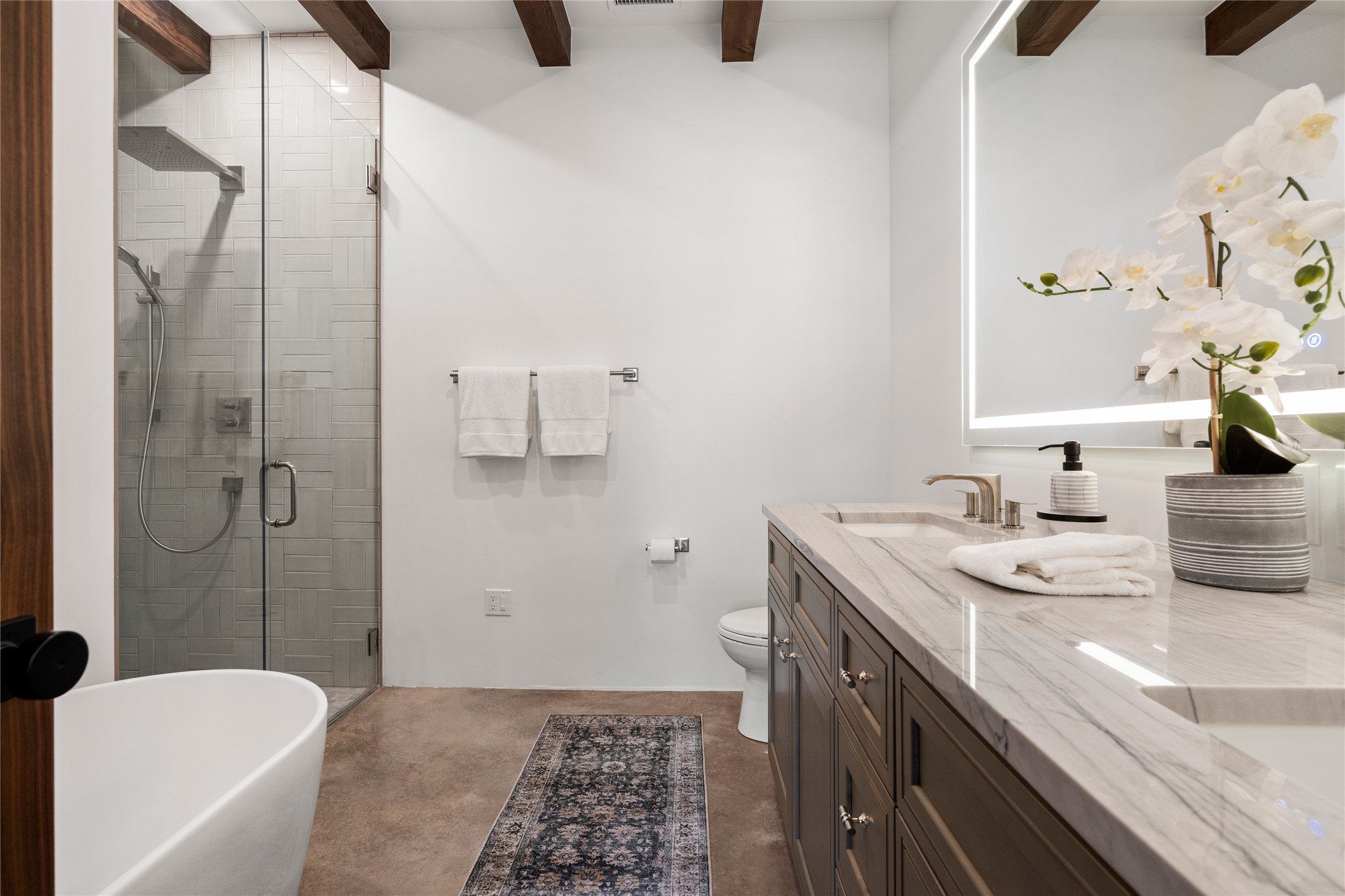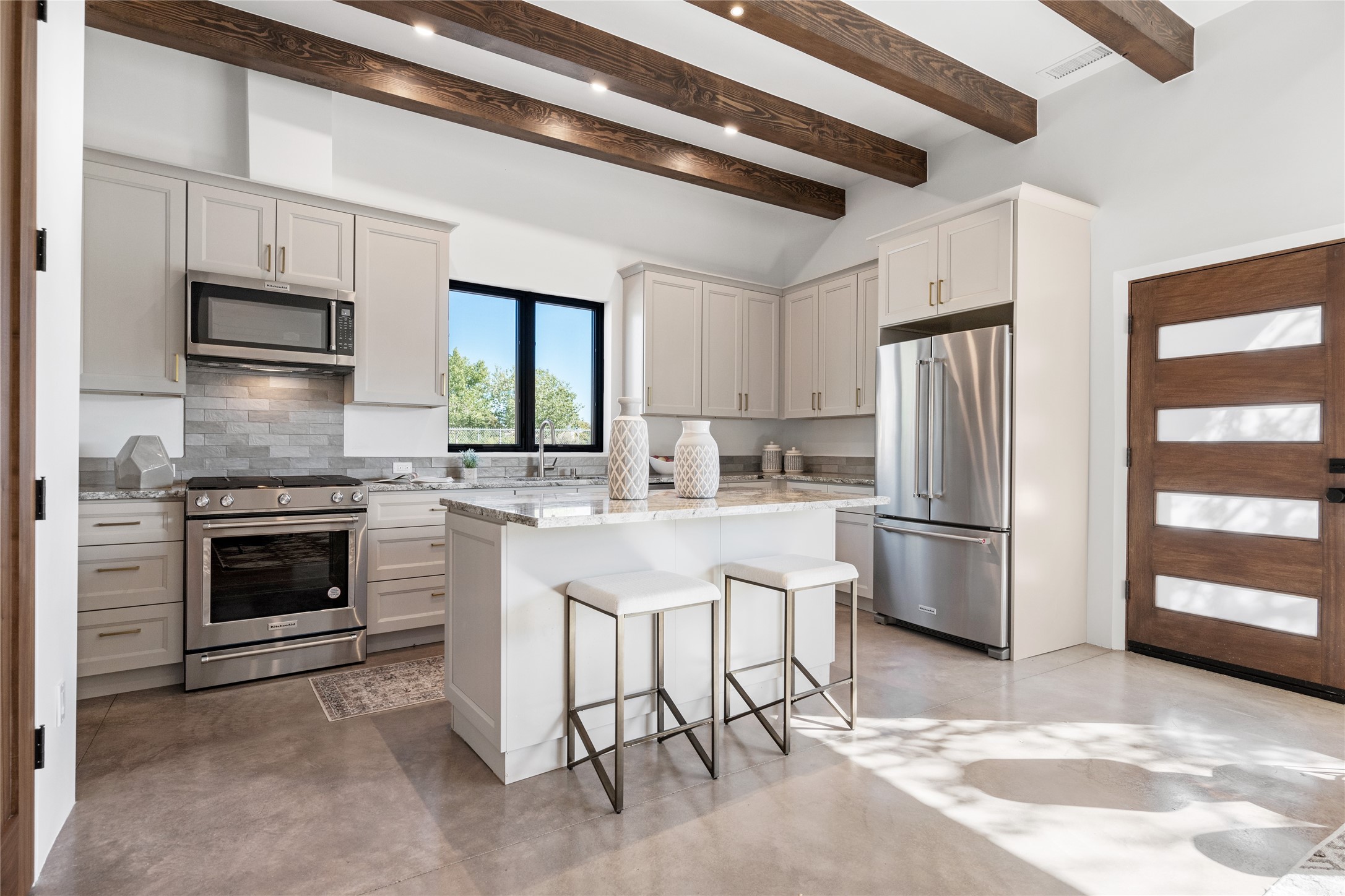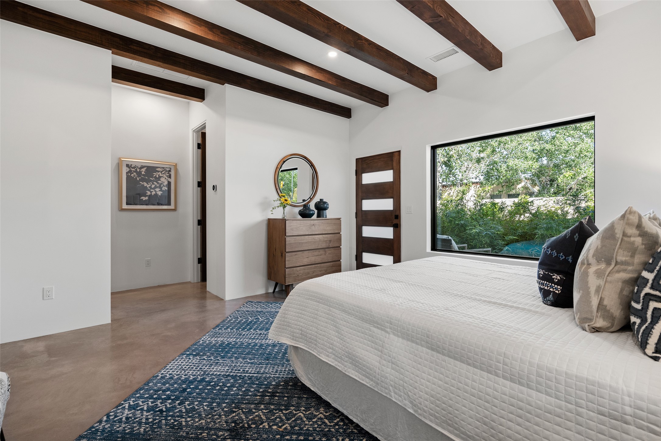 NEW CONSTRUCTION IN THE HEART OF THE RAILYARD! Newly constructed by True North Builders, one of Santa Fe's premier luxury builders, this contemporary property includes a MAIN HOUSE, a GUEST HOUSE and an attached 1-car GARAGE with direct entry. The 1,577 sq. ft. 2 bedroom /2 bathroom main house has an open concept design with beautiful stained concrete flooring, high ceilings with a combination of wood and steel beams, clerestory windows that offer great natural light/privacy and a sleek gas fireplace. The kitchen is the heart of this beautiful property with a large island with ample seating, granite countertops and Fisher Paykal stainless steel appliances. The generous primary suite has a deep soaking tub, a walk-in shower, double vanities and egress to a private patio. The 800 sq. ft. 1 bedroom/1 bathroom attached guest house offers the same level of excellence and finish as the main house and is perfect for your income generation or for friends and family. In-floor radiant heat/air conditioning. 1618 Paseo De Peralta offers one the chance to live in the heart and soul of Santa Fe's exciting Railyard district and, at the same time, offers an incredible opportunity to invest in the new, budding era of Santa Fe.