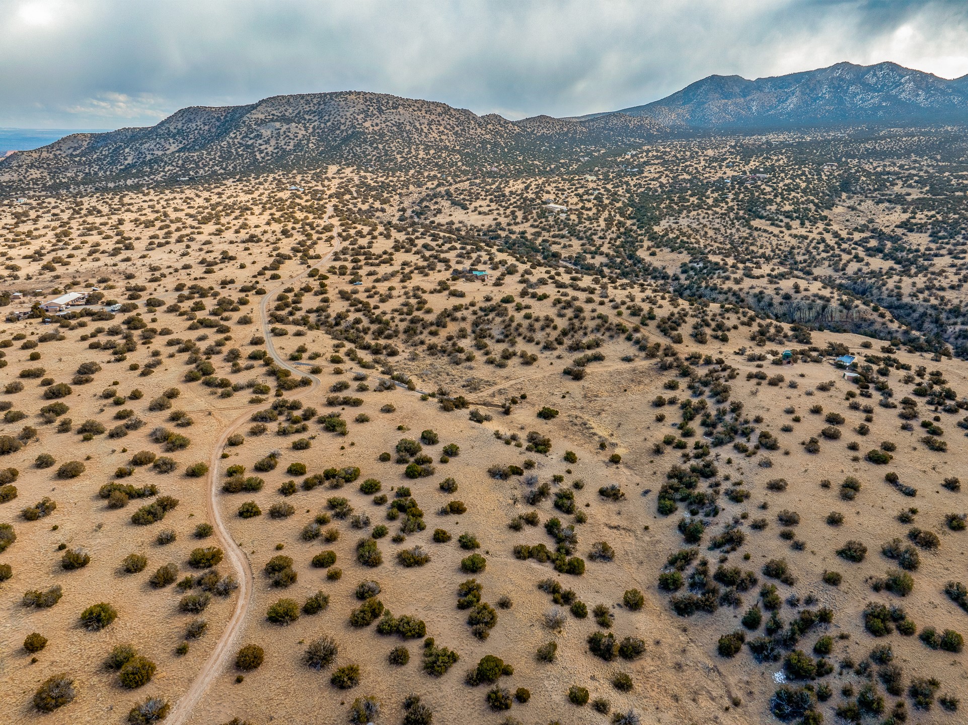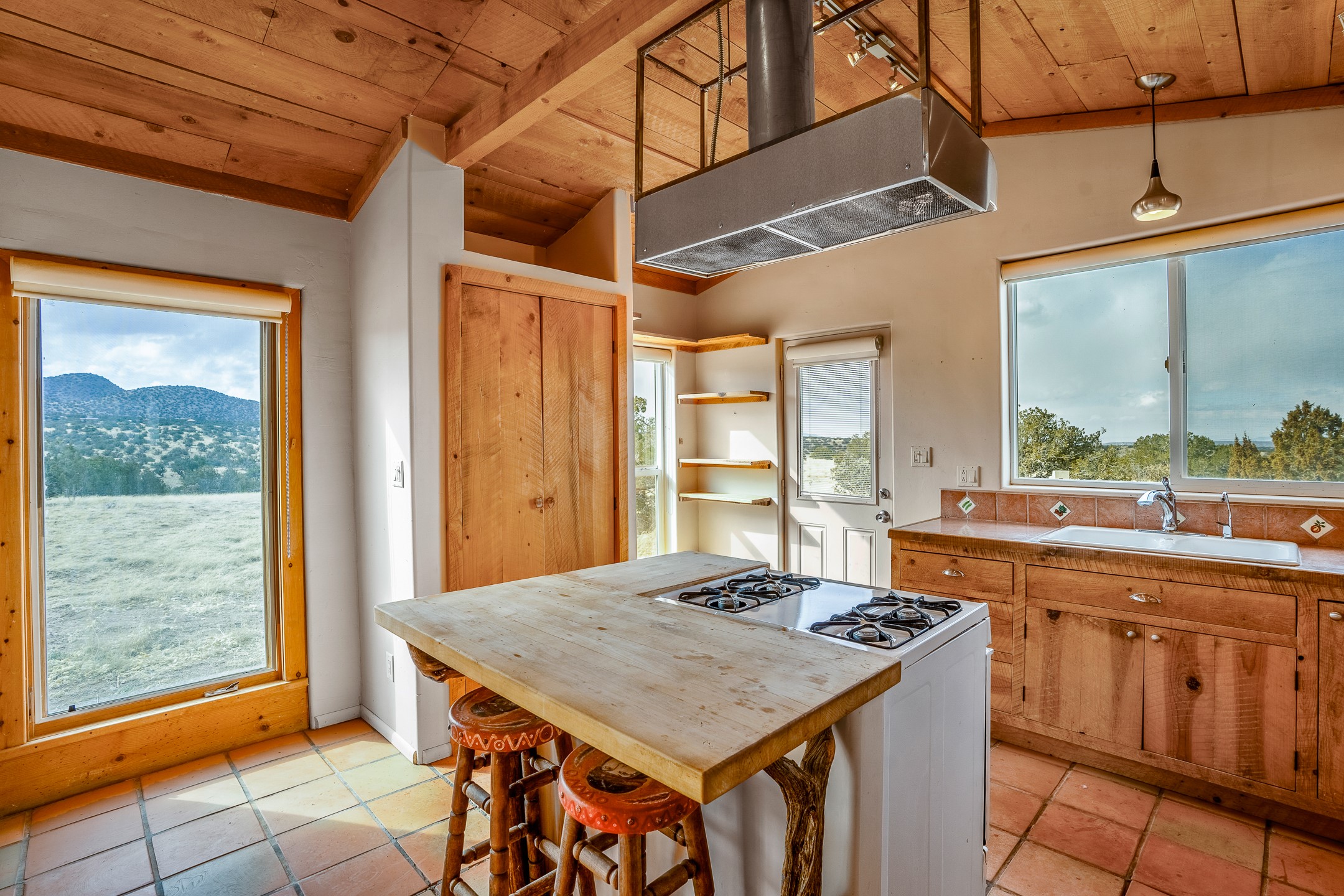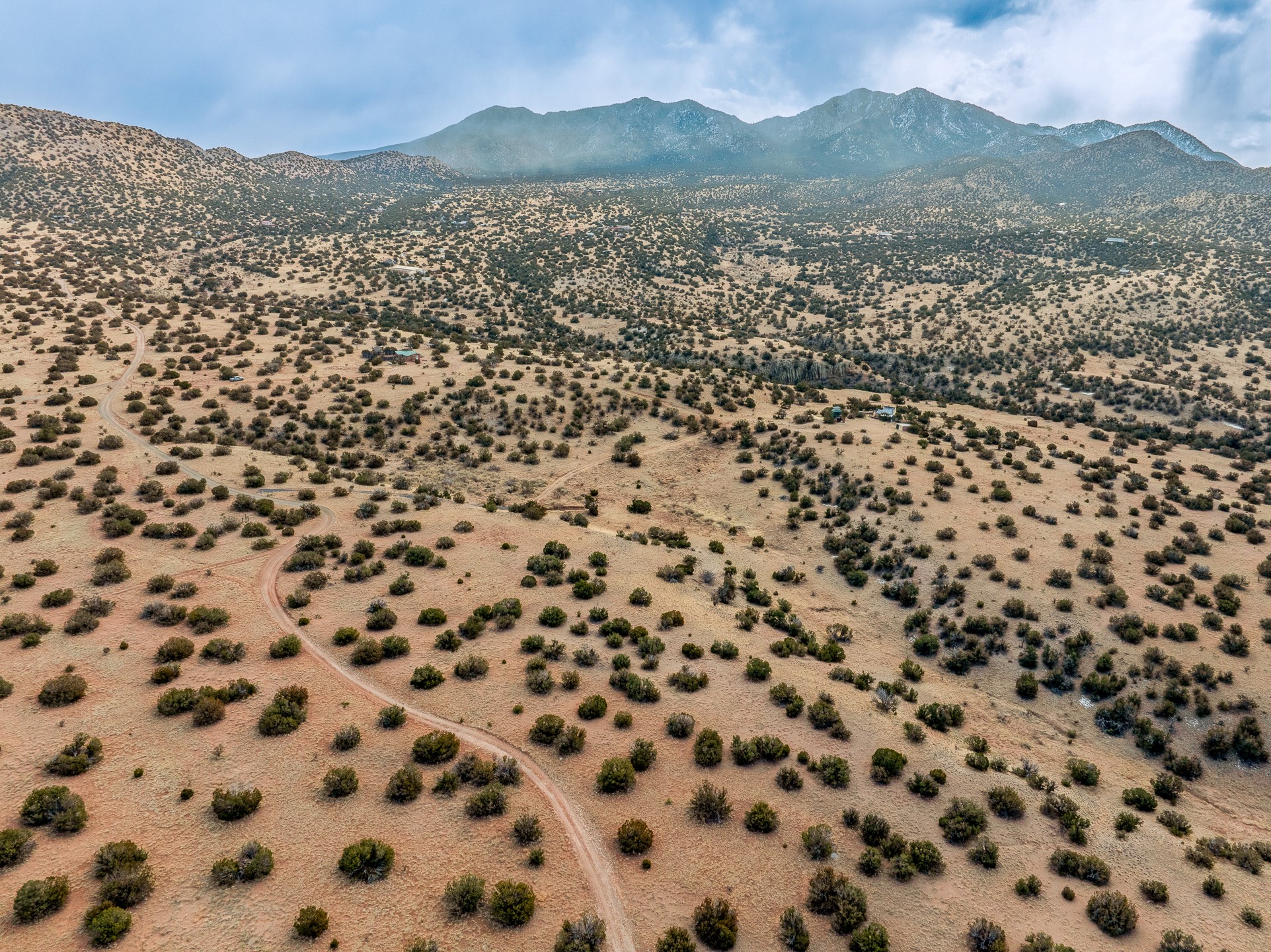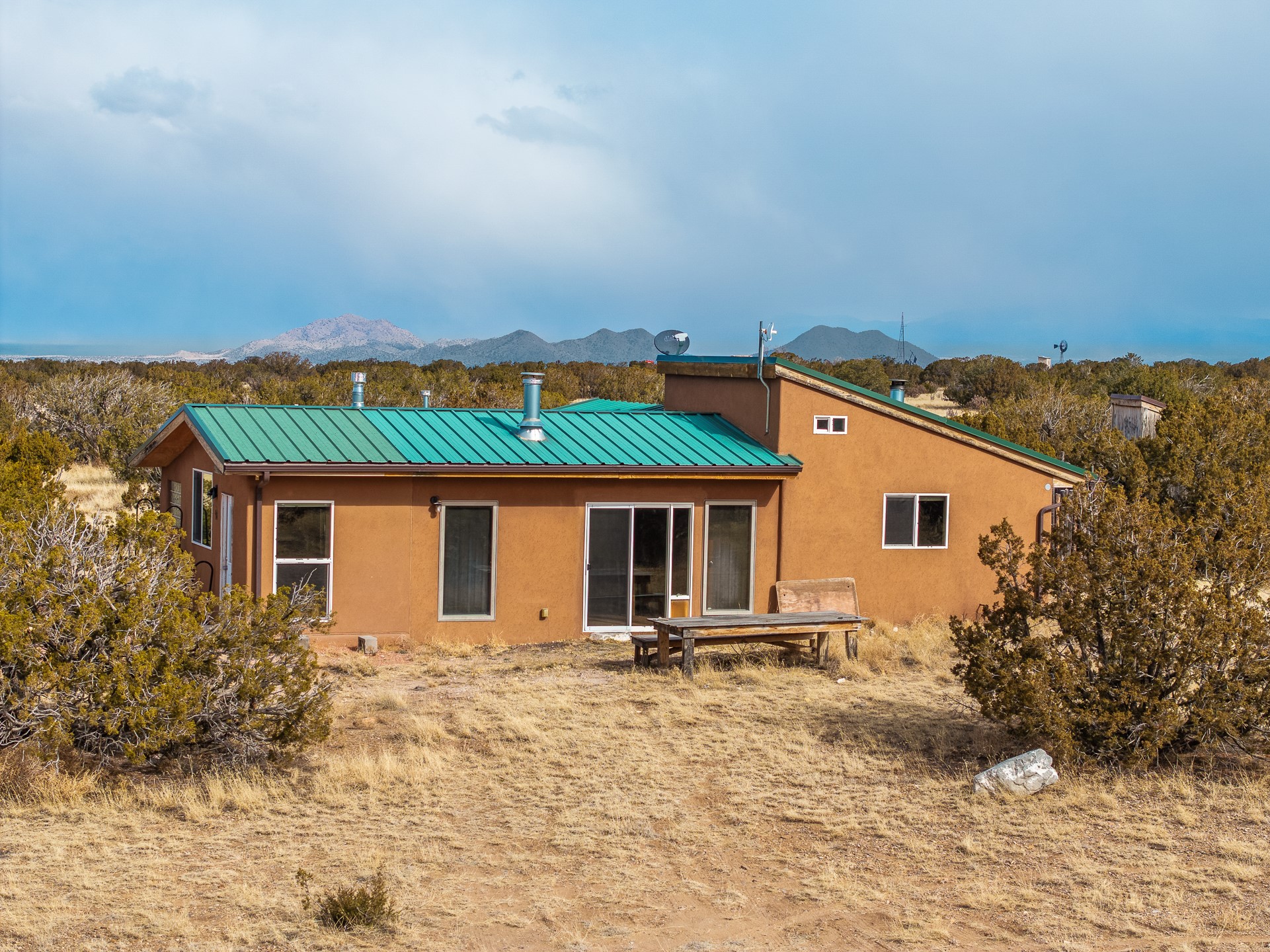 Find serenity and natural beauty at this high desert off-grid home on 30 acres. Hidden away from it all, 2.2 miles off of Highway 14, and 6 miles from Madrid, this home features two possible bedrooms, one bath. Sold with two separate lots, the property has plenty of flat outside space, a deep arroyo, and excellent views of the Ortiz and the Jemez mountains. The power is supplied with a top of the line solar photovoltaic system installed buy a local expert, along with a back up generator. A well supplies water, in addition, there is a 2500 gallon below ground water storage system connected to rain catchment and filter. With two wood stoves and additional propane heaters, you won't lack for creature comforts. Inside, the home opens to an open concept kitchen, living space, and has two additional rooms which could be bedrooms, home offices, etc, one with a sleeping loft. Saltillo floors, rustic wood cabinets and built-ins, and wood plank ceilings complete the look. A small patio area is fenced for pets. A large fire pit at the edge of the arroyo offers a setting for stargazing. Roads are primitive. Seller would like existing furniture to convey. Second lot creates diverse development opportunities. House is not easily visible from locked gate, please make an appointment to see. Seller has an assumable FHA loan at 2.75%, buyer would have to fund the difference between the purchase price and the loan.