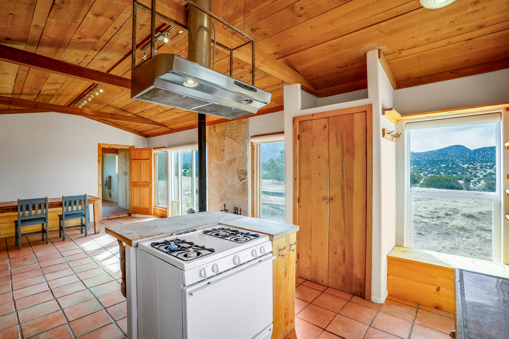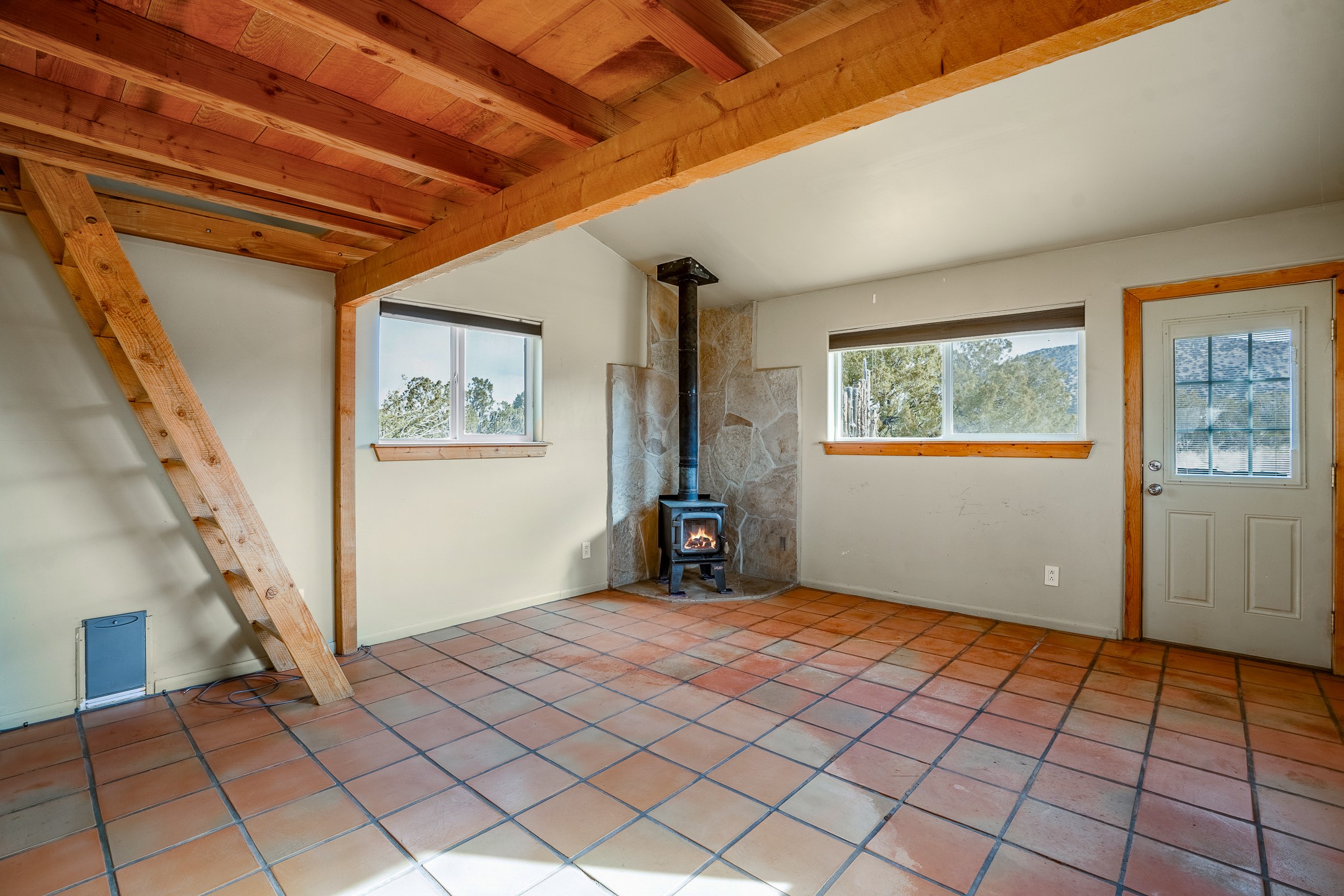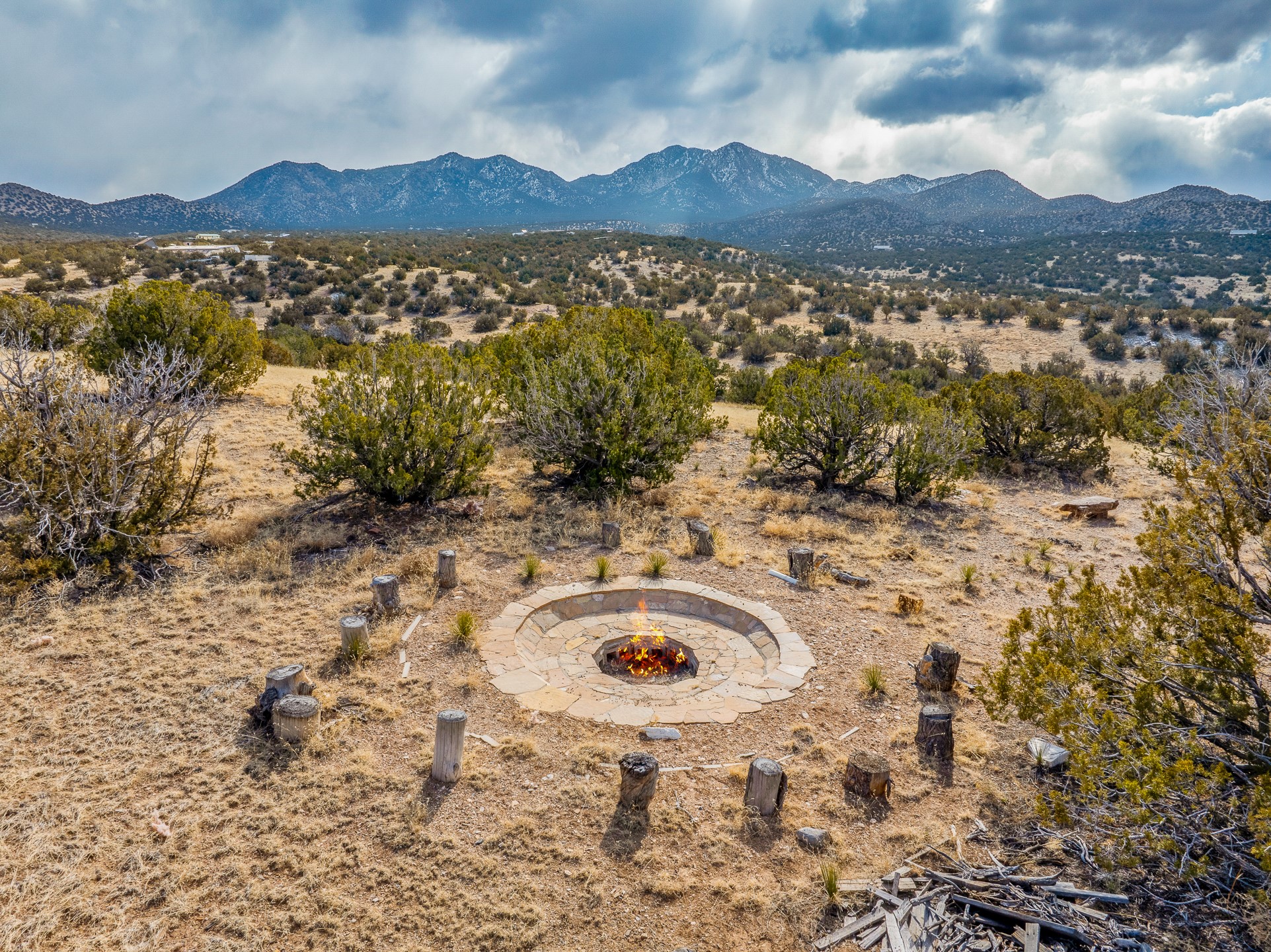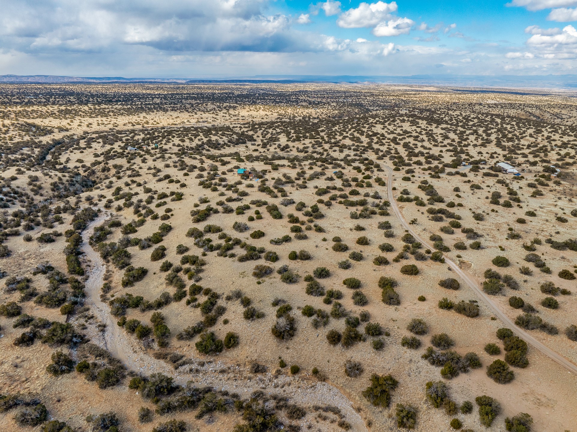 Find serenity and natural beauty at this high desert off-grid home on 30 acres. Hidden away from it all, 2.2 miles off of Highway 14, and 6 miles from Madrid, this home features two possible bedrooms, one bath. Sold with two separate lots, the property has plenty of flat outside space, a deep arroyo, and excellent views of the Ortiz and the Jemez mountains. The power is supplied with a top of the line solar photovoltaic system installed buy a local expert, along with a back up generator. A well supplies water, in addition, there is a 2500 gallon below ground water storage system connected to rain catchment and filter. With two wood stoves and additional propane heaters, you won't lack for creature comforts. Inside, the home opens to an open concept kitchen, living space, and has two additional rooms which could be bedrooms, home offices, etc, one with a sleeping loft. Saltillo floors, rustic wood cabinets and built-ins, and wood plank ceilings complete the look. A small patio area is fenced for pets. A large fire pit at the edge of the arroyo offers a setting for stargazing. Roads are primitive. Seller would like existing furniture to convey. Second lot creates diverse development opportunities. House is not easily visible from locked gate, please make an appointment to see. Seller has an assumable FHA loan at 2.75%, buyer would have to fund the difference between the purchase price and the loan.