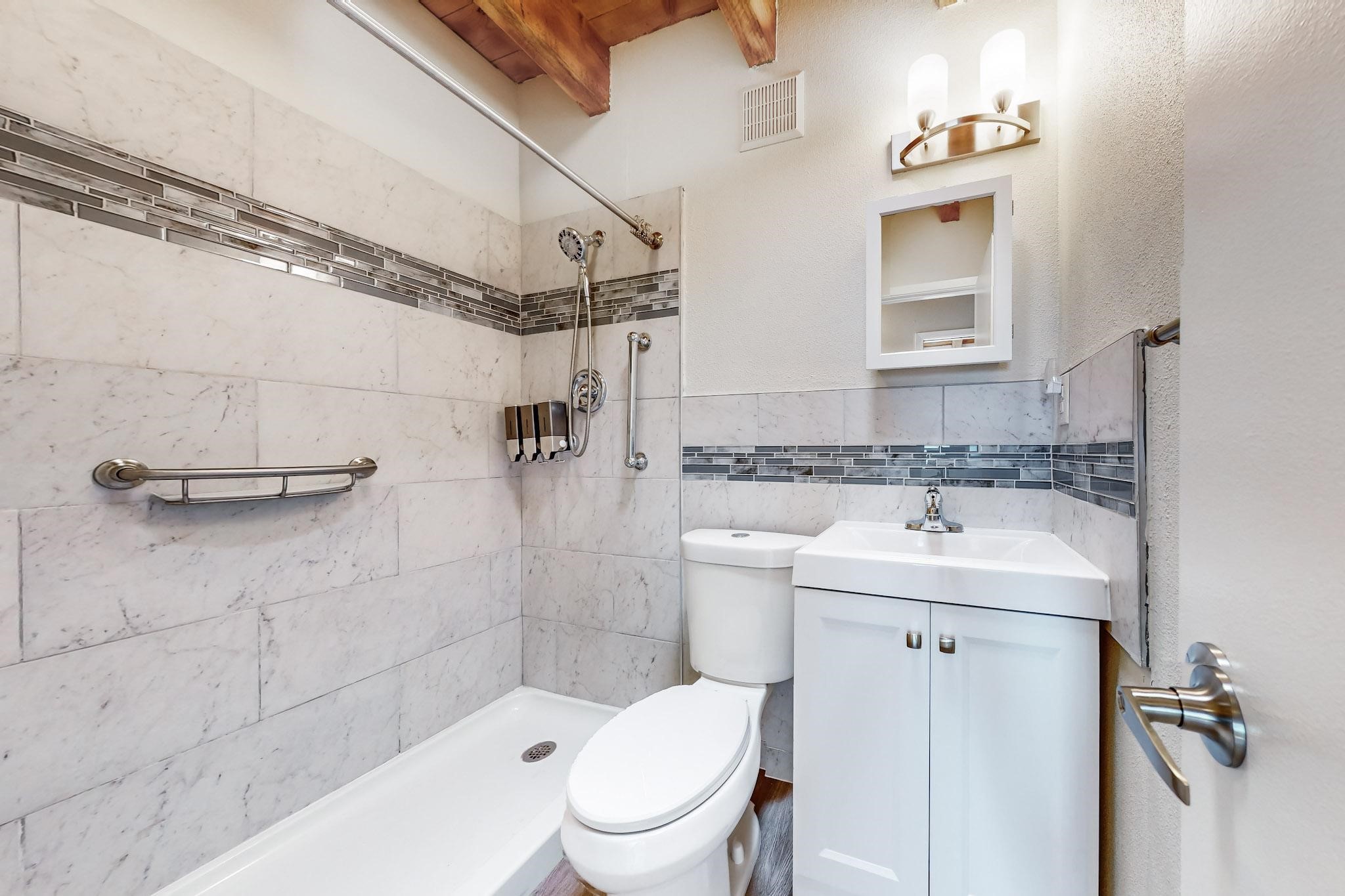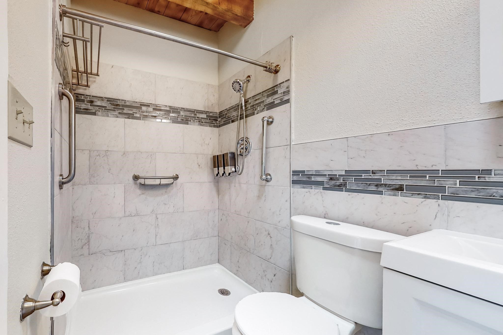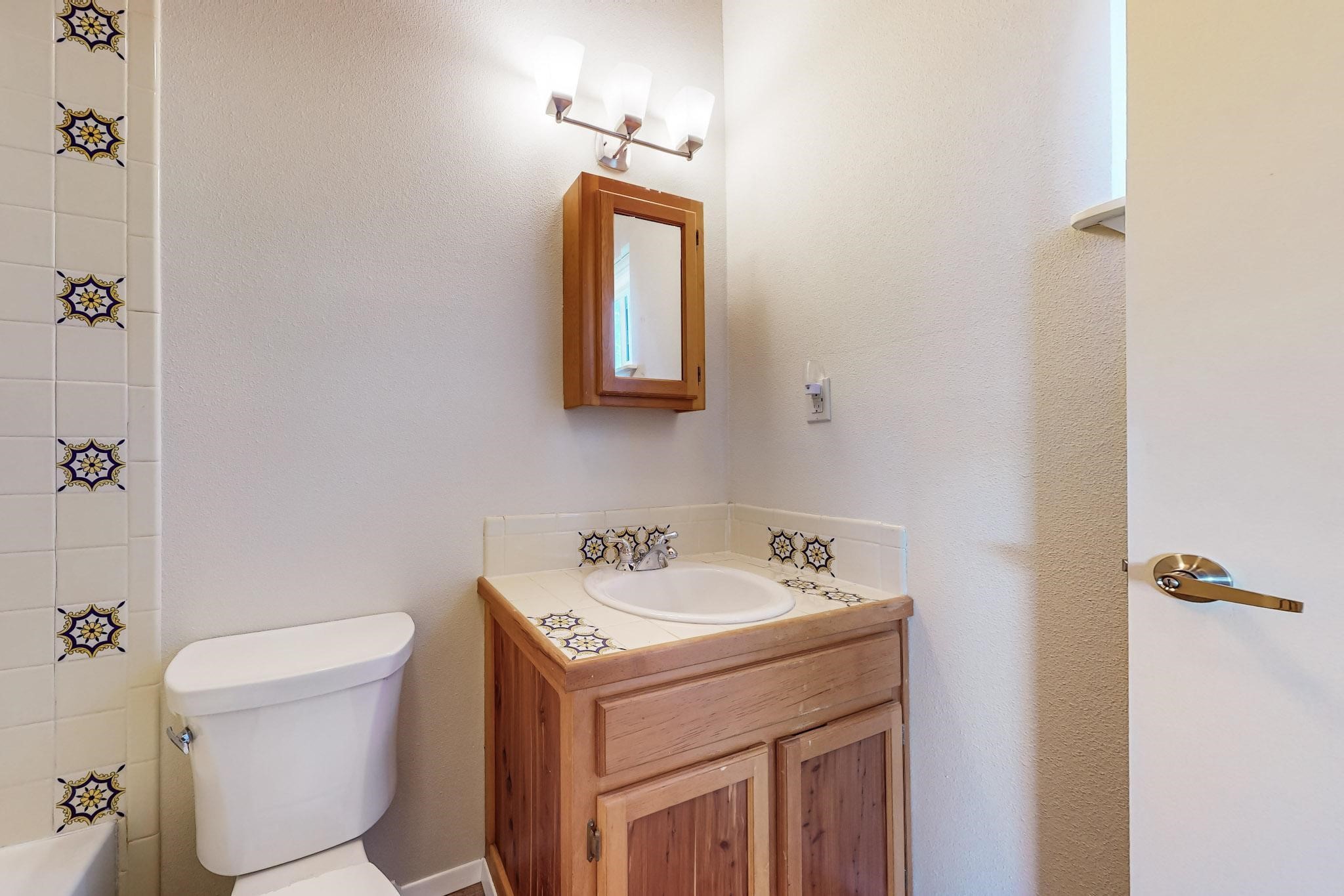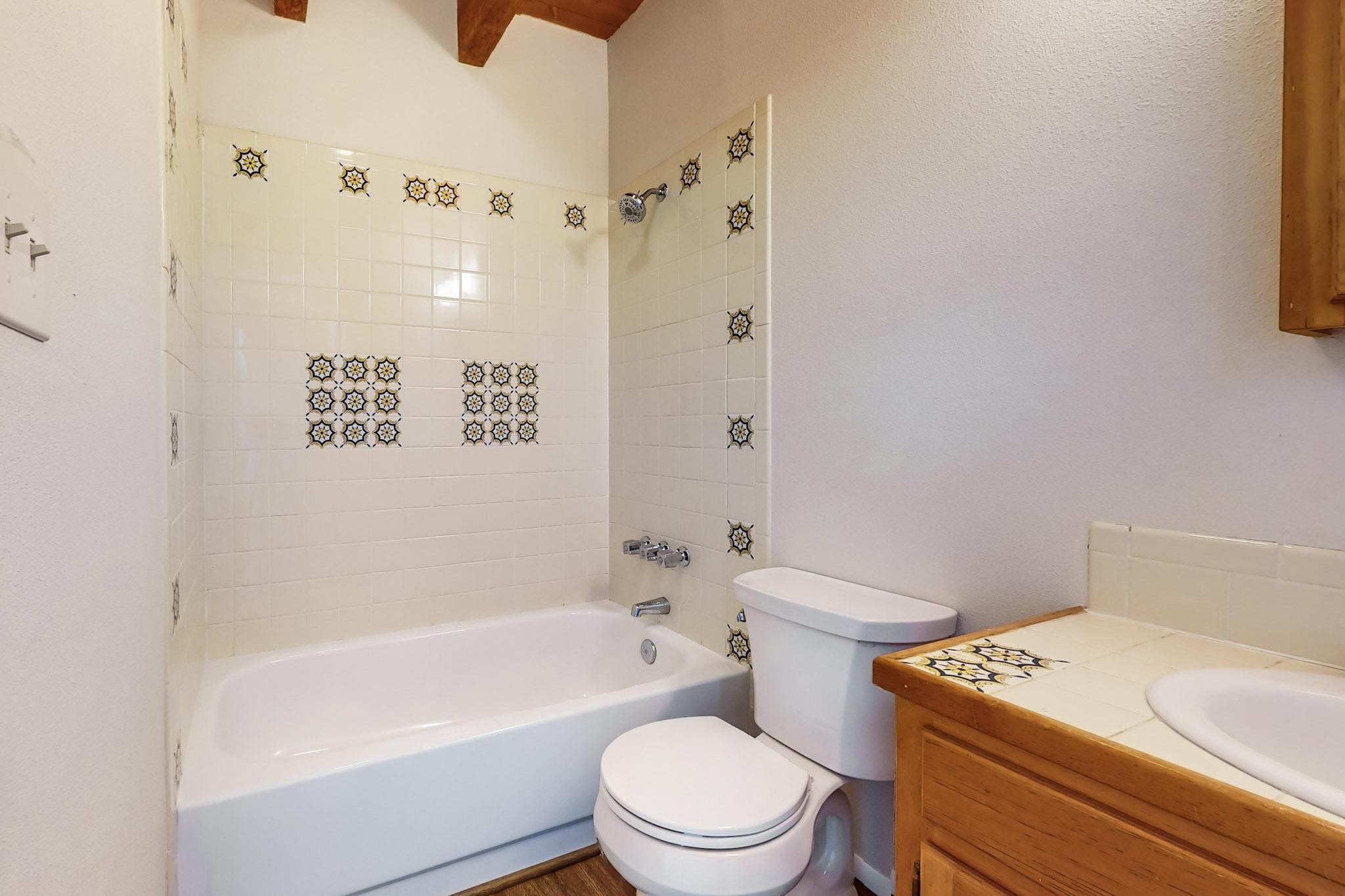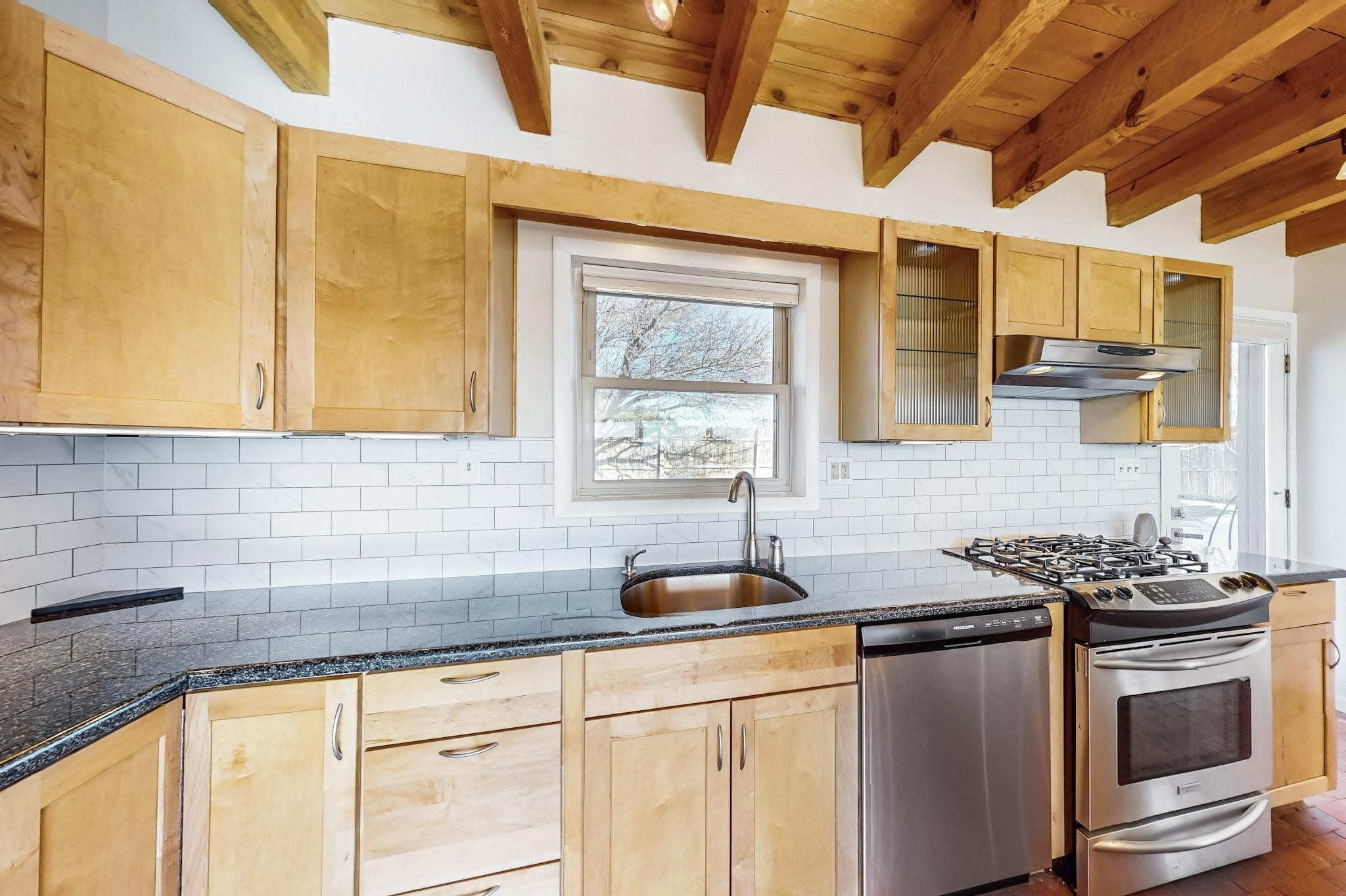 Priced to Sell! Lovely popular passive solar open plan design, move in ready. Totally refreshed sparkling interior including new carpets and paint.The main and guest baths were both remodeled in 2023, the kitchen updated with maple cabinetry, quartz and butcher block countertops, new appliances including natural gas cooktop with electric oven, and under cabinet lighting. Besides the wood stove, a minisplit was added about 5 years ago, and gas wall heaters in each bedroom. All windows except the living room were replaced in 2021. The home was restuccoed in 2021 and the garage door replaced the year before. A polyurethane membrane roof covering and insulation was installed approximately 10 years ago. There is a 3 share well and a well share agreement approximately $80.00 per year. Fruit trees including a productive apricot and apple in lovely fully fenced private backyard. Sunset views and a quiet 1.3 acre surround yet quick paved access to Eldorado amenities, local shopping and services plus only minutes into Santa Fe.
