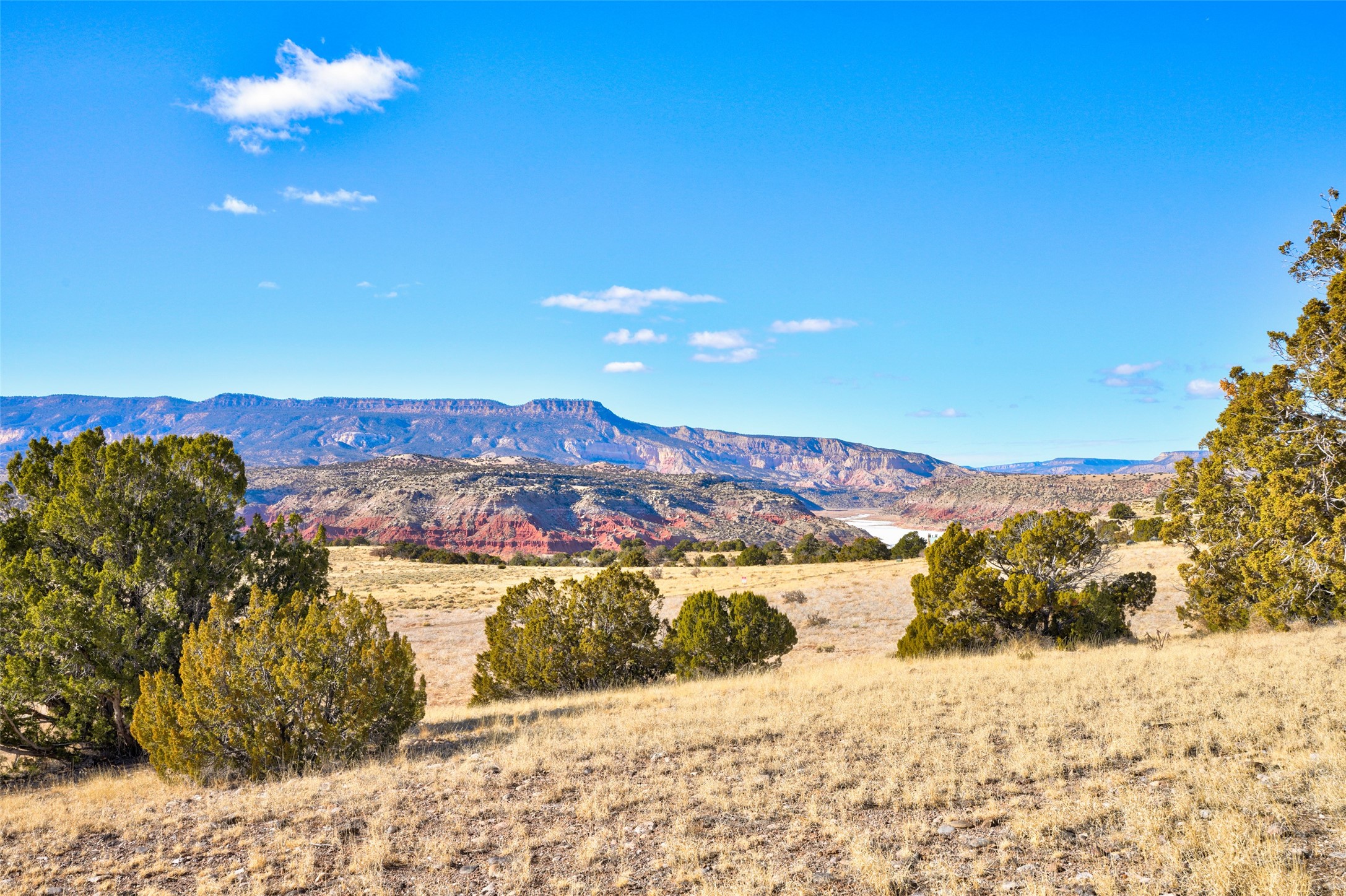Five-acre parcel in Piedra Lumbre Estates, behind a private, motorized gate. The property provides access to a private boat ramp and recreation area on Abiqui Lake for fishing, boating, and other activities. The land offers views of Cerro Pedernal and Mesa Prieta, with close proximity to Santa Fe and Carson National Forest.