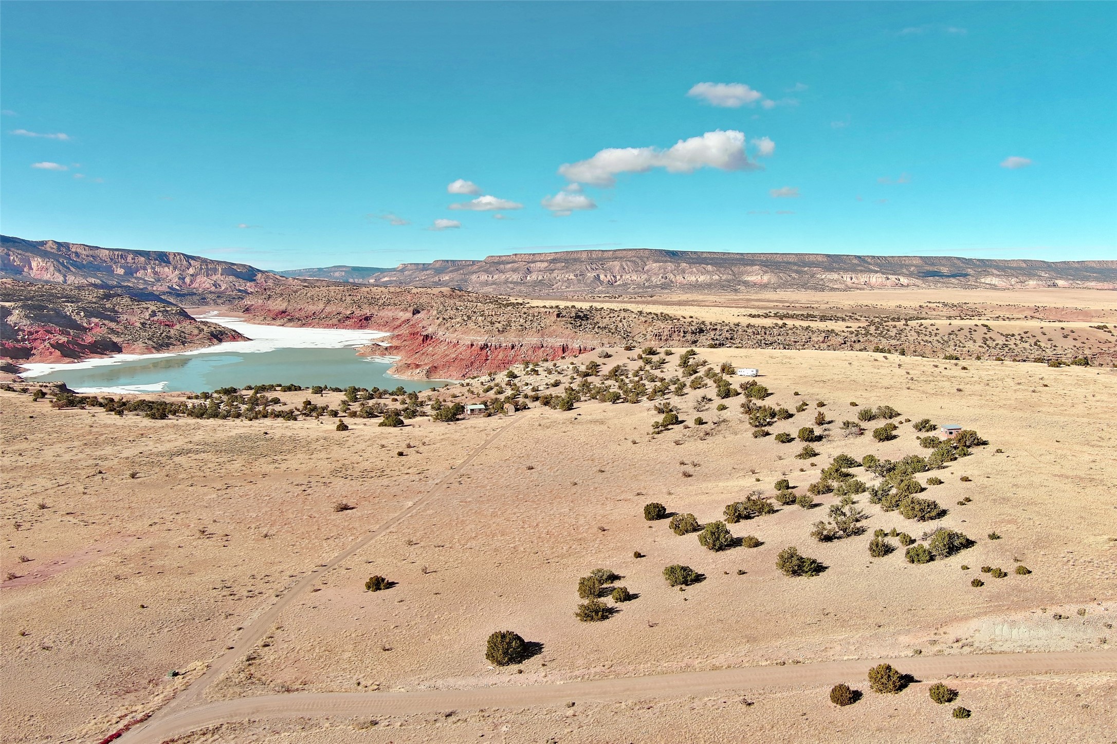 Five-acre parcel in Piedra Lumbre Estates, behind a private, motorized gate. The property provides access to a private boat ramp and recreation area on Abiqui Lake for fishing, boating, and other activities. The land offers views of Cerro Pedernal and Mesa Prieta, with close proximity to Santa Fe and Carson National Forest.