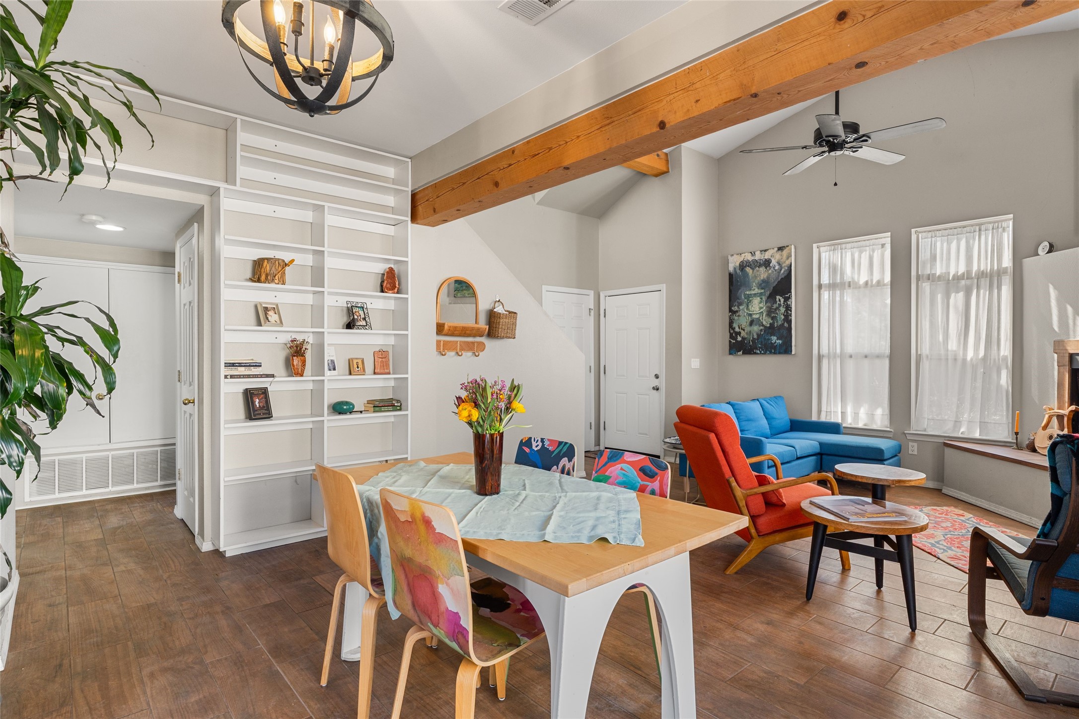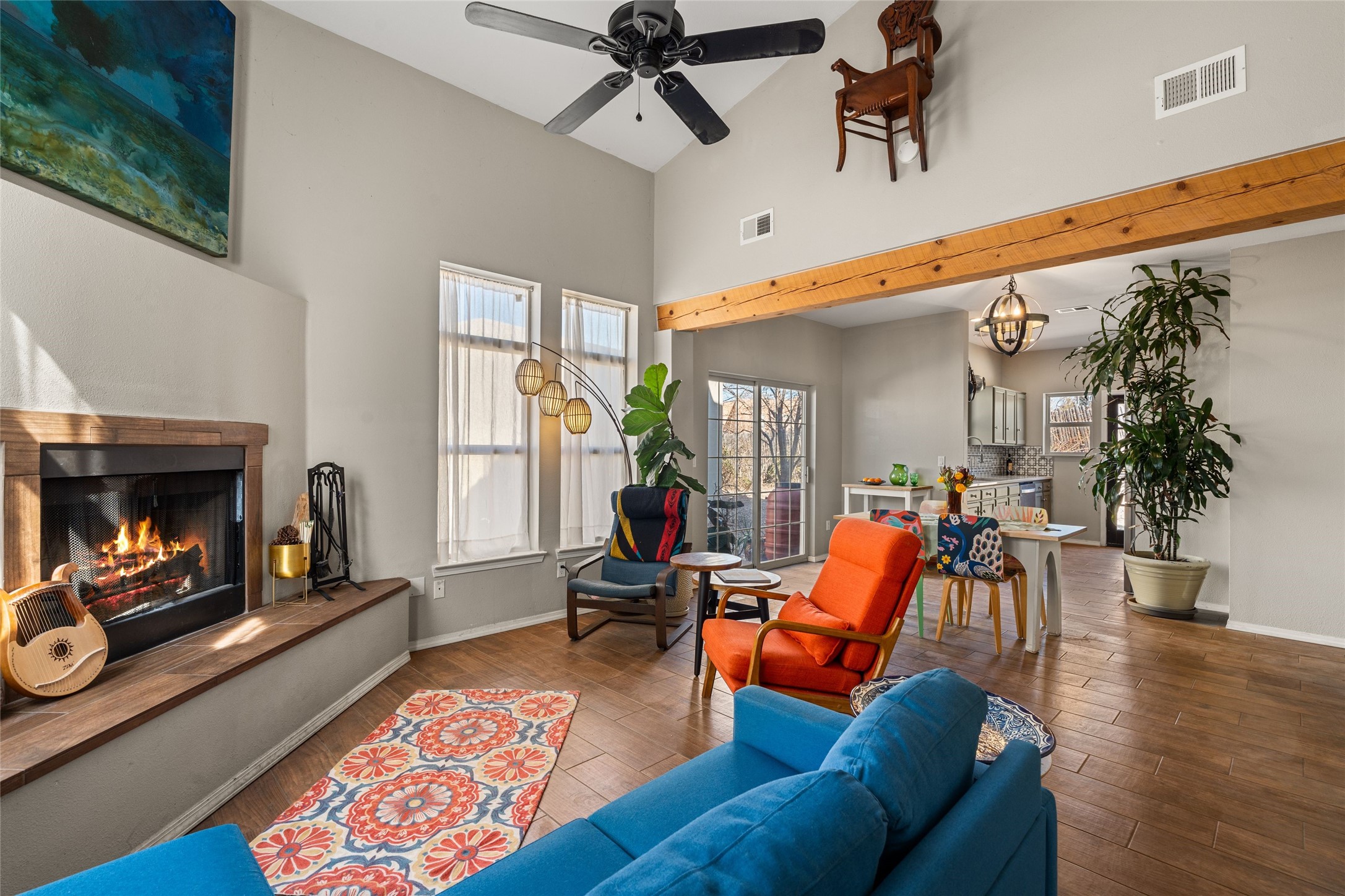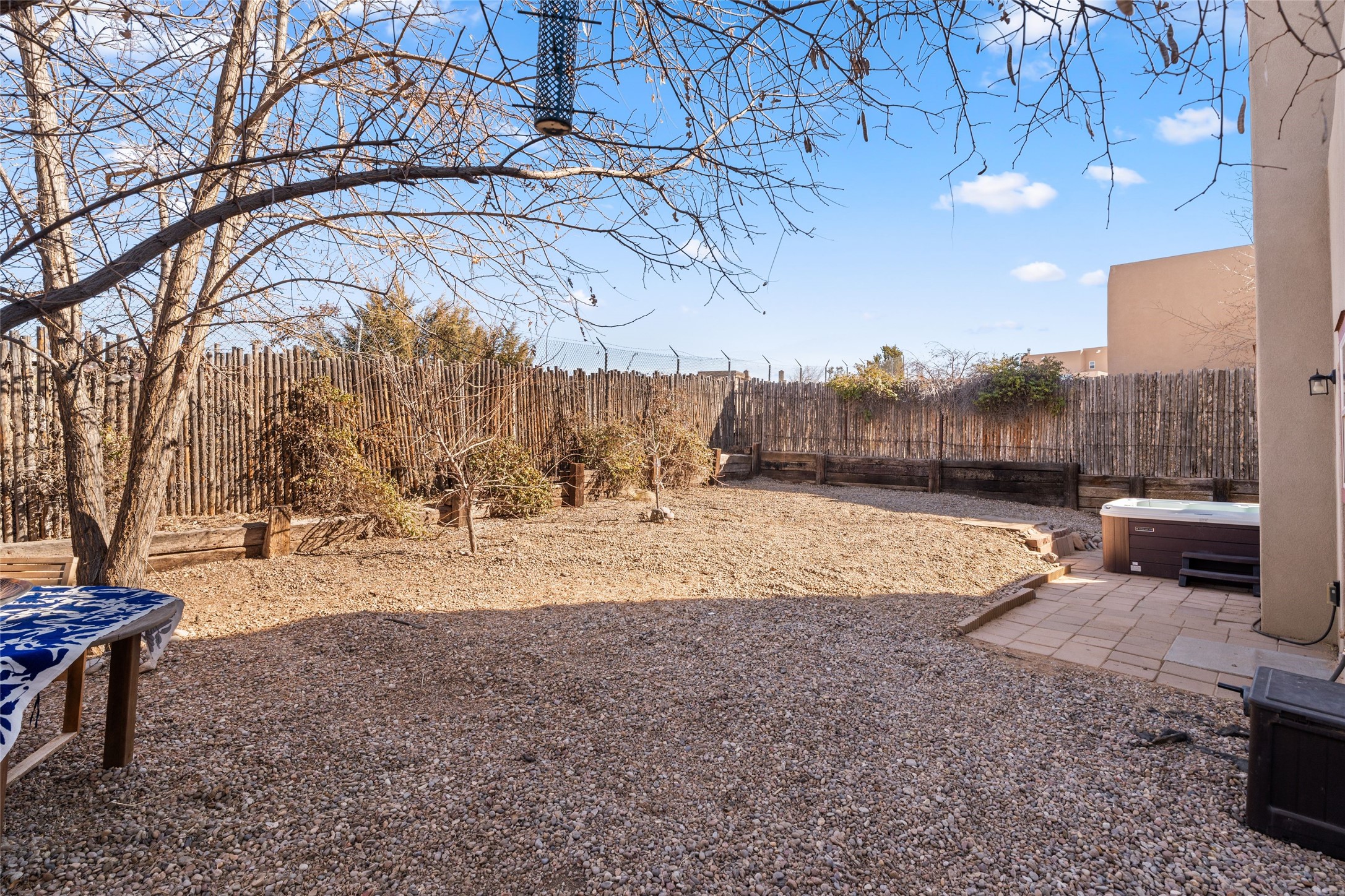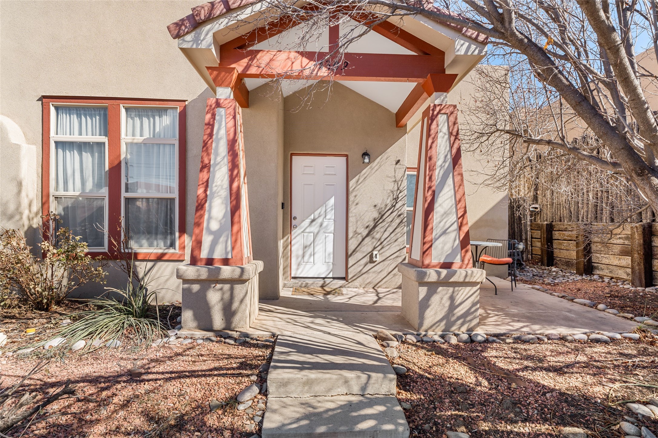 This upgraded and beautifully maintained Nava Ade home offers a perfect blend of comfort and convenience. As you enter under the fruit-bearing plum tree by the front door, you'll be greeted by an open living and dining area, with easy access to the expansive backyard - perfect for entertaining or relaxation. The home boasts a cozy wood-burning fireplace, ideal for those chilly evenings. The renovated kitchen features upgraded quartz countertops and a stylishly tiled backsplash that adds character and functionality. The home has two bedrooms and a full bath downstairs with a principal suite upstairs including ensuite bath, walk-in closet, and a private deck - a great spot to unwind and enjoy the surrounding views. The roomy pantry, laundry area, and closets all have built-in shelving. The large, fully fenced backyard features a hot tub and producing fruit trees, including apple, apricot, and peach, as well as three varieties of grapes, a perfect place to enjoy the seasons. The property is situated in the desirable Nava Ade community offering top-notch amenities, including a swimming pool, exercise room, steam shower, clubhouse, and a scenic path and trail system. Conveniently located just 15 minutes from the historic downtown Plaza and with easy access to retail shops and I-25, this home is ideally located for both relaxation and convenience.