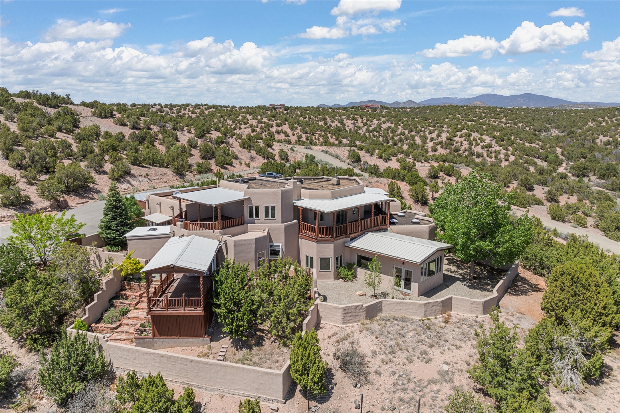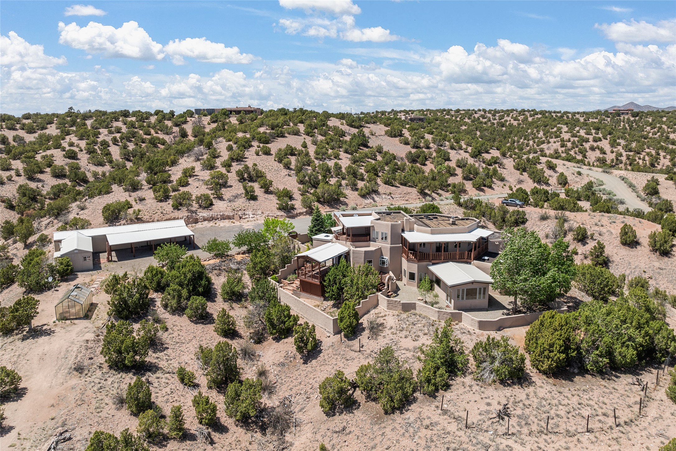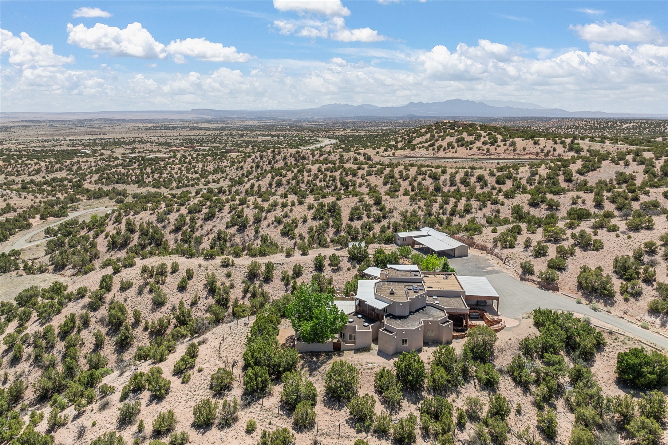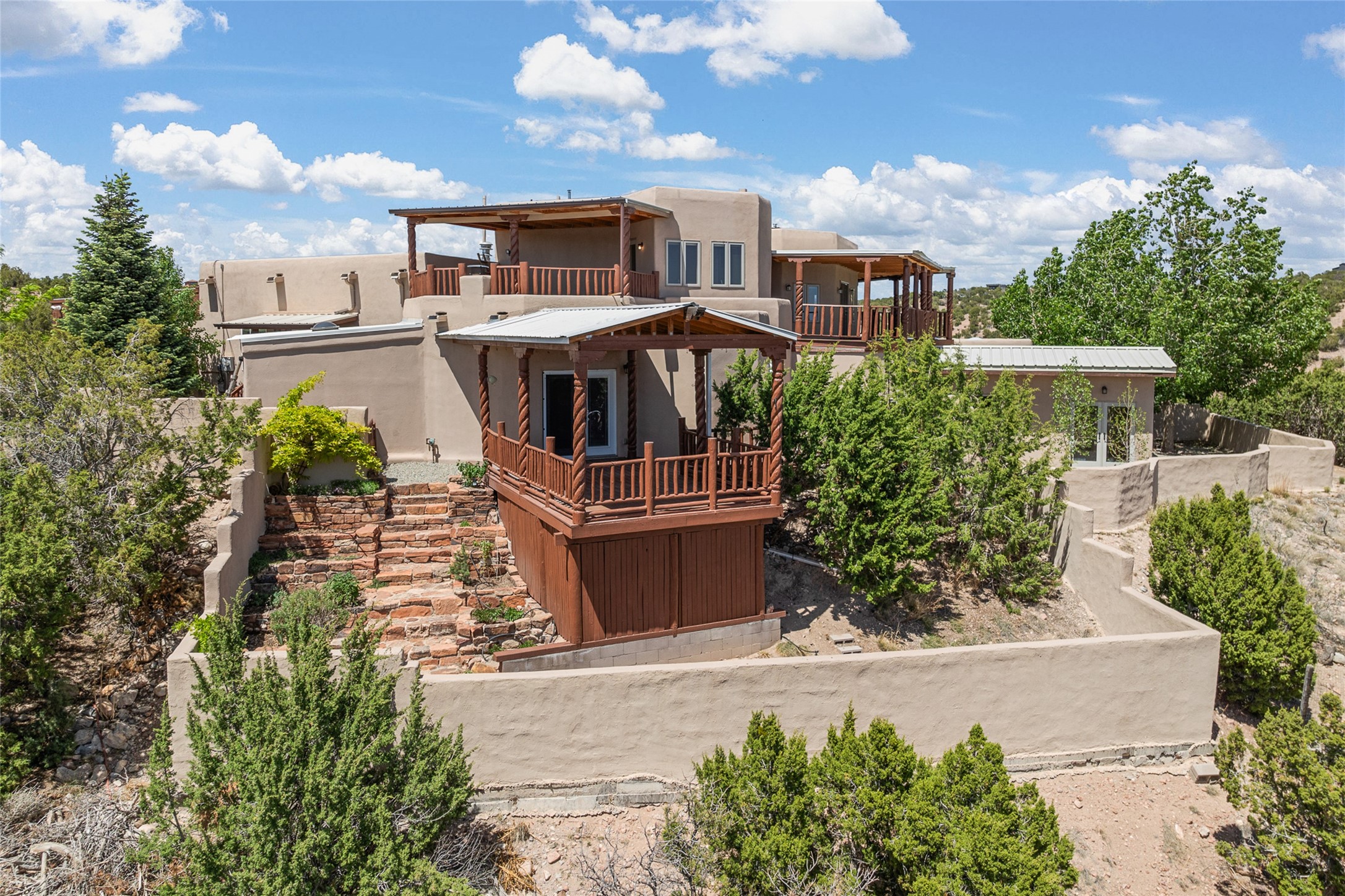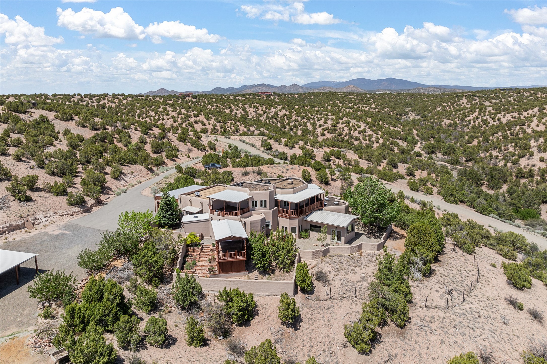 Looking for privacy with an extraordinary view? Nestled in the serene landscape of Lamy, New Mexico just minutes from Santa Fe, this stunning Southwestern pueblo home offers breathtaking million-dollar views of the iconic Galisteo Basin. Just a short 20-minute drive from downtown Santa Fe, this private escape is situated on 12.5 acres within a gated community. Inside, discover a residence adorned with unique artistic touches, including intricately inlaid turquoise accents on each stair banister, adding a distinctive Southwestern charm. This spacious estate boasts 5 bedrooms, 5 bathrooms, private office, and multiple living spaces. Cozy rooms and inviting reading nooks throughout the home provide perfect retreats for relaxation and reflection.The primary suite offers all the amenities you can dream of- a kiva fireplace, two walk-in closets, a sitting room, separate shower and tub, and dual sinks. The home features separate en-suite bedrooms, ensuring privacy and comfortable separation of space for all residents and guests. The dramatic dining room, with its breathtaking views, creates a captivating backdrop for every meal. The front entrance is a display of true craftsmanship, a flagstone staircase leads to a sheltered patio with dramatic stone accents and wood beams. Additionally, this property includes a separate artist studio, ideal for creatives who draw inspiration from the stunning vistas and tranquil environment. The garage and expansive workshop provide ample space for all of your hobbies. Embrace the beauty of the high desert and the rich cultural heritage of the Southwest in this one-of-a-kind pueblo home. Carefully designed to showcase every view and embrace the terrain, this exquisite property perfectly blends artistic elegance with your particular lifestyle.