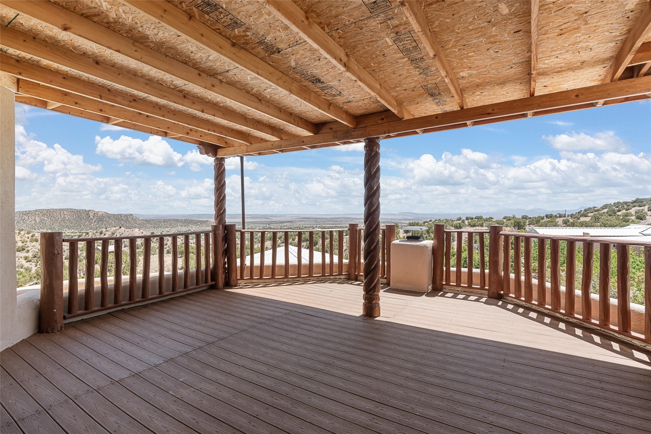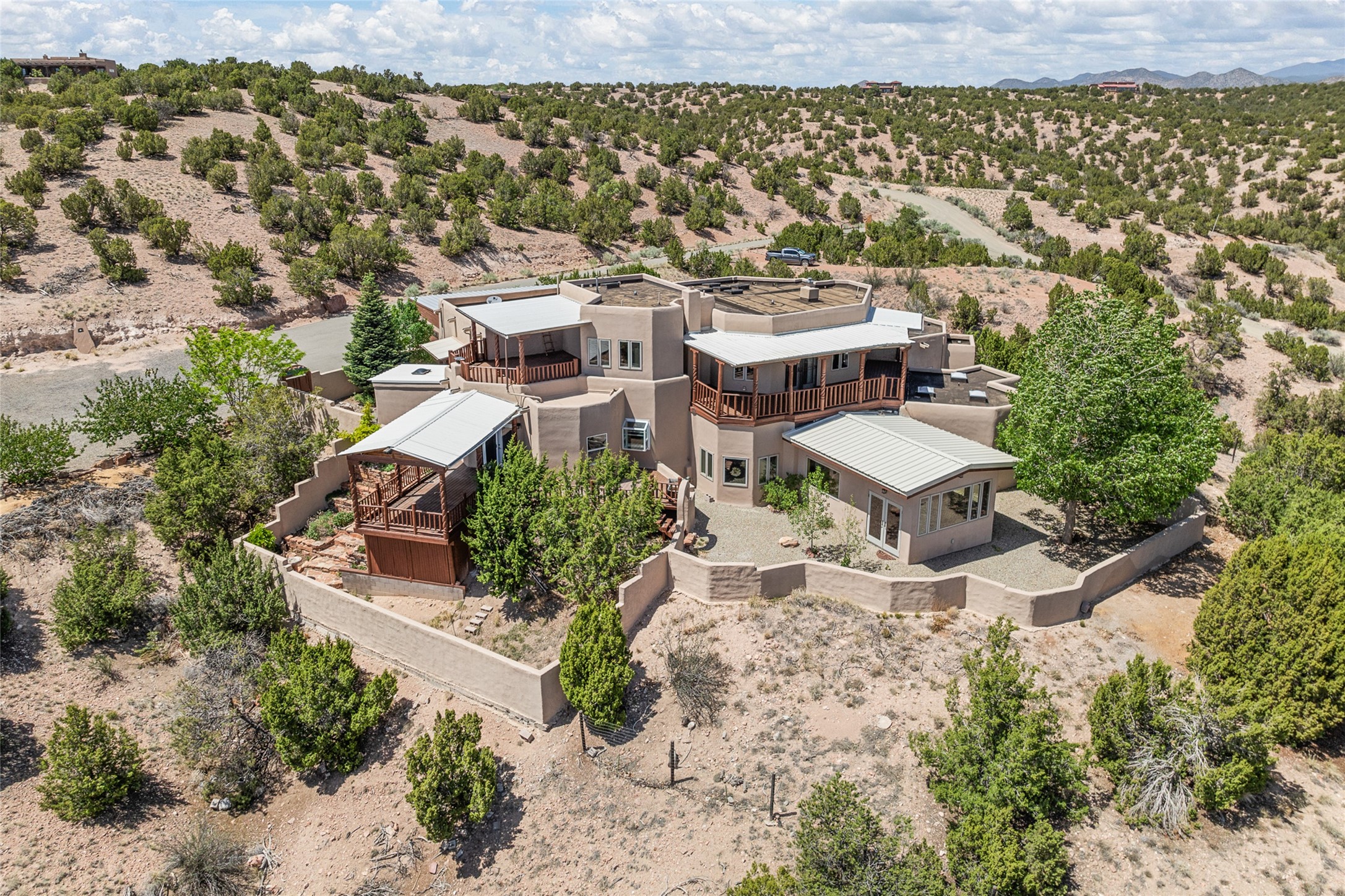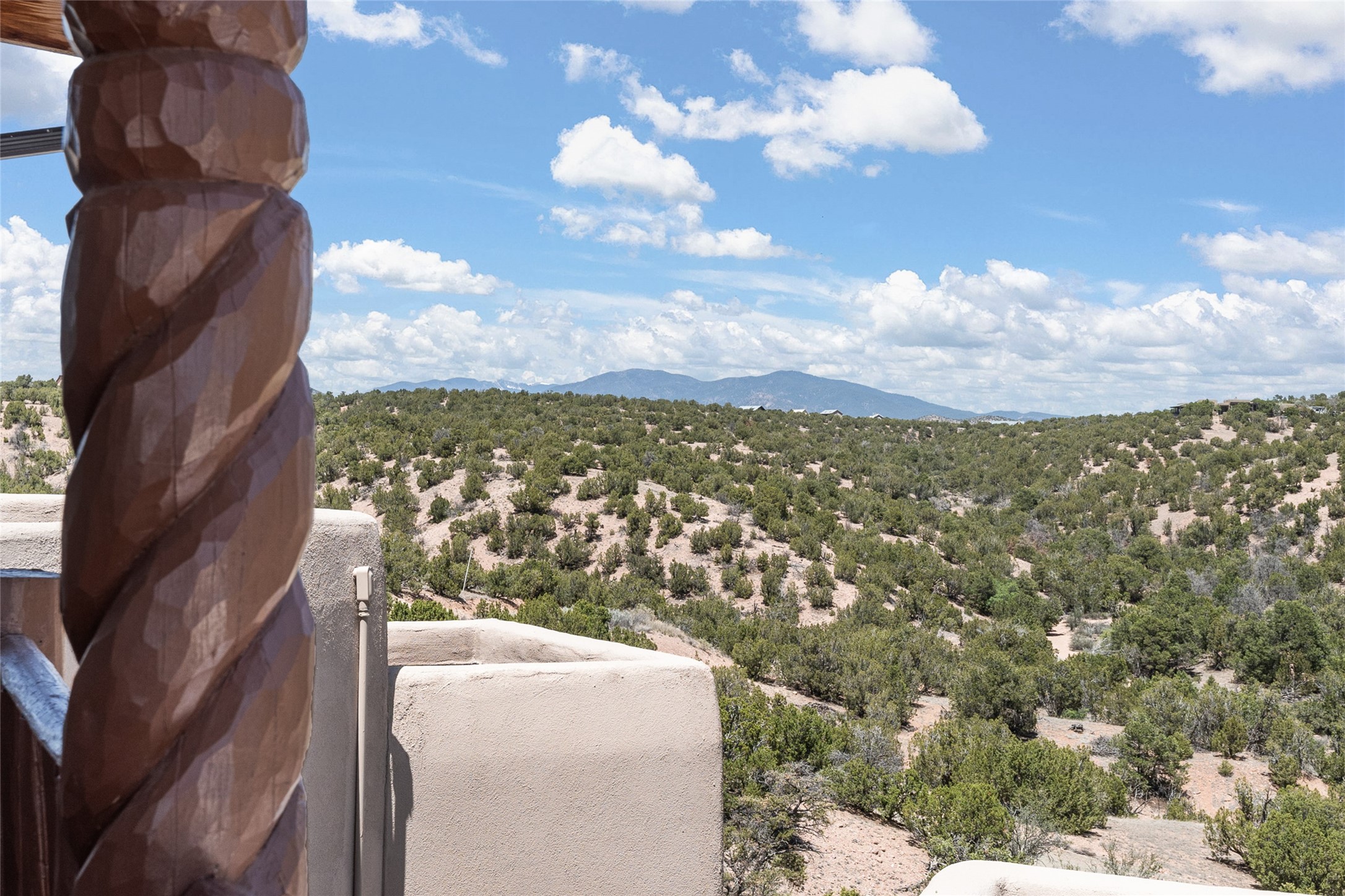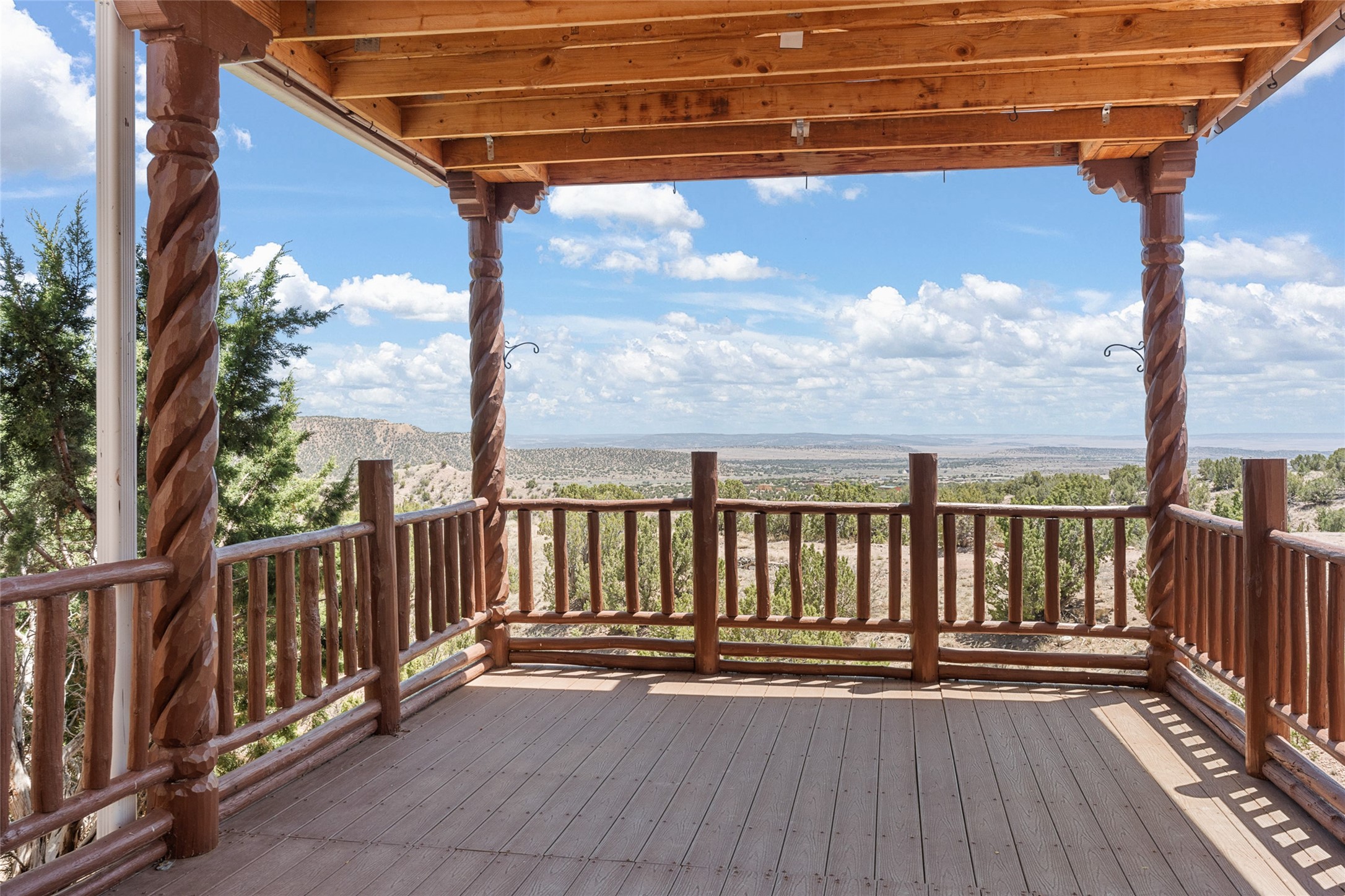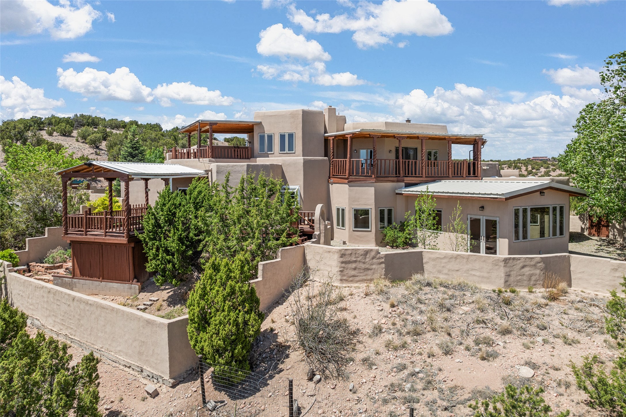 Looking for privacy with an extraordinary view? Nestled in the serene landscape of Lamy, New Mexico just minutes from Santa Fe, this stunning Southwestern pueblo home offers breathtaking million-dollar views of the iconic Galisteo Basin. Just a short 20-minute drive from downtown Santa Fe, this private escape is situated on 12.5 acres within a gated community. Inside, discover a residence adorned with unique artistic touches, including intricately inlaid turquoise accents on each stair banister, adding a distinctive Southwestern charm. This spacious estate boasts 5 bedrooms, 5 bathrooms, private office, and multiple living spaces. Cozy rooms and inviting reading nooks throughout the home provide perfect retreats for relaxation and reflection.The primary suite offers all the amenities you can dream of- a kiva fireplace, two walk-in closets, a sitting room, separate shower and tub, and dual sinks. The home features separate en-suite bedrooms, ensuring privacy and comfortable separation of space for all residents and guests. The dramatic dining room, with its breathtaking views, creates a captivating backdrop for every meal. The front entrance is a display of true craftsmanship, a flagstone staircase leads to a sheltered patio with dramatic stone accents and wood beams. Additionally, this property includes a separate artist studio, ideal for creatives who draw inspiration from the stunning vistas and tranquil environment. The garage and expansive workshop provide ample space for all of your hobbies. Embrace the beauty of the high desert and the rich cultural heritage of the Southwest in this one-of-a-kind pueblo home. Carefully designed to showcase every view and embrace the terrain, this exquisite property perfectly blends artistic elegance with your particular lifestyle.