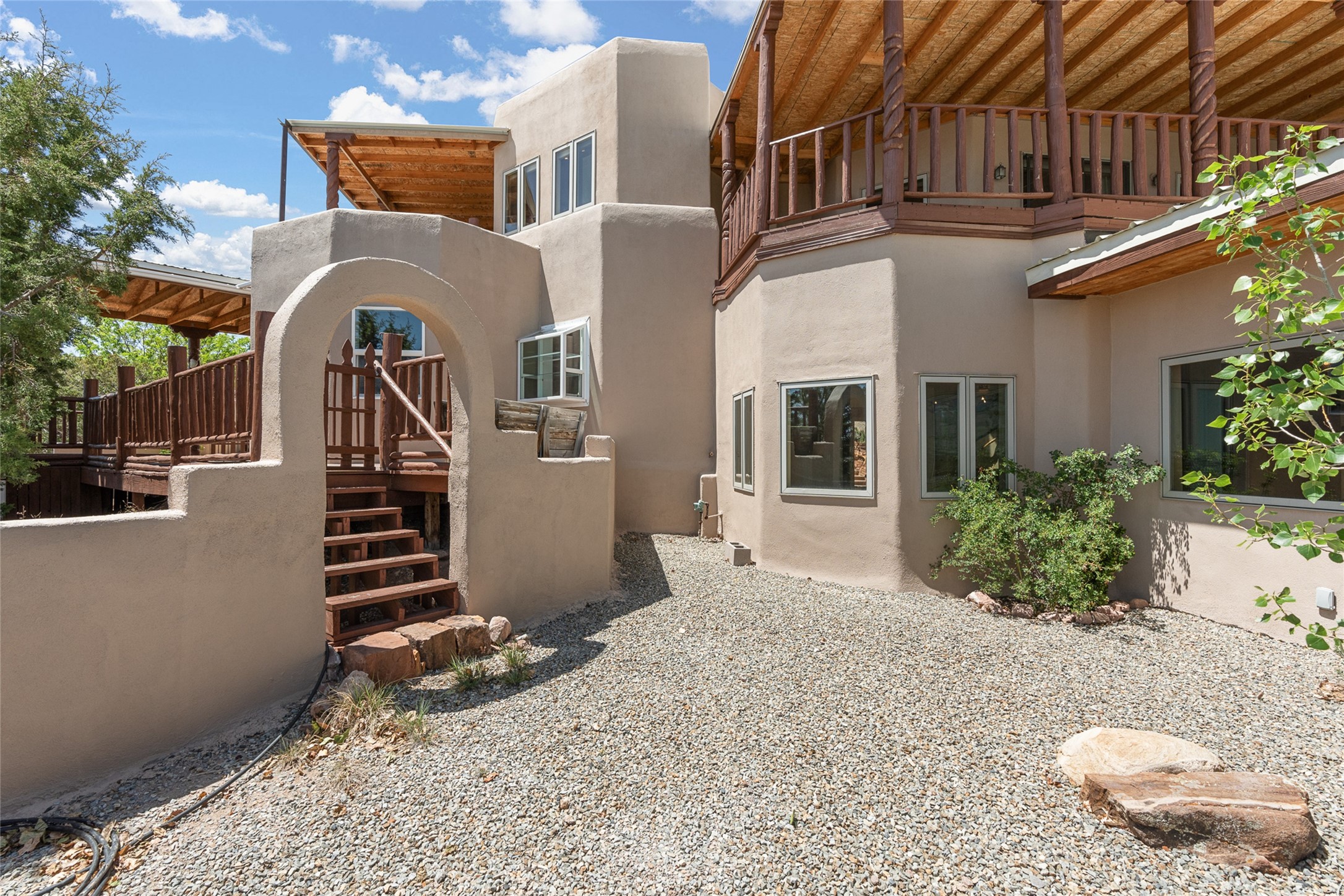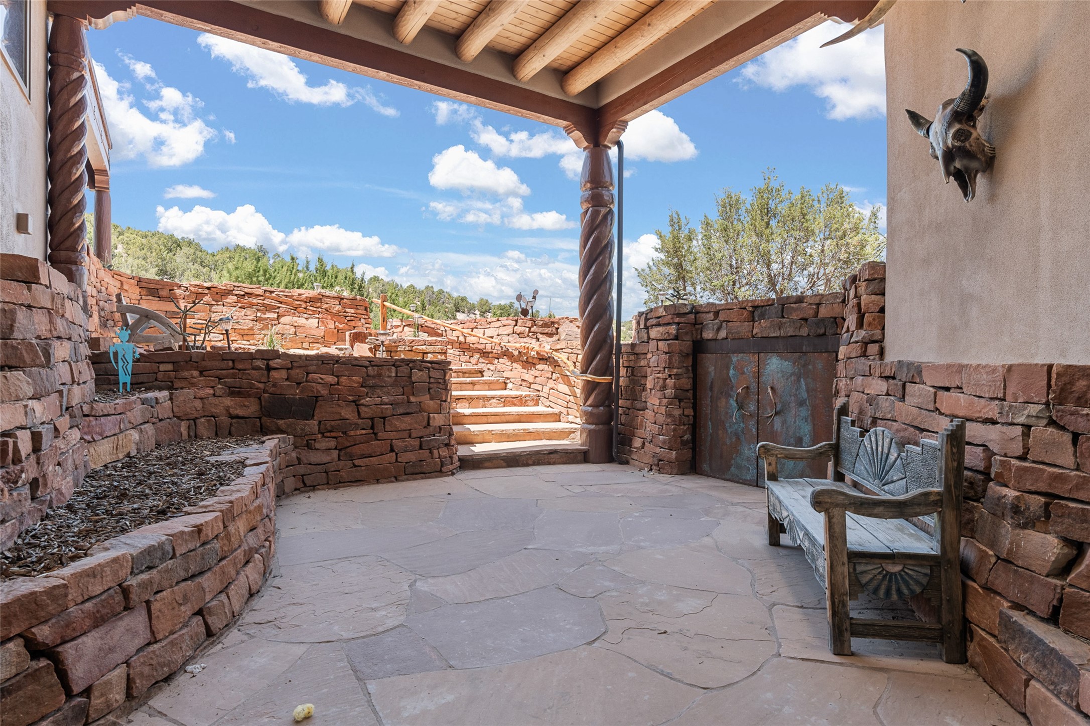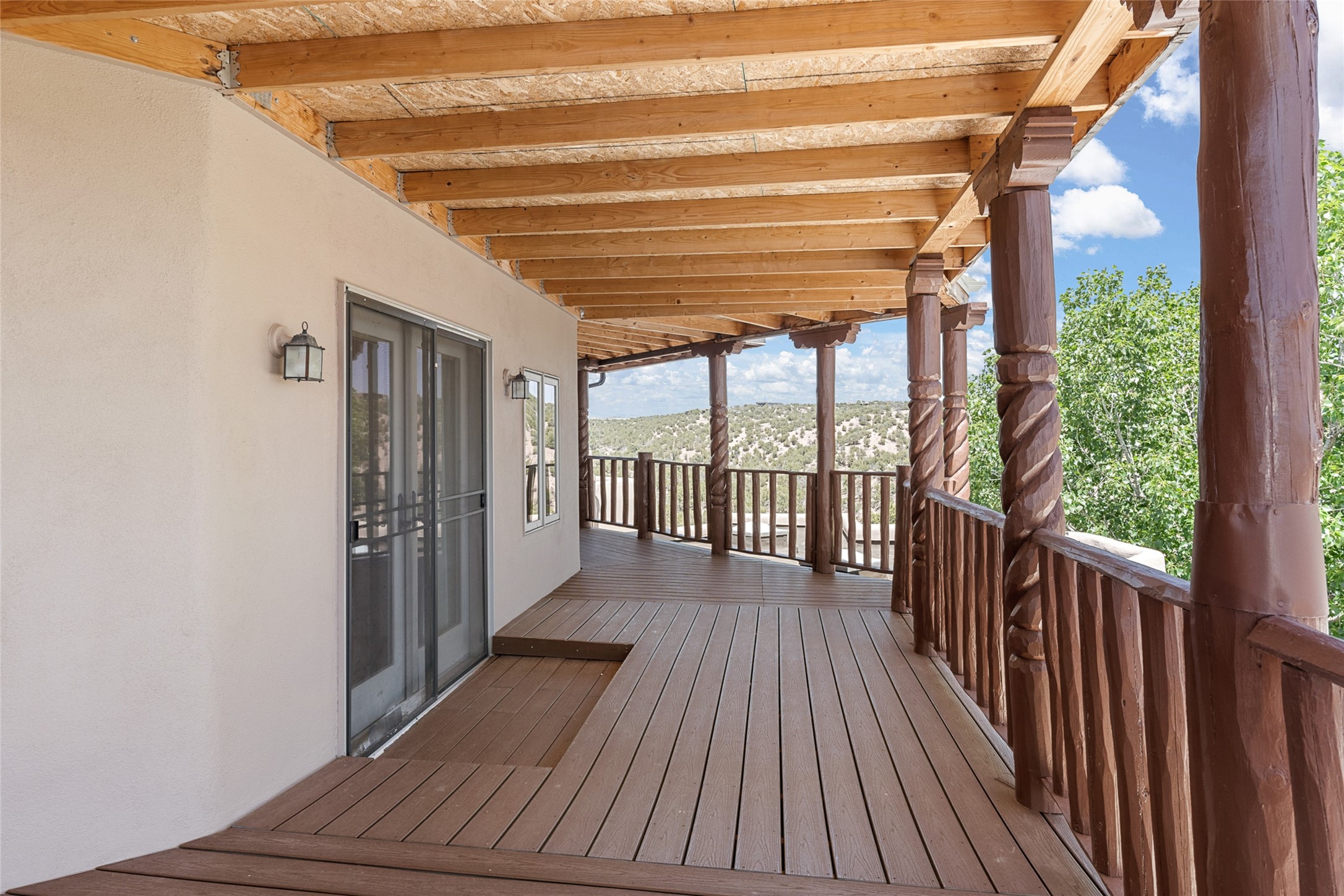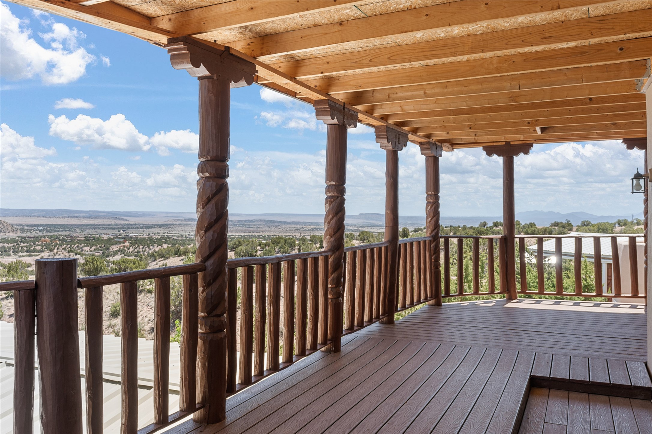 Looking for privacy with an extraordinary view? Nestled in the serene landscape of Lamy, New Mexico just minutes from Santa Fe, this stunning Southwestern pueblo home offers breathtaking million-dollar views of the iconic Galisteo Basin. Just a short 20-minute drive from downtown Santa Fe, this private escape is situated on 12.5 acres within a gated community. Inside, discover a residence adorned with unique artistic touches, including intricately inlaid turquoise accents on each stair banister, adding a distinctive Southwestern charm. This spacious estate boasts 5 bedrooms, 5 bathrooms, private office, and multiple living spaces. Cozy rooms and inviting reading nooks throughout the home provide perfect retreats for relaxation and reflection.The primary suite offers all the amenities you can dream of- a kiva fireplace, two walk-in closets, a sitting room, separate shower and tub, and dual sinks. The home features separate en-suite bedrooms, ensuring privacy and comfortable separation of space for all residents and guests. The dramatic dining room, with its breathtaking views, creates a captivating backdrop for every meal. The front entrance is a display of true craftsmanship, a flagstone staircase leads to a sheltered patio with dramatic stone accents and wood beams. Additionally, this property includes a separate artist studio, ideal for creatives who draw inspiration from the stunning vistas and tranquil environment. The garage and expansive workshop provide ample space for all of your hobbies. Embrace the beauty of the high desert and the rich cultural heritage of the Southwest in this one-of-a-kind pueblo home. Carefully designed to showcase every view and embrace the terrain, this exquisite property perfectly blends artistic elegance with your particular lifestyle.