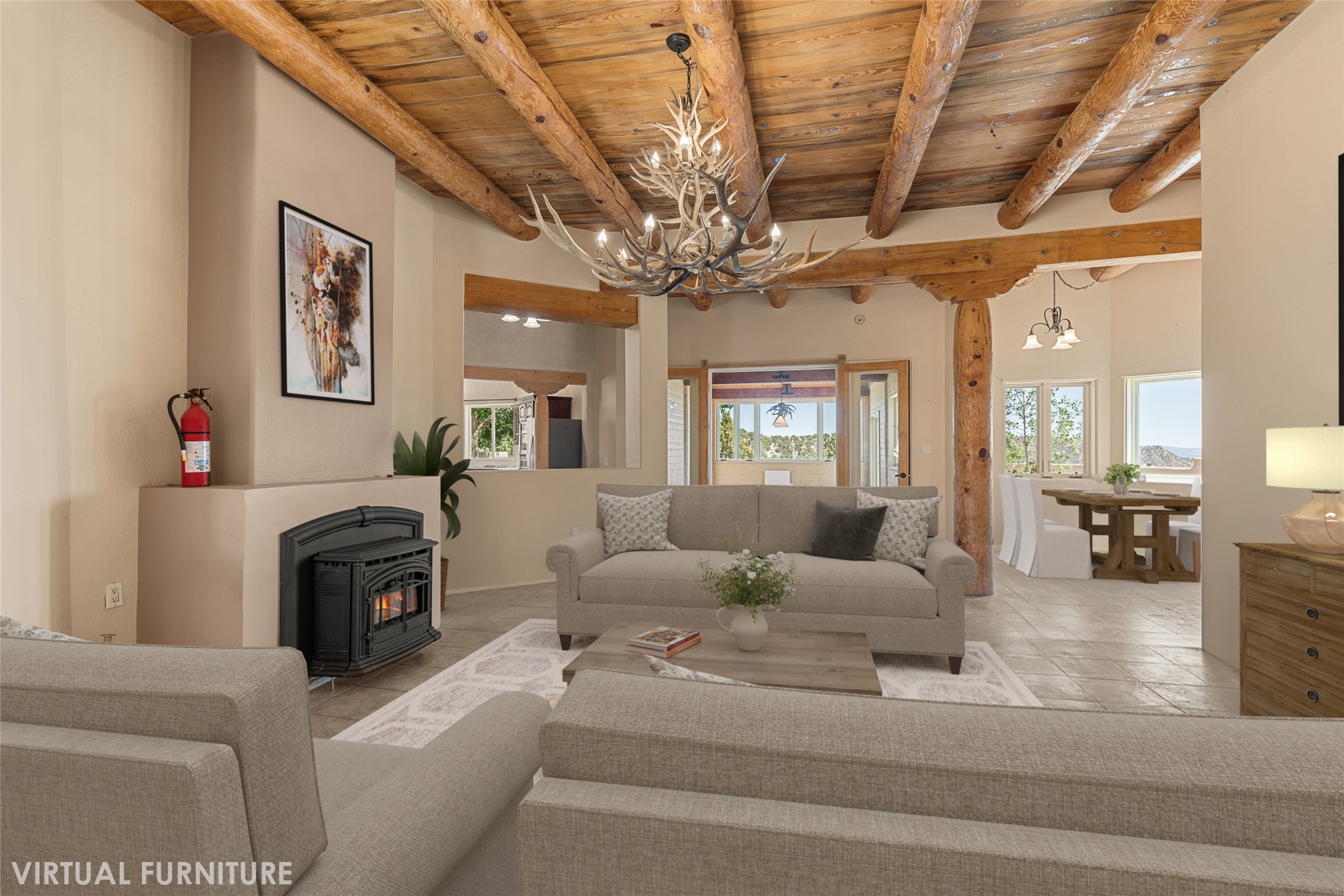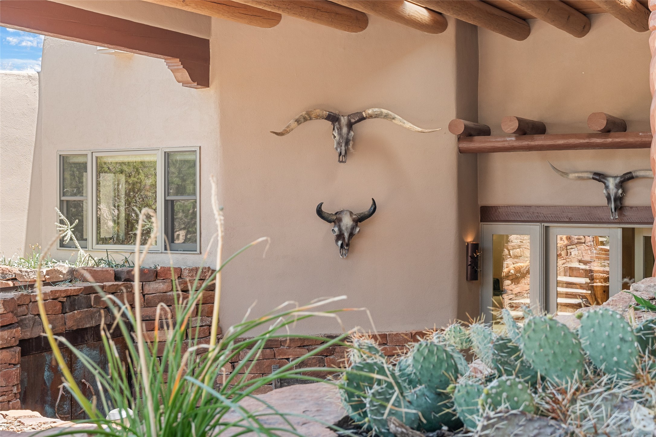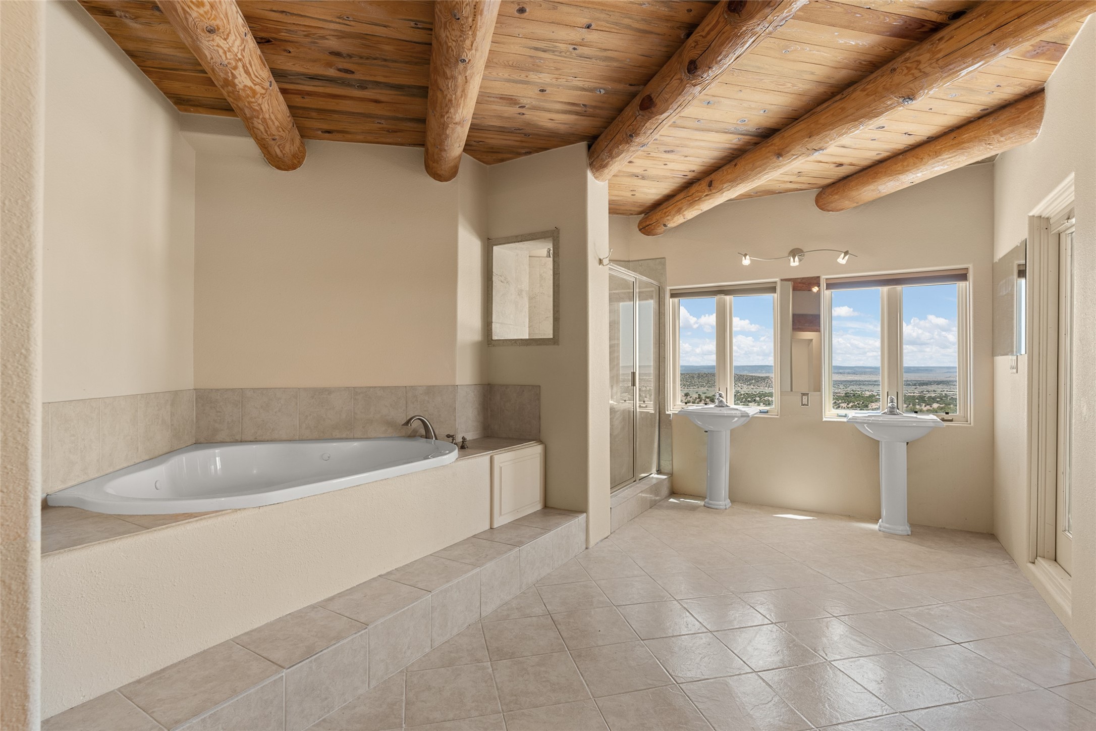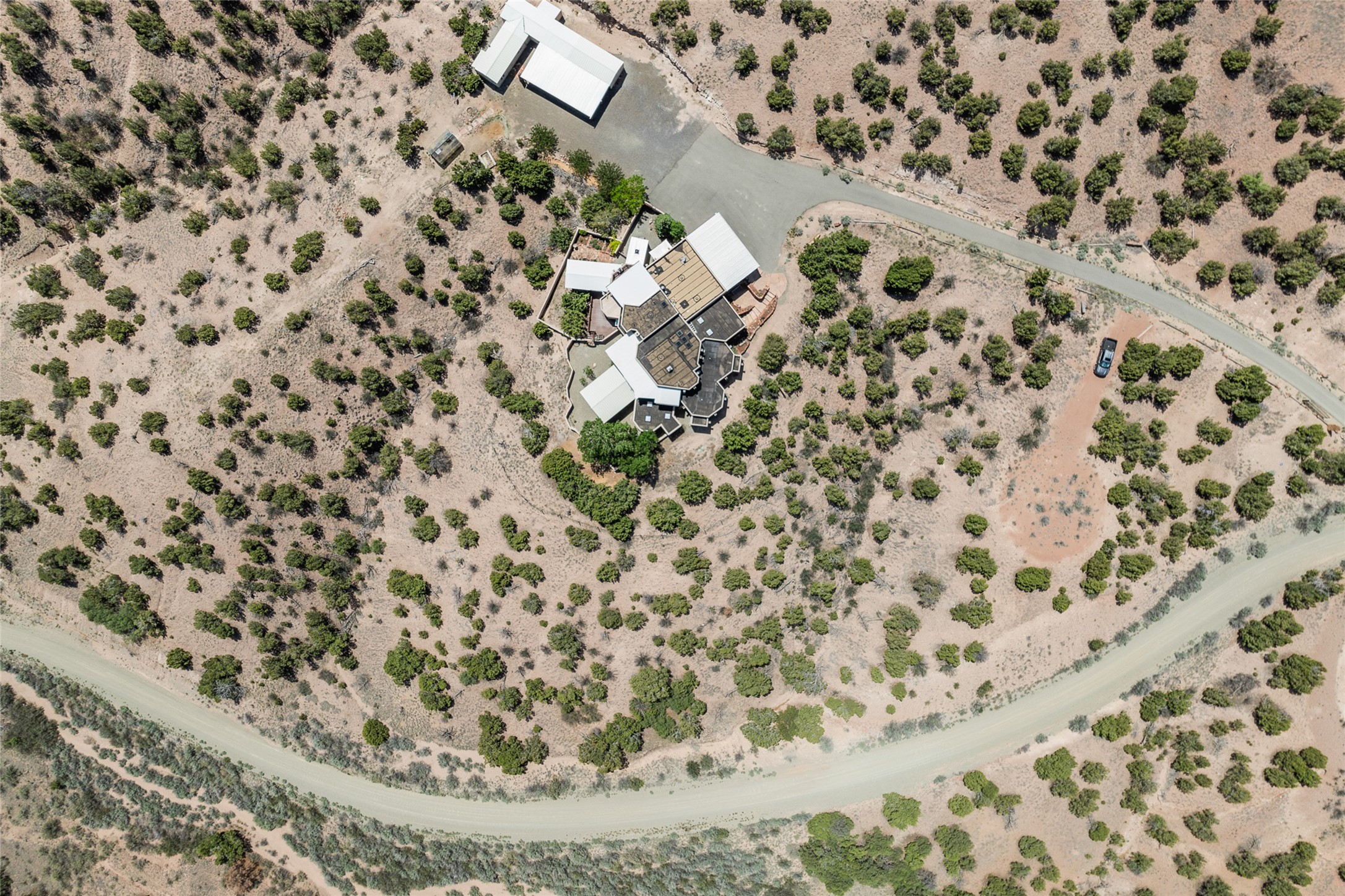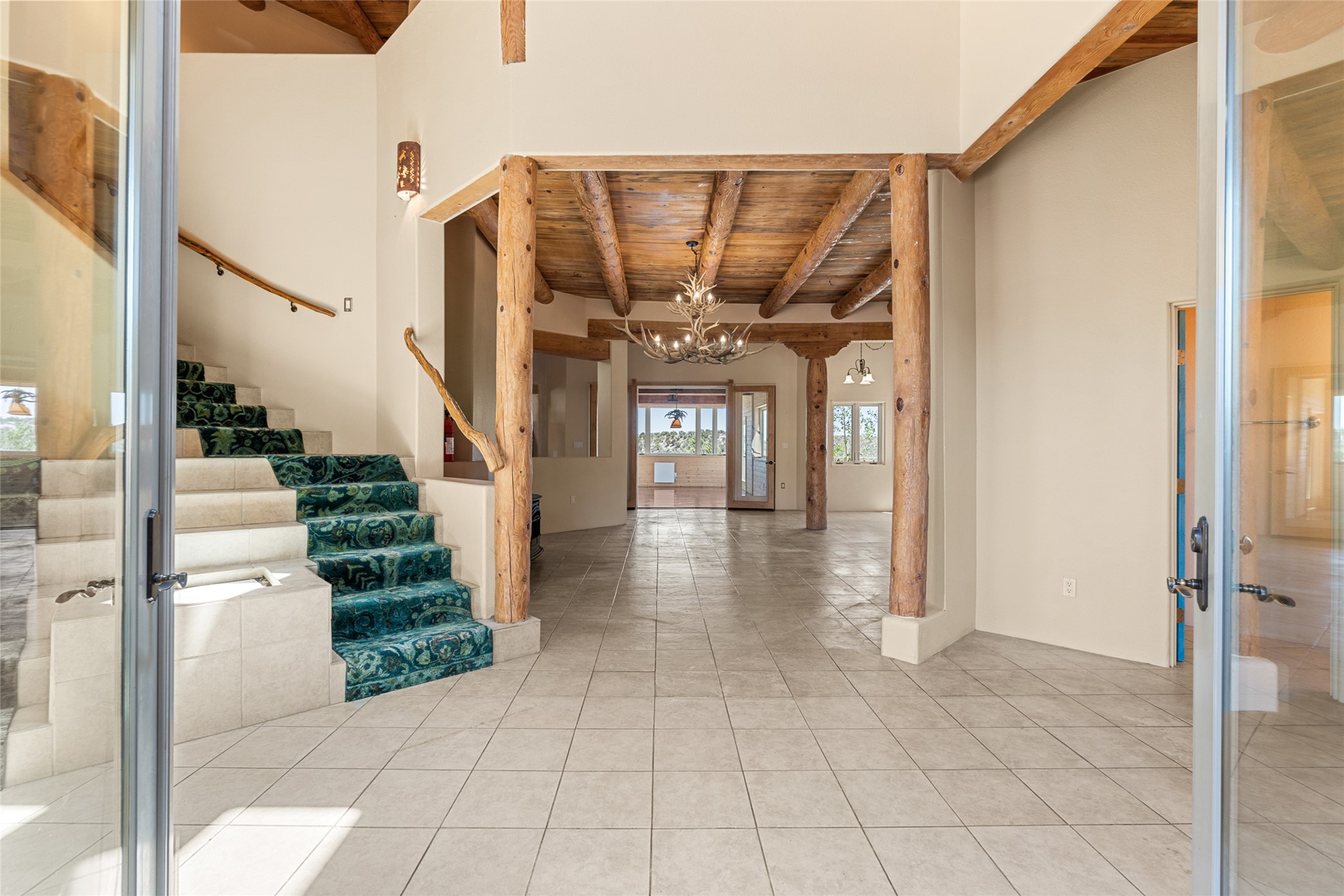 Looking for privacy with an extraordinary view? Nestled in the serene landscape of Lamy, New Mexico just minutes from Santa Fe, this stunning Southwestern pueblo home offers breathtaking million-dollar views of the iconic Galisteo Basin. Just a short 20-minute drive from downtown Santa Fe, this private escape is situated on 12.5 acres within a gated community. Inside, discover a residence adorned with unique artistic touches, including intricately inlaid turquoise accents on each stair banister, adding a distinctive Southwestern charm. This spacious estate boasts 5 bedrooms, 5 bathrooms, private office, and multiple living spaces. Cozy rooms and inviting reading nooks throughout the home provide perfect retreats for relaxation and reflection.The primary suite offers all the amenities you can dream of- a kiva fireplace, two walk-in closets, a sitting room, separate shower and tub, and dual sinks. The home features separate en-suite bedrooms, ensuring privacy and comfortable separation of space for all residents and guests. The dramatic dining room, with its breathtaking views, creates a captivating backdrop for every meal. The front entrance is a display of true craftsmanship, a flagstone staircase leads to a sheltered patio with dramatic stone accents and wood beams. Additionally, this property includes a separate artist studio, ideal for creatives who draw inspiration from the stunning vistas and tranquil environment. The garage and expansive workshop provide ample space for all of your hobbies. Embrace the beauty of the high desert and the rich cultural heritage of the Southwest in this one-of-a-kind pueblo home. Carefully designed to showcase every view and embrace the terrain, this exquisite property perfectly blends artistic elegance with your particular lifestyle.