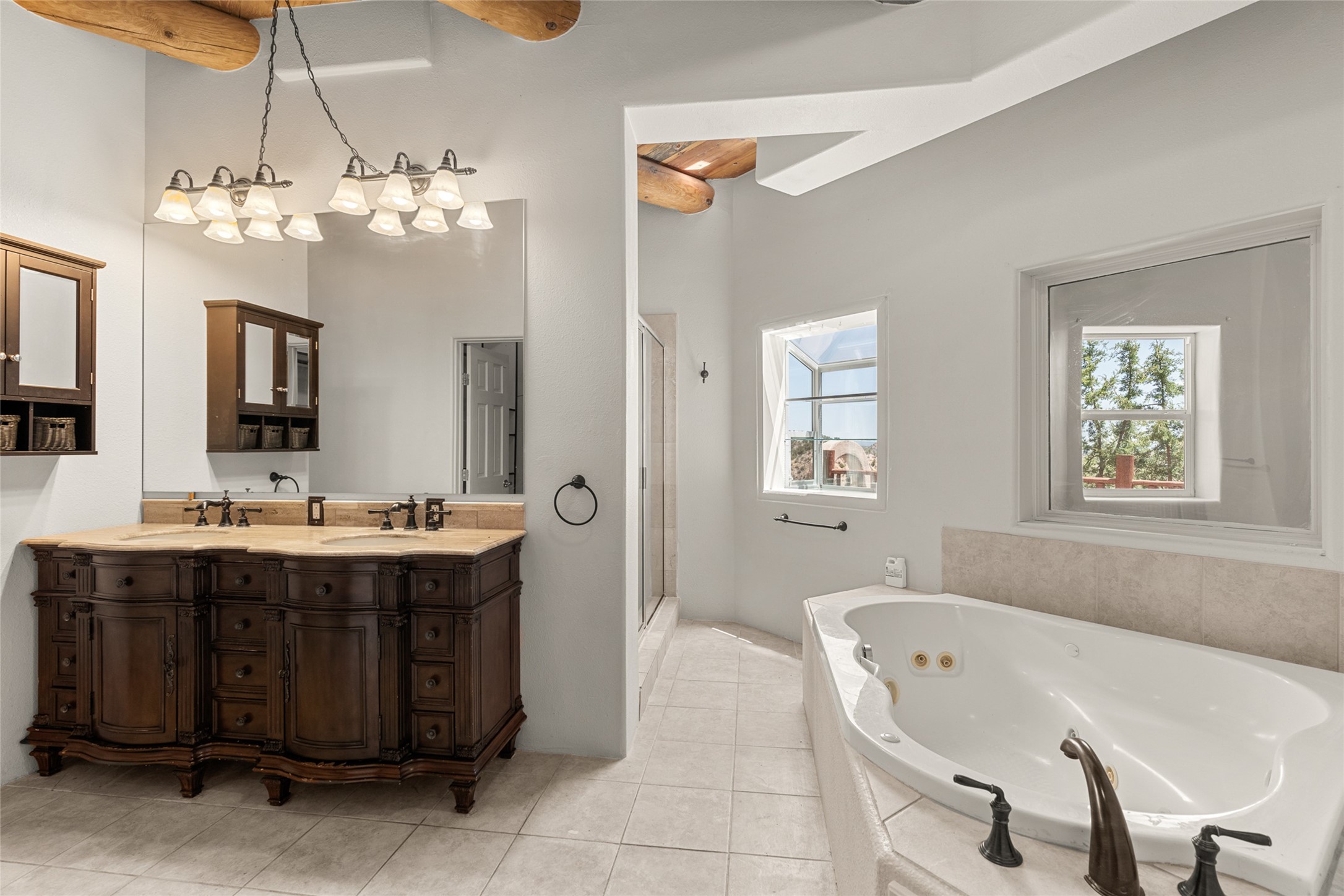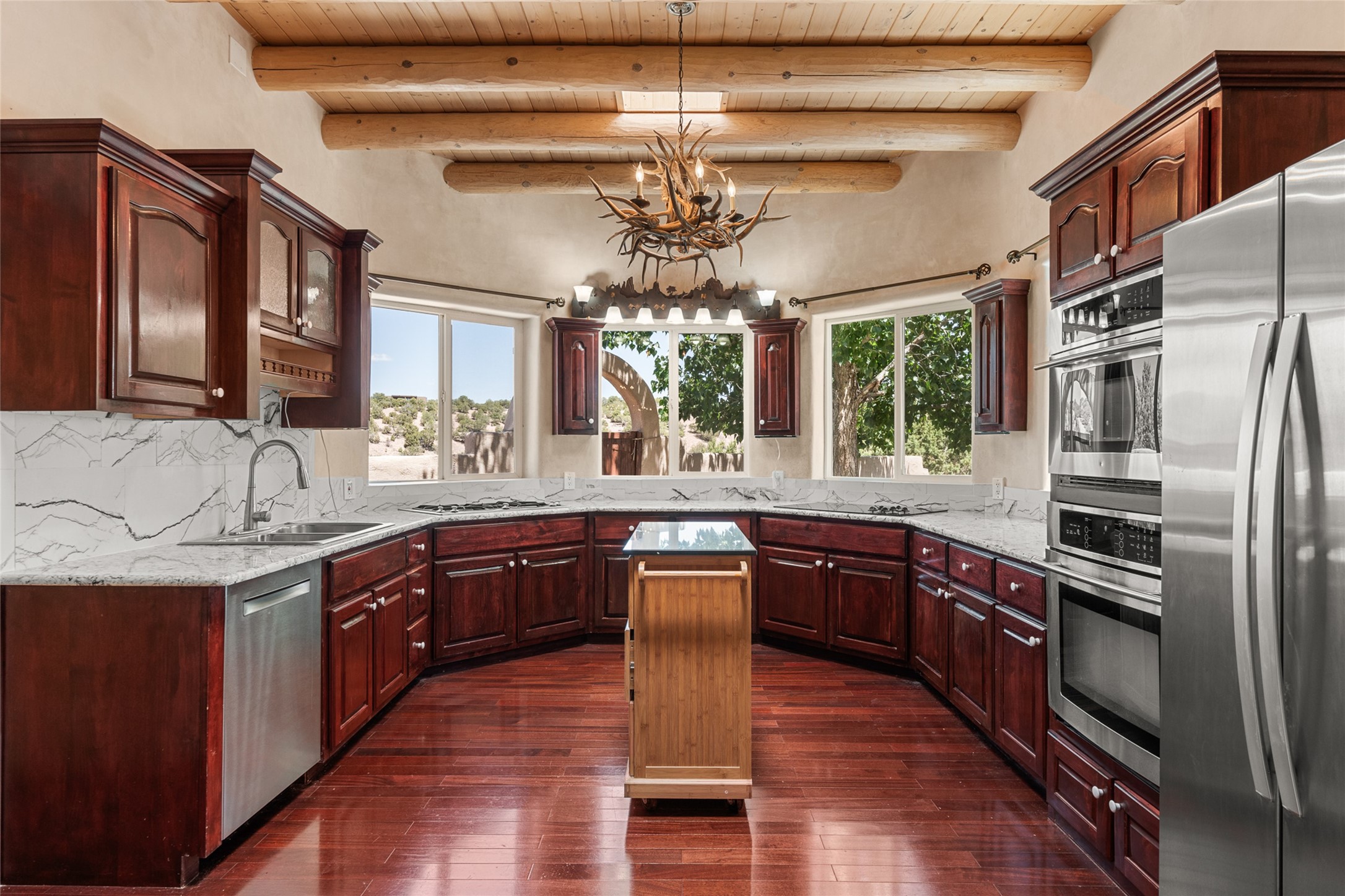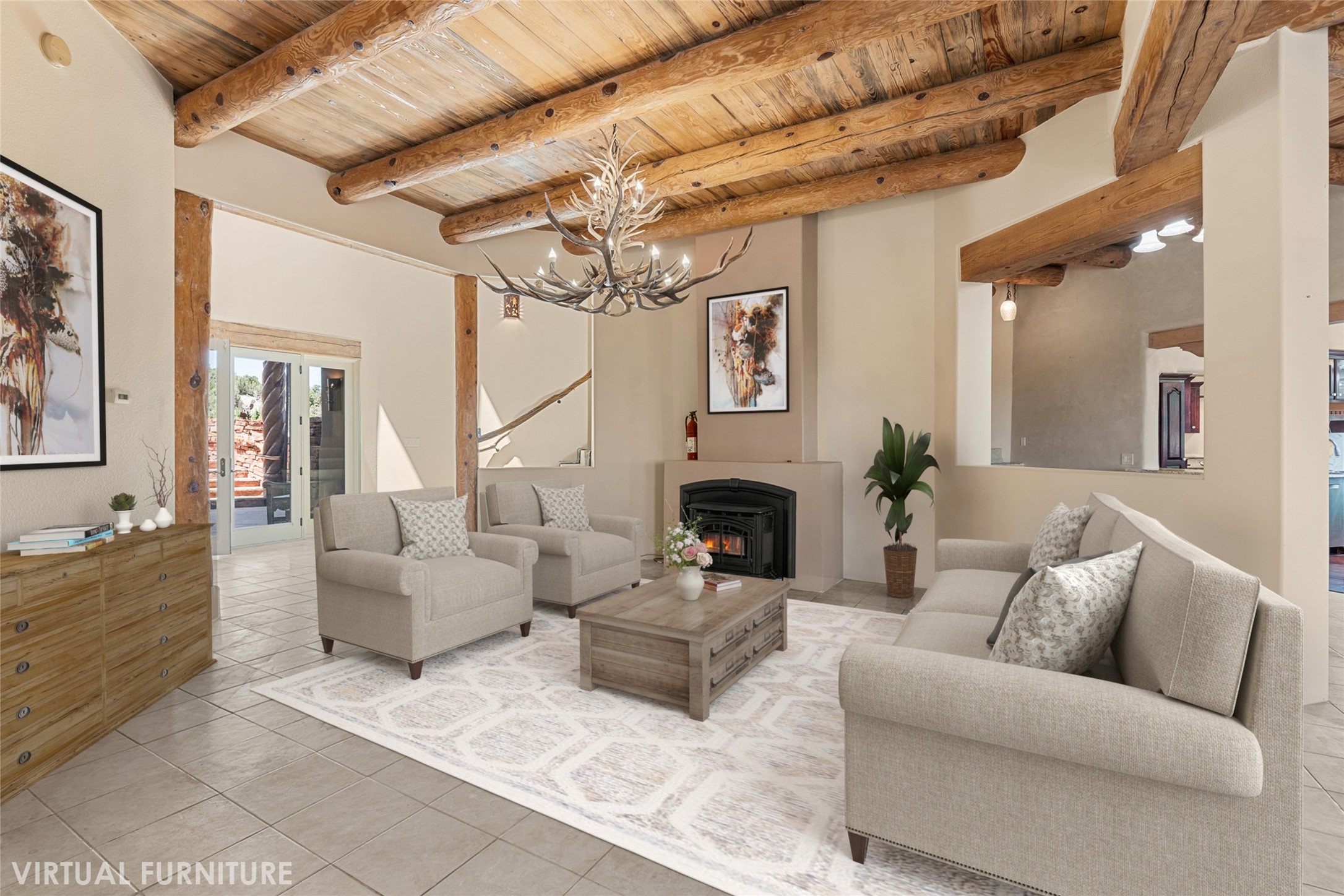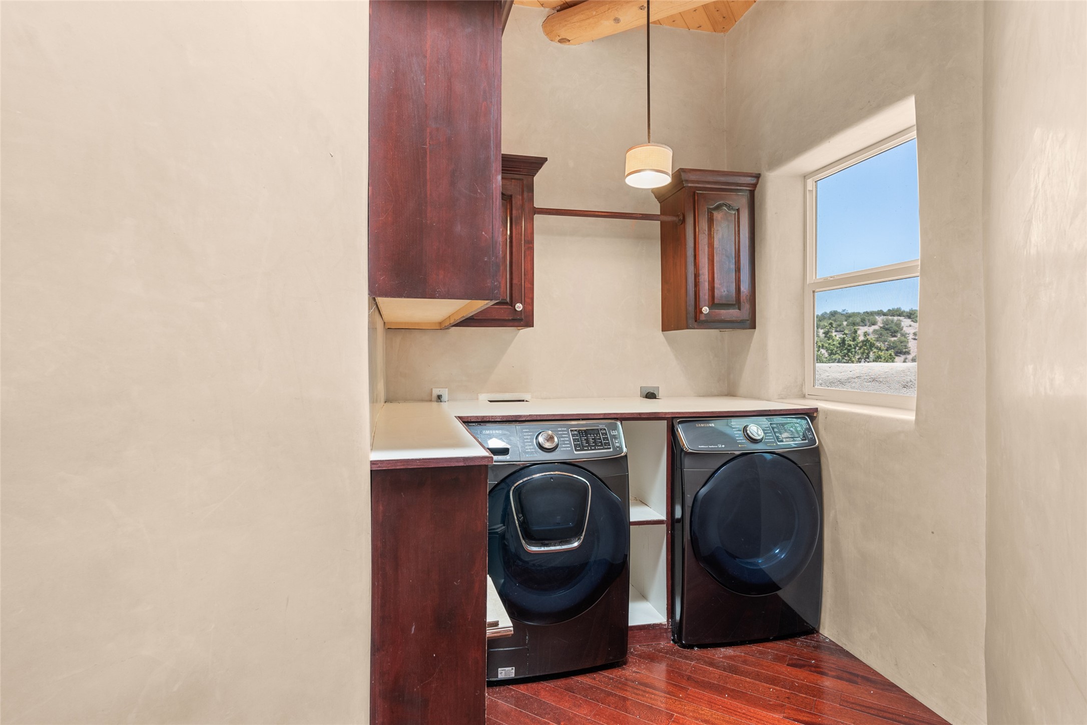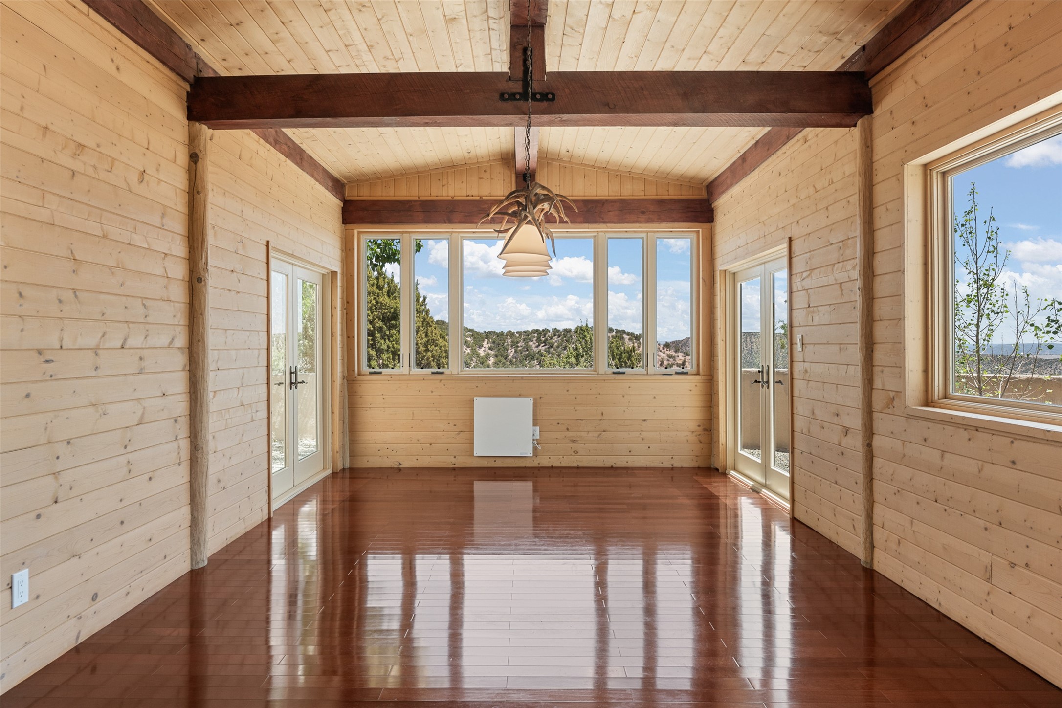 Looking for privacy with an extraordinary view? Nestled in the serene landscape of Lamy, New Mexico just minutes from Santa Fe, this stunning Southwestern pueblo home offers breathtaking million-dollar views of the iconic Galisteo Basin. Just a short 20-minute drive from downtown Santa Fe, this private escape is situated on 12.5 acres within a gated community. Inside, discover a residence adorned with unique artistic touches, including intricately inlaid turquoise accents on each stair banister, adding a distinctive Southwestern charm. This spacious estate boasts 5 bedrooms, 5 bathrooms, private office, and multiple living spaces. Cozy rooms and inviting reading nooks throughout the home provide perfect retreats for relaxation and reflection.The primary suite offers all the amenities you can dream of- a kiva fireplace, two walk-in closets, a sitting room, separate shower and tub, and dual sinks. The home features separate en-suite bedrooms, ensuring privacy and comfortable separation of space for all residents and guests. The dramatic dining room, with its breathtaking views, creates a captivating backdrop for every meal. The front entrance is a display of true craftsmanship, a flagstone staircase leads to a sheltered patio with dramatic stone accents and wood beams. Additionally, this property includes a separate artist studio, ideal for creatives who draw inspiration from the stunning vistas and tranquil environment. The garage and expansive workshop provide ample space for all of your hobbies. Embrace the beauty of the high desert and the rich cultural heritage of the Southwest in this one-of-a-kind pueblo home. Carefully designed to showcase every view and embrace the terrain, this exquisite property perfectly blends artistic elegance with your particular lifestyle.