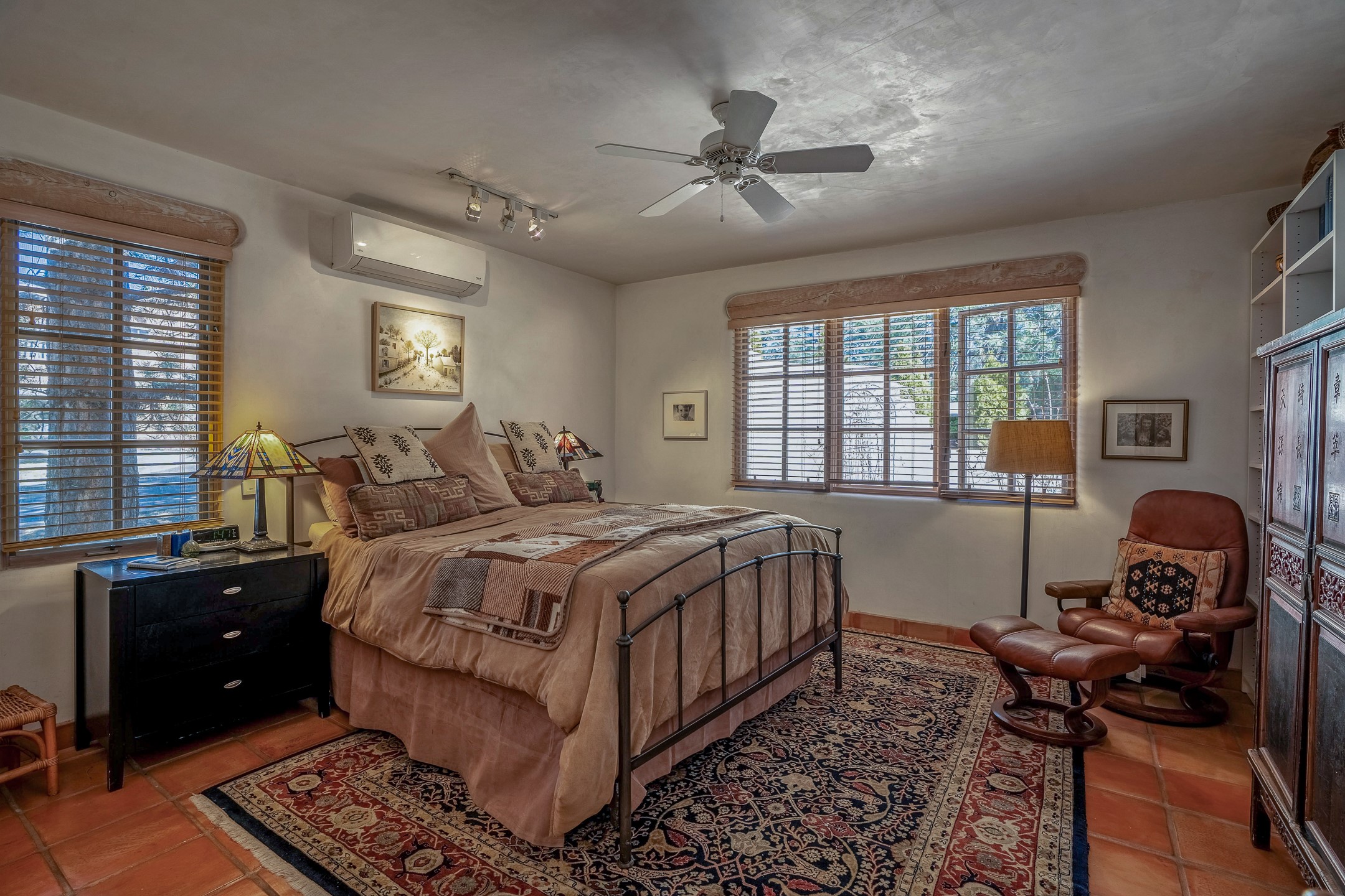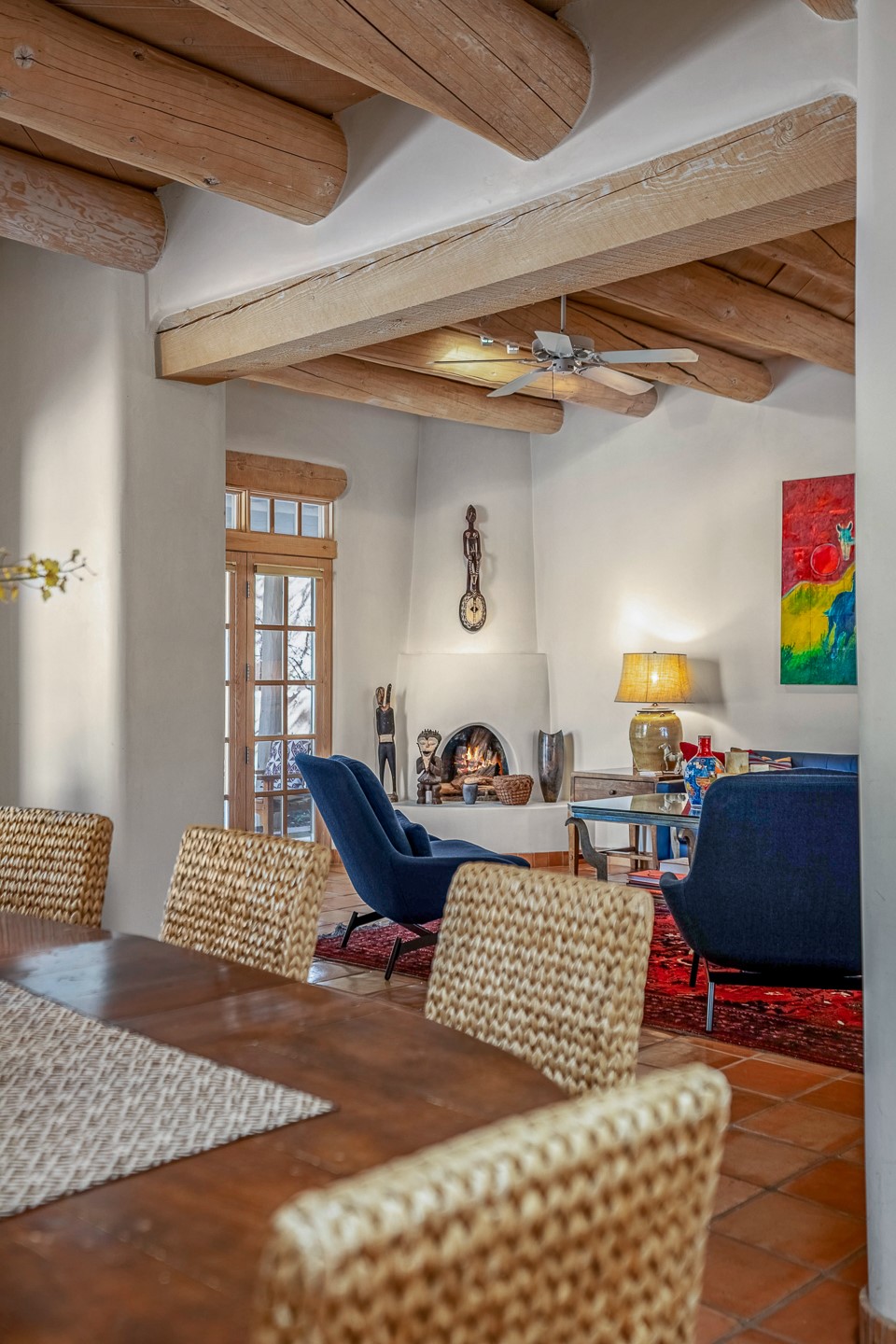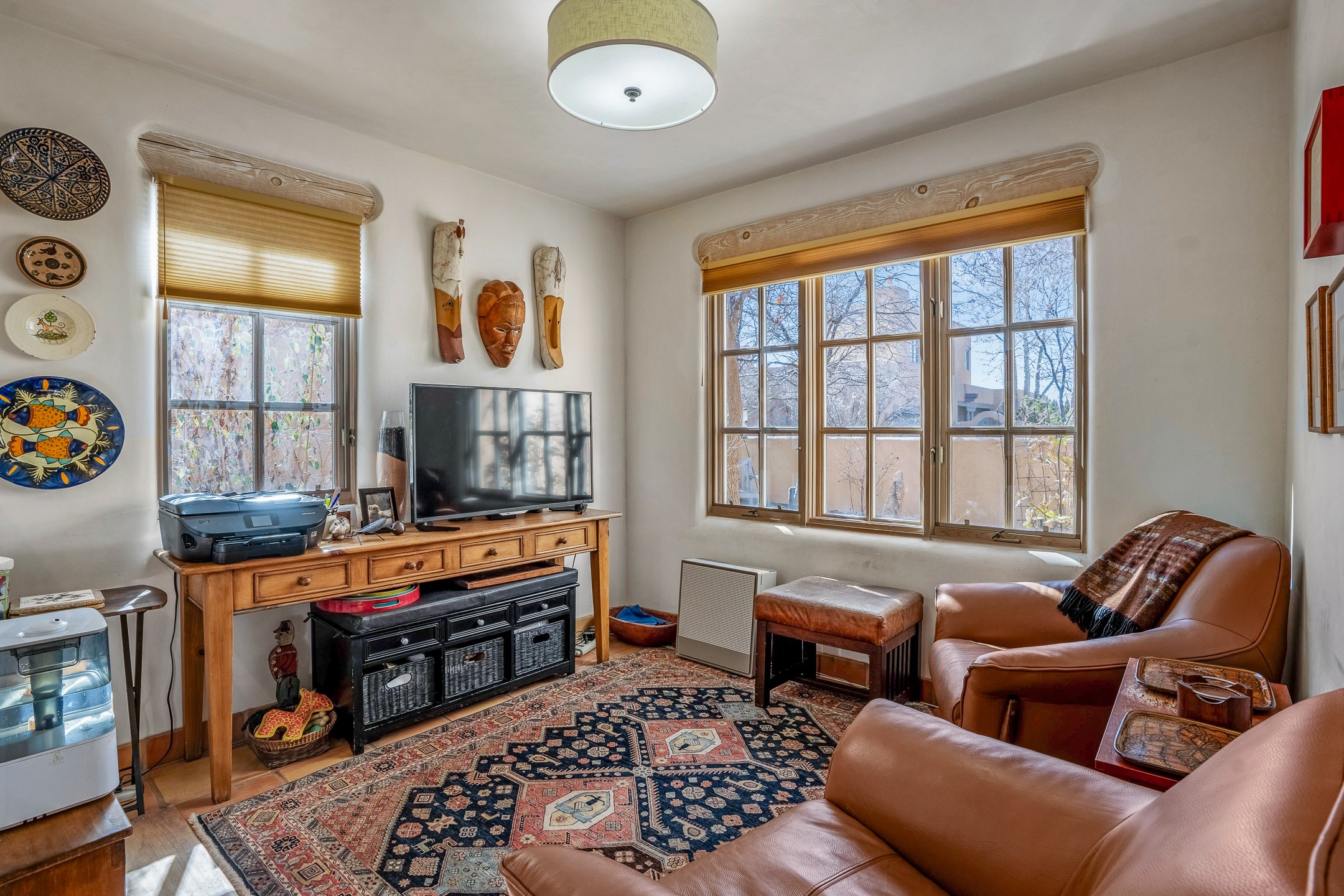 Discover the essence of Santa Fe living in this elegant Pinon B floor plan, offering 1640 Sq Ft of beautifully designed space within the coveted Quail Run Community. From the moment you step through the expansive front courtyard, you'll be welcomed by classic Southwestern warmth and character. Inside, rich Santa Fe influences abound, including viga ceilings, kiva fireplaces and saltillo tile floors, creating a timeless and inviting atmosphere. The well-appointed kitchen and open living area flow effortlessly to the private back portal, a serene retreat perfect for outdoor relaxation or entertaining. Beyond the condos appeal, Quail Run offers unparalleled amenities, just minutes from Santa Fe's vibrant Plaza and Canyon Road.