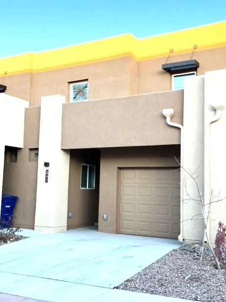 Only three years old, this townhouse has been lightly lived in and is now available for purchase by YOU! The front door opens into a living/dining room. At one end is a cute kitchen, with granite countertops, dark wood cabinets, and pantry. At the other end, a sliding glass door leads to the patio and walled back yard. The primary bedroom and bathroom are on the first floor, as well as a laundry room which leads into the one-car garage. Upstairs are two more bedrooms and a full bath. Energy efficient design with programmable thermostat, low E windows, and energy efficient central heating and cooling. The centrally located, only minutes from the Big I, in the North Valley off 4th Street.