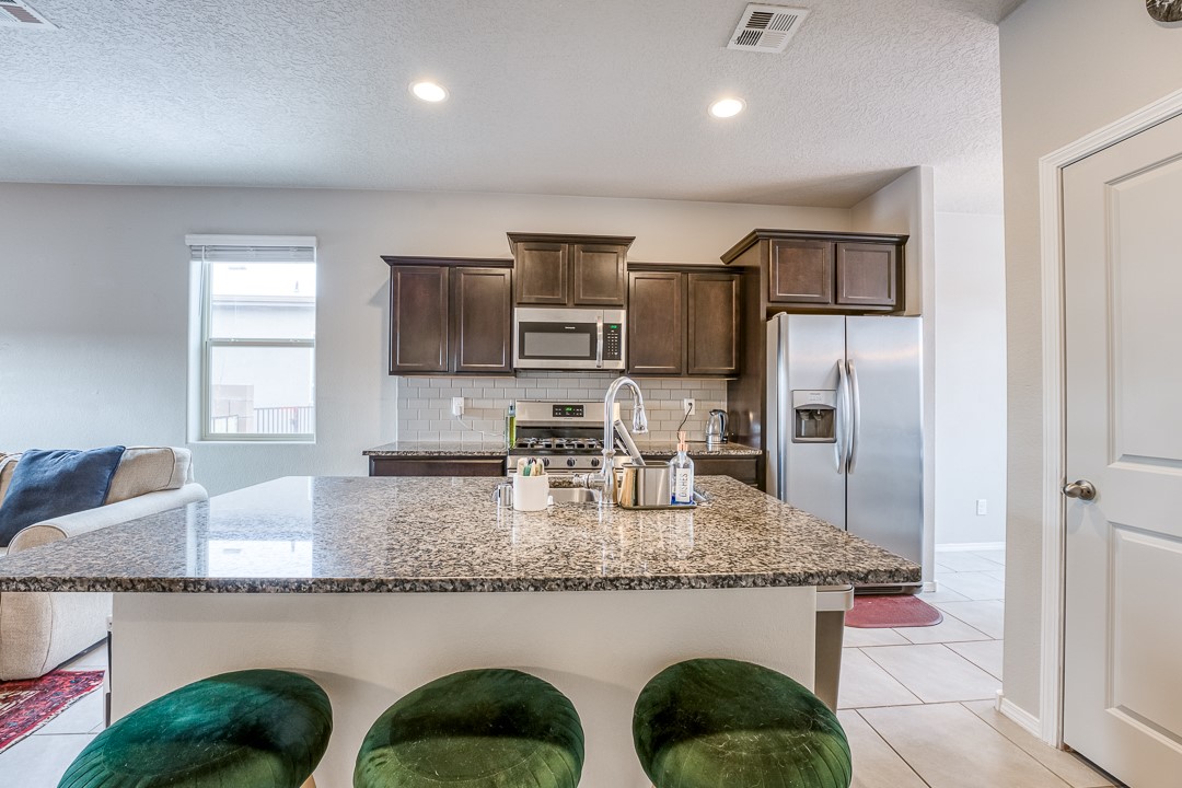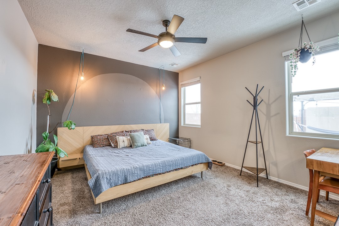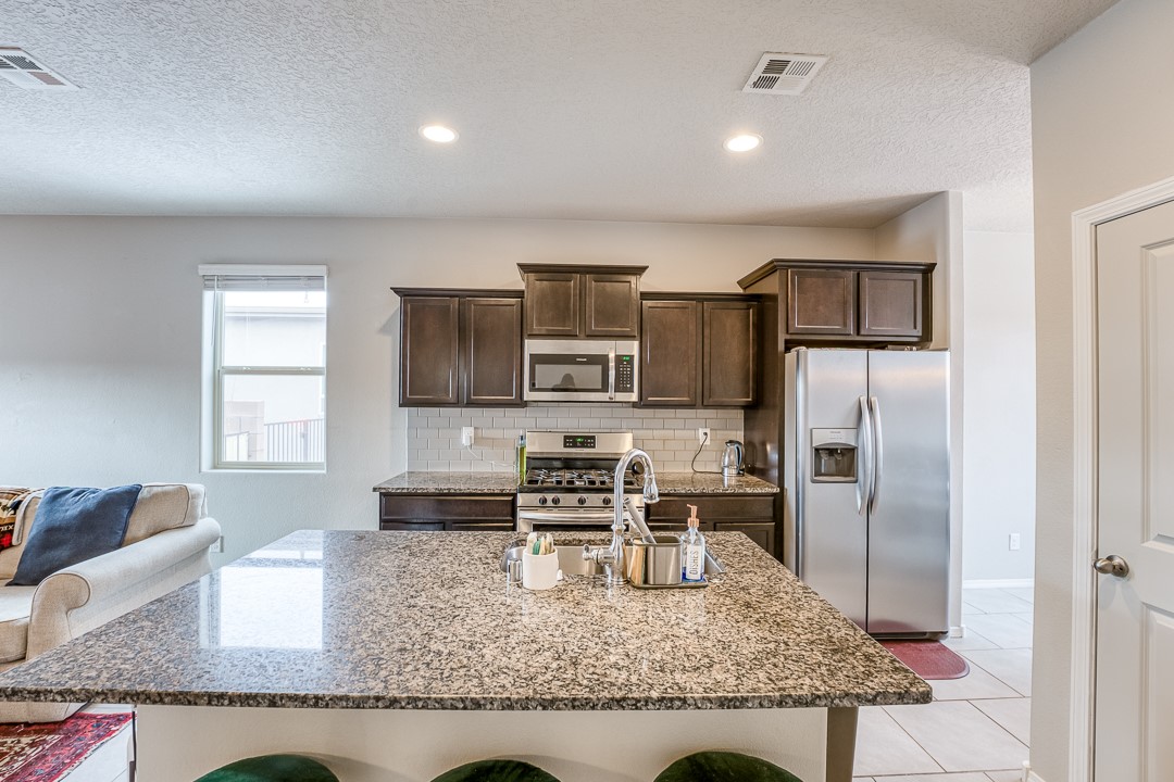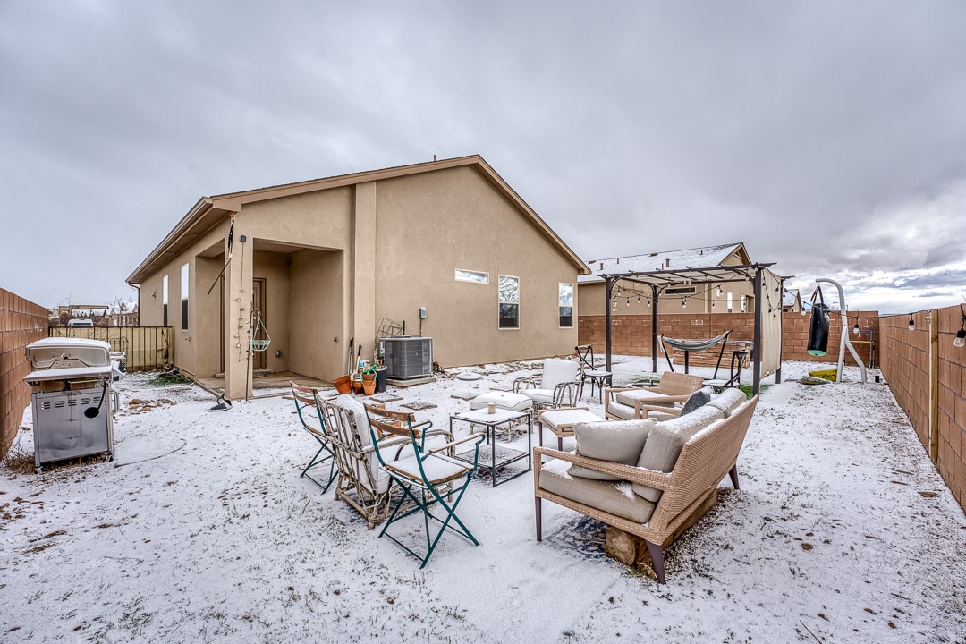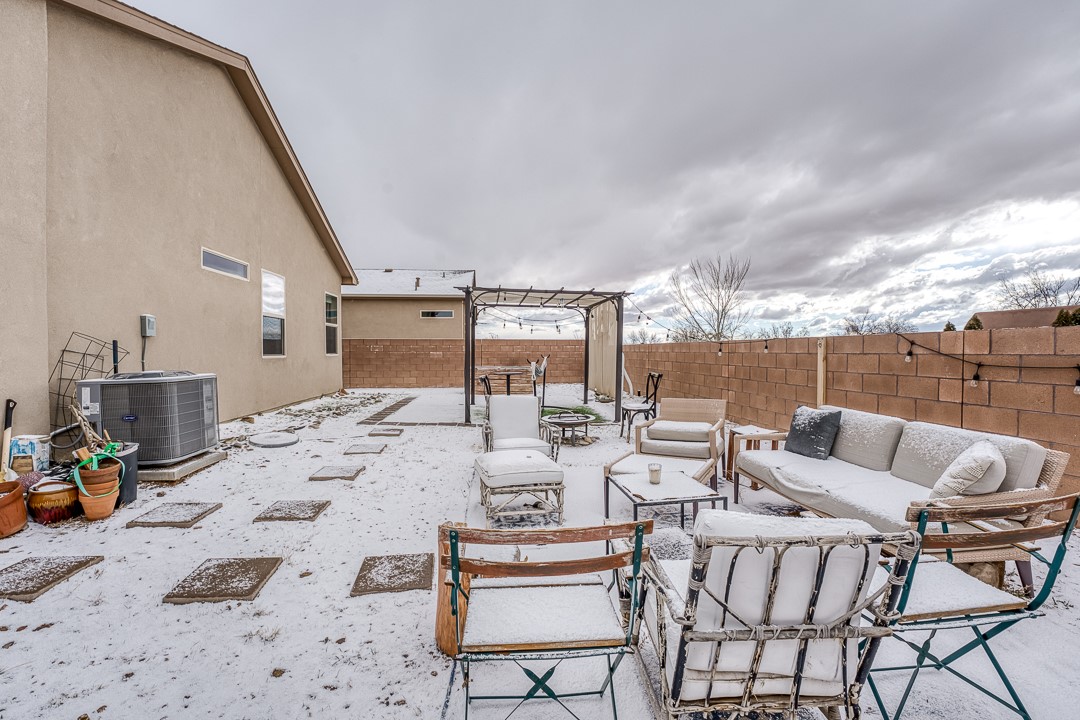SOLAR on this Beauty, with an Open Floor Plan! Enjoy your meals with a wonderful view of the Sangre De Cristo mountains as this dining area is East facing. This newer build is well maintained and perfect for a family of up to four, or for the individual looking to upgrade their home. Come see this beautiful 3-bedroom, 2-bathroom, spacious yard, recently built in 2019 home in the wonderful Cielo Azul neighborhood.