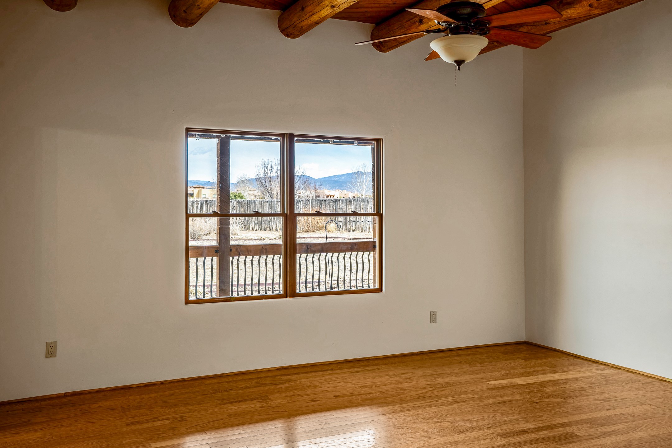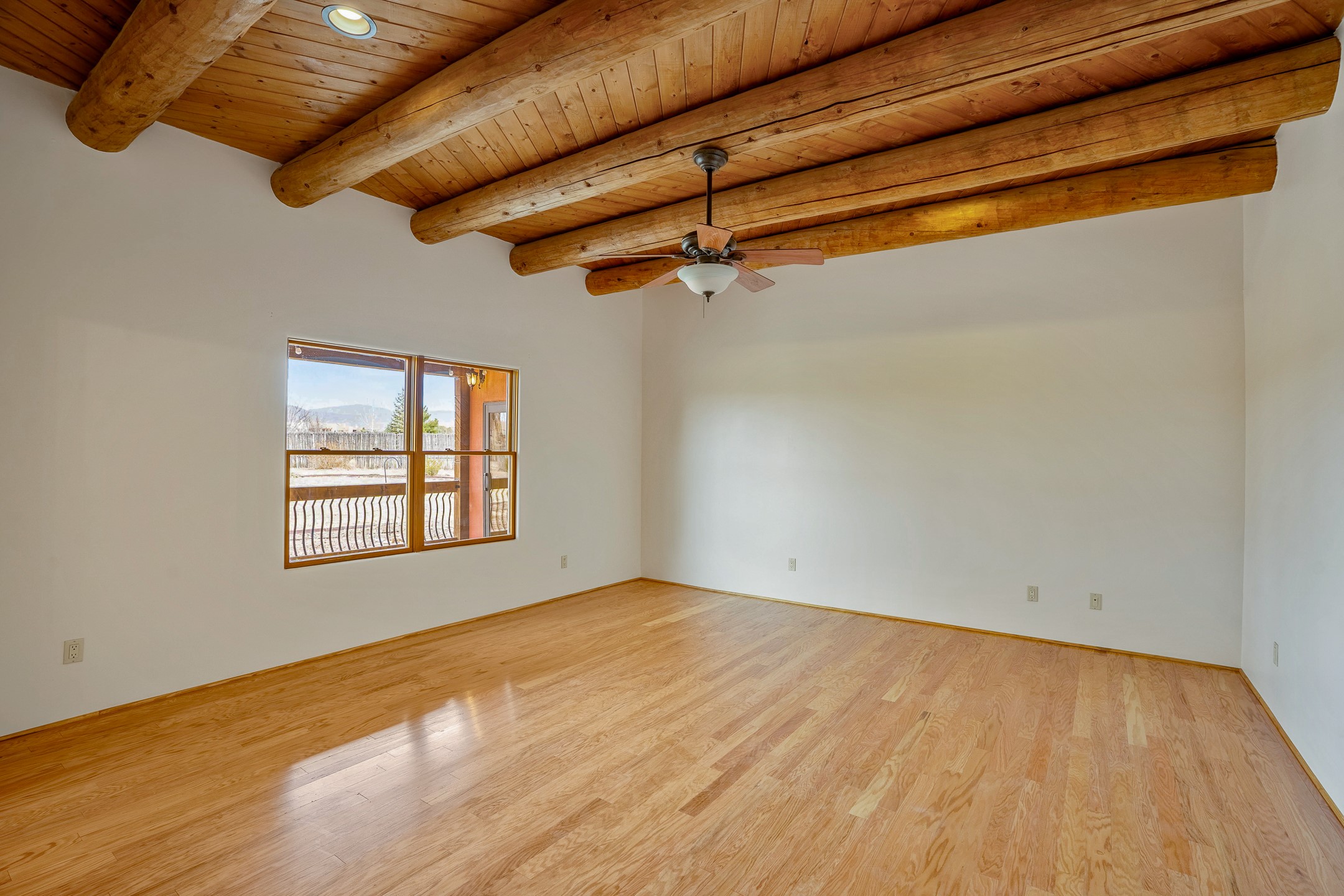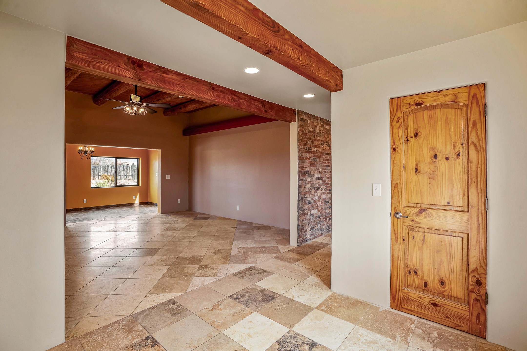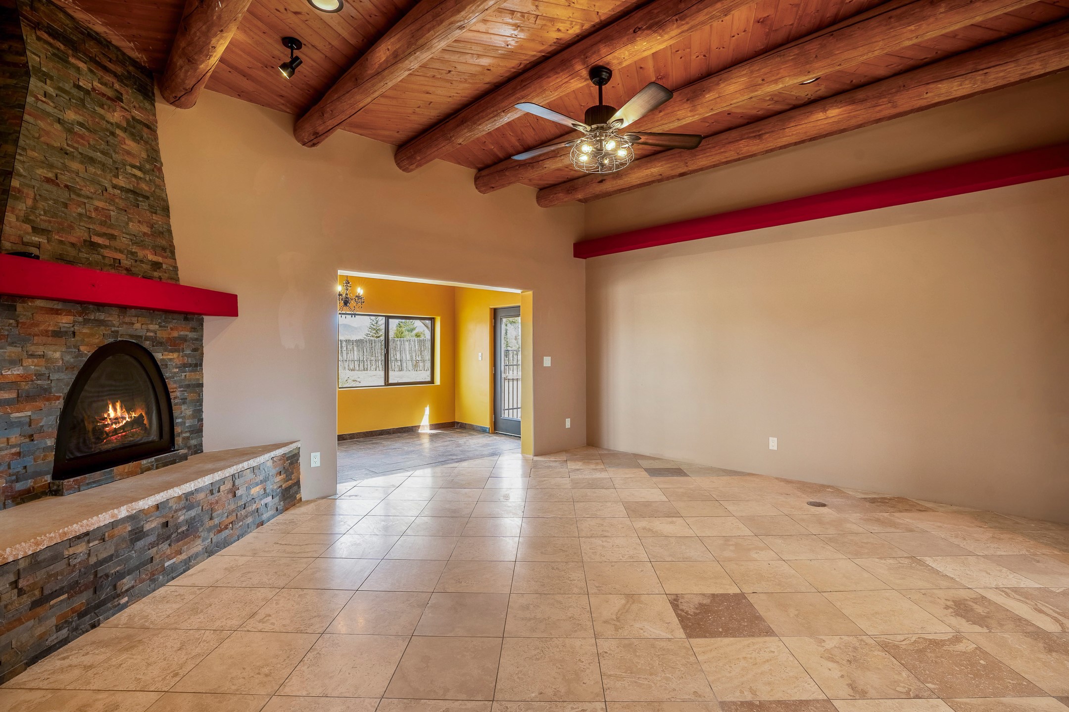 This beautiful single-level home boasts a spacious 2,727 +/- square foot split-bedroom floor plan with 4 bedrooms, a sunroom, 3 full baths, and a 3-car garage. 2025: home has been appx 80% re-stuccoed, & is situated on a fenced & gated 2.5-acre lot with breathtaking mountain views in all directions, offering a serene rural setting allowing horses, no HOA, just minutes from hospitals, restaurants, & grocery stores. The large kitchen is a chef's dream, featuring NEW MOSAIC TILE BACKSPLASH, abundant cabinetry & drawers for ample storage, granite countertops, an island/breakfast bar, pantry and stainless-steel appliances. Adjacent to the kitchen is the formal dining room with tiled accents and plaster finished wall/ceiling. The grand living room impresses with high ceilings, vigas, can lighting, and a REMODELED GAS FIREPLACE WITH MANTLE. From the living room, step into the NEW SUNROOM, which opens to a NEW COVERED PORCH perfect for relaxing & enjoying the views. The spacious owner's suite has NEW ENGINEERED WOOD FLOORING, walk-in closet with built-ins, vigas with tongue & groove ceiling and a ceiling fan. The ensuite bath has a NEW TUB, NEW LOVELY TILED SHOWER, AND NEW DOUBLE SINK VANITY. Additional bedrooms are thoughtfully designed with ample space & functionality. The hall bath has been updated with a NEW VANITY, while the laundry room, complete with plentiful cabinets and drawers, a skylight, and an NEWELY ADDED SINK, offers convenience and style. Many wonderful features and amenities include: Radiant heat-2 Evaporative cooling units-Tons of skylights-Wood doors-NEW PERGOLA-NEW 16X16 TUFF SHED (13K)-Plaster finish walls-Hunter Douglas blinds-Ceiling fans-NEW BRICK TILED ACCENT WALLS in hallway-Plenty of wall space for artwork-FRESHLY PAINTED INTERIOR (Almost every room)-Multiple covered enclosed patios, perfect for outdoor living, and entertaining. This property combines comfort and functionality with stunning views. Please read agent only remarks.